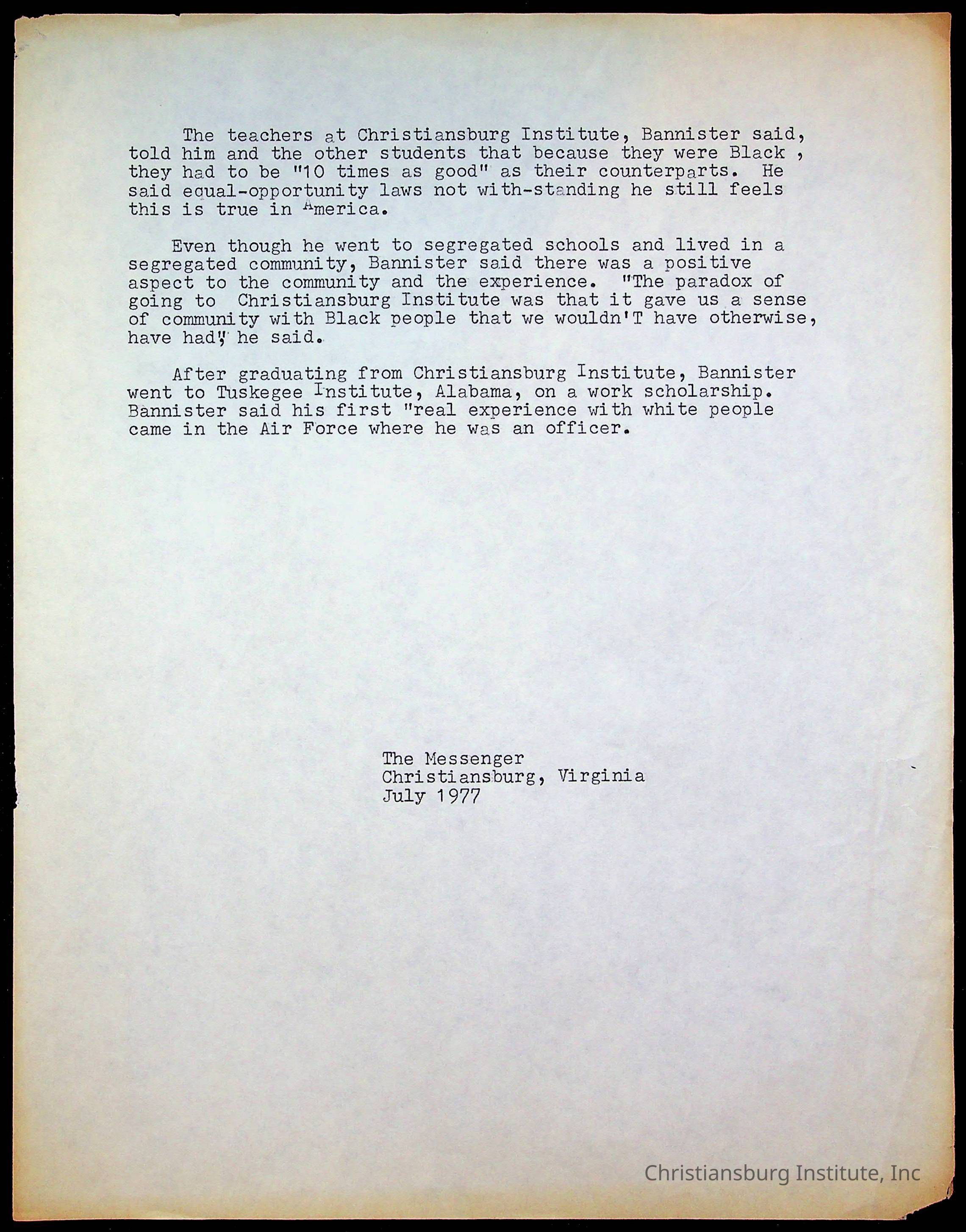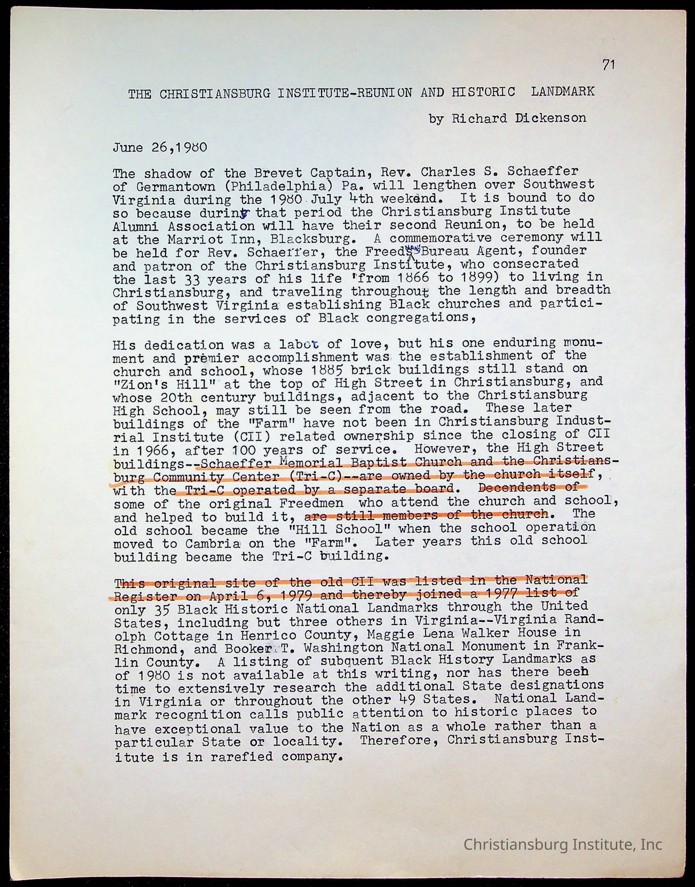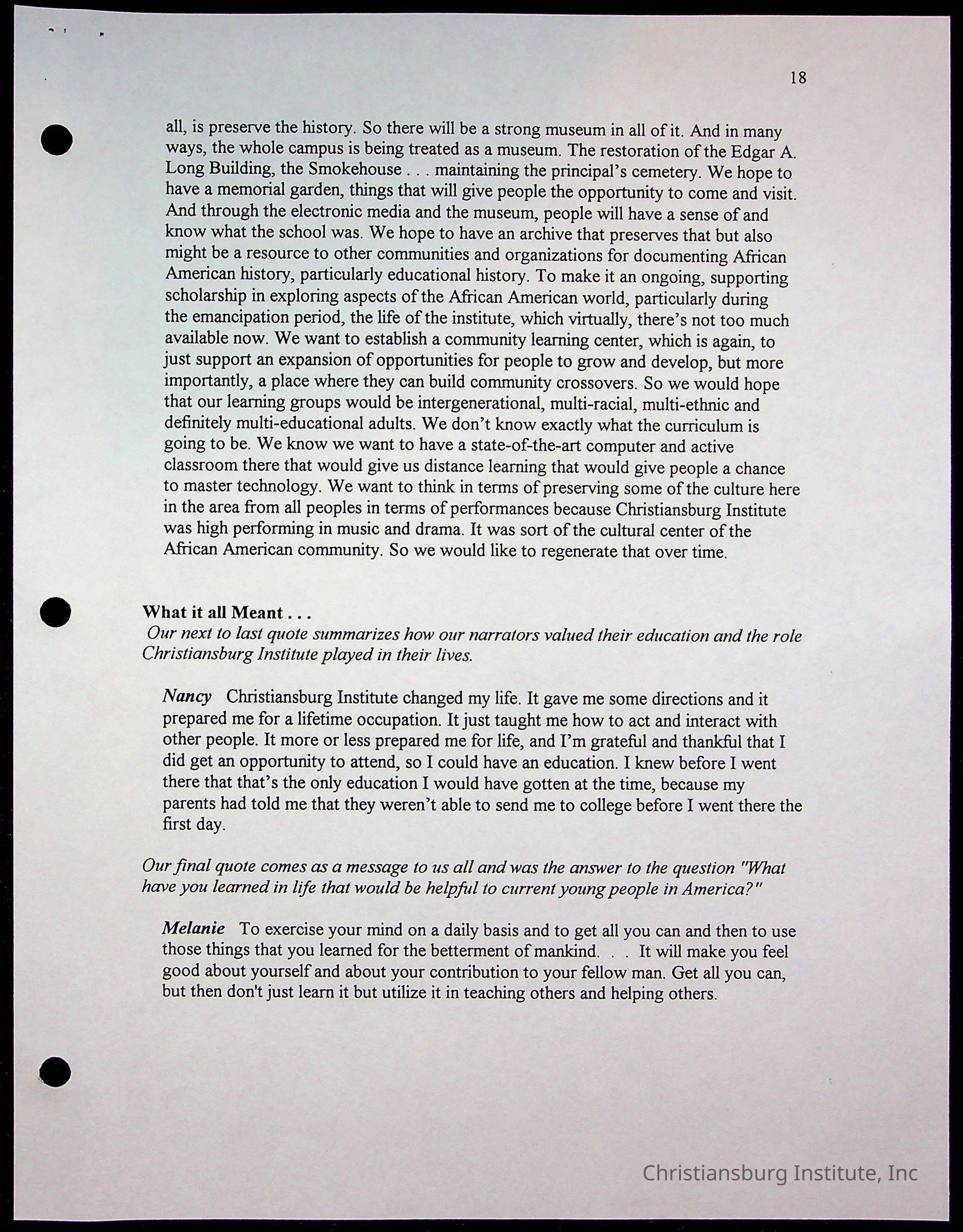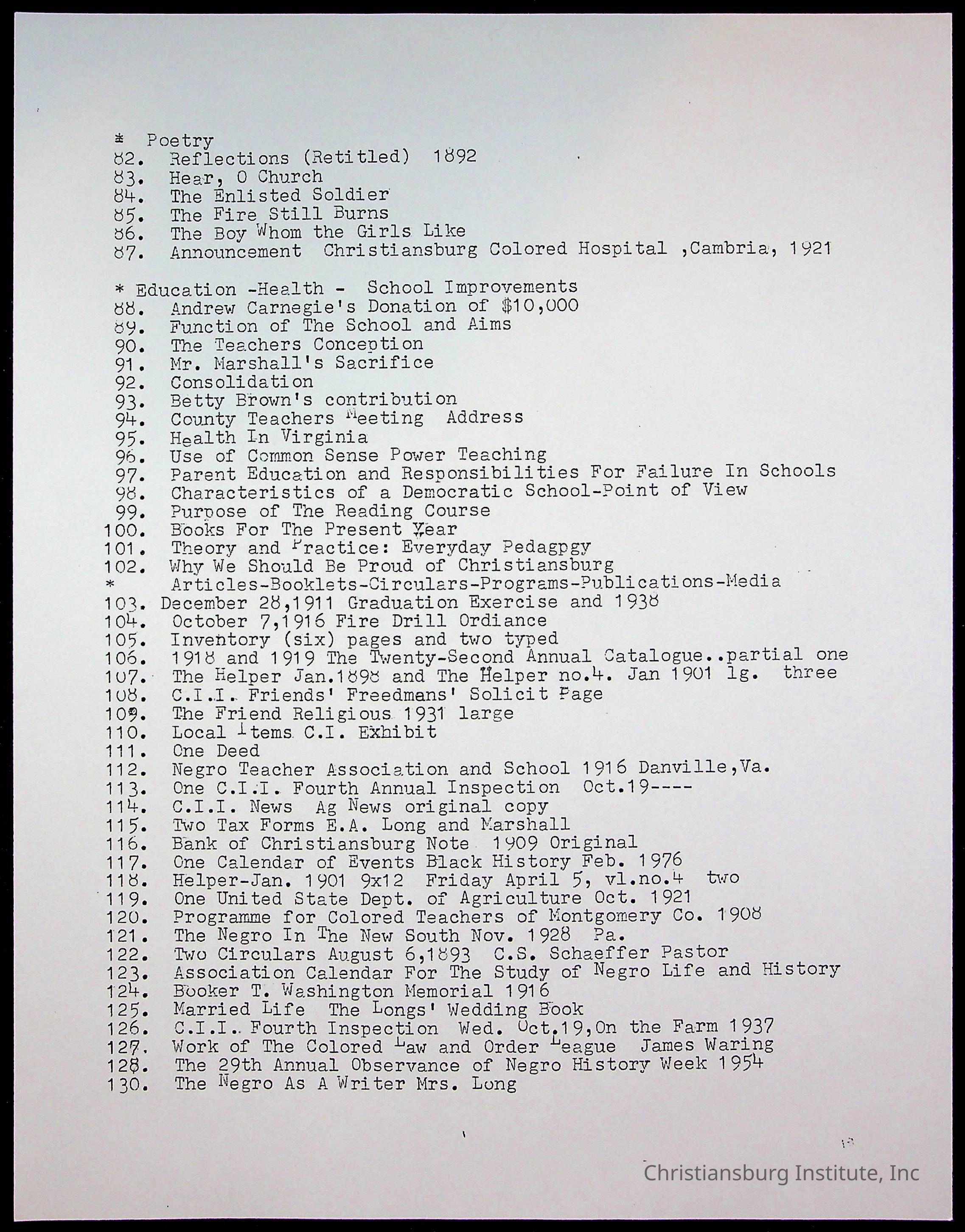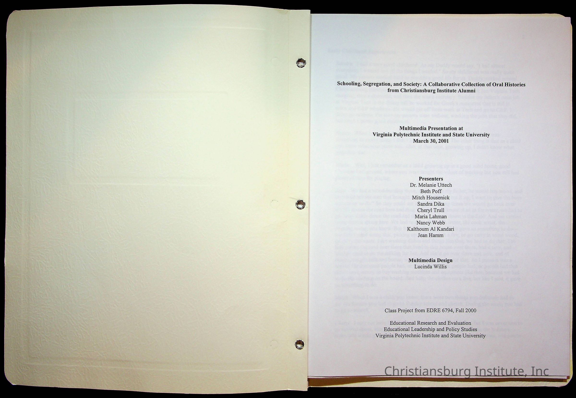 Copyright has been assigned to Christiansburg Institute Museum & Archives by Amanda DeHart. For permission to publish materials created by the donor, contact CIMA@christiansburginstitute.com. Materials not created by Amanda DeHart may still be under copyright.
