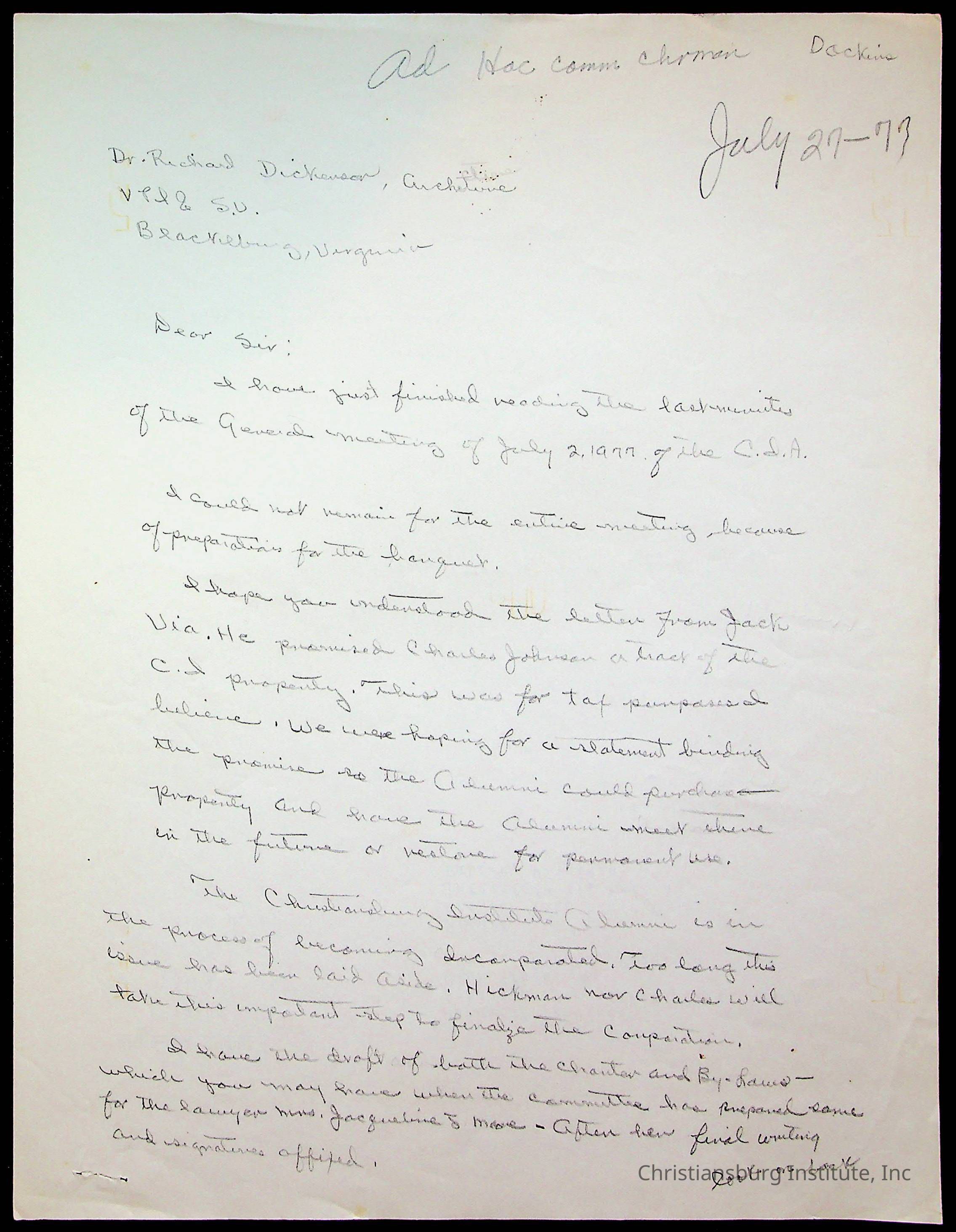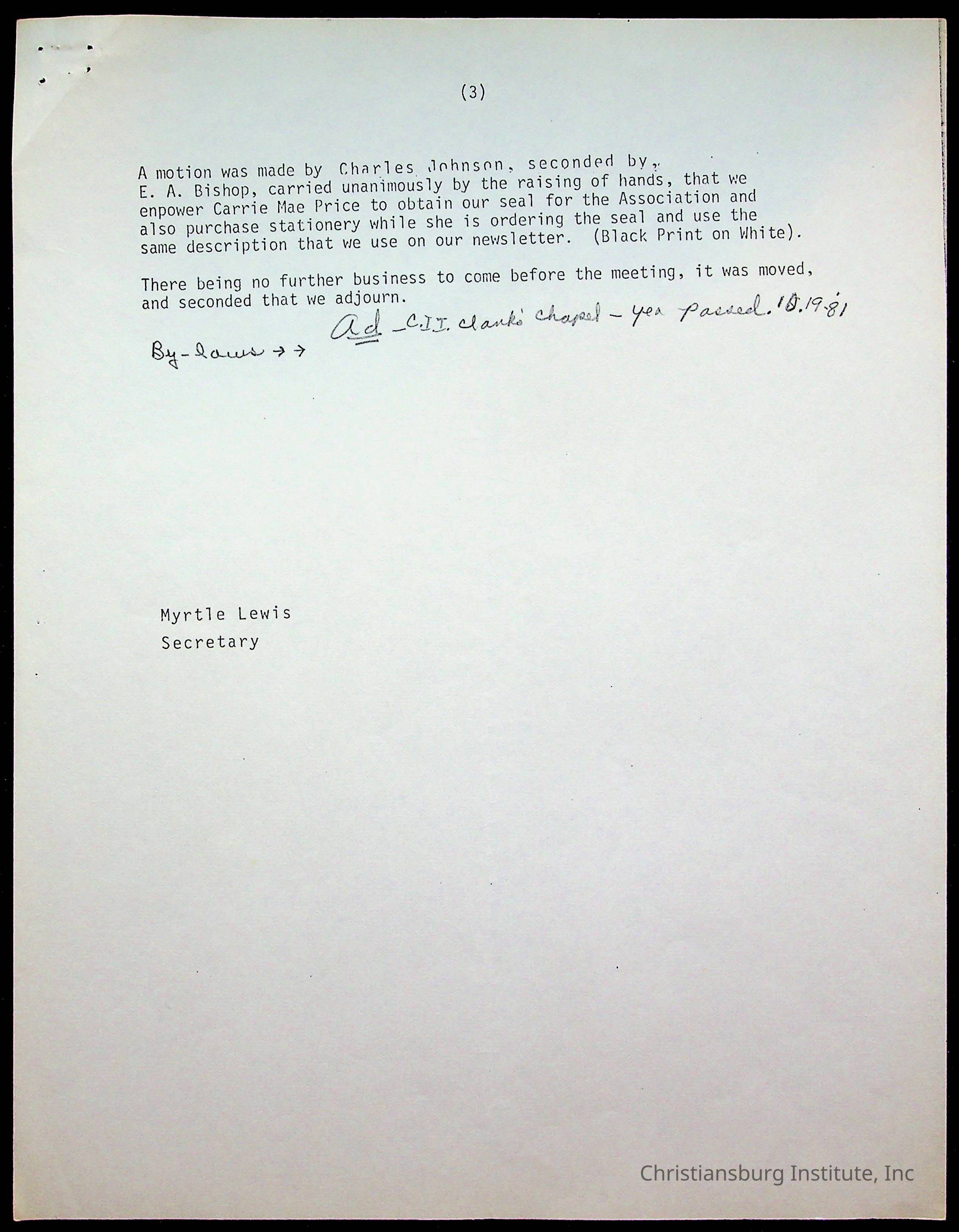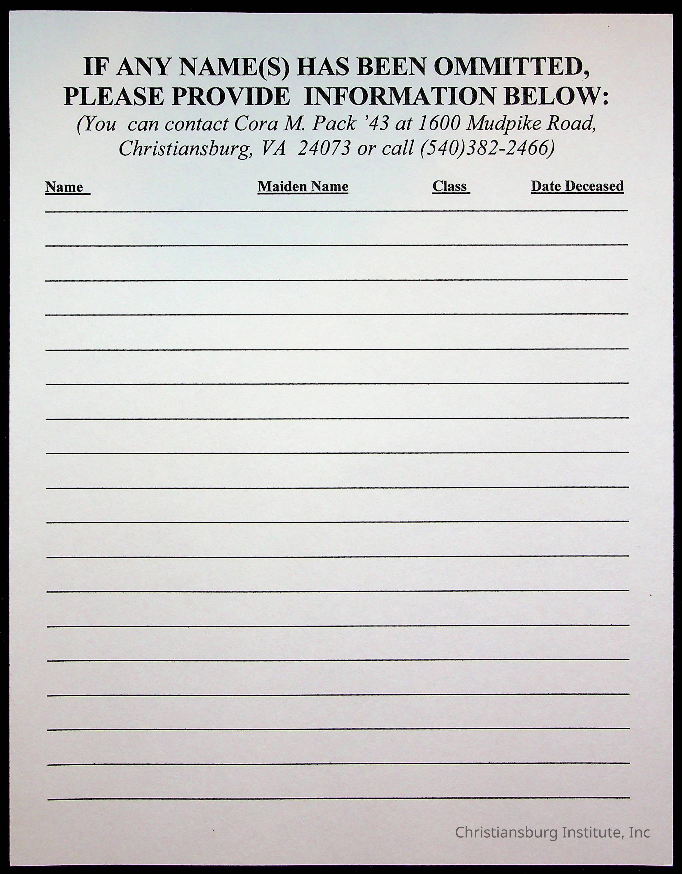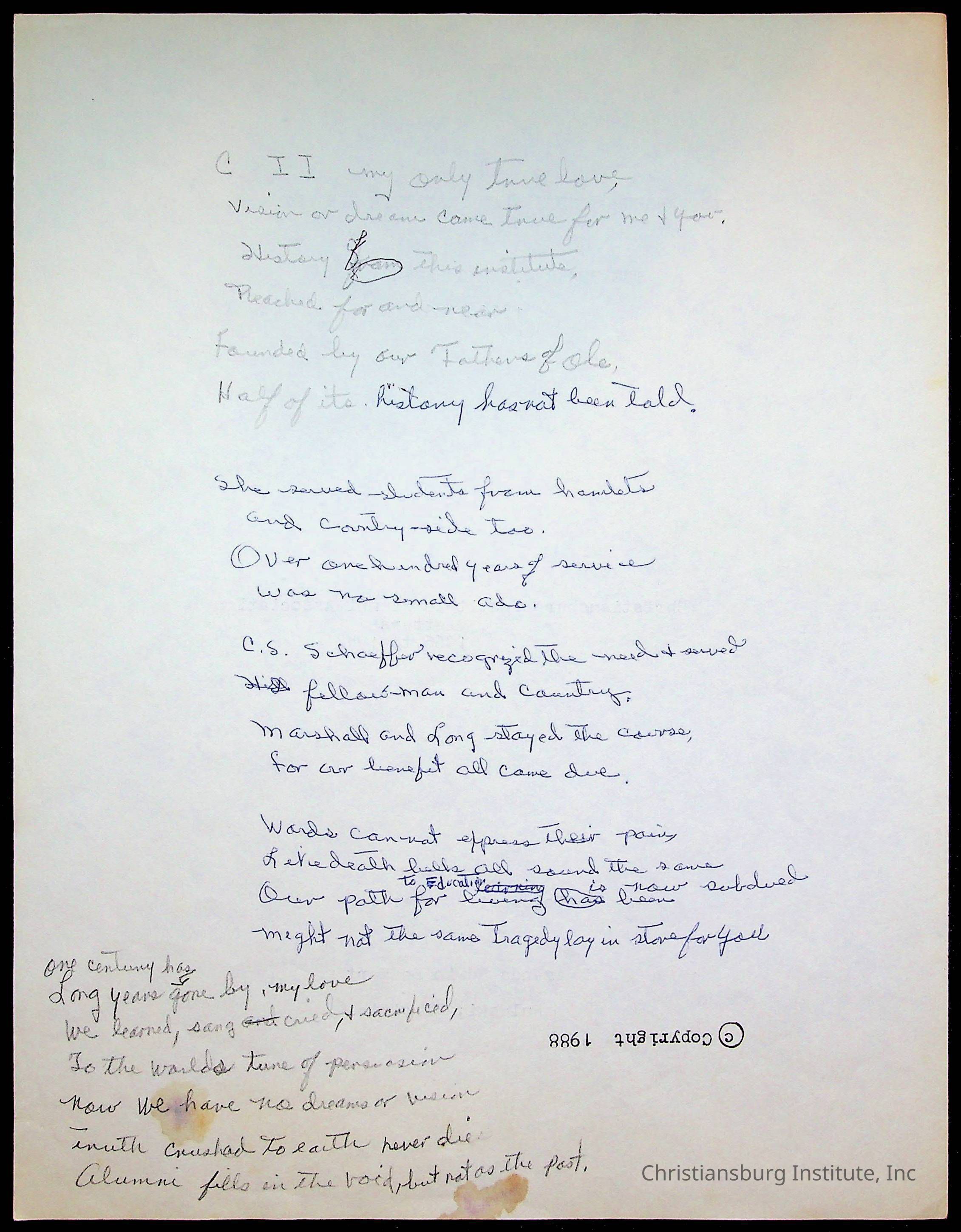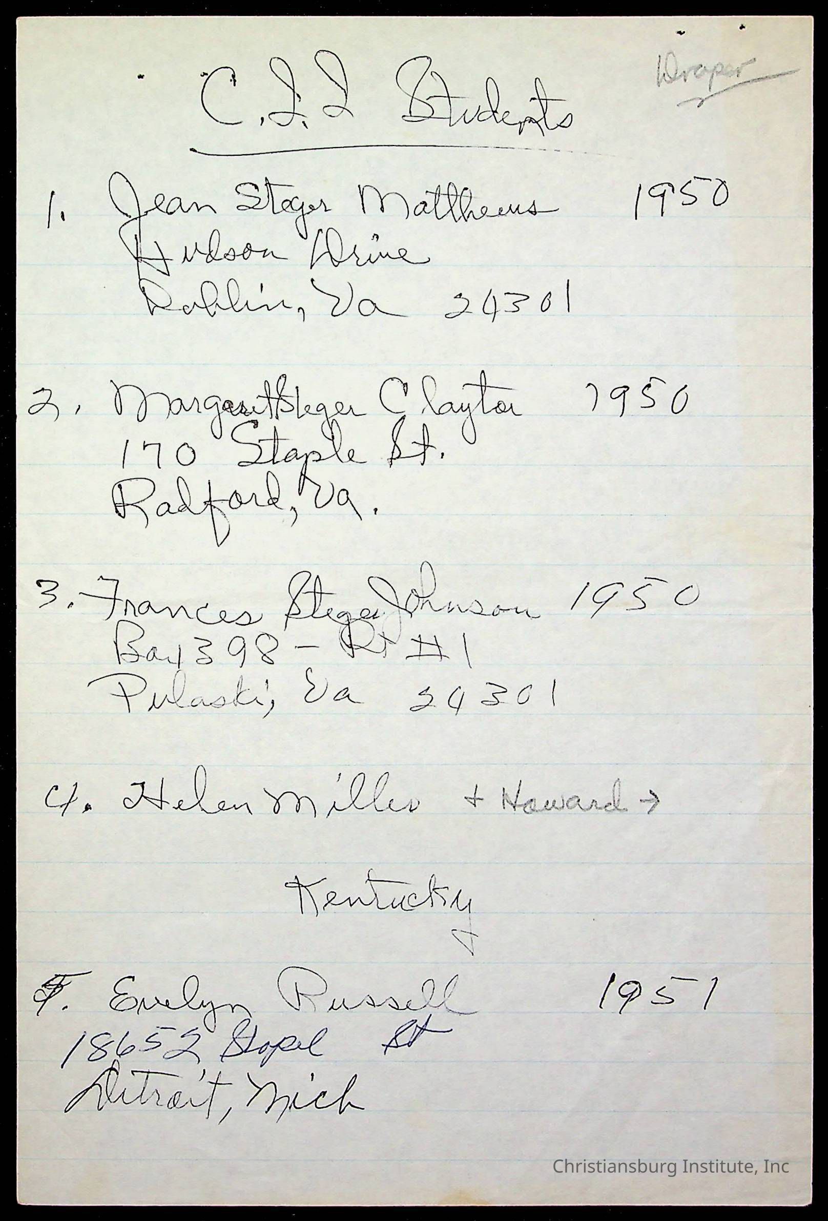 Copyright has been assigned to Christiansburg Institute Museum & Archives by Amanda DeHart. For permission to publish materials created by the donor, contact CIMA@christiansburginstitute.com. Materials not created by Amanda DeHart may still be under copyright.