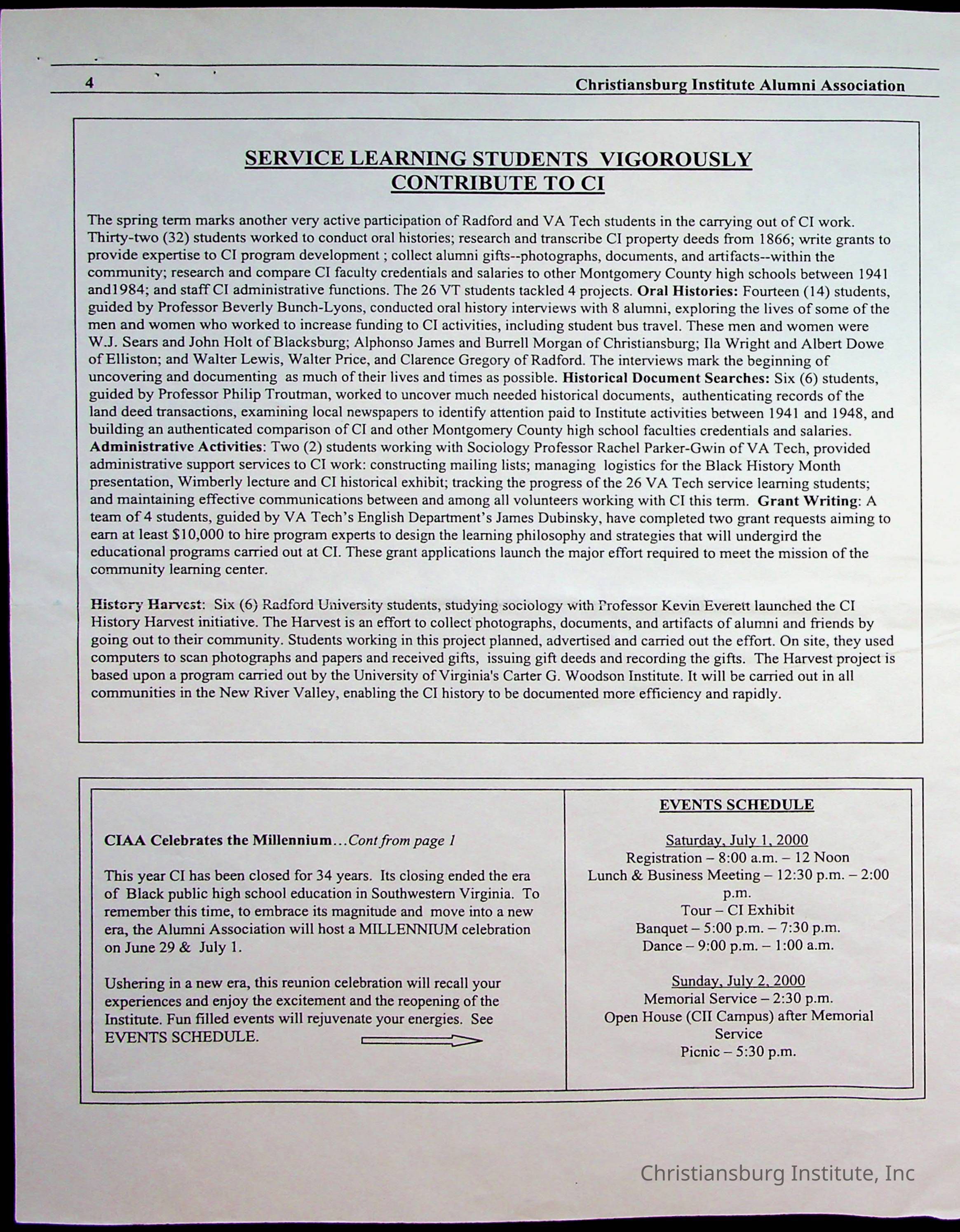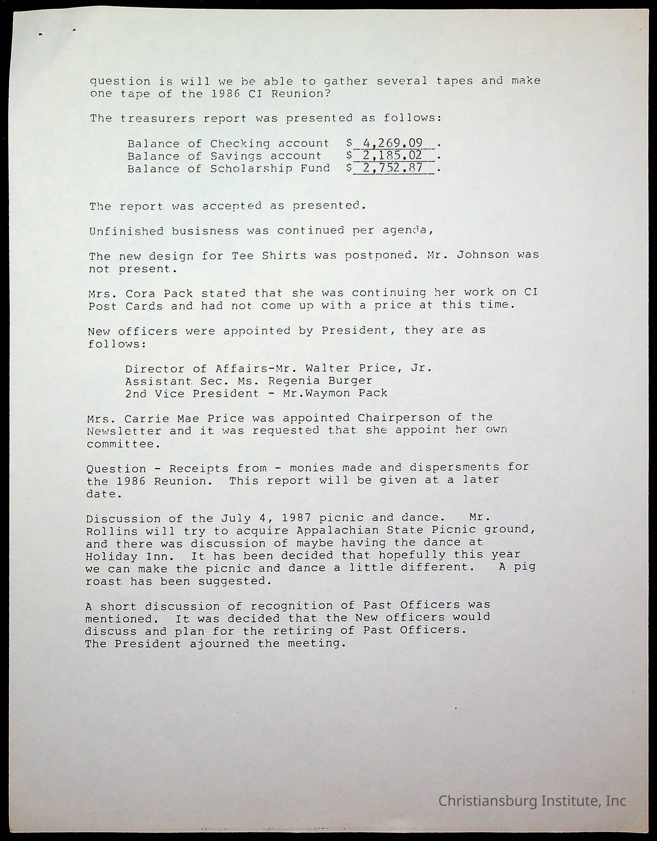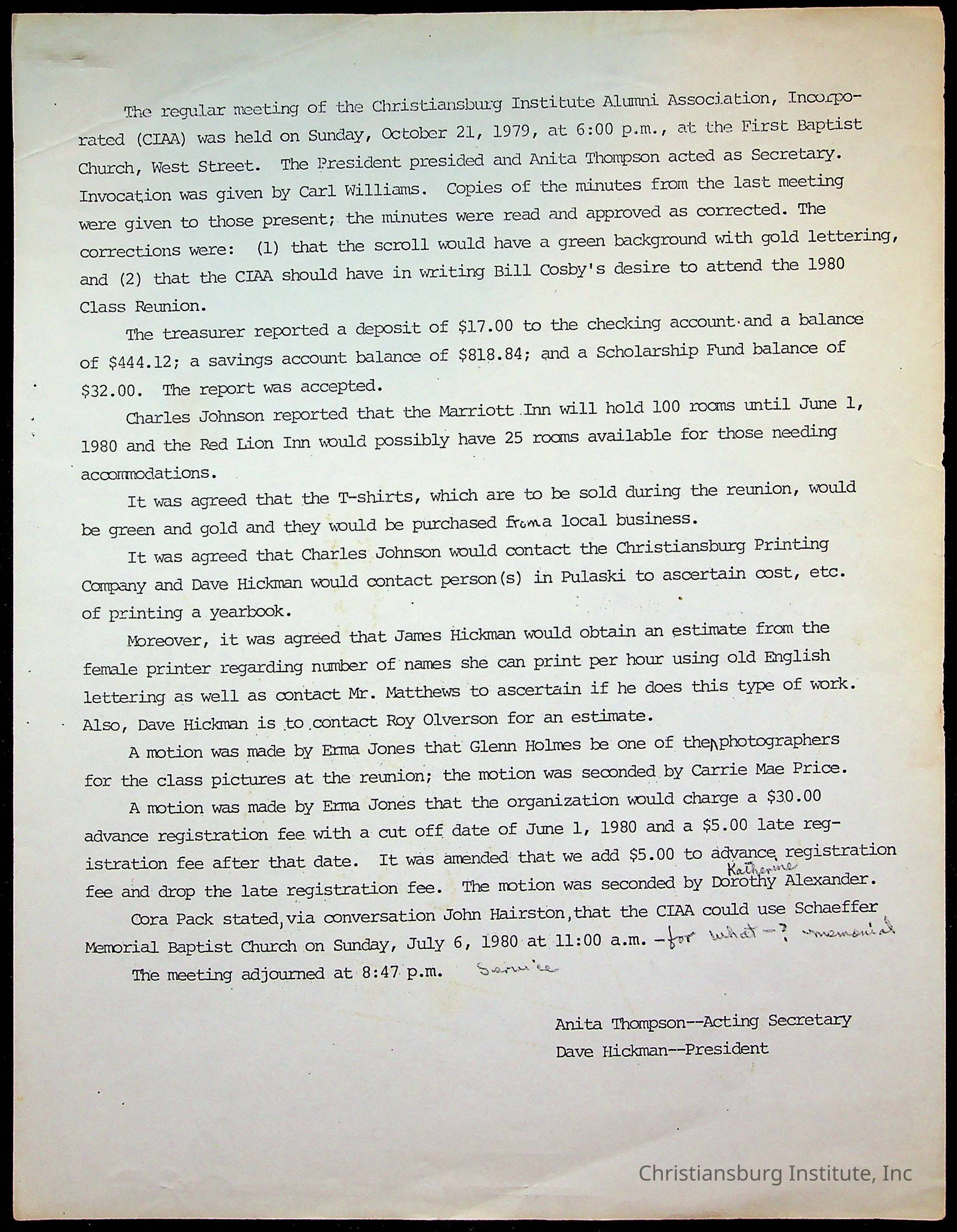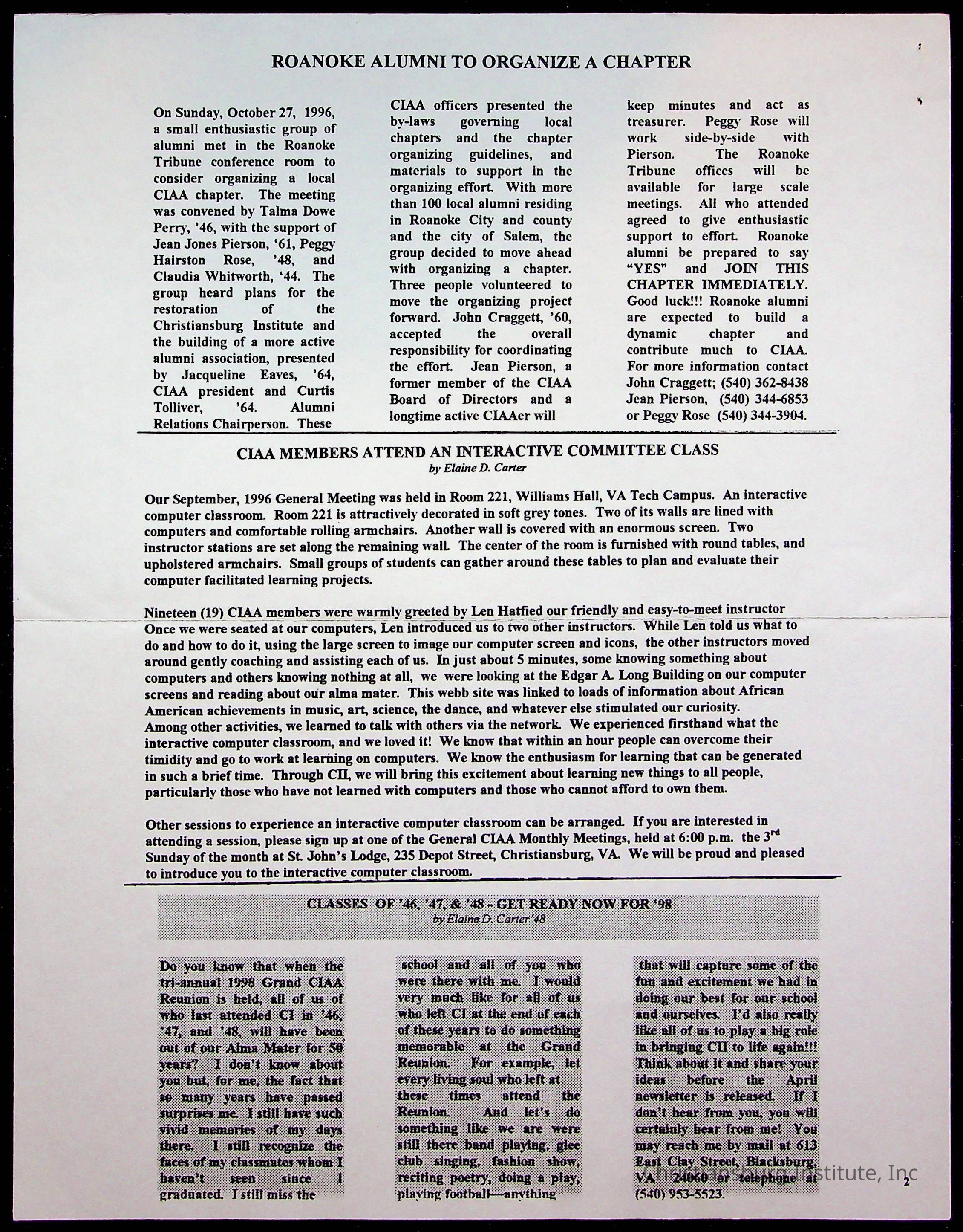 Christiansburg Institute Alumni Association, 1976-1999
