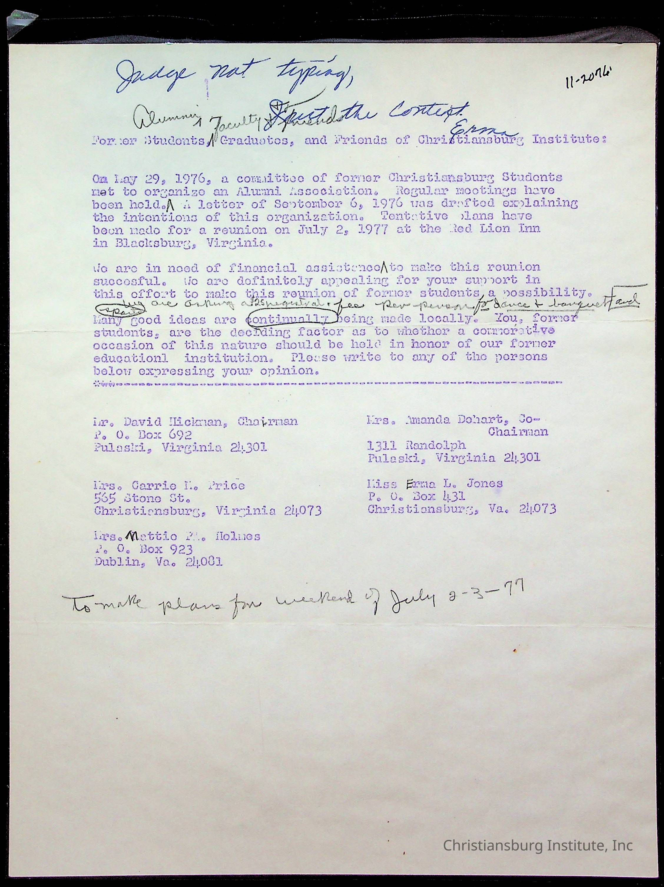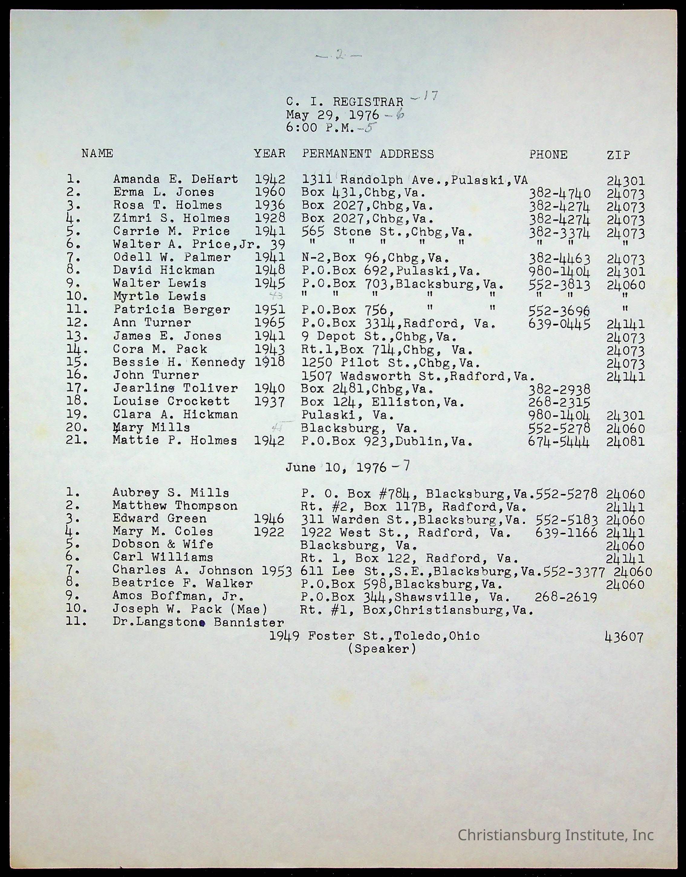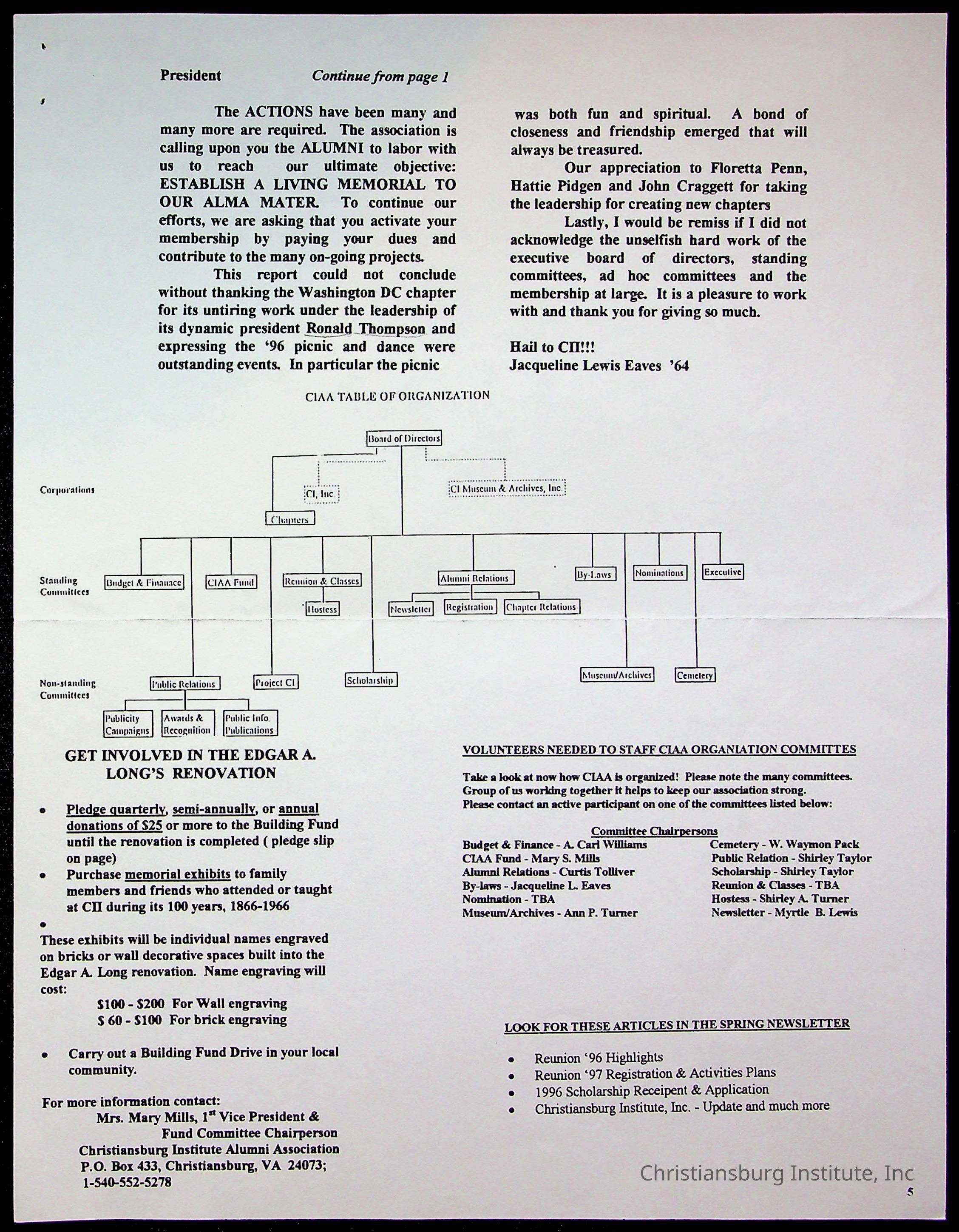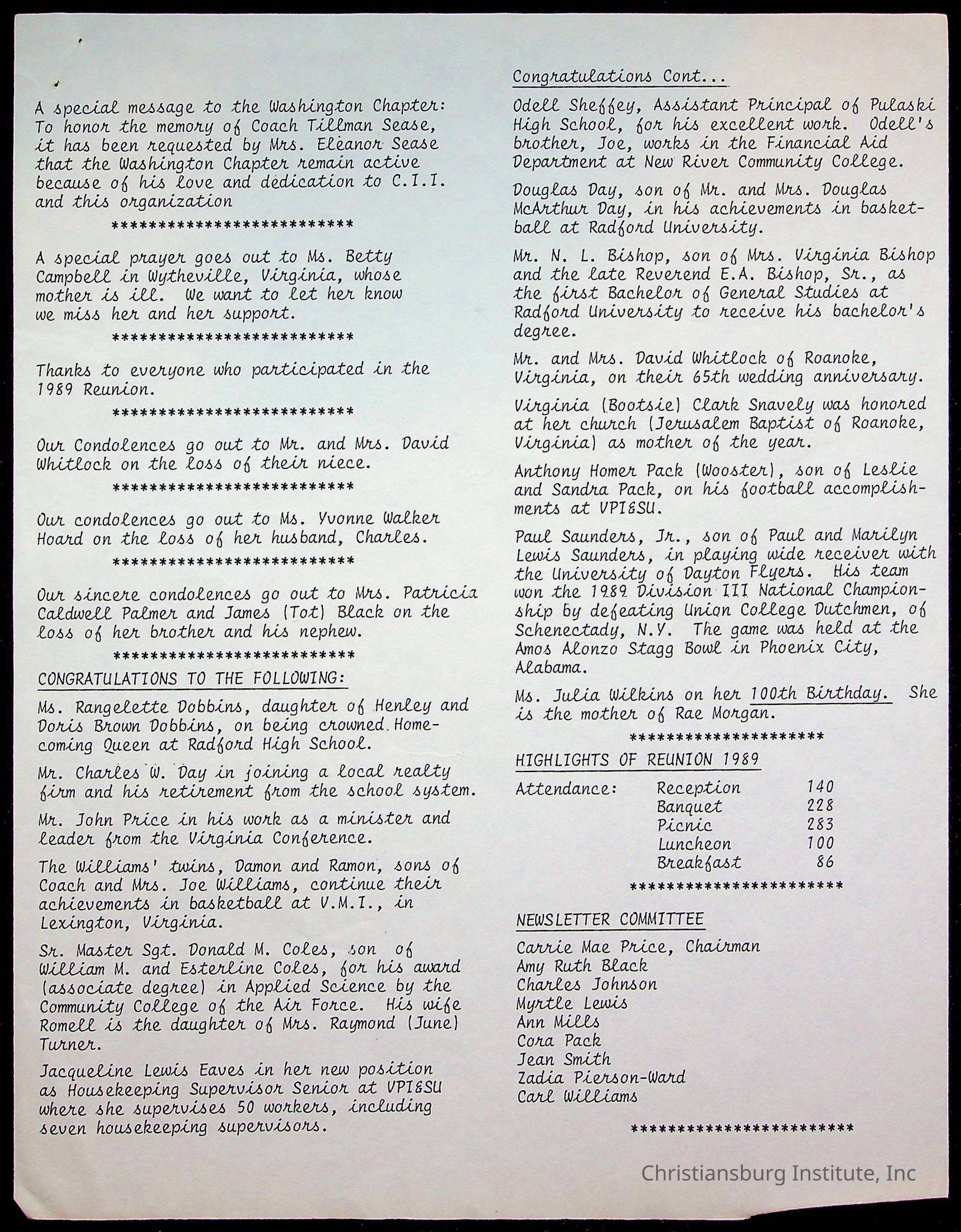 Christiansburg Institute Alumni Association, 1976-1999