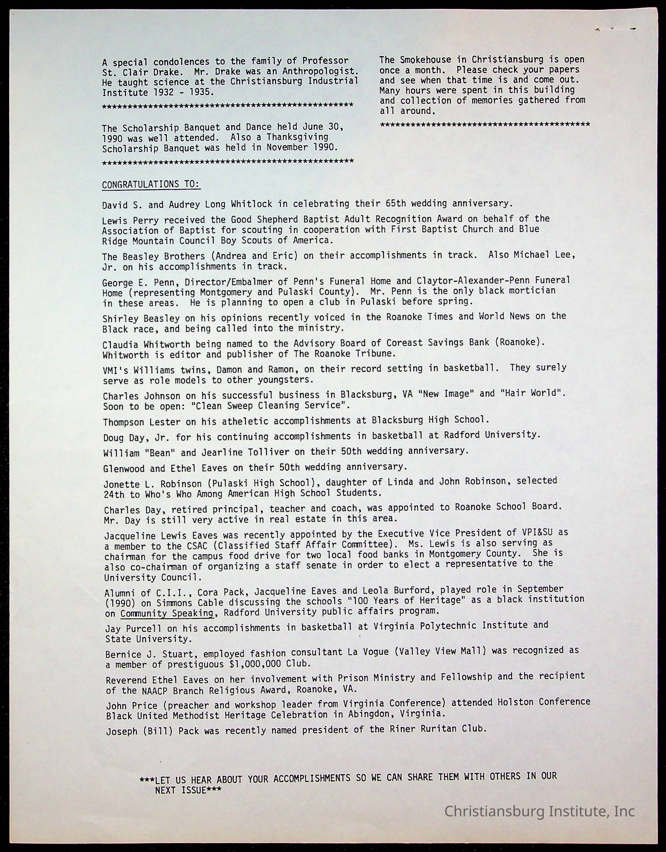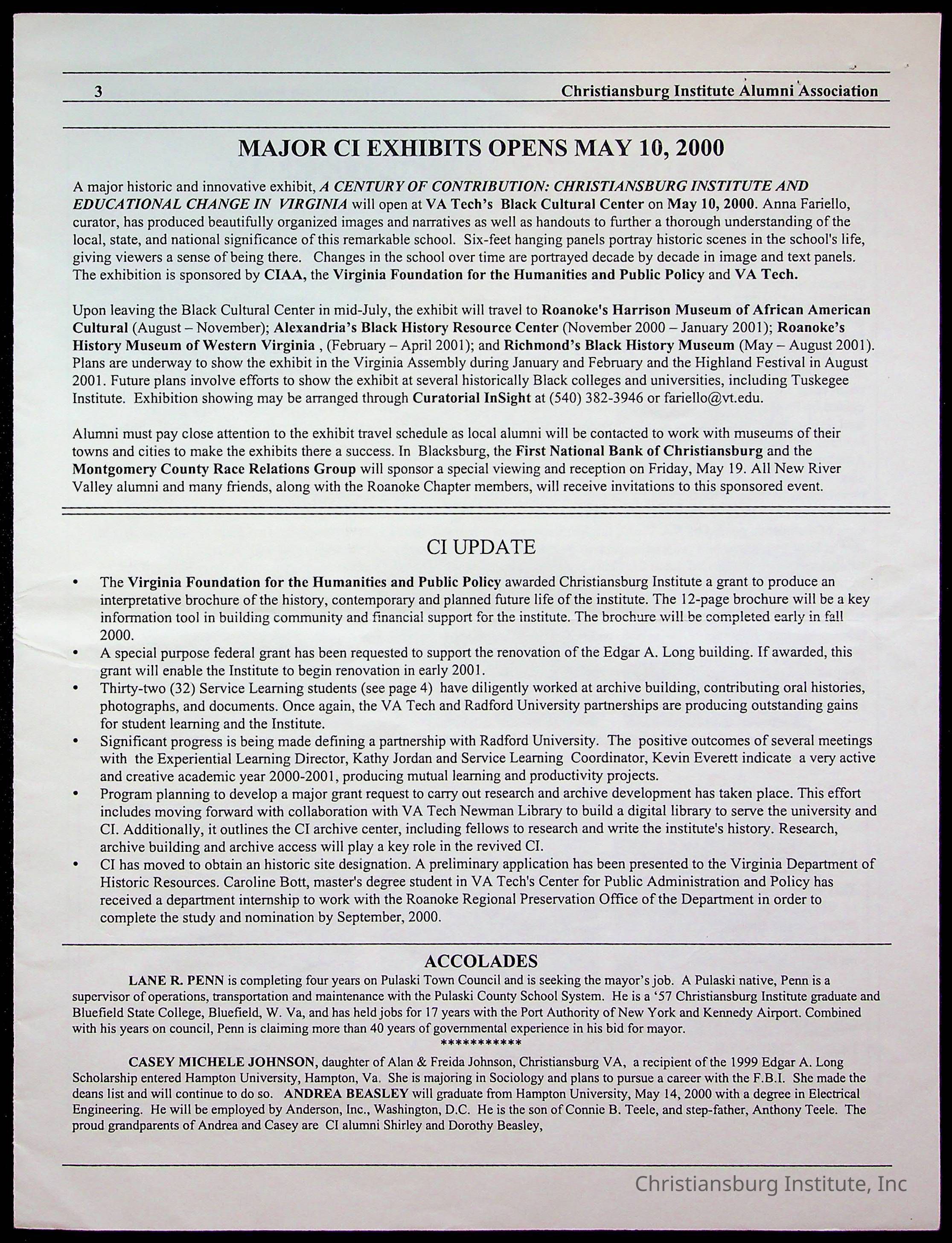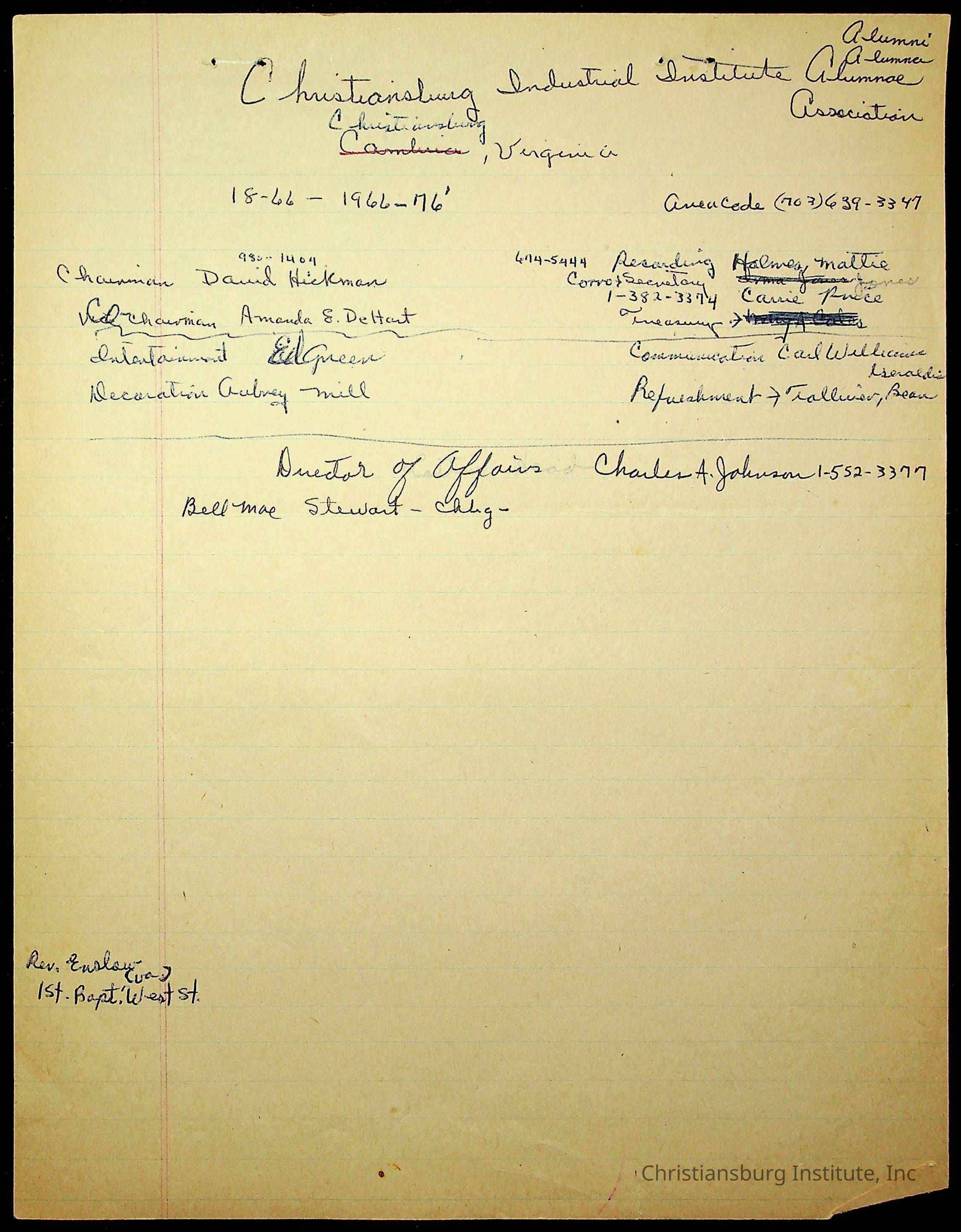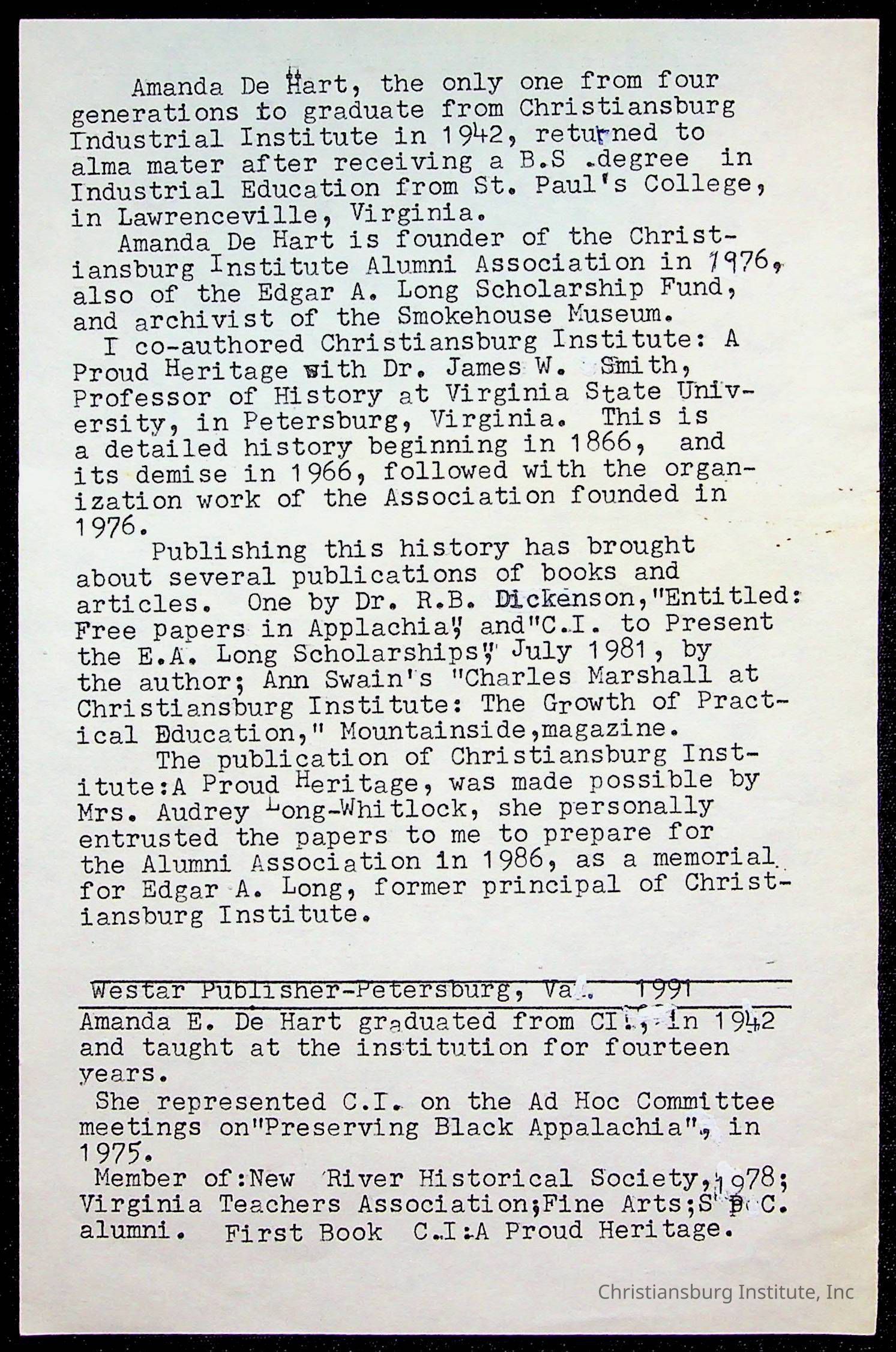 DeHart, Amanda, Christiansburg Institute Alumni Association, Christiansburg Institute