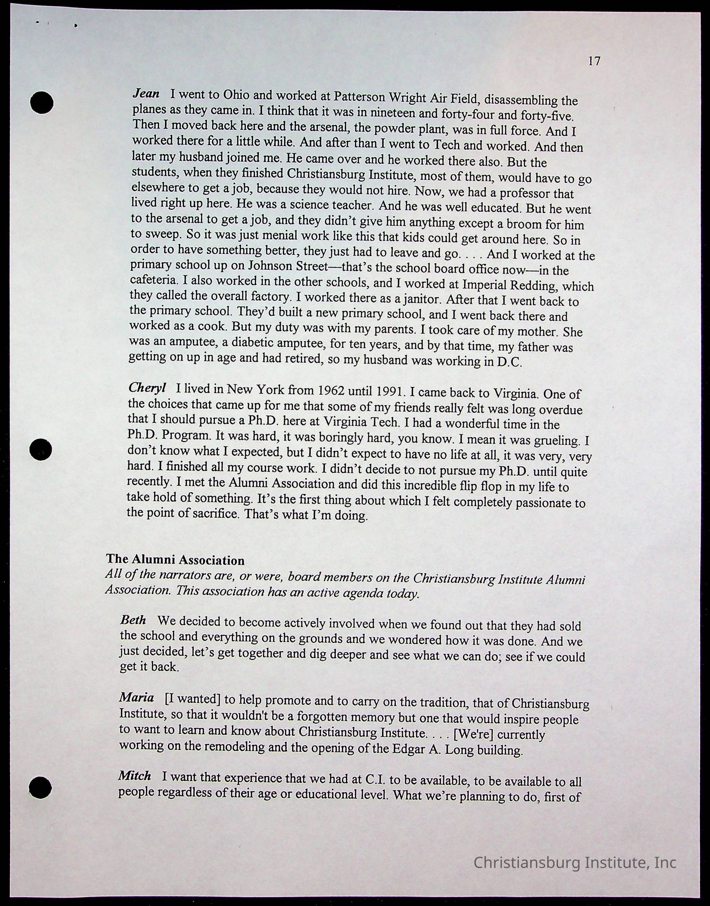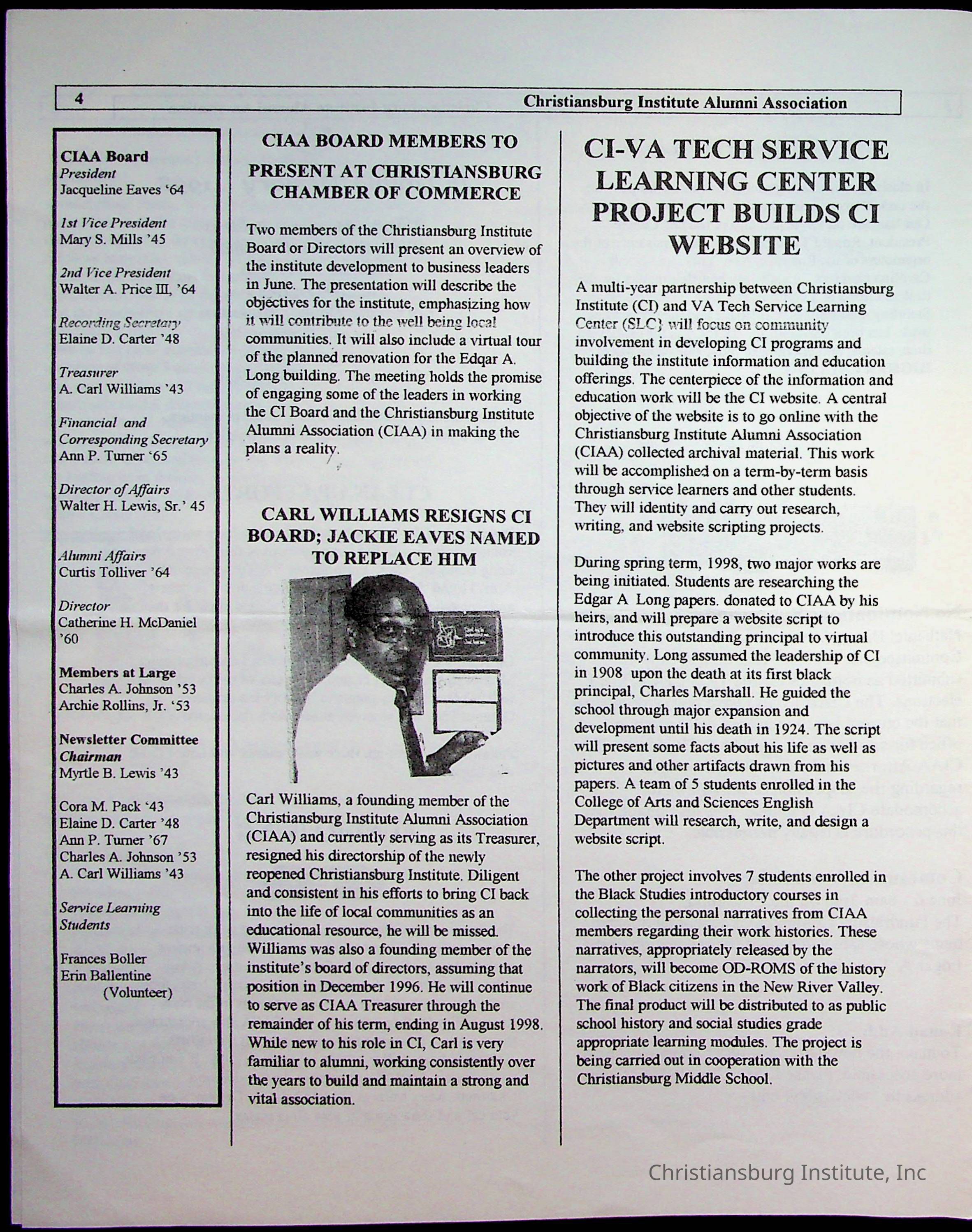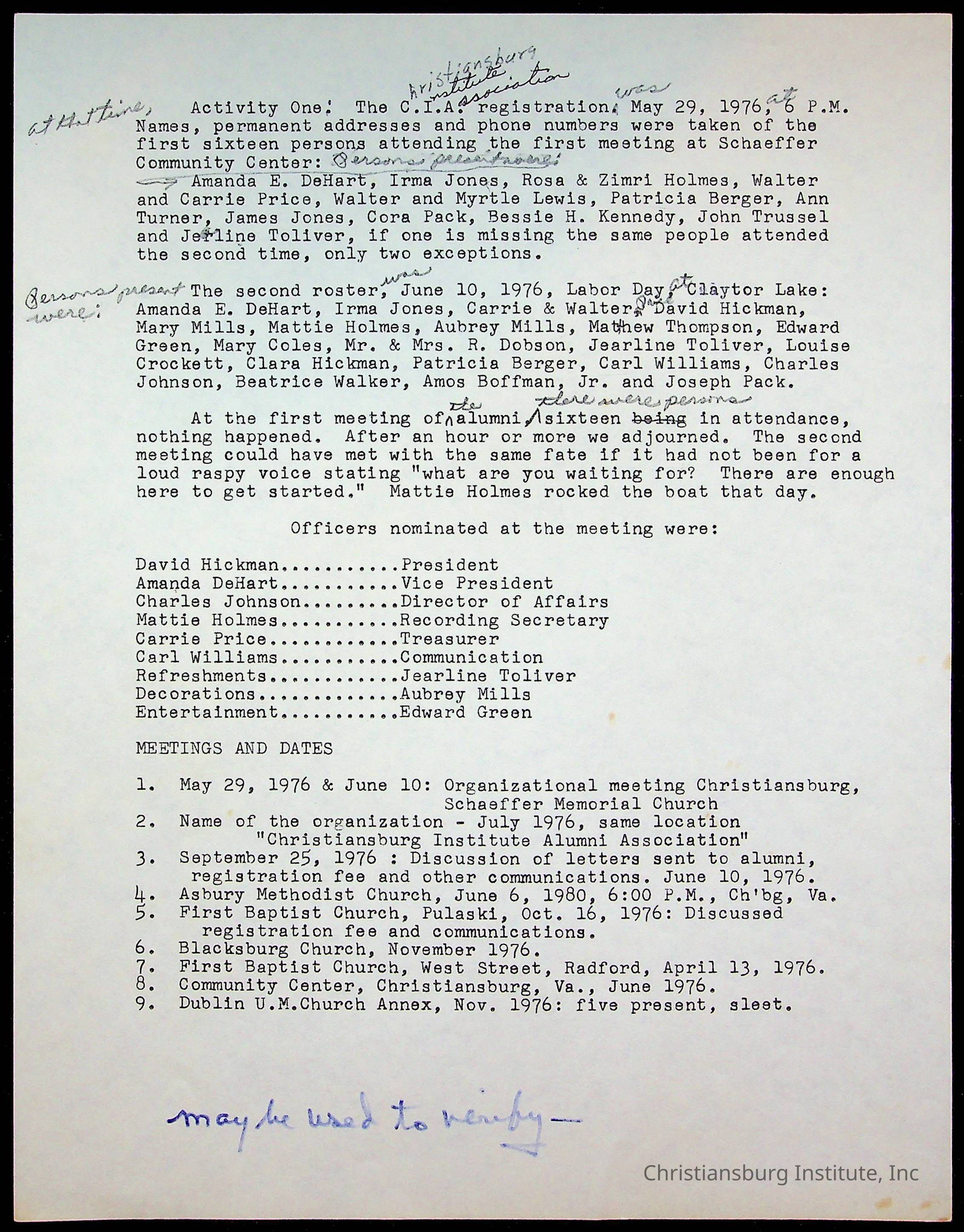 DeHart, Amanda, Christiansburg Institute Alumni Association, Christiansburg Institute