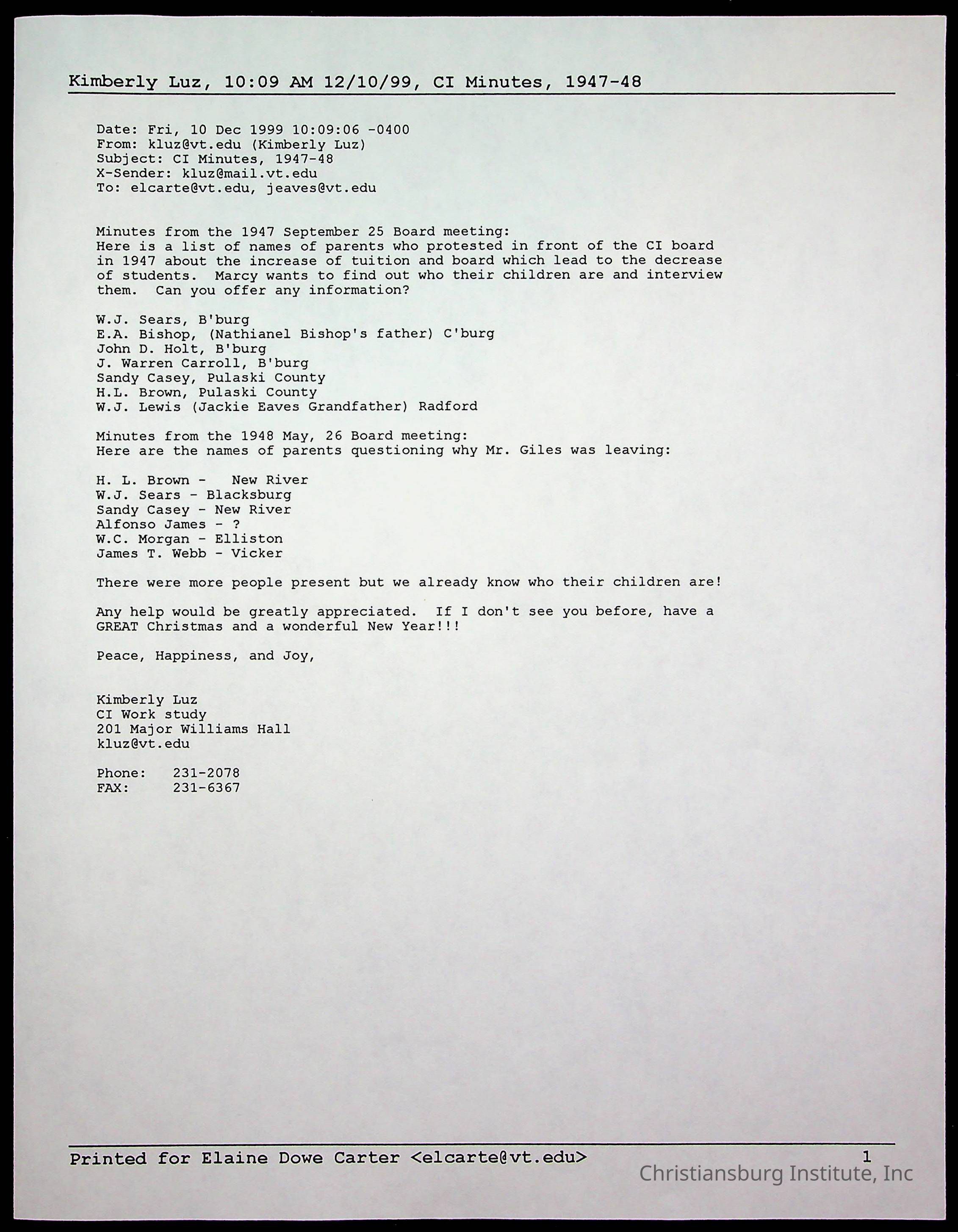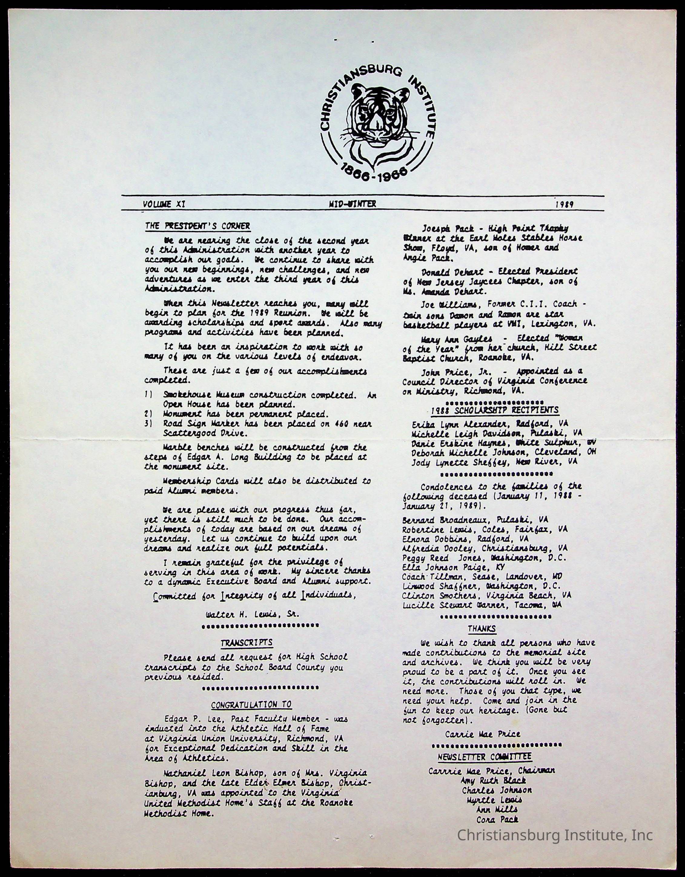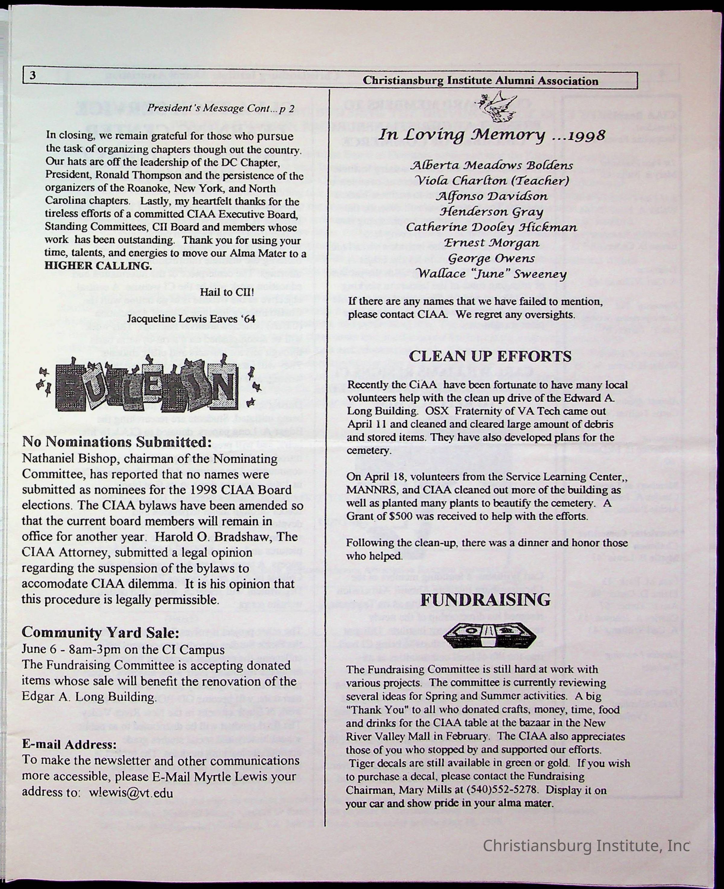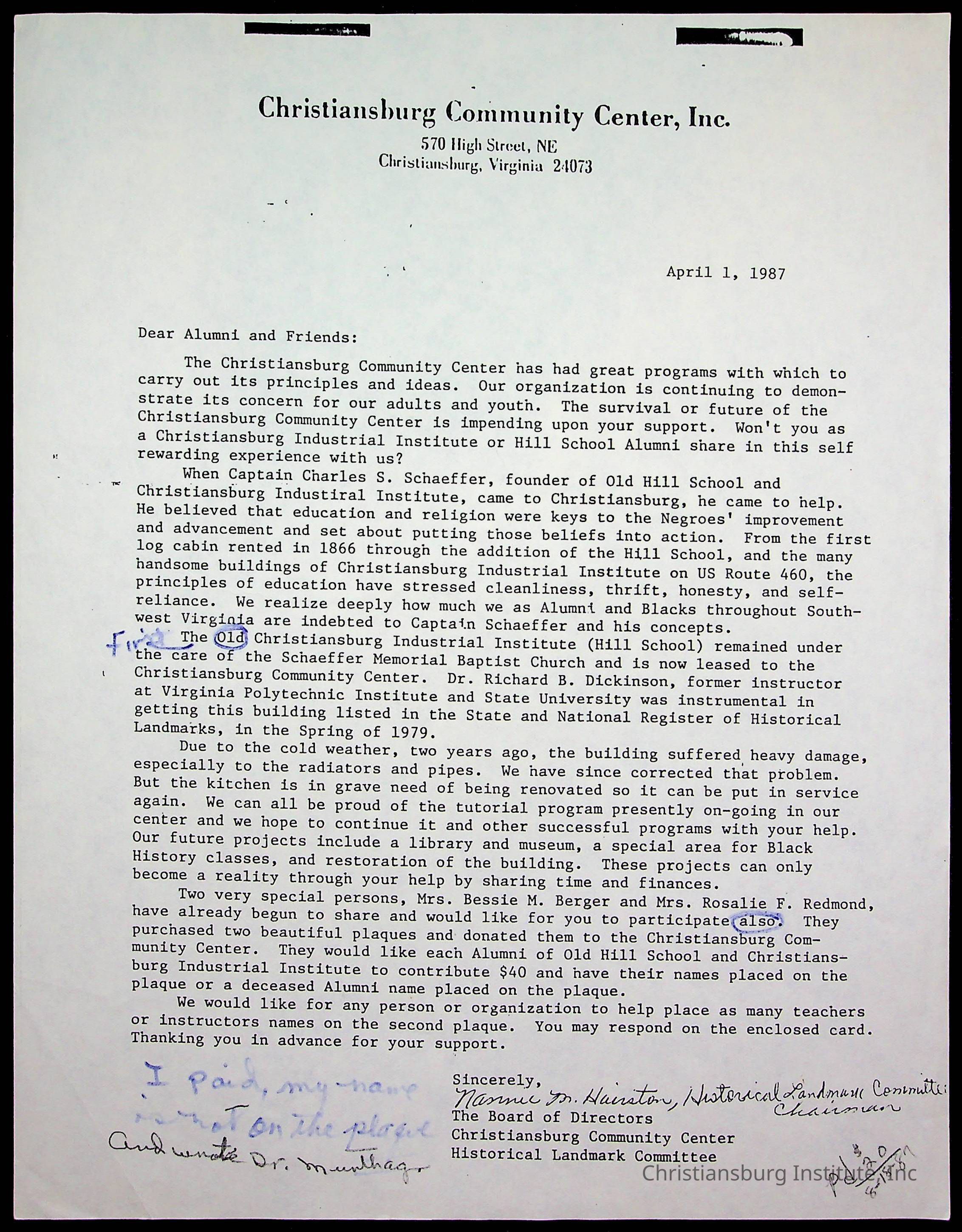 DeHart, Amanda, Christiansburg Institute Alumni Association, Christiansburg Institute