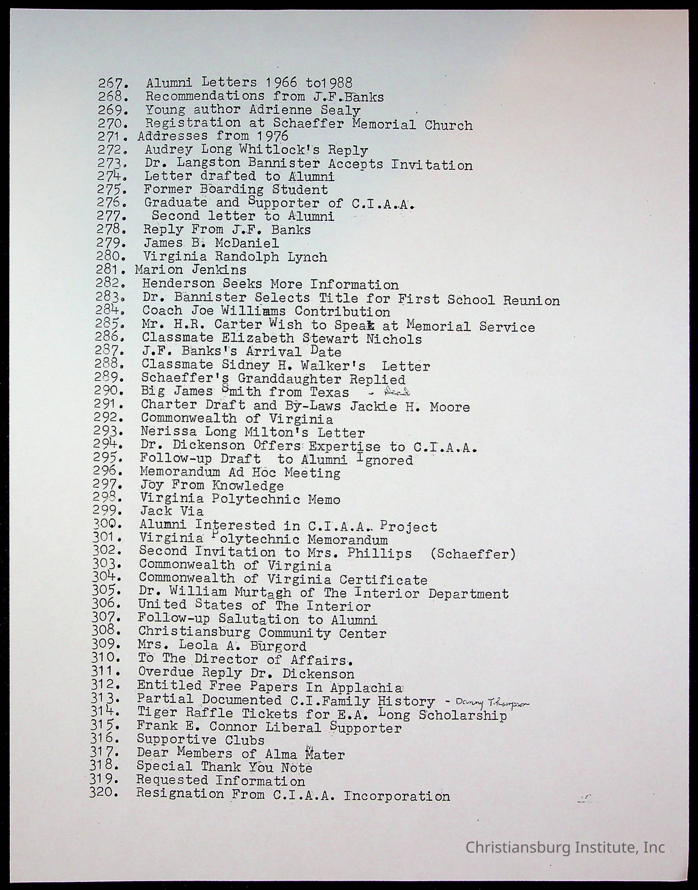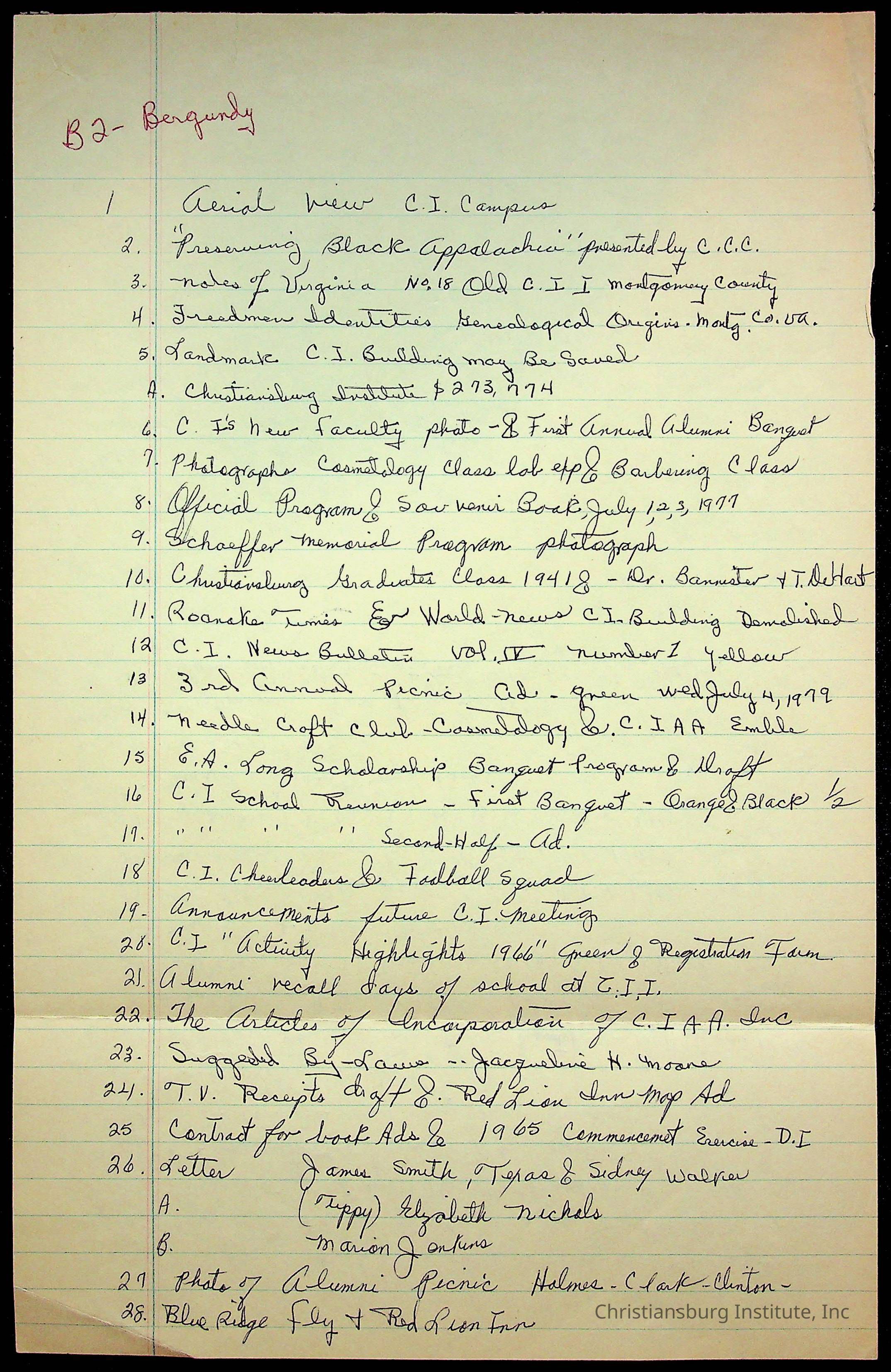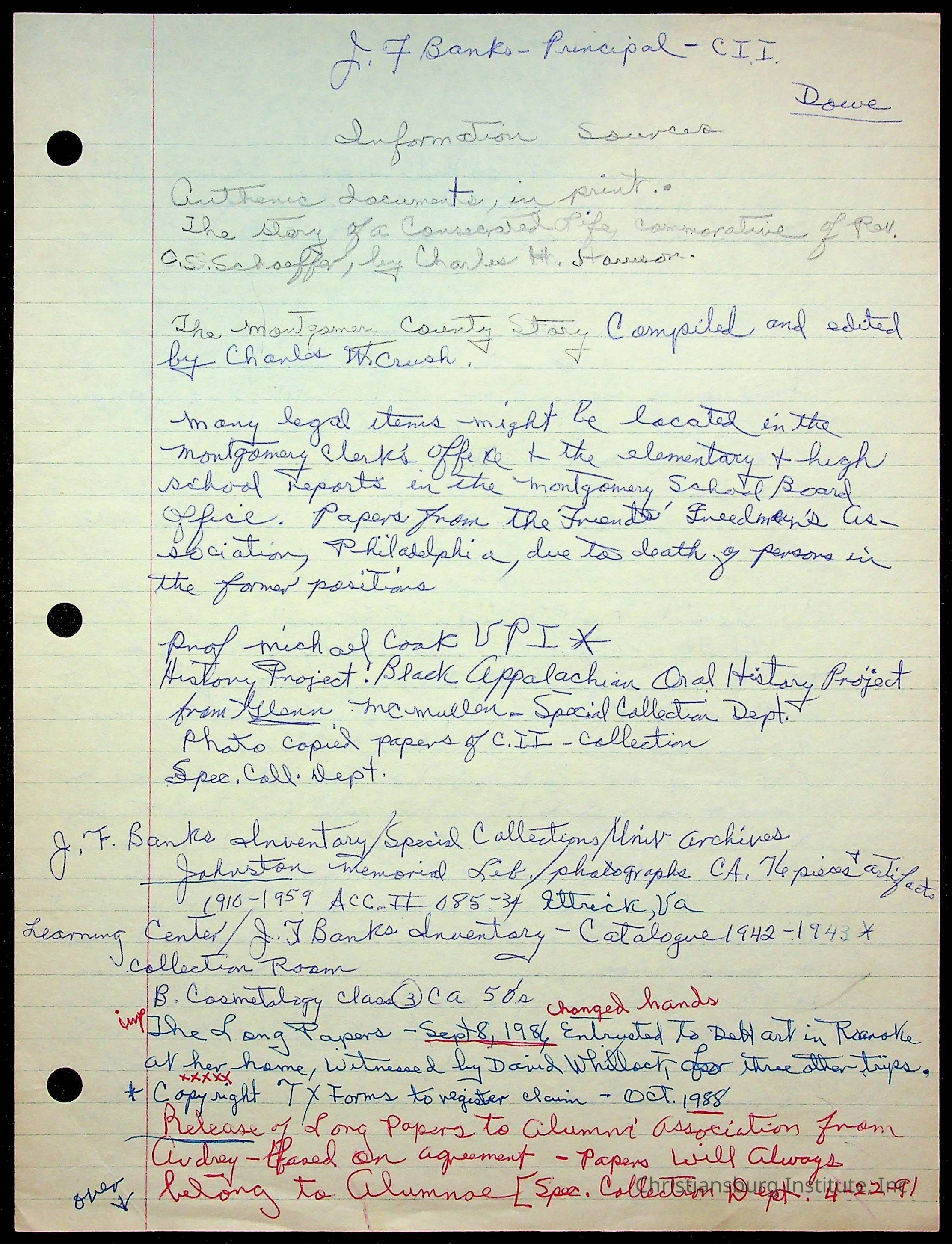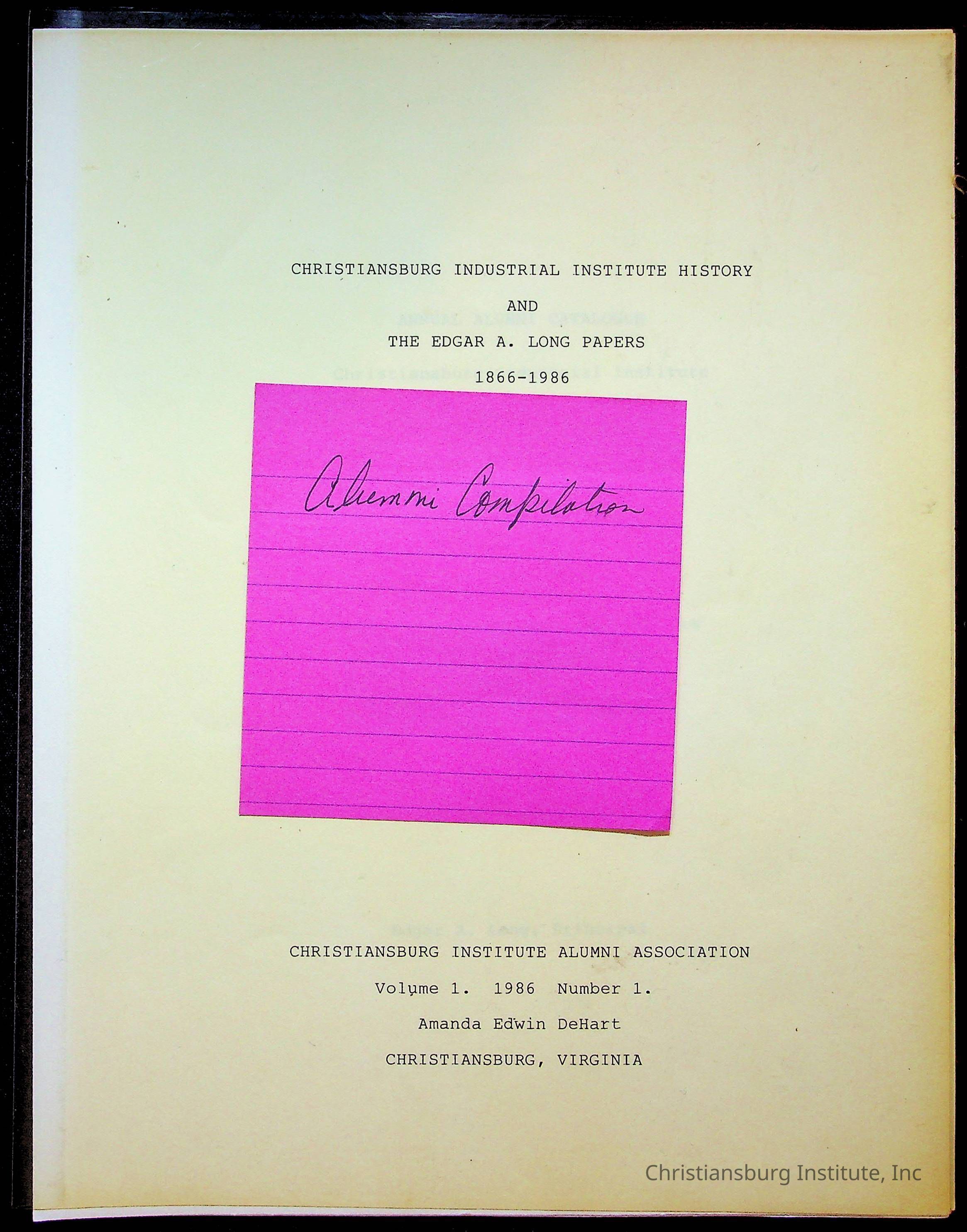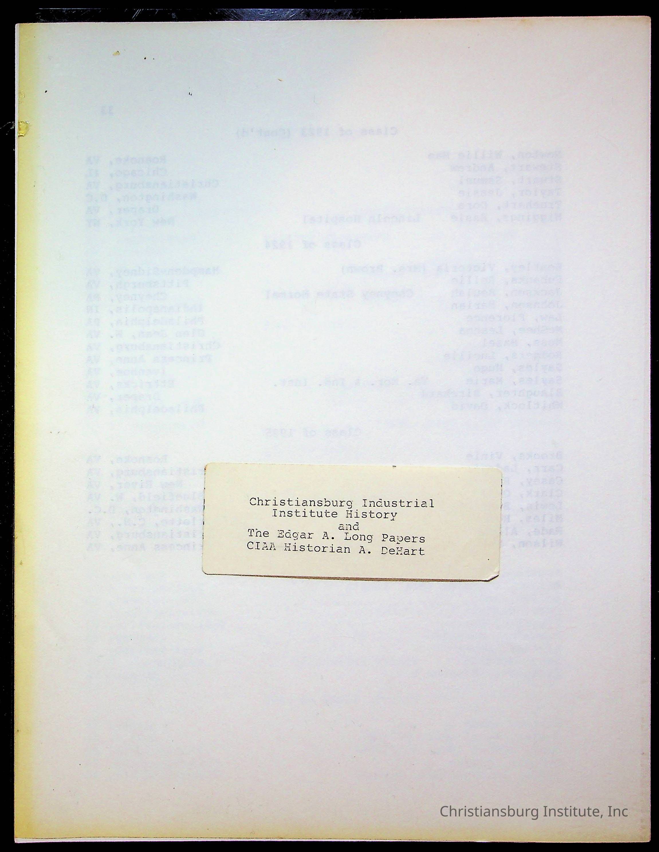 An archive of research material about Christiansburg Institute Alumni Association dated 1976-1999 complied by Amanda DeHart.