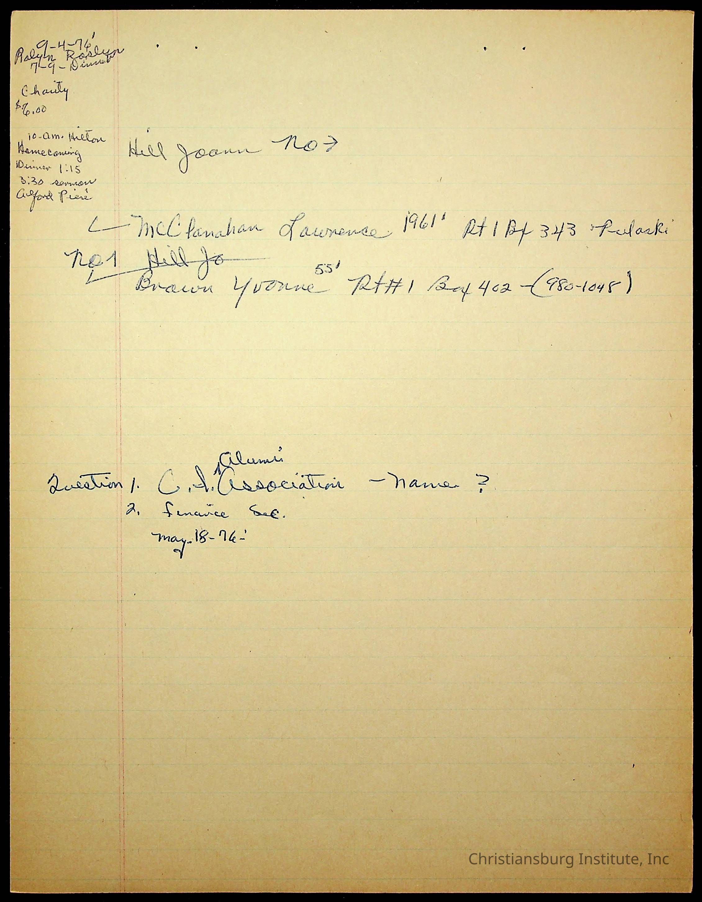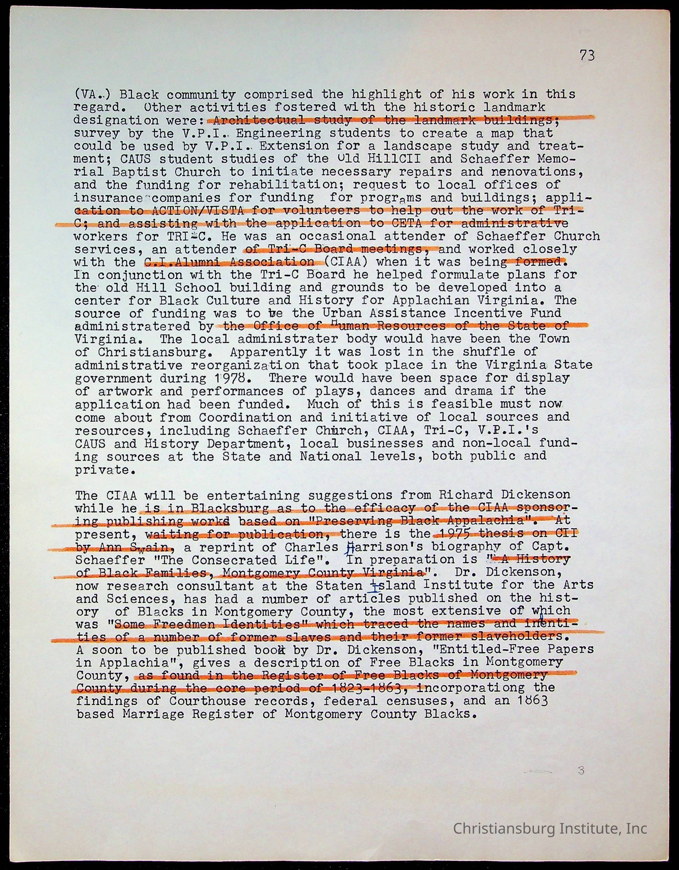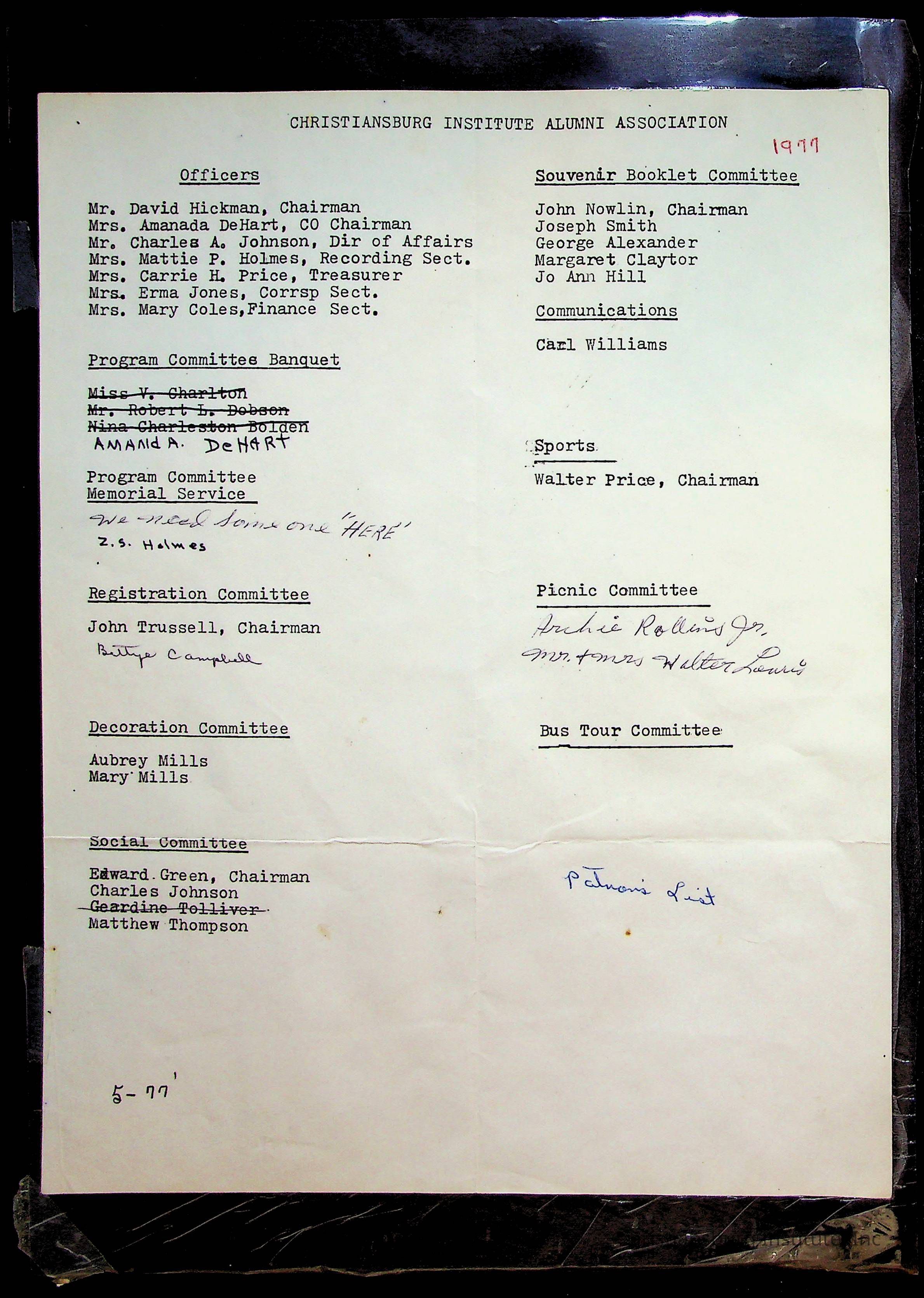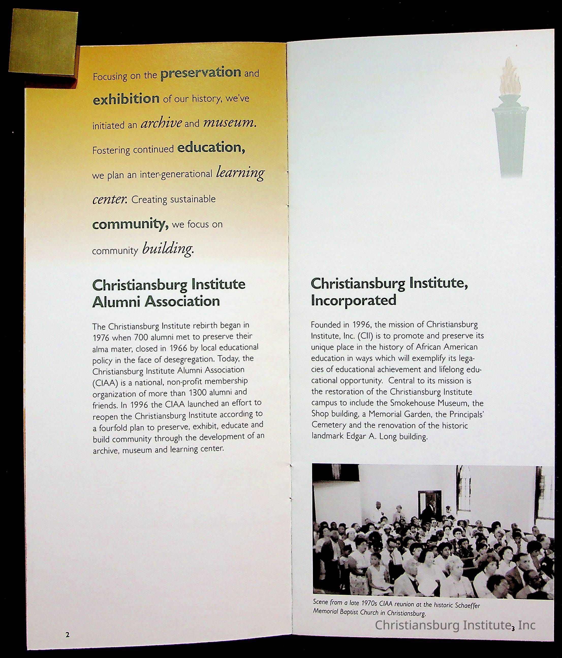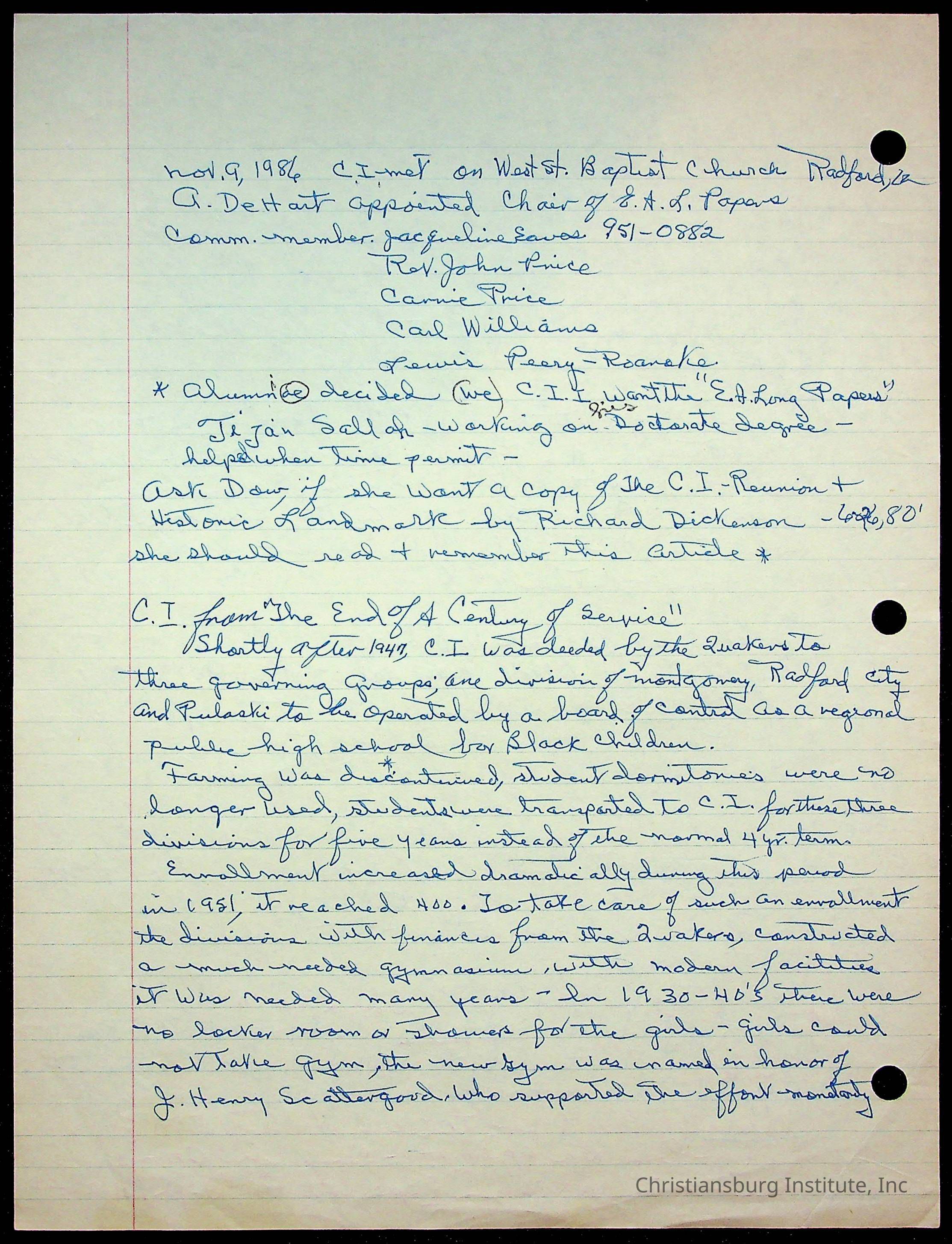 An archive of research material about Christiansburg Institute Alumni Association dated 1976-1999 complied by Amanda DeHart.