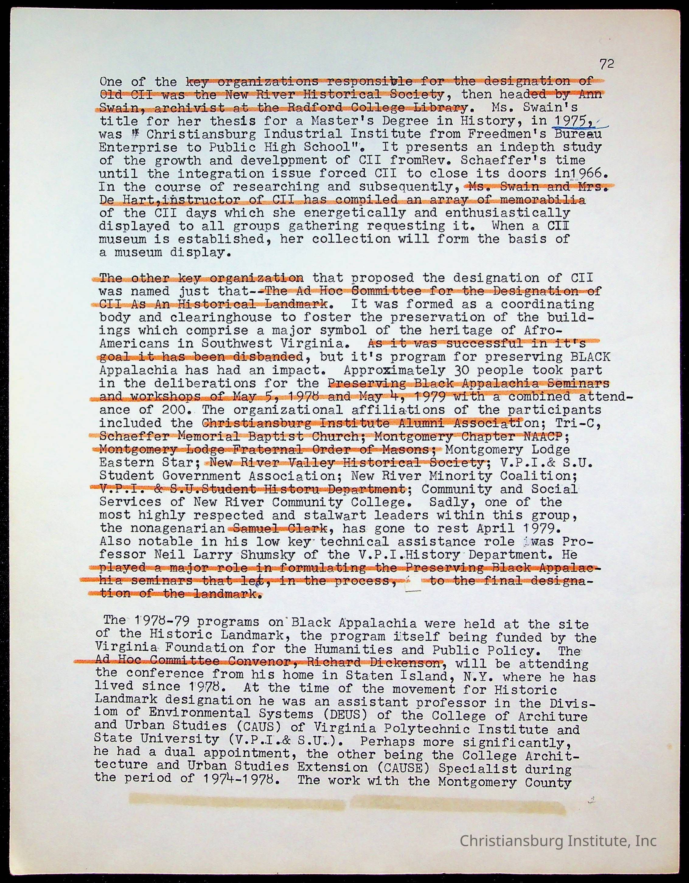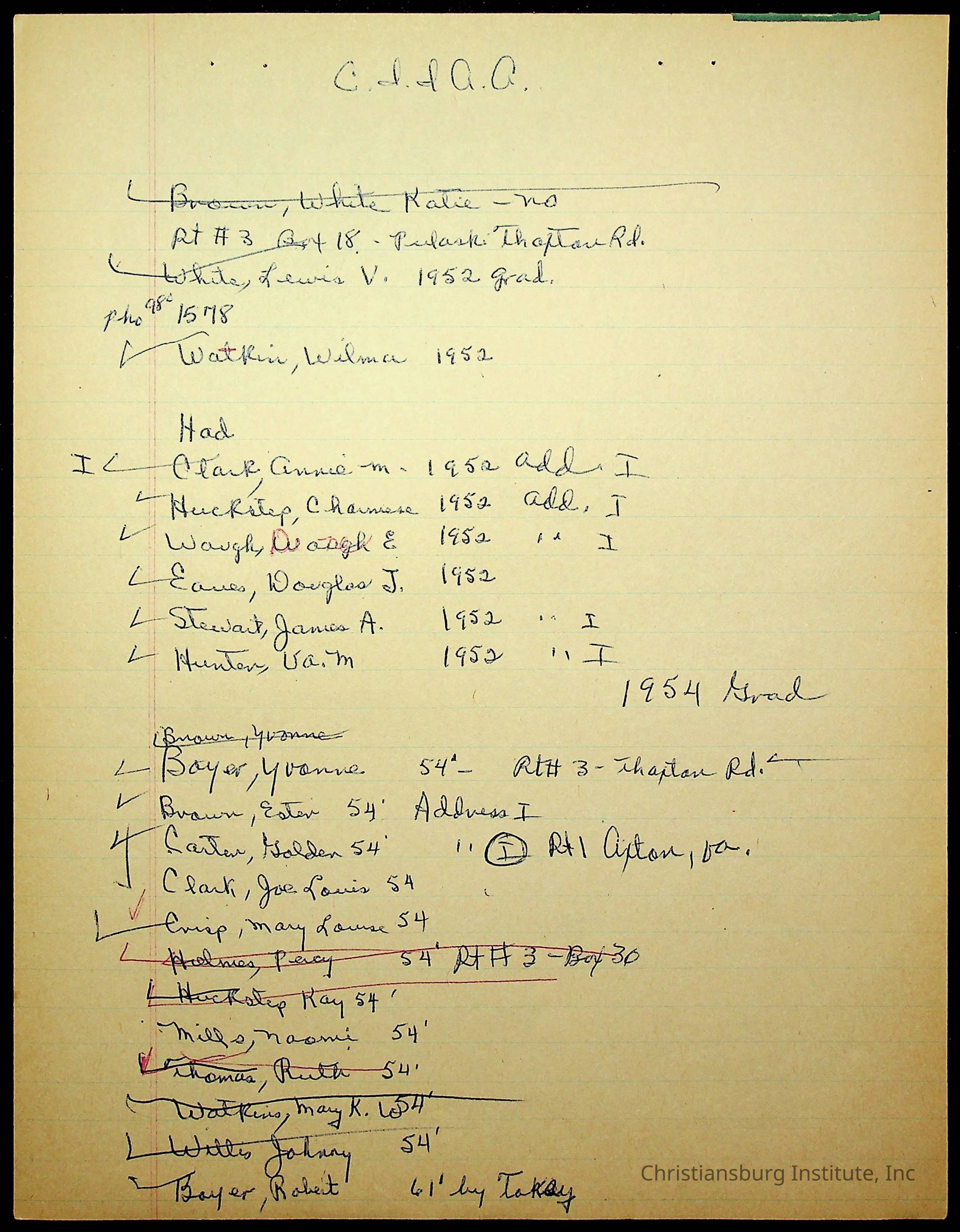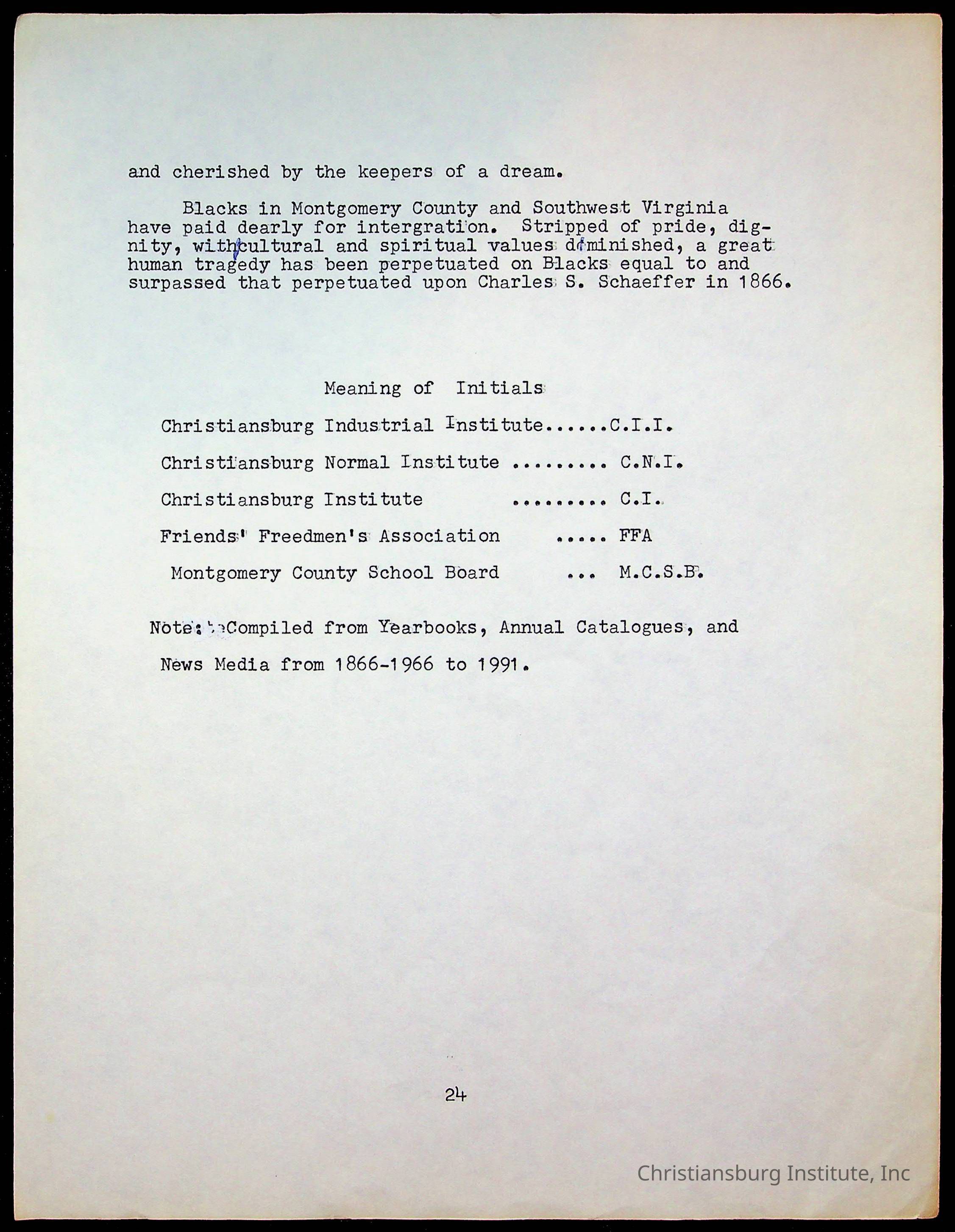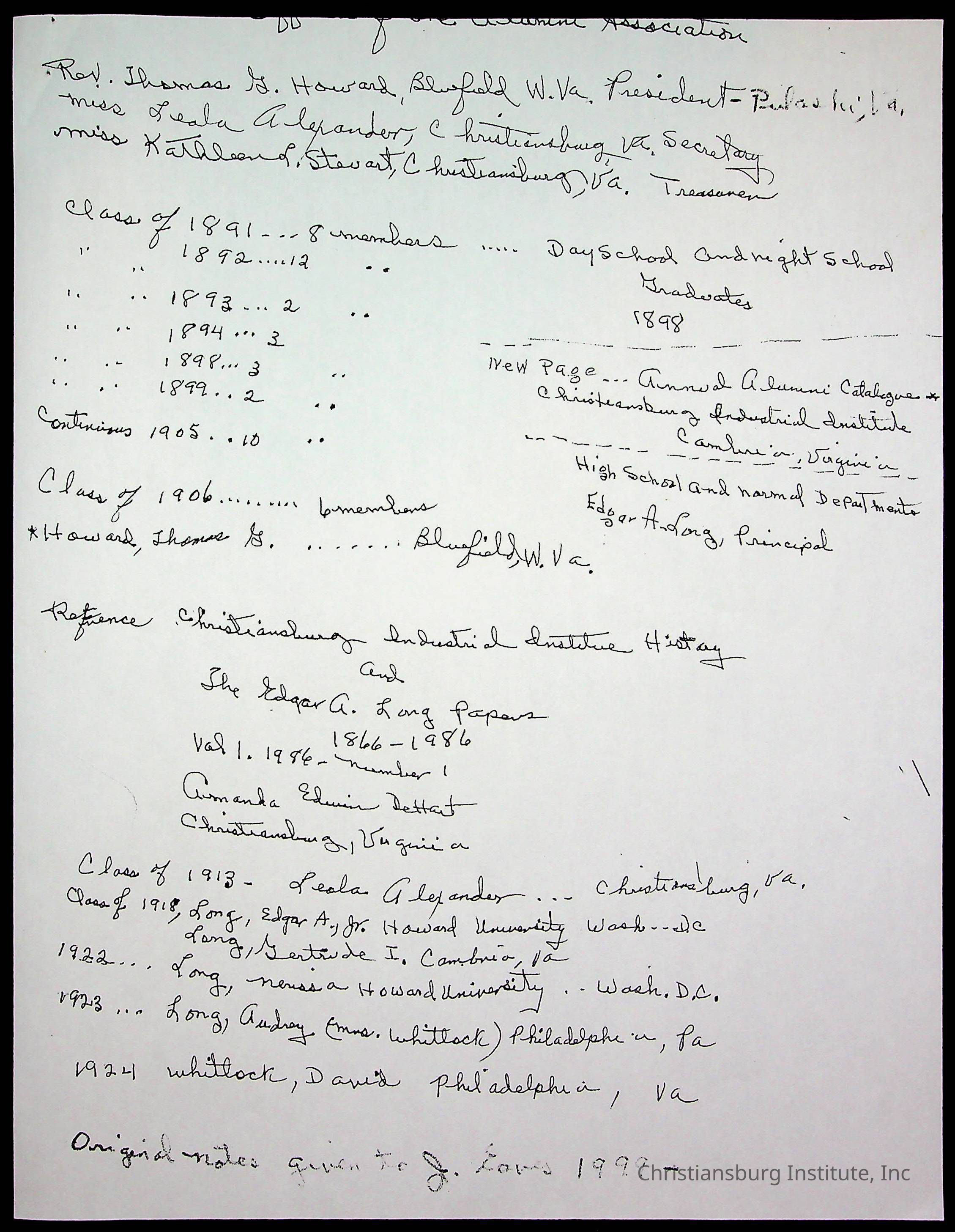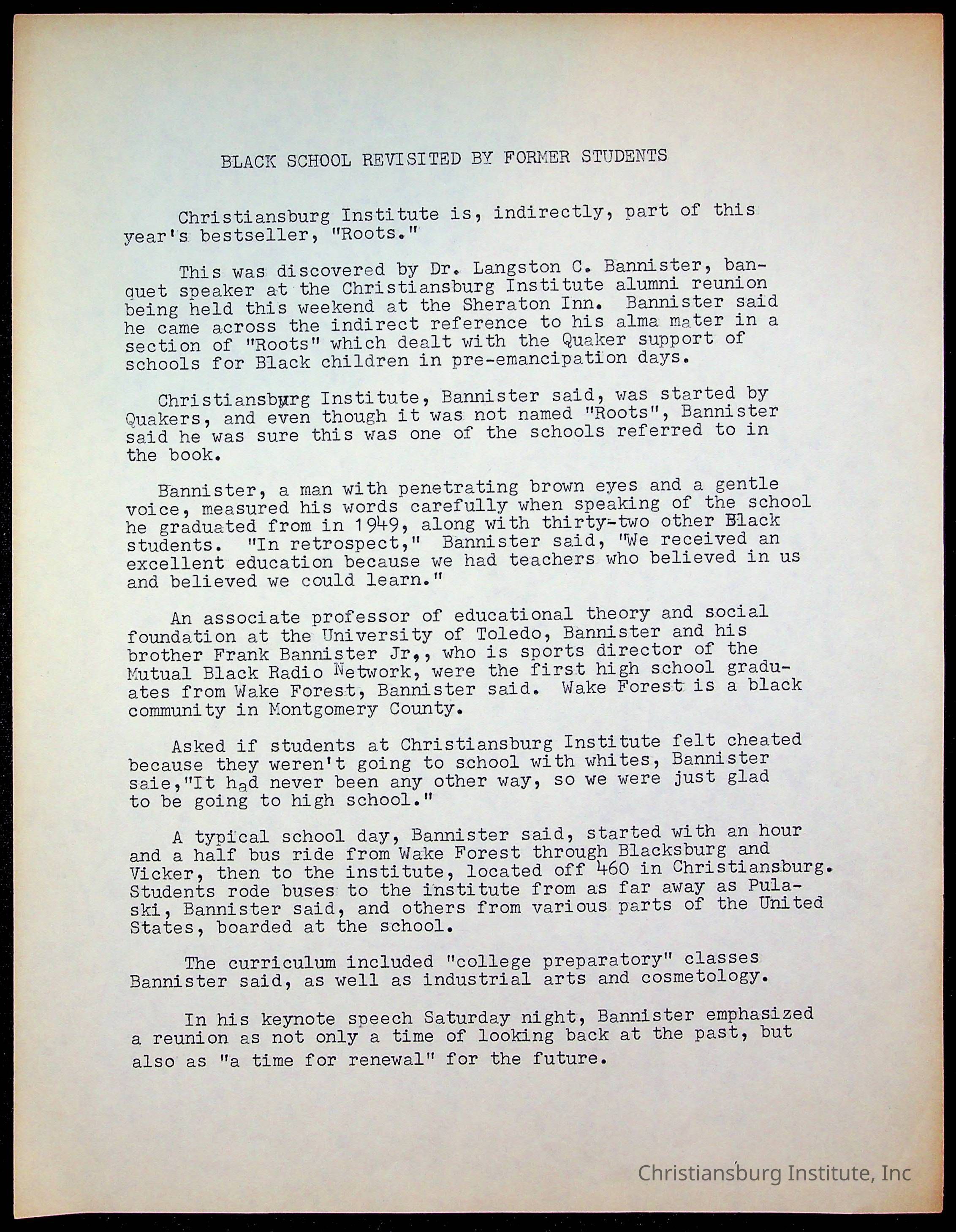 An archive of research material about Christiansburg Institute Alumni Association dated 1976-1999 complied by Amanda DeHart.
