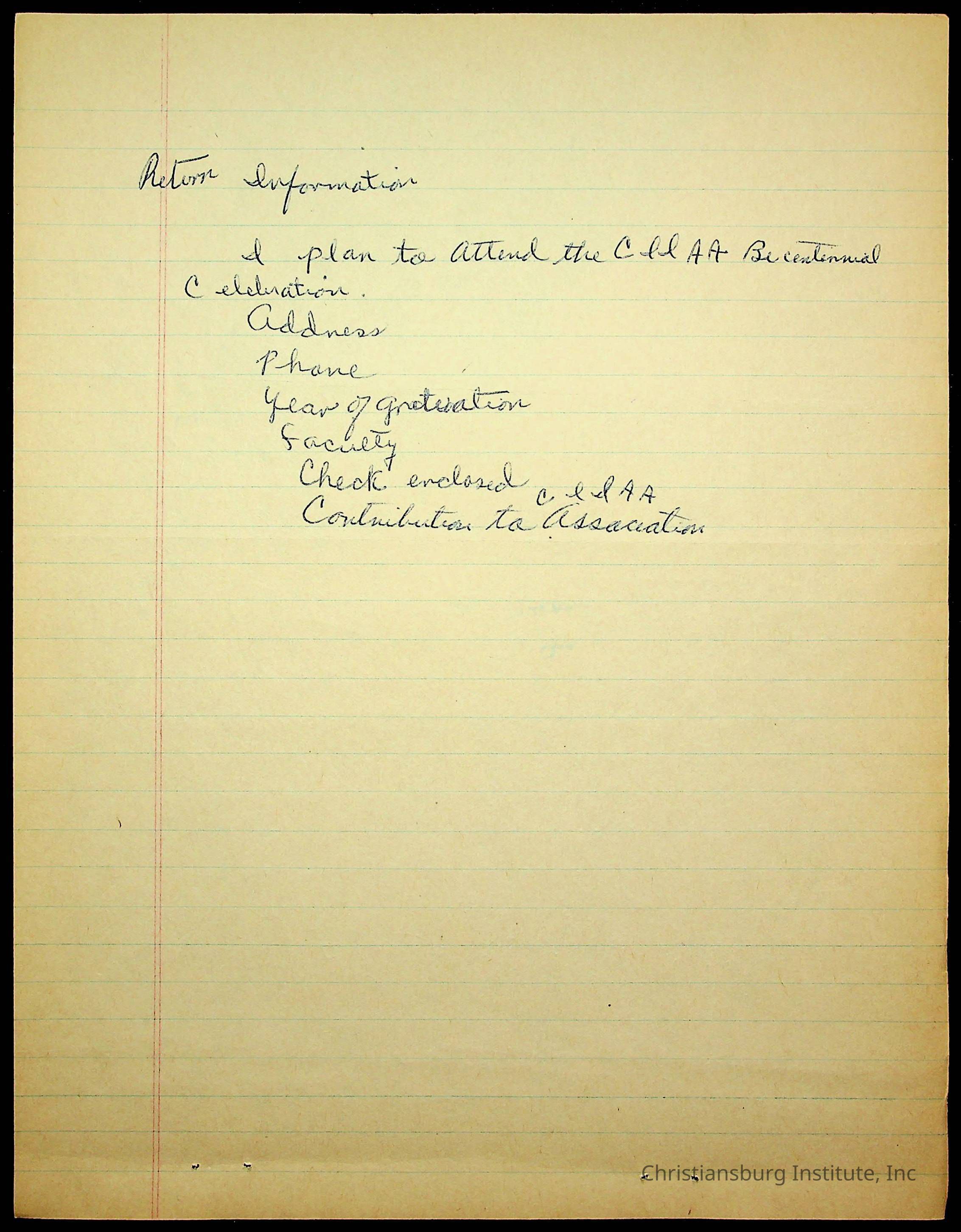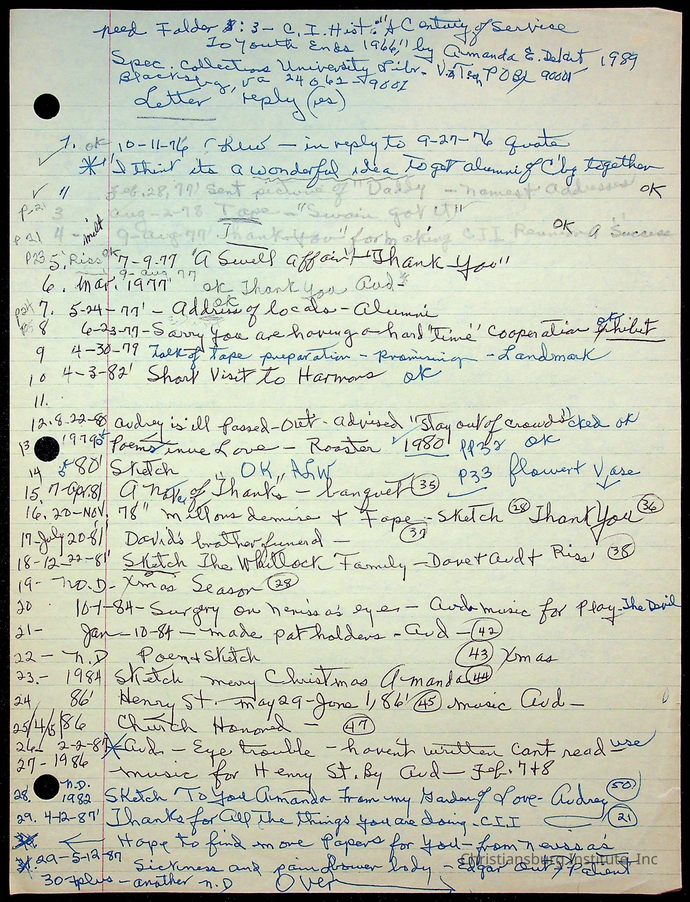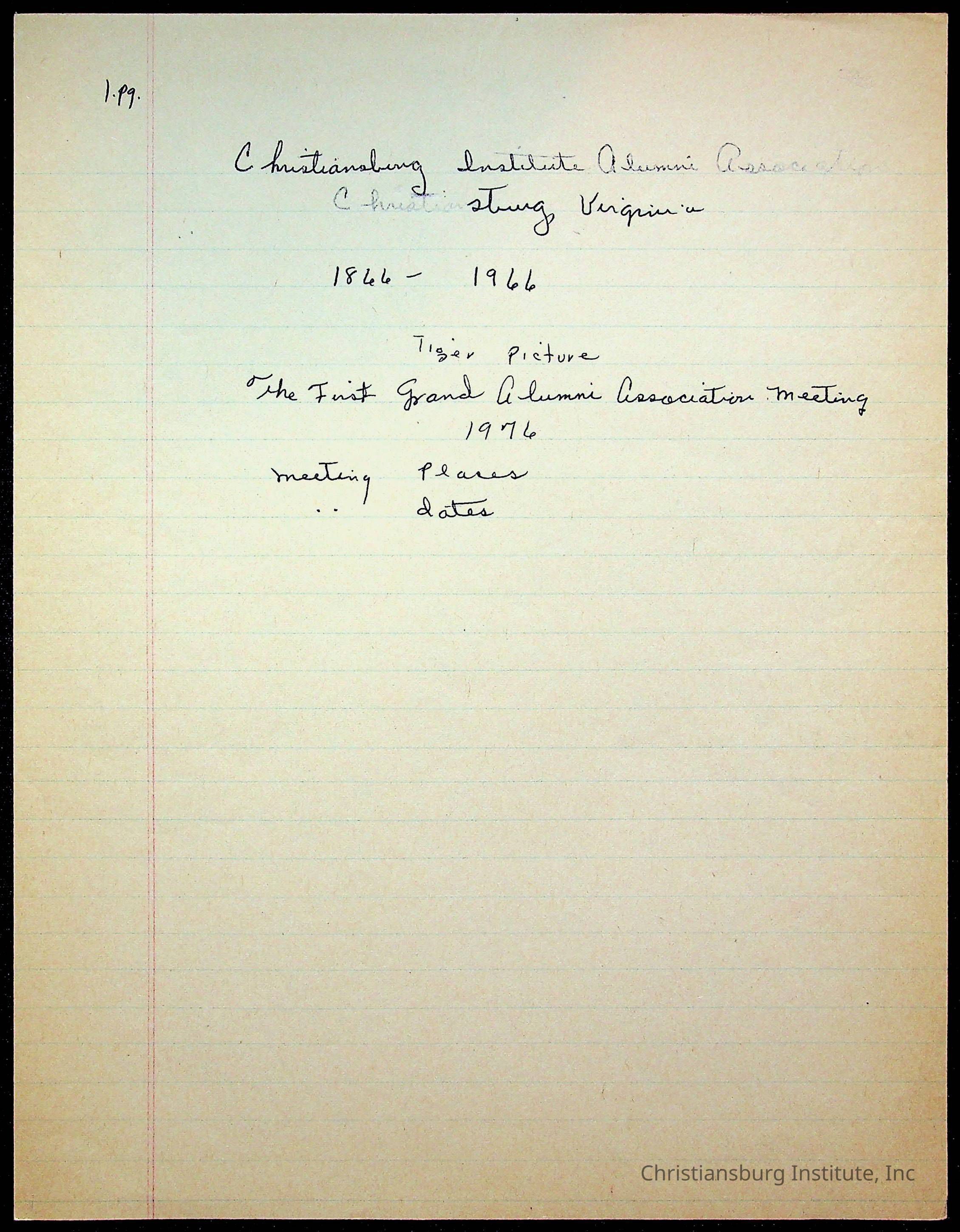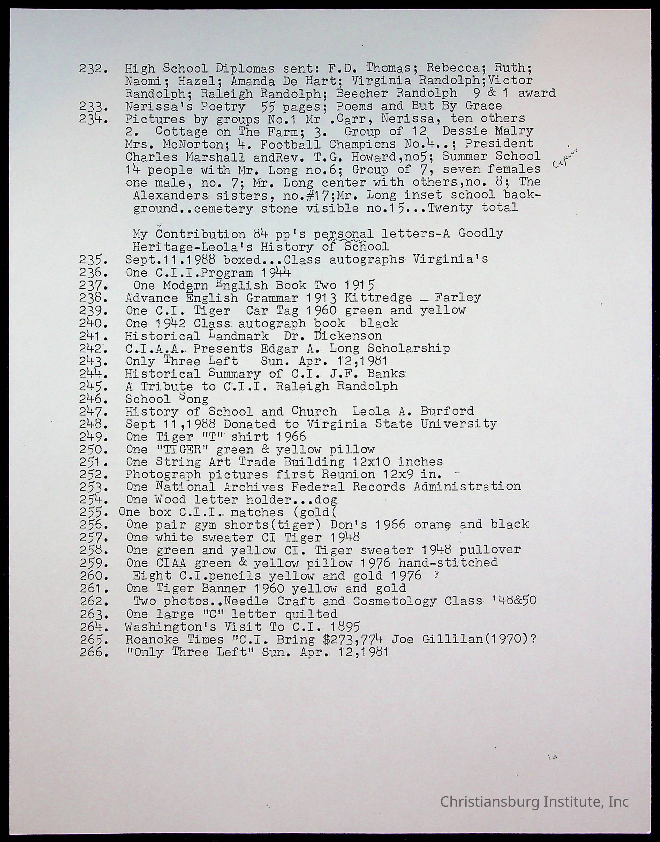 An archive of research material about Christiansburg Institute Alumni Association dated 1976-1999 complied by Amanda DeHart.