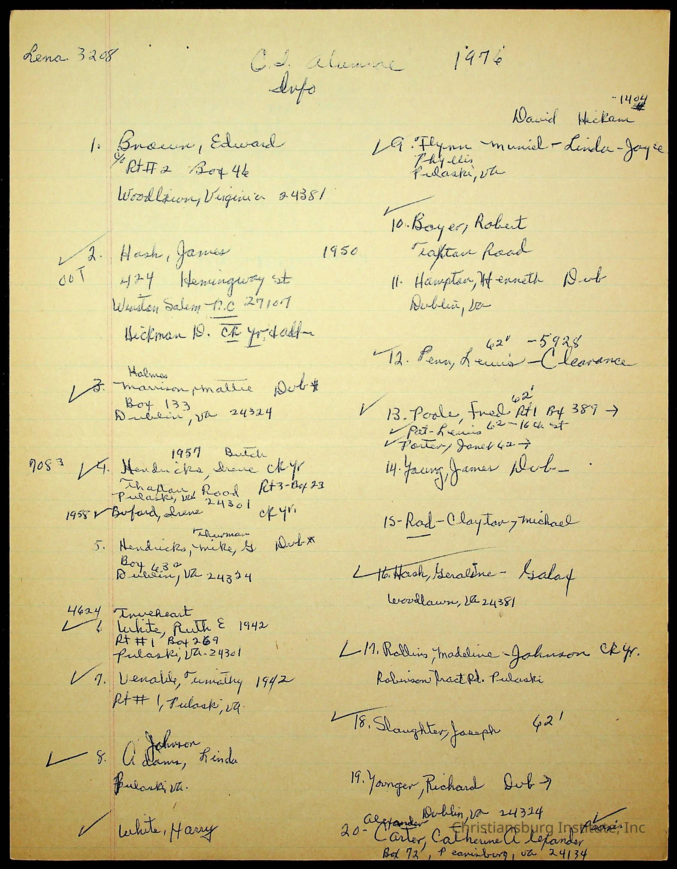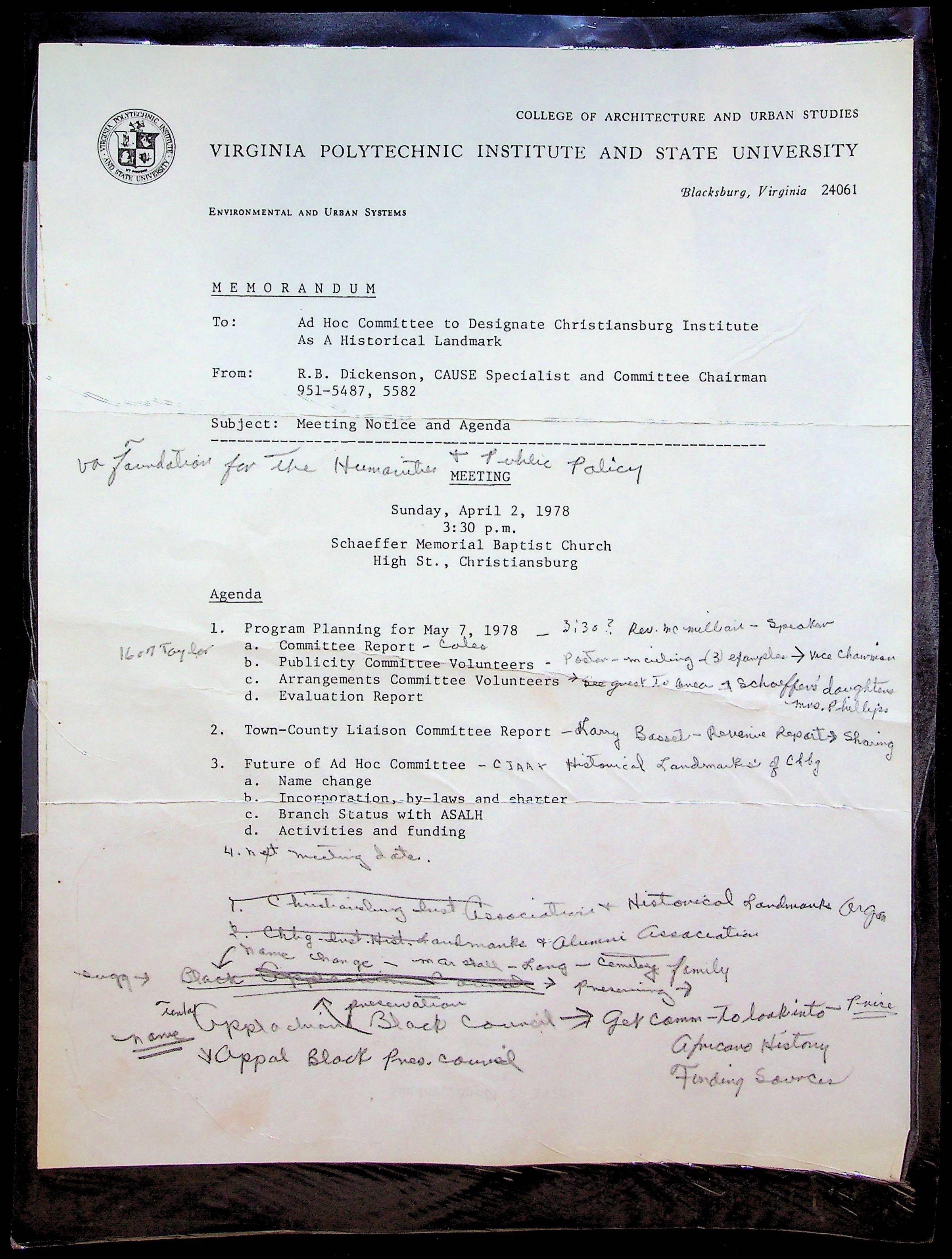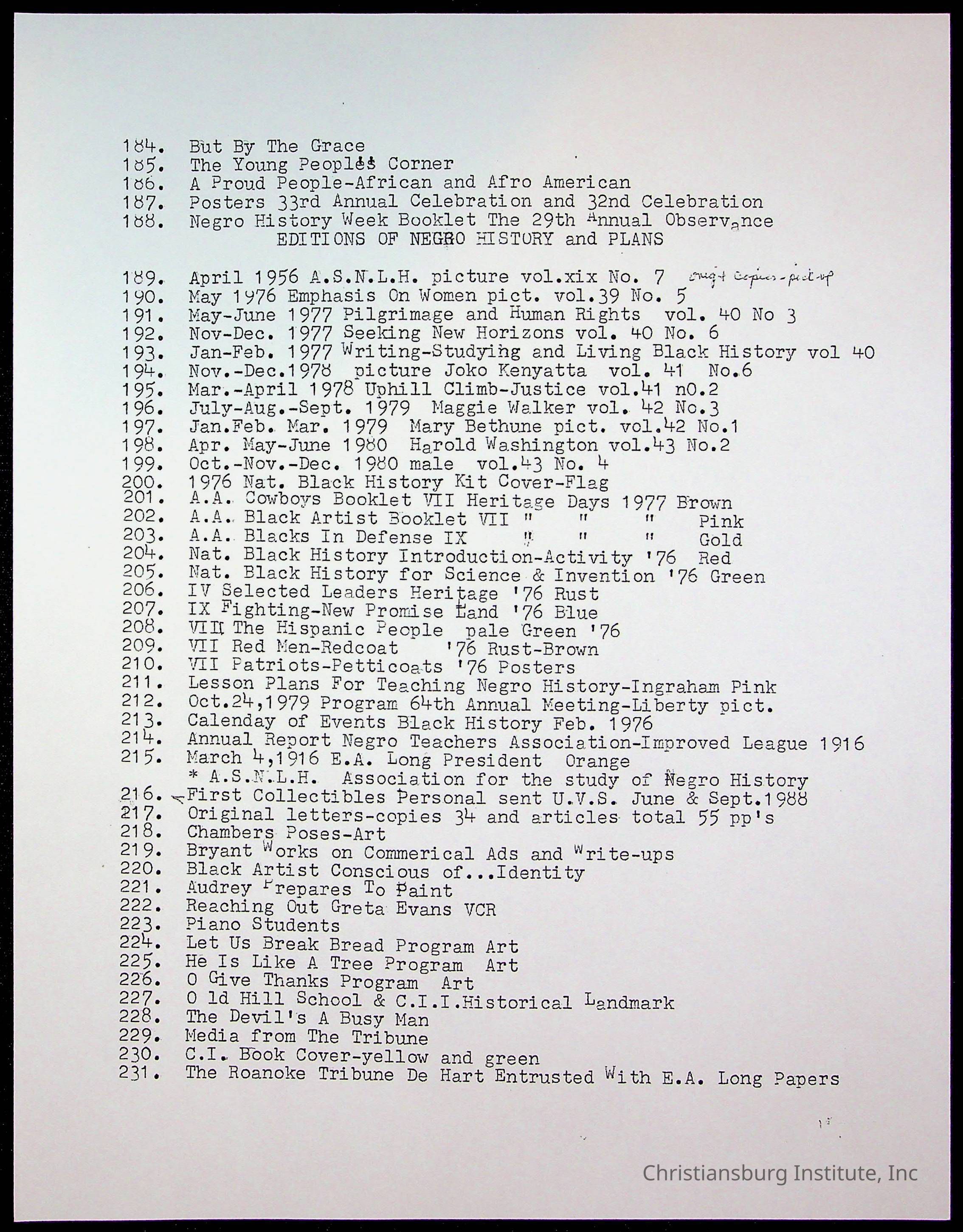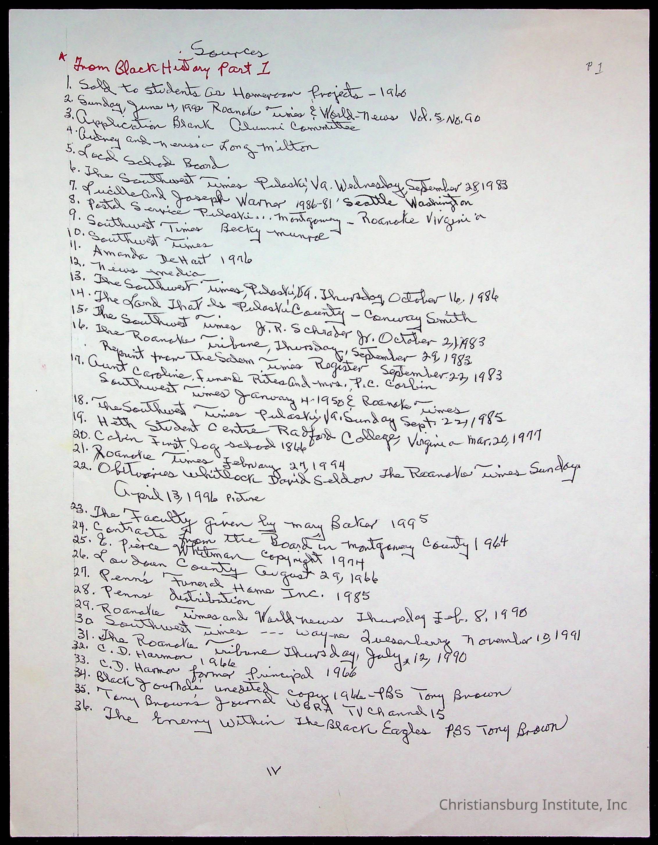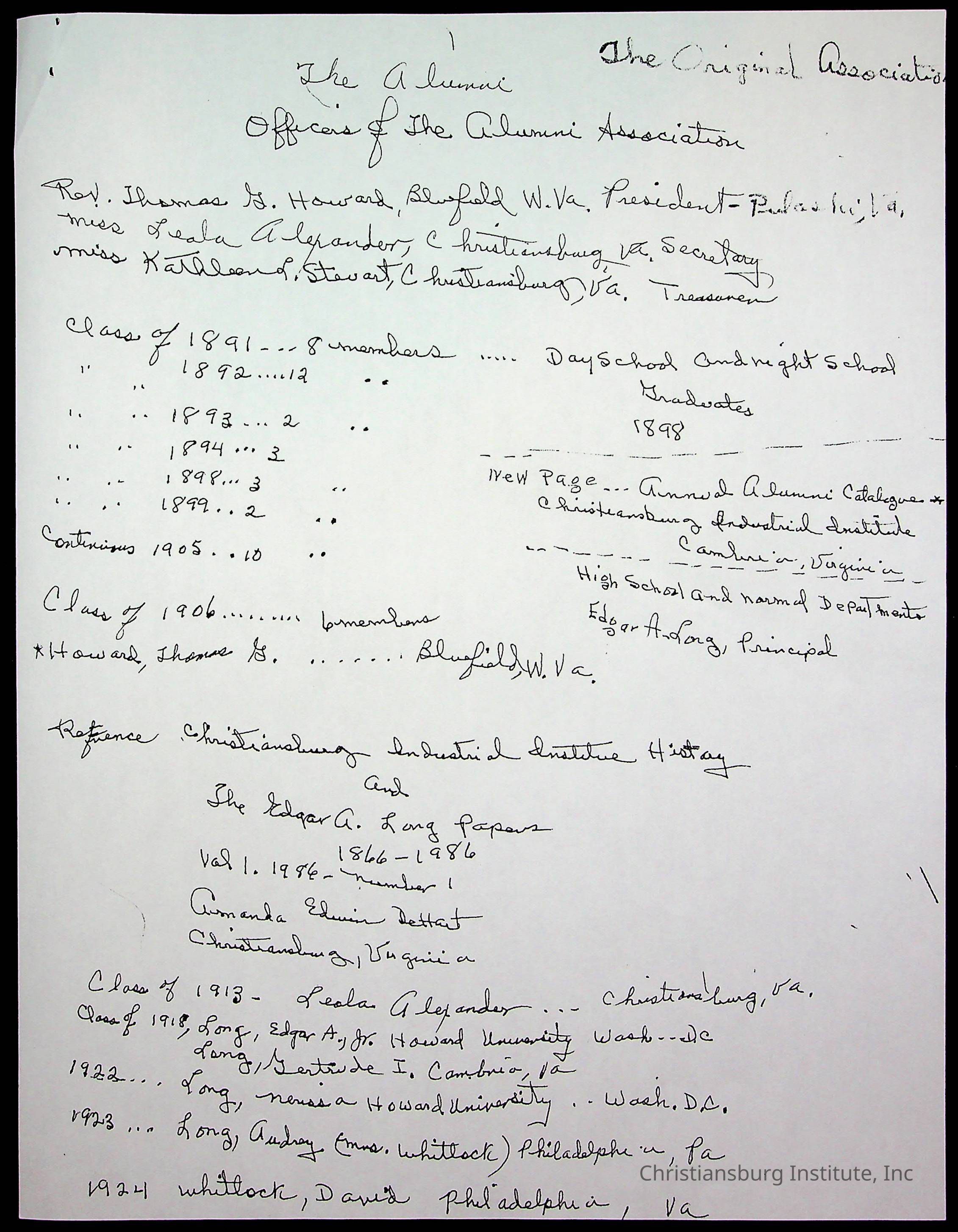 An archive of research material about Christiansburg Institute Alumni Association dated 1976-1999 complied by Amanda DeHart.