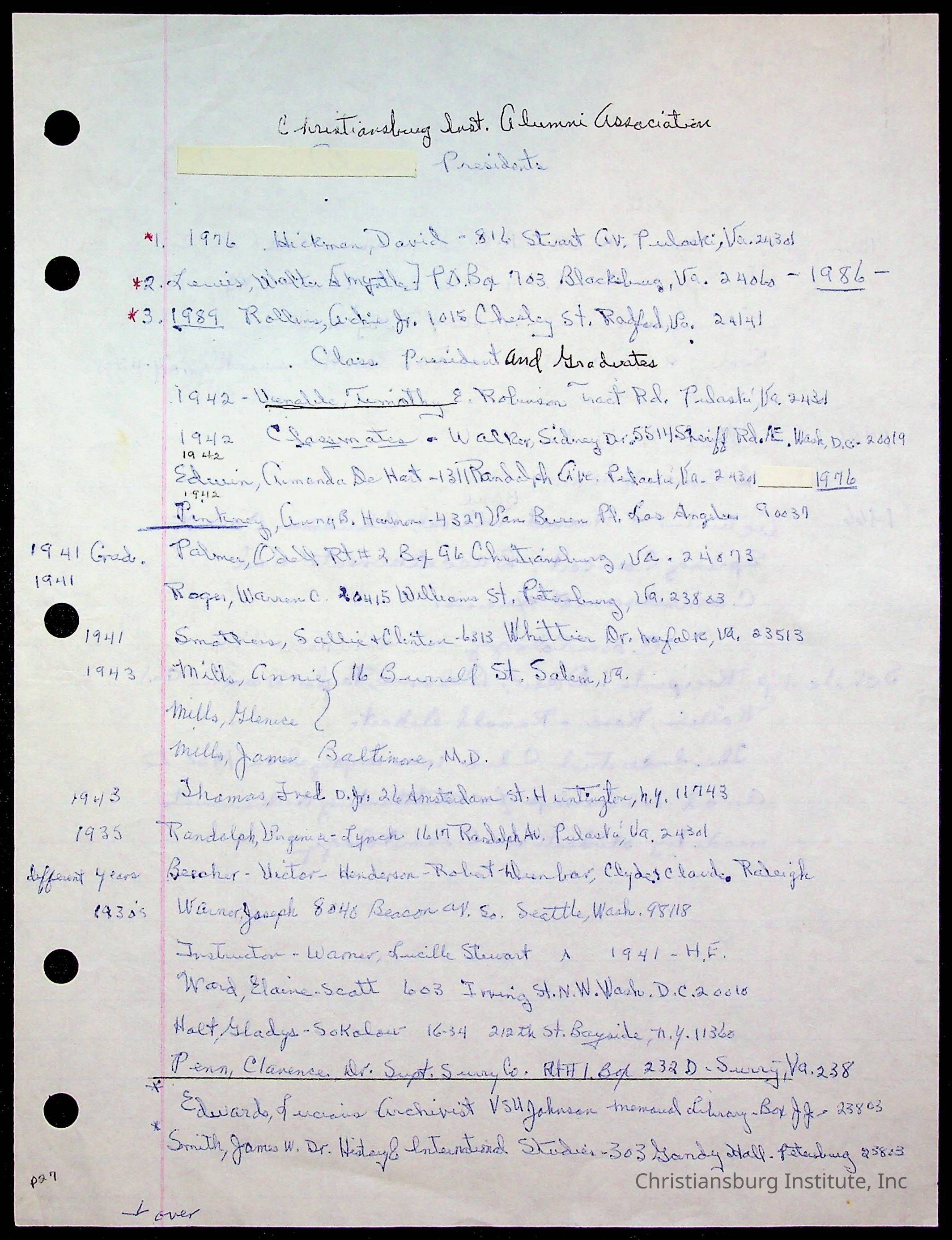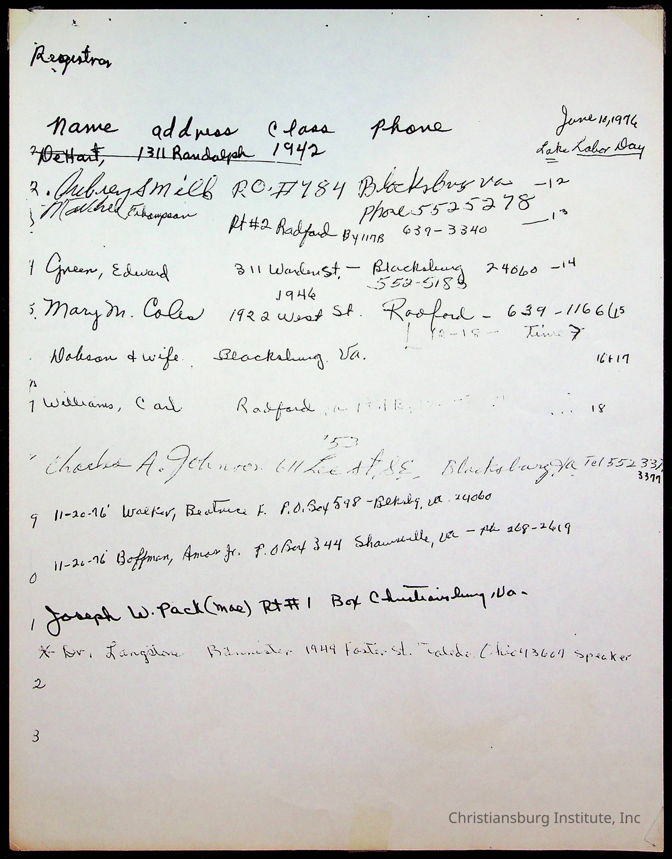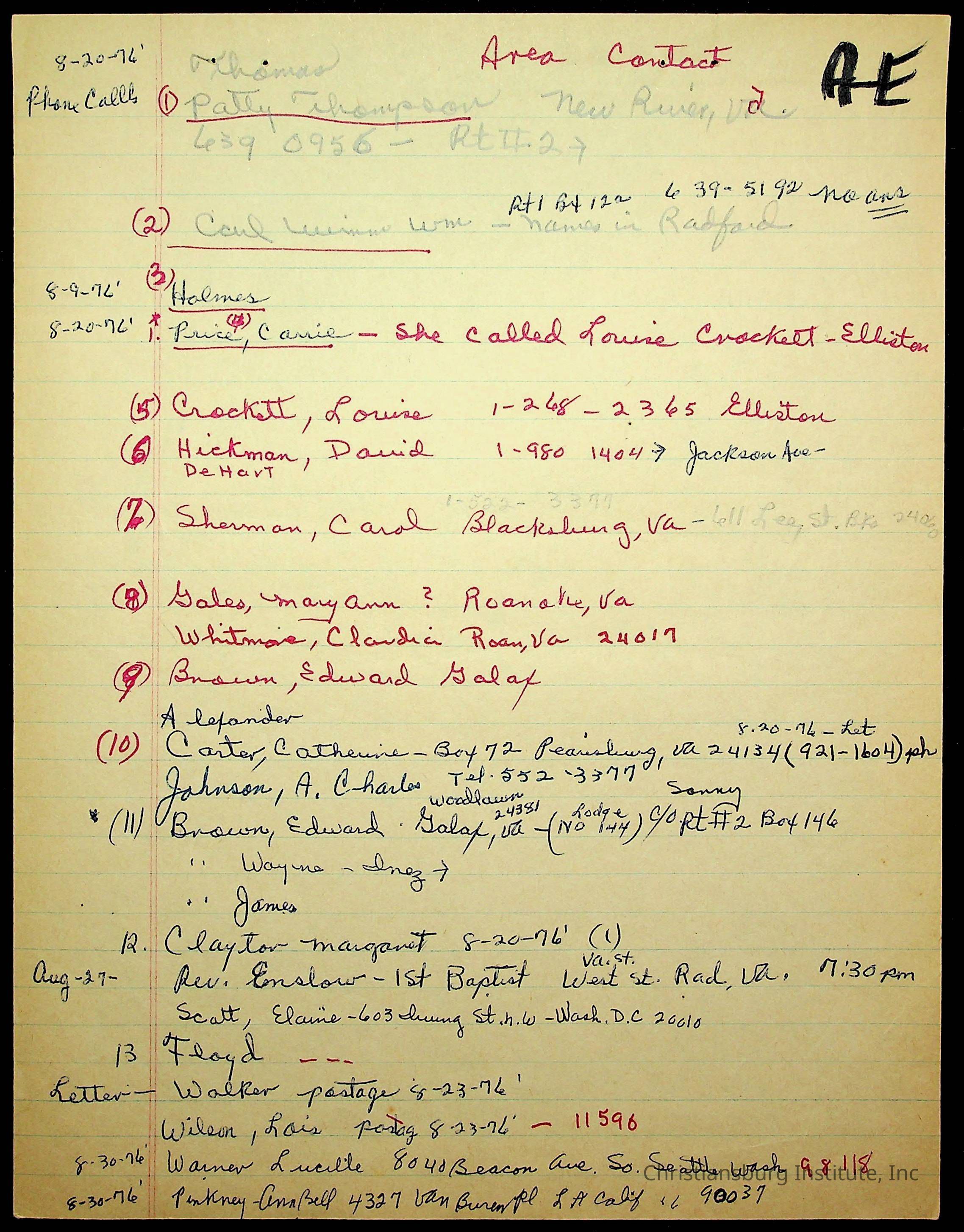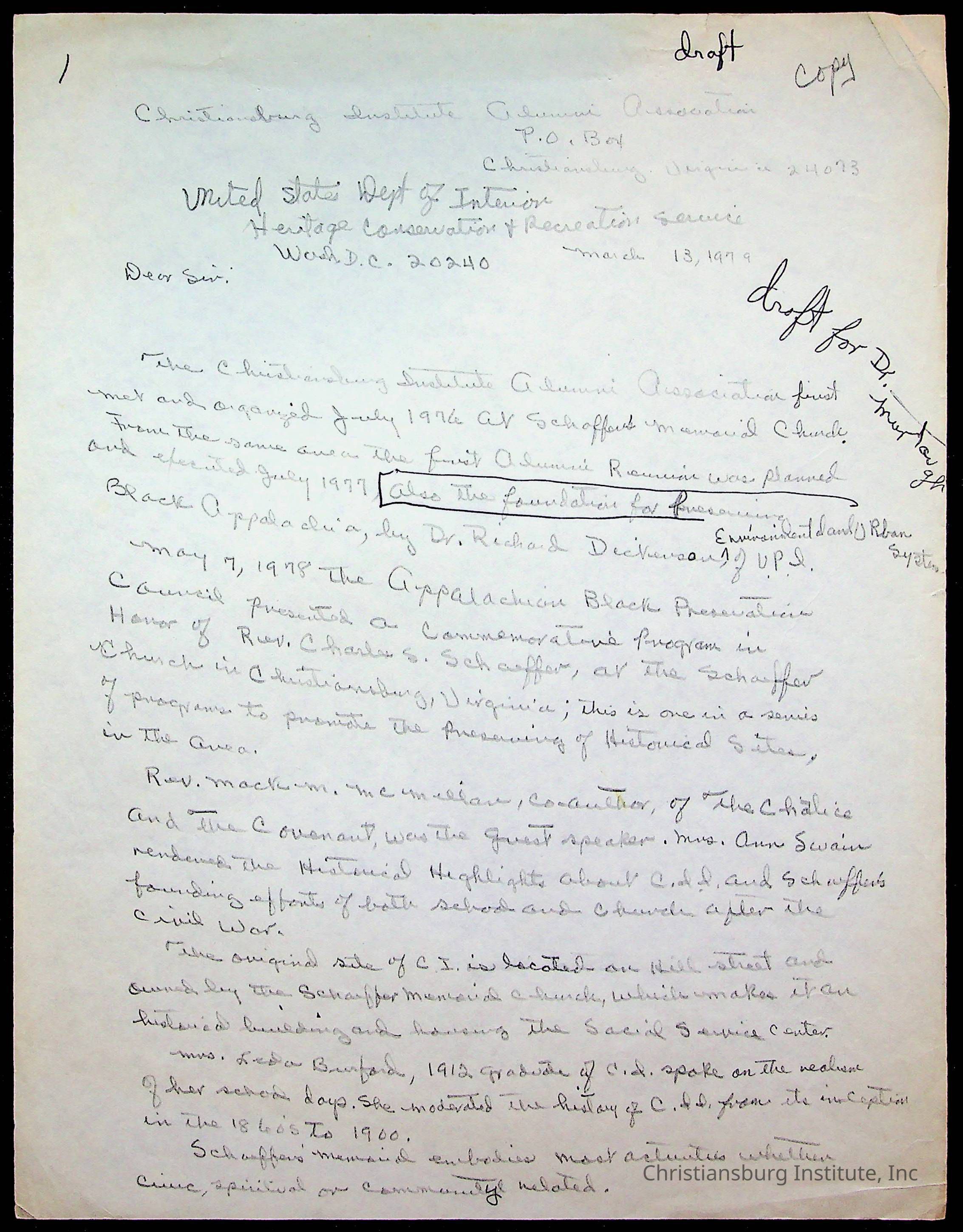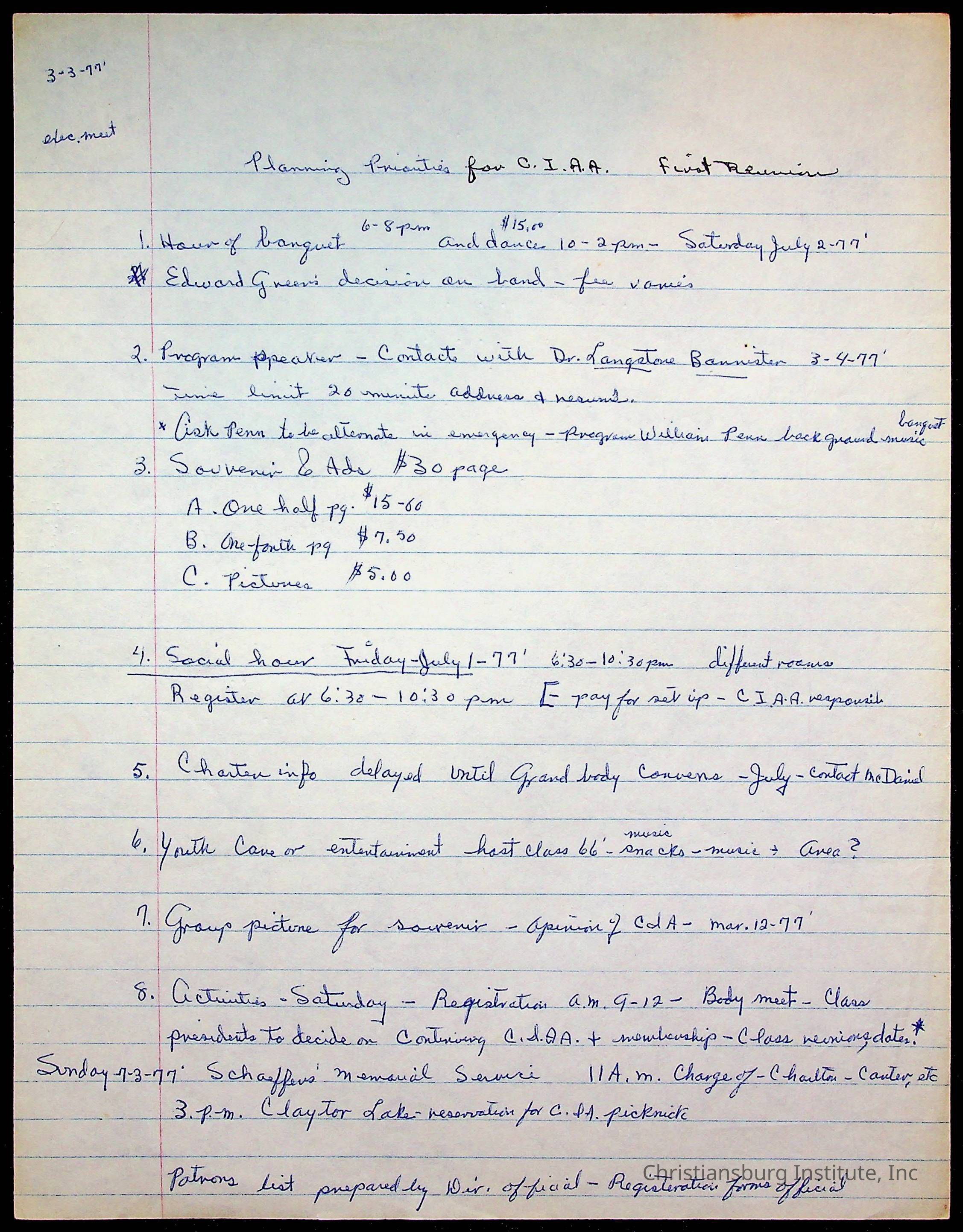 An archive of research material about Christiansburg Institute Alumni Association dated 1976-1999 complied by Amanda DeHart.