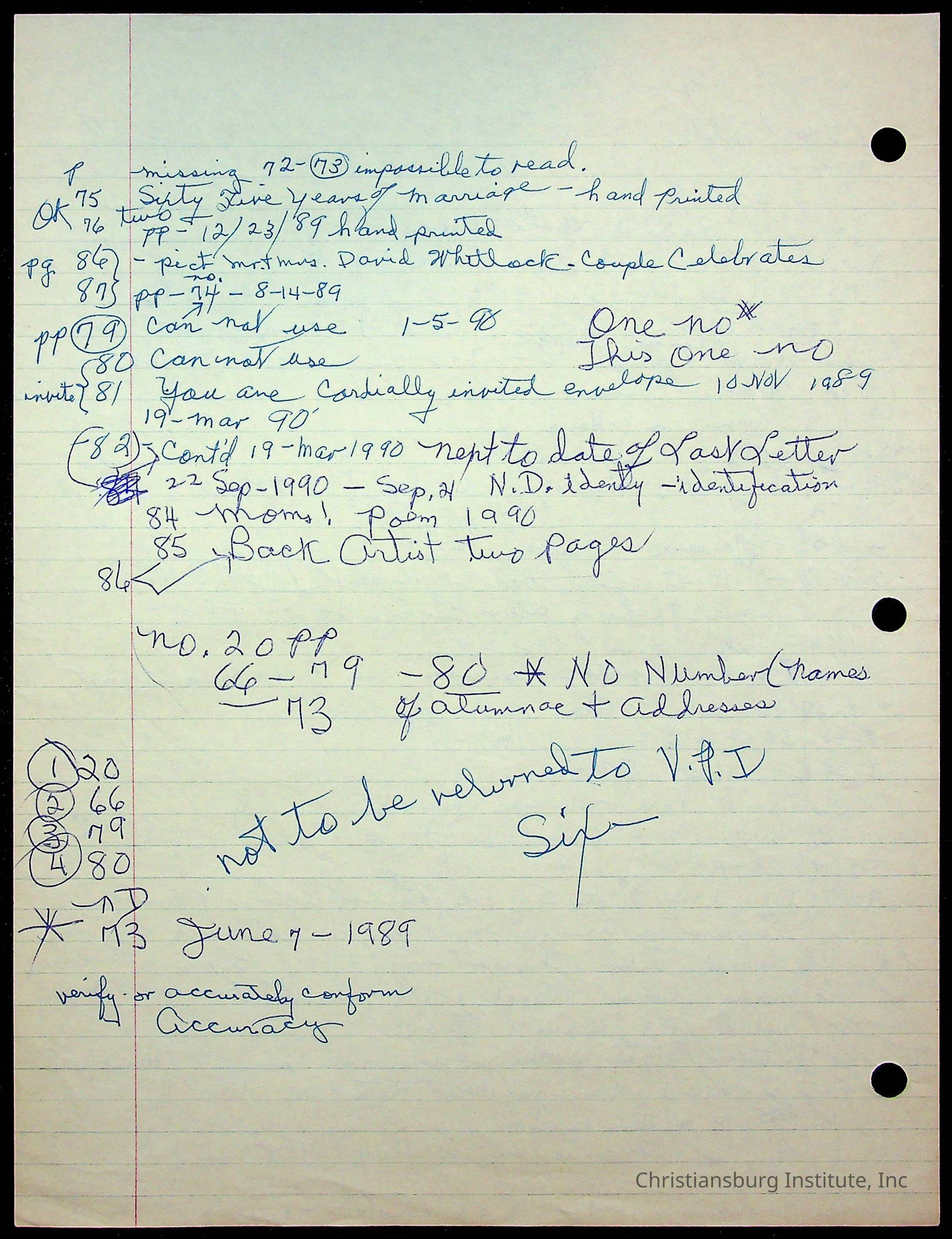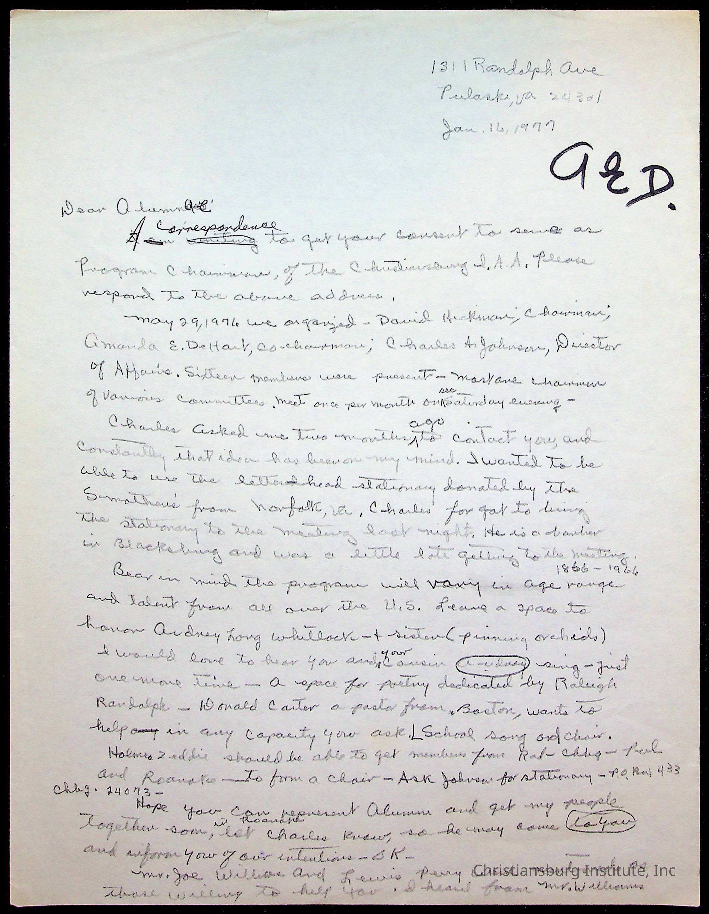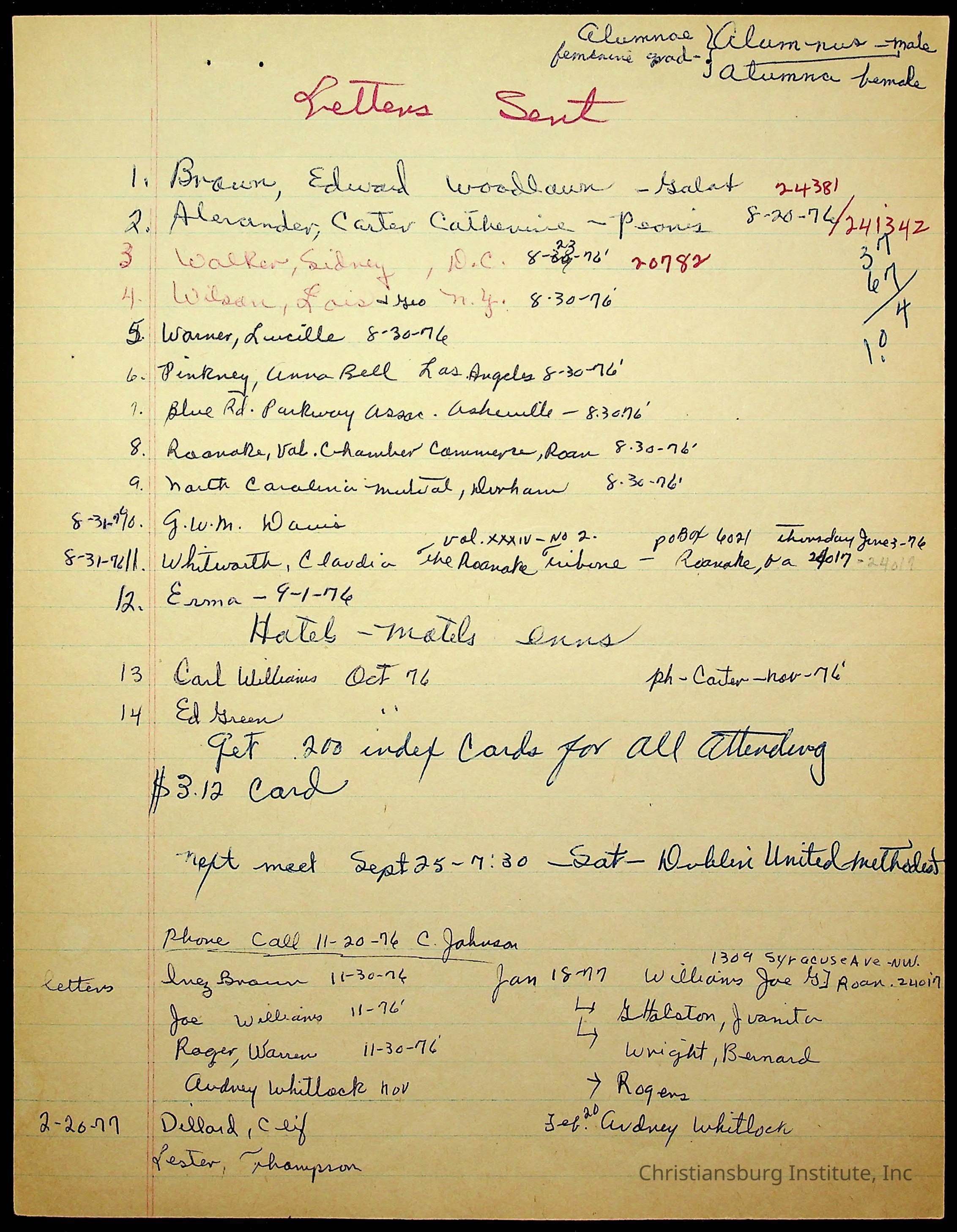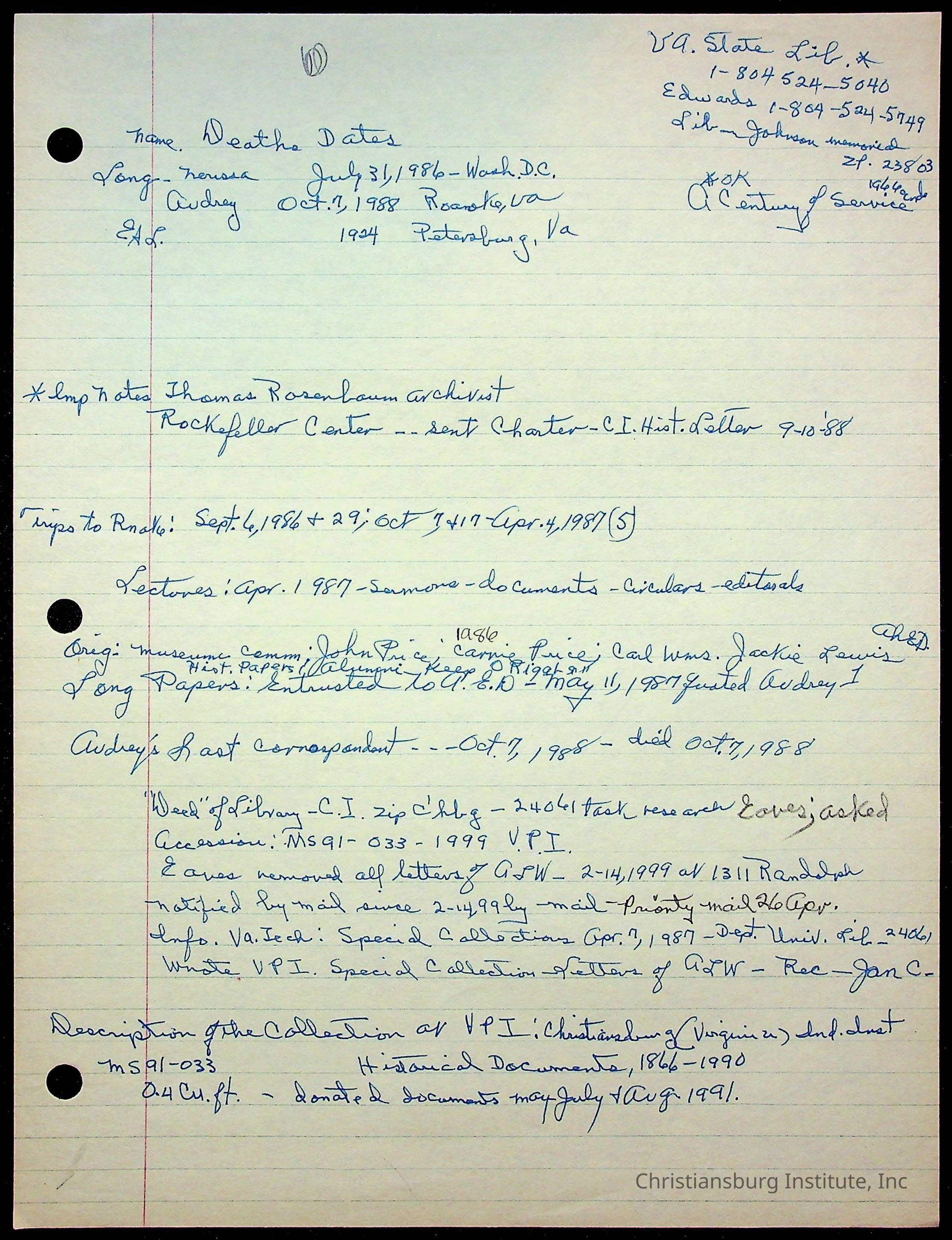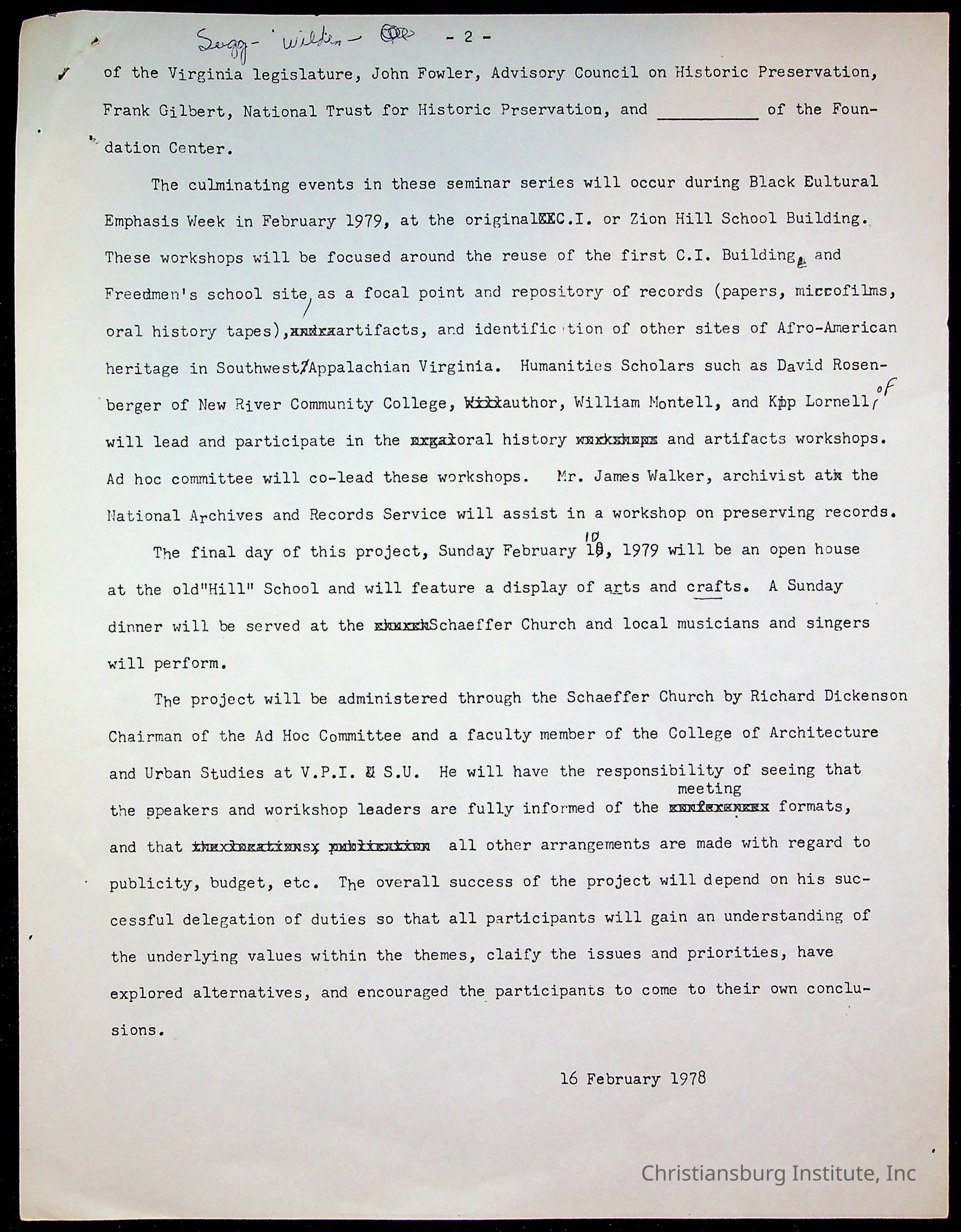 An archive of research material about Christiansburg Institute Alumni Association dated 1976-1999 complied by Amanda DeHart.