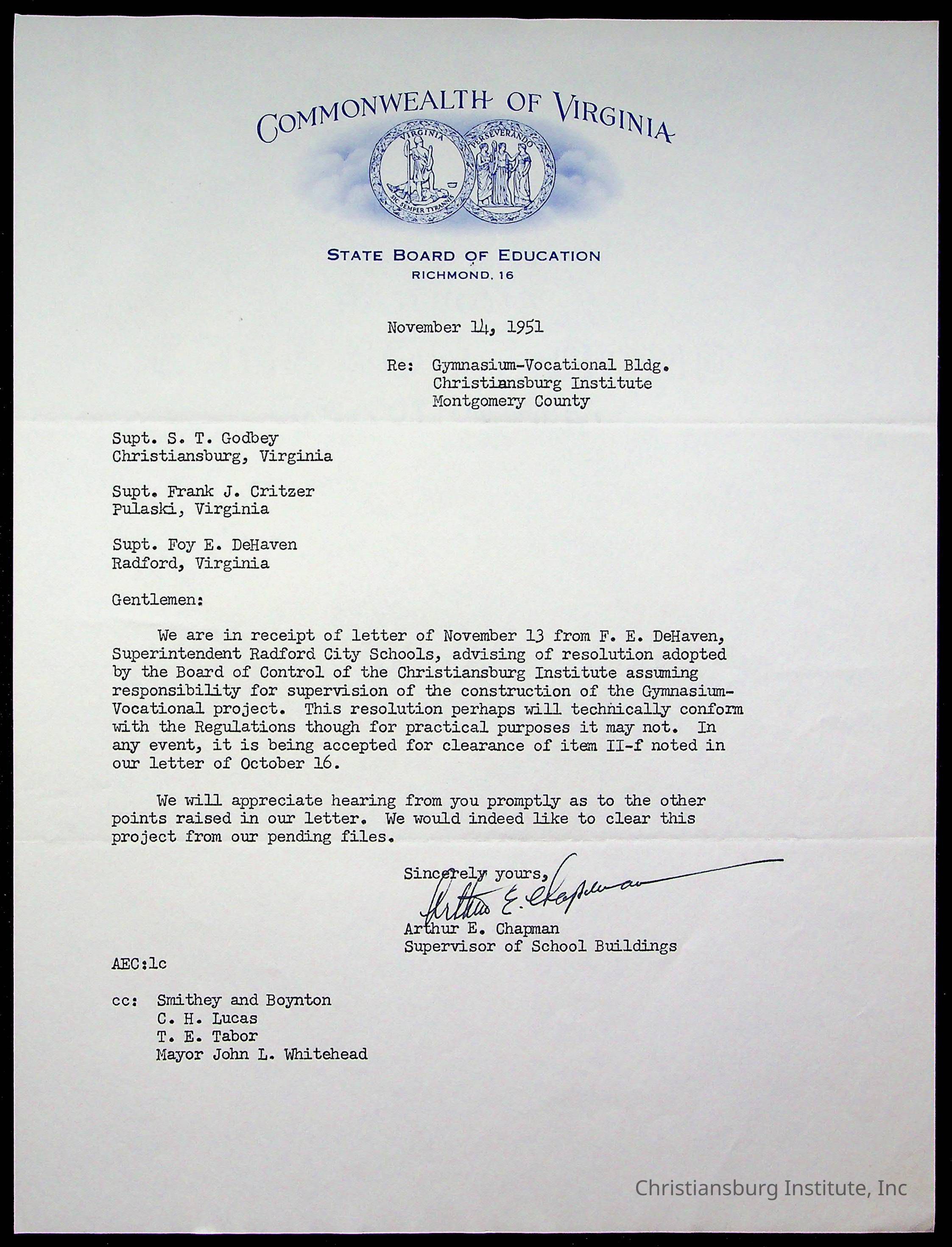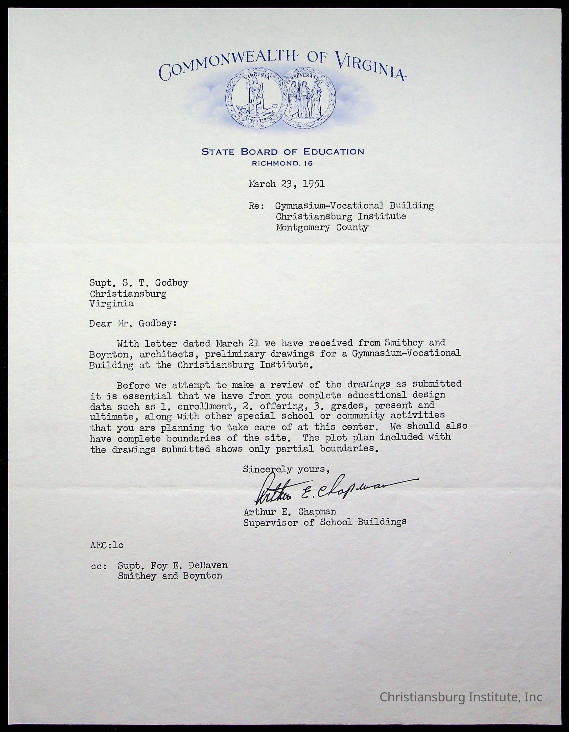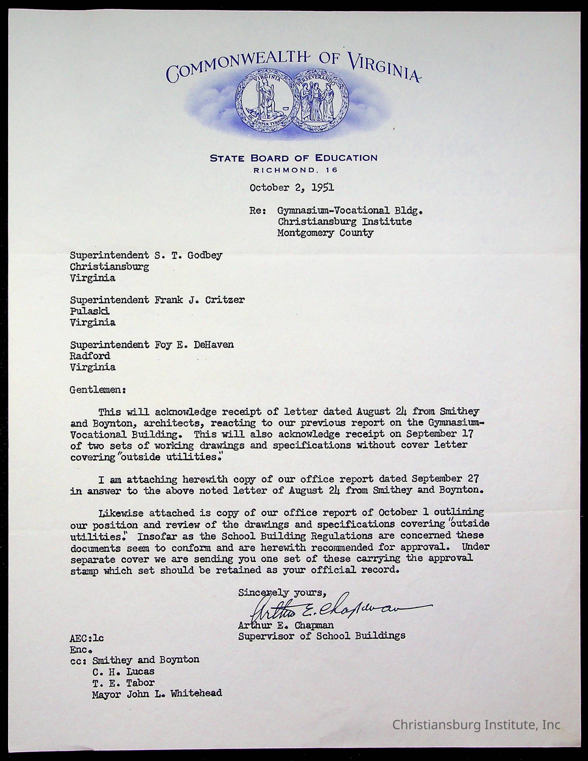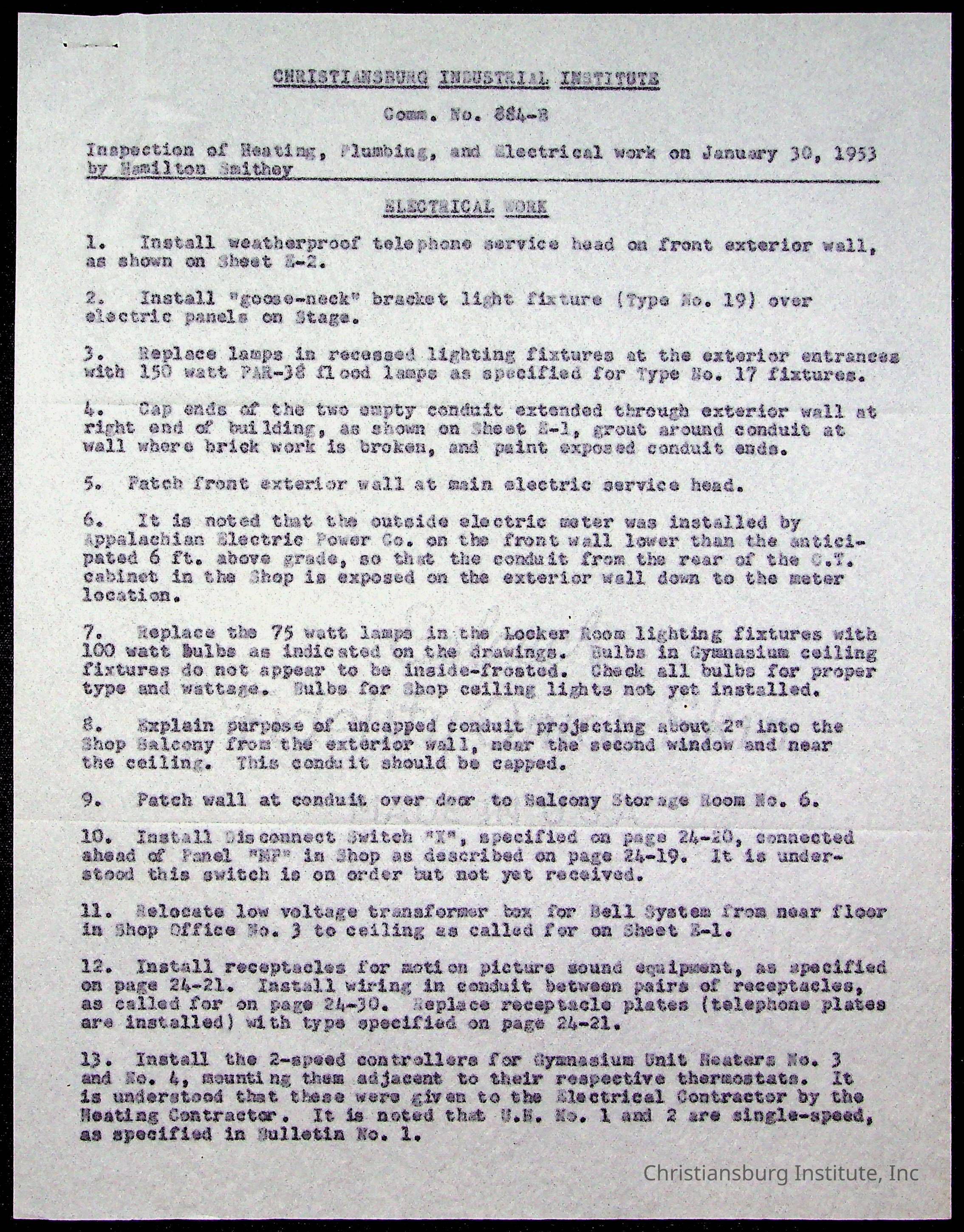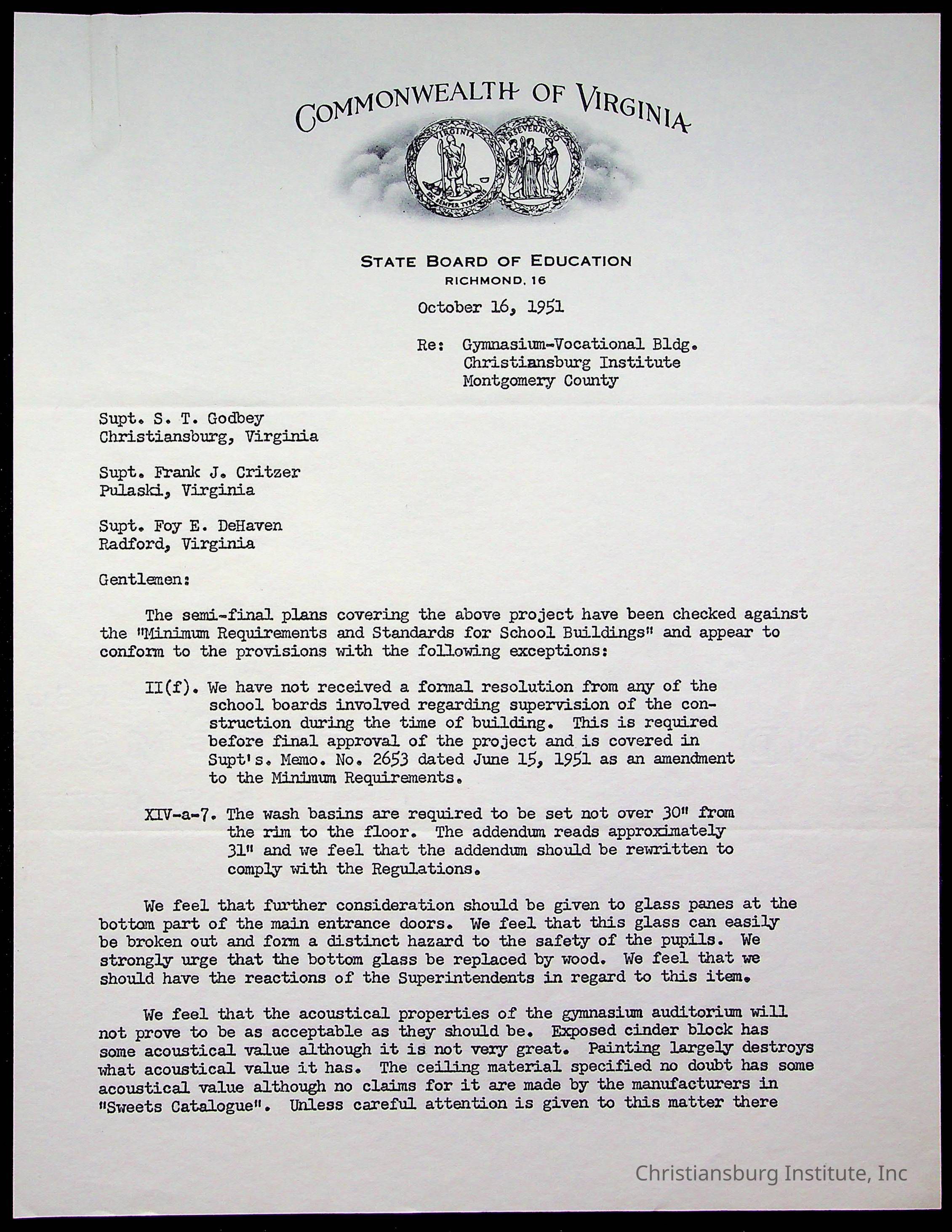 Christiansburg Institute Facility Documents