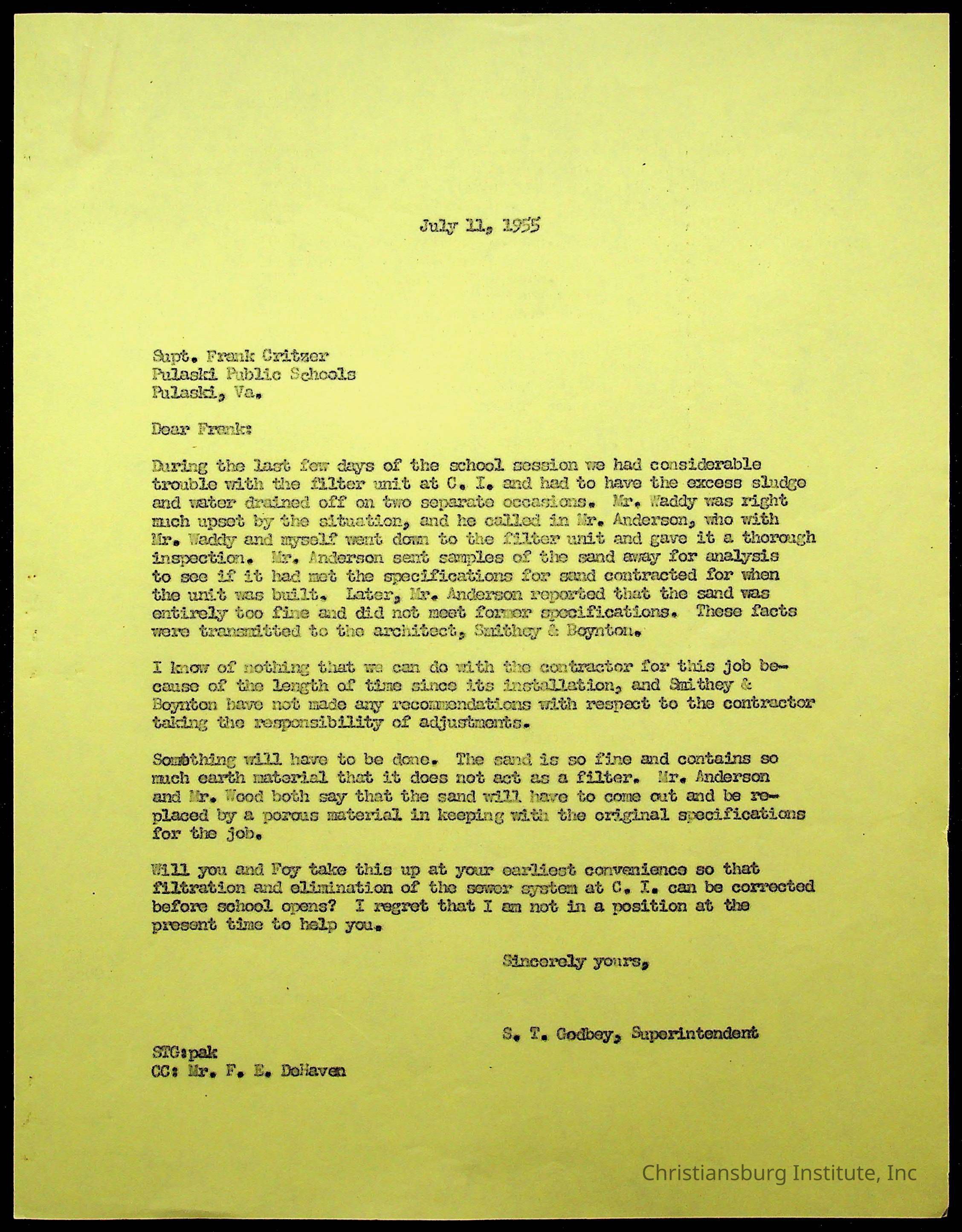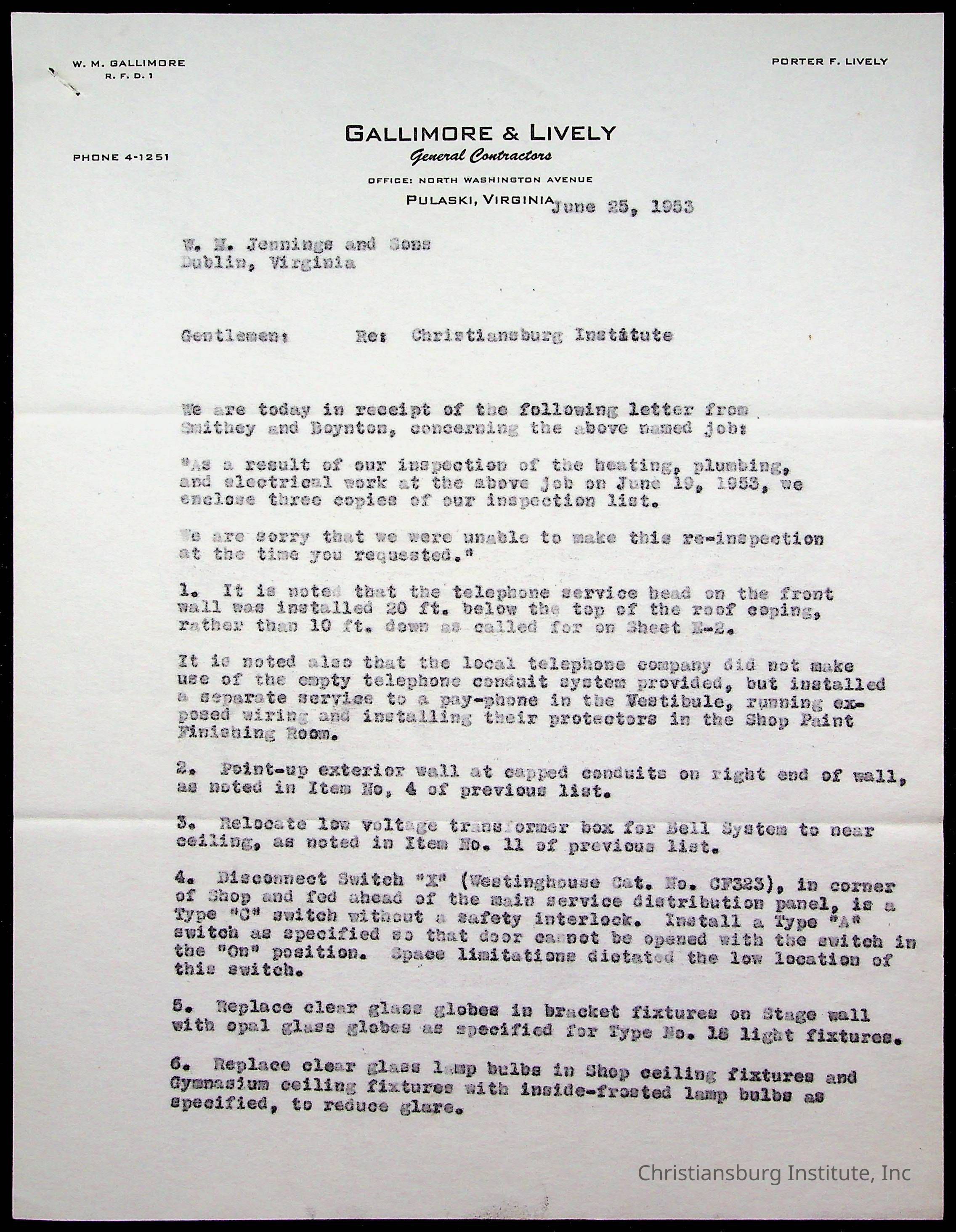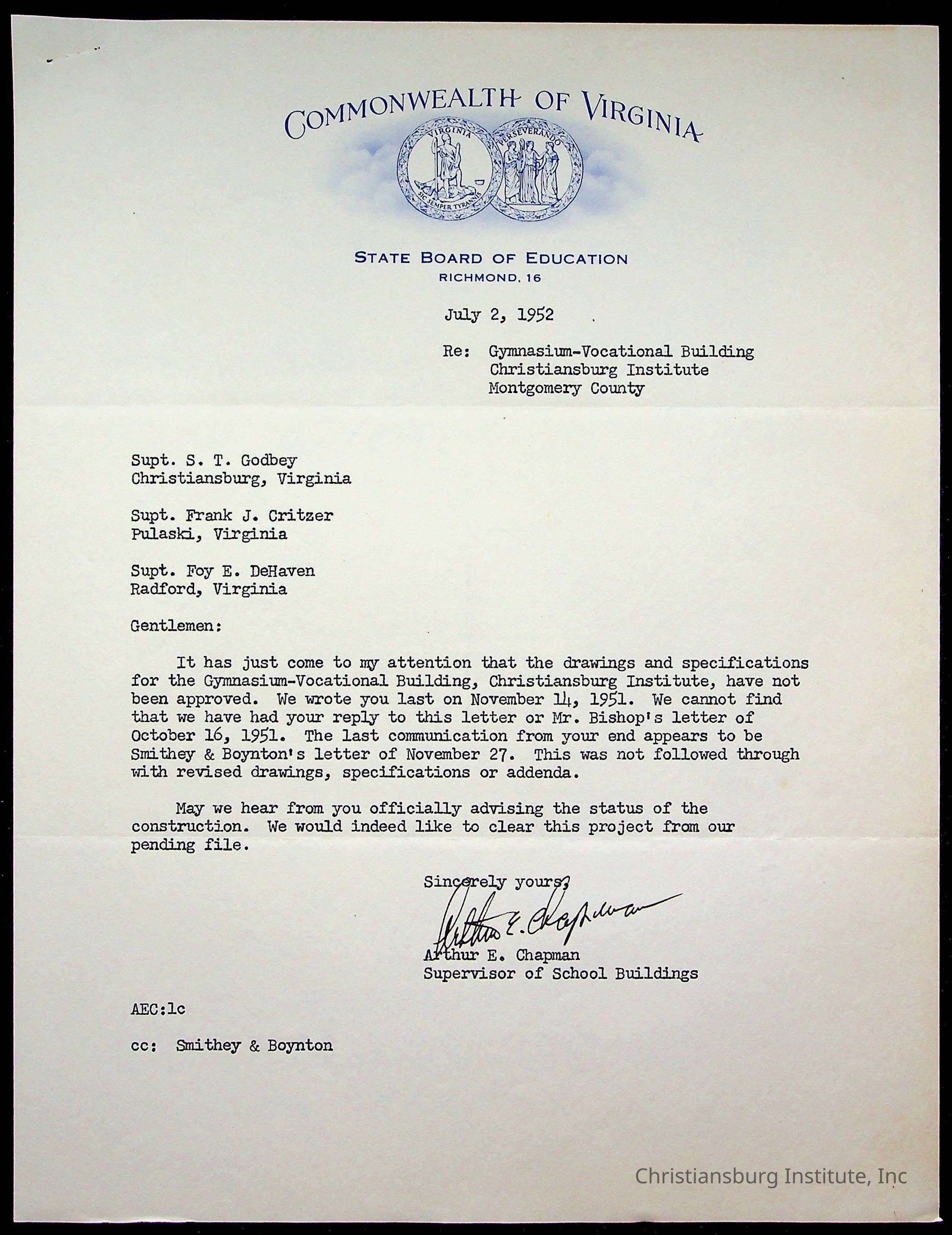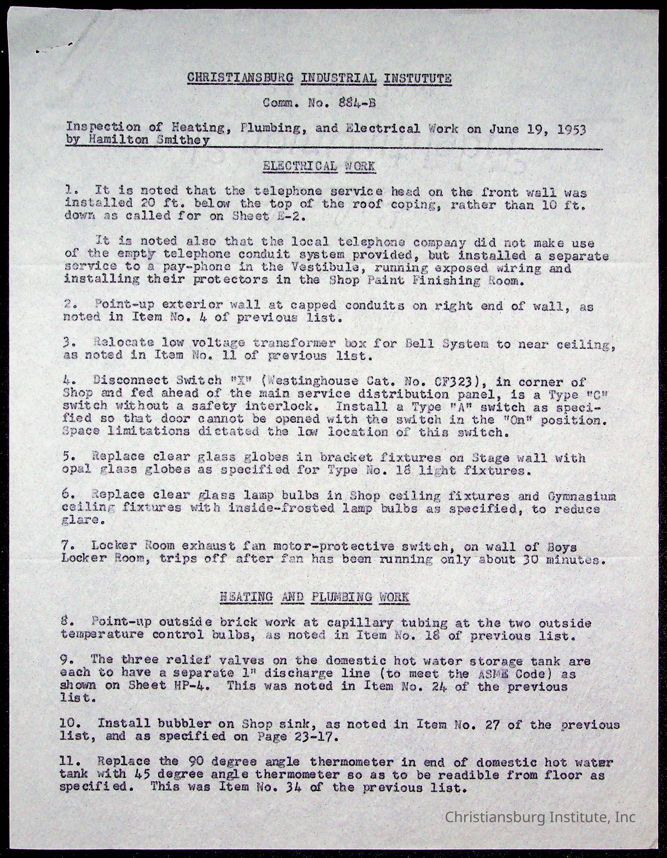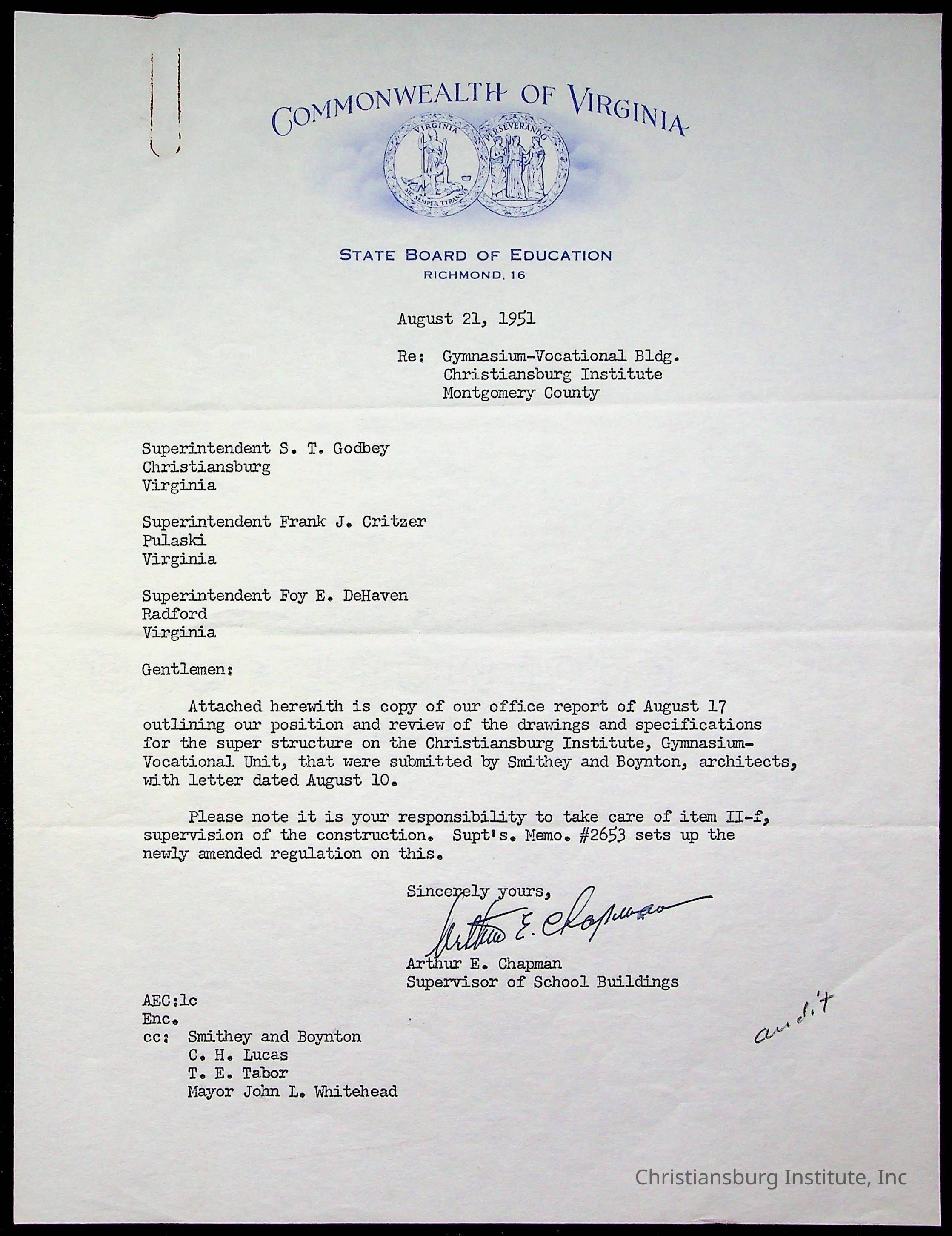 Christiansburg Institute Facility Documents