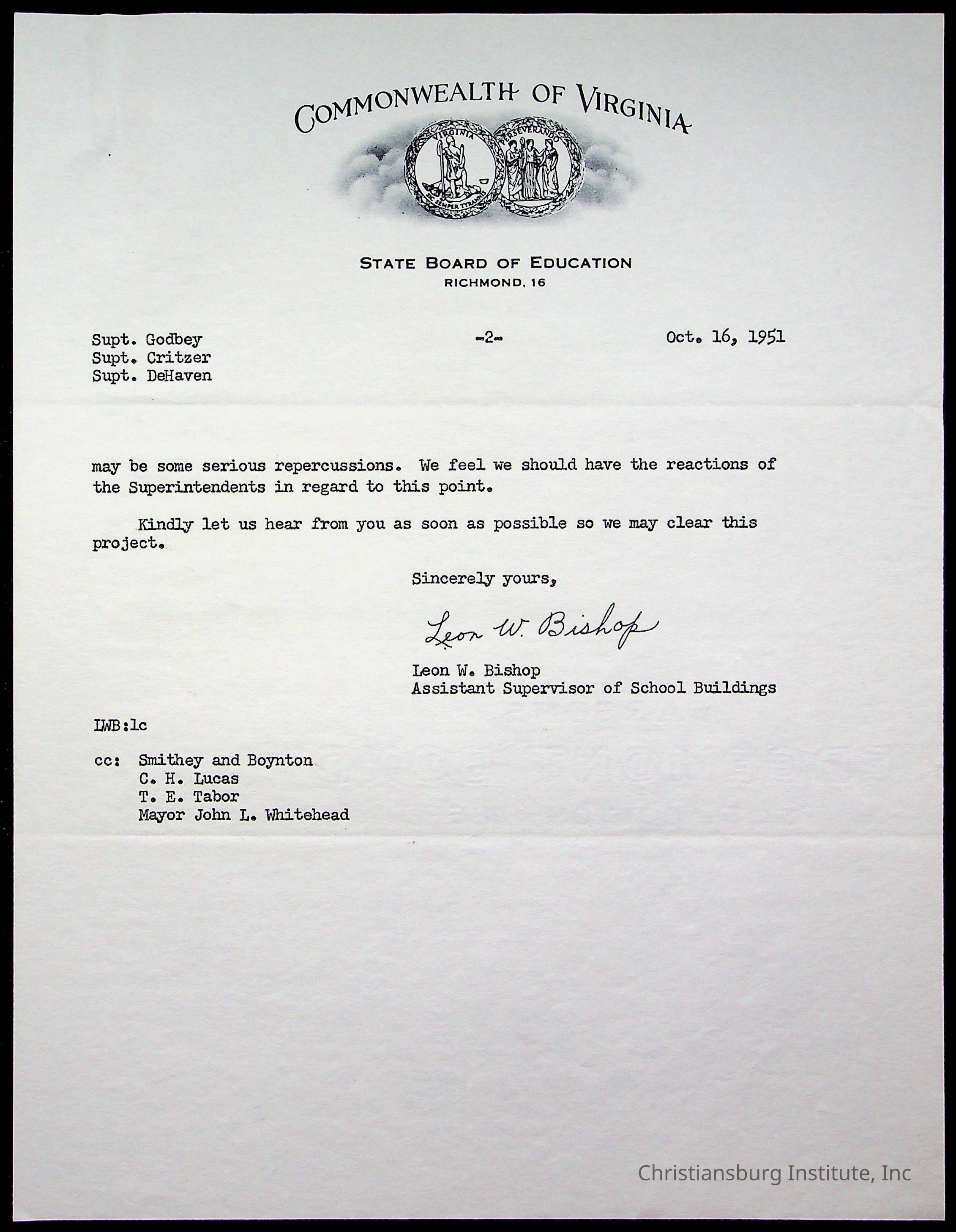 Christiansburg Institute, Montgomery County School Board, The Board of Control