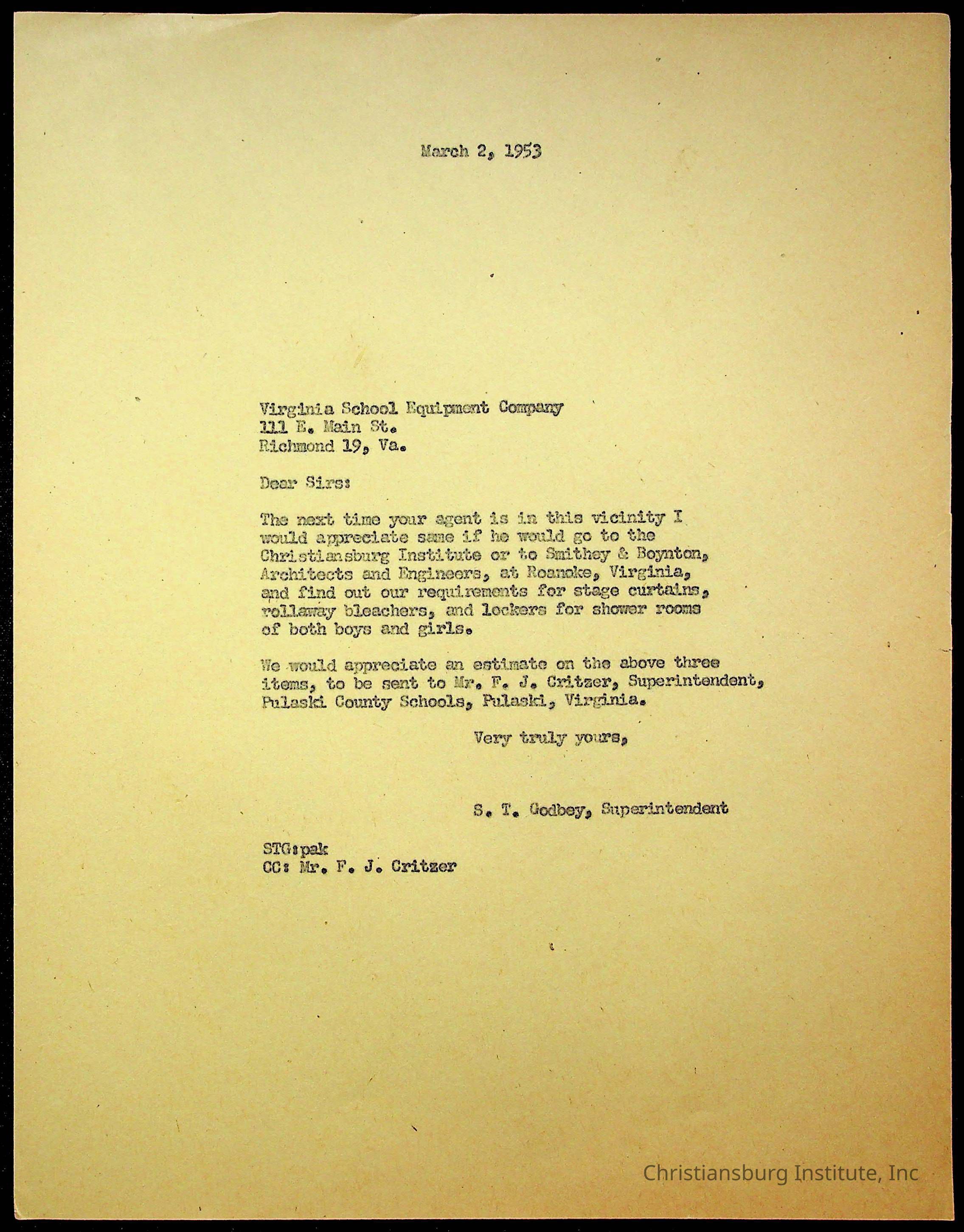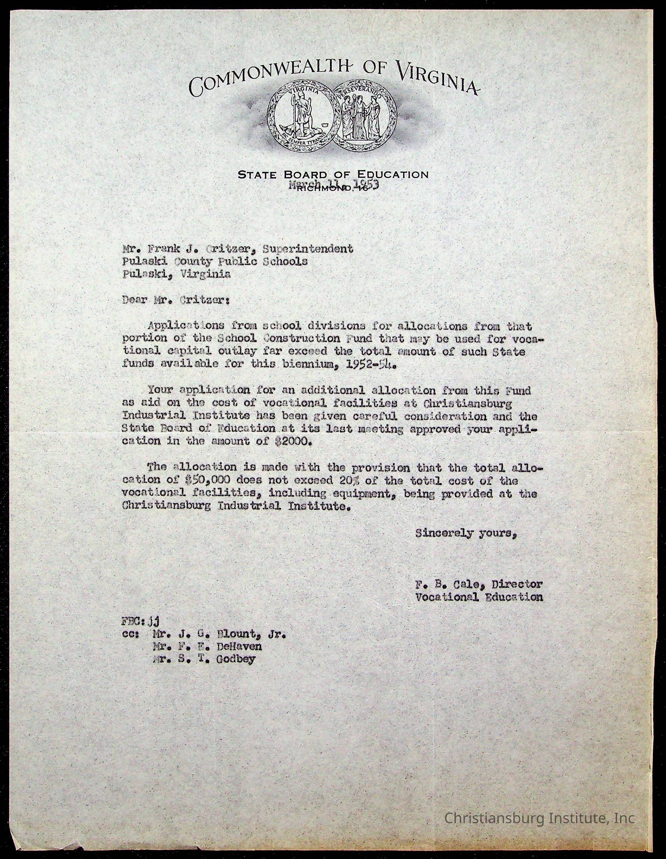 Copyright has been assigned to Christiansburg Institute Museum & Archives by Montgomery County Public Schools. For permission to publish materials created by the donor, contact CIMA@christiansburginstitute.com. Materials not created by Christiansburg Industrial Institute may still be under copyright.