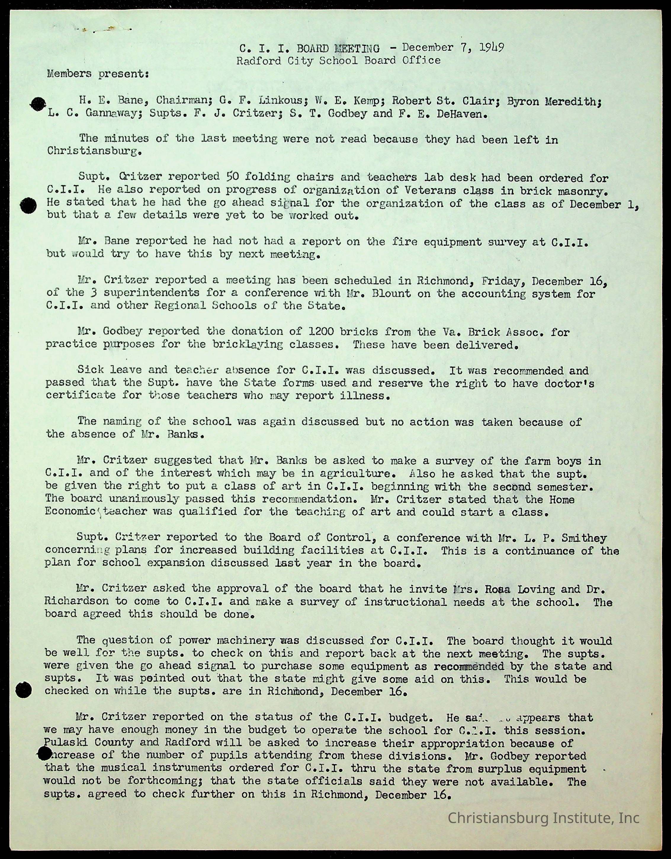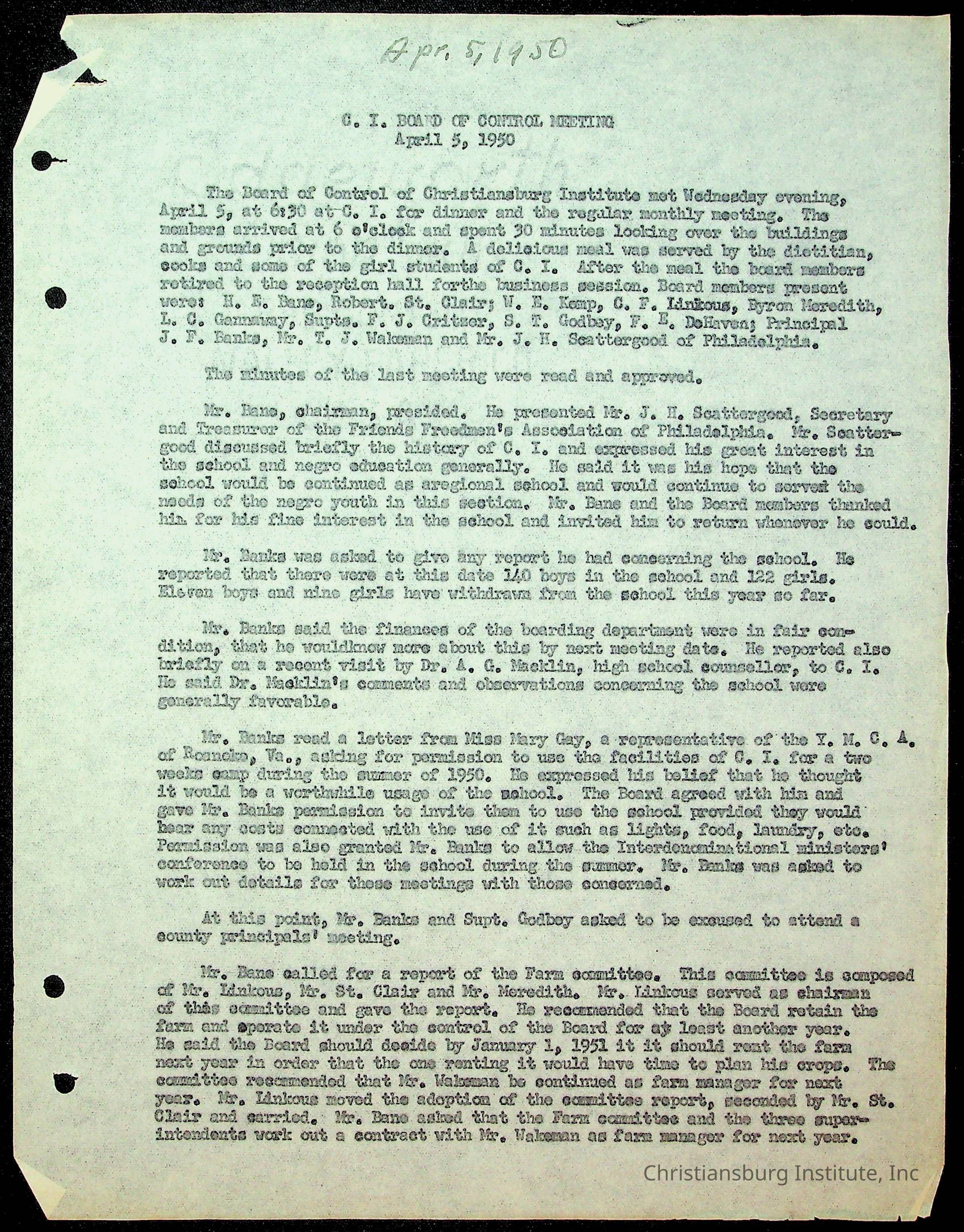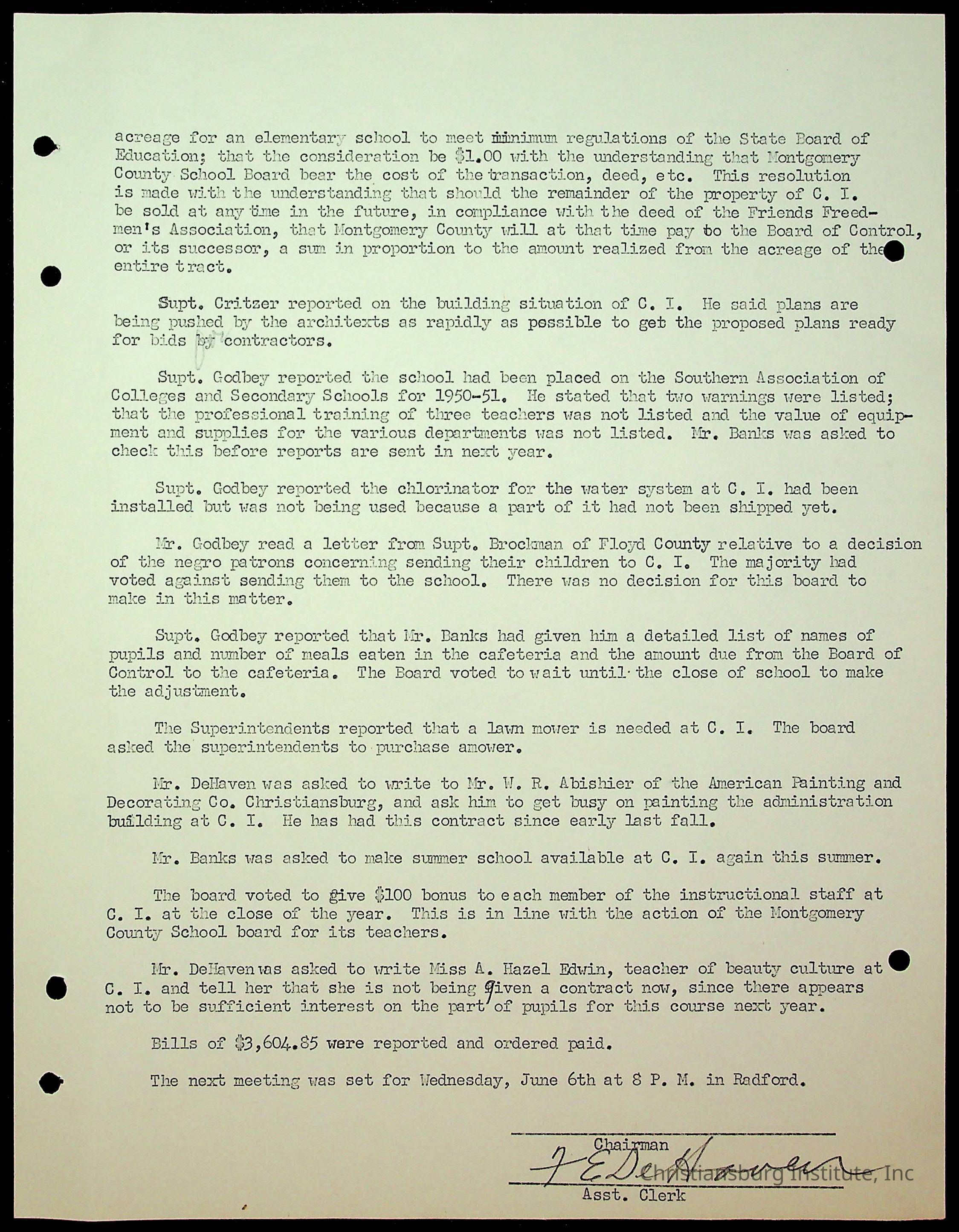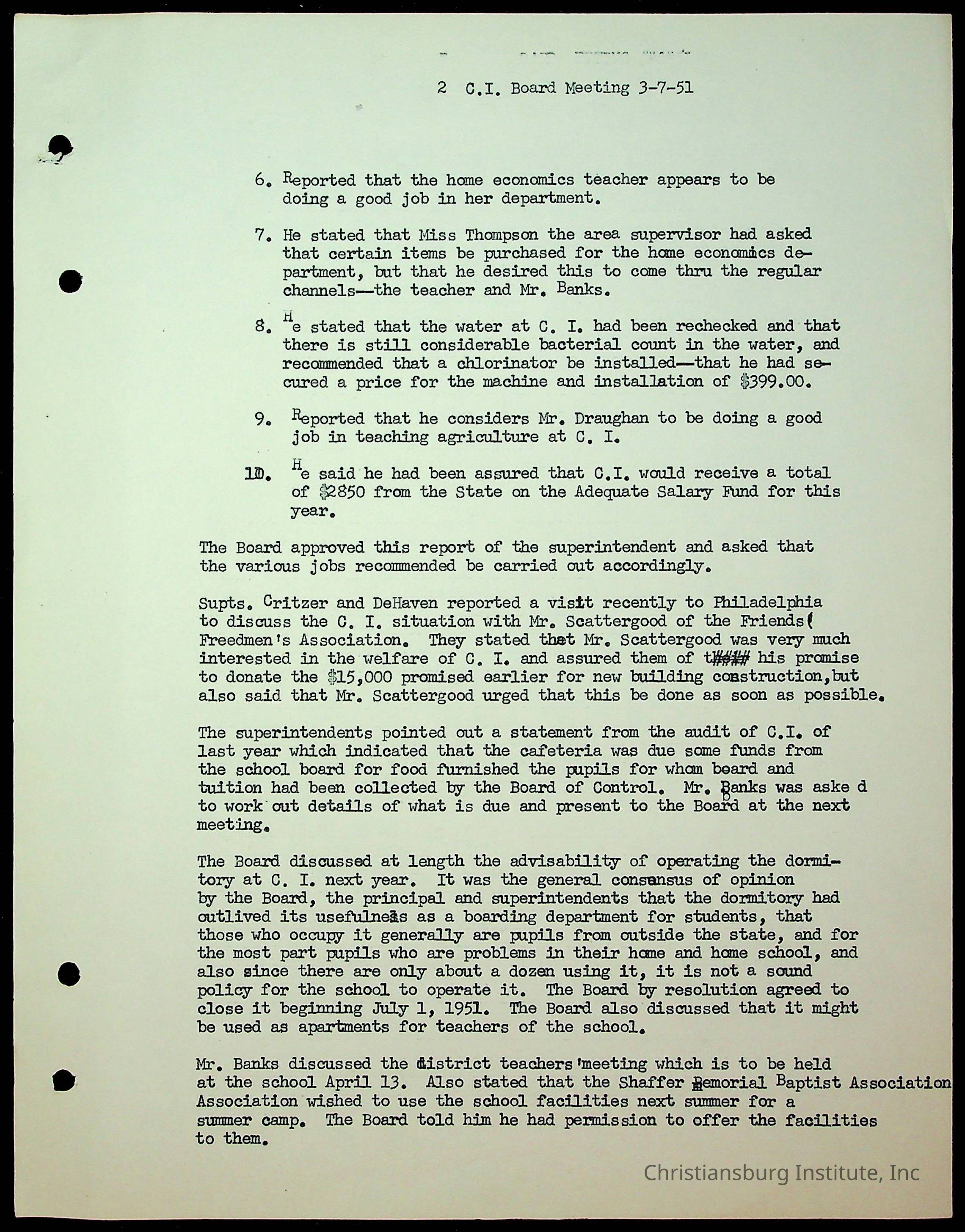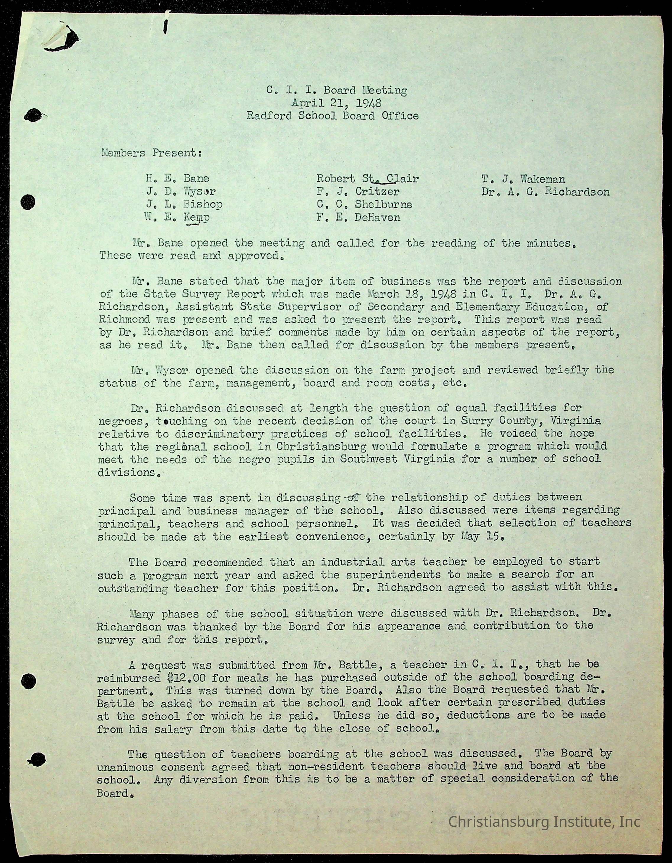 Christiansburg Institute Minutes, 1947-1951