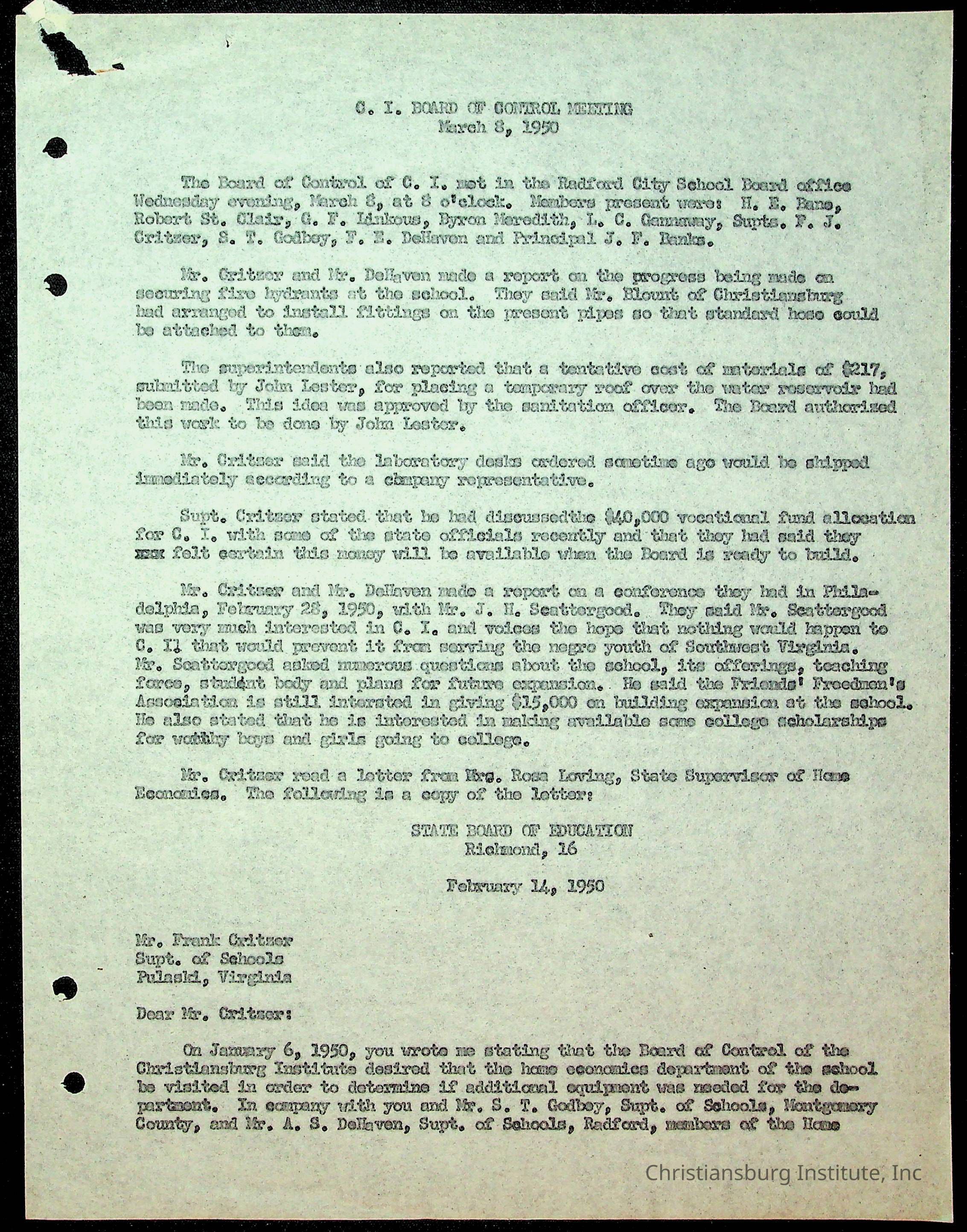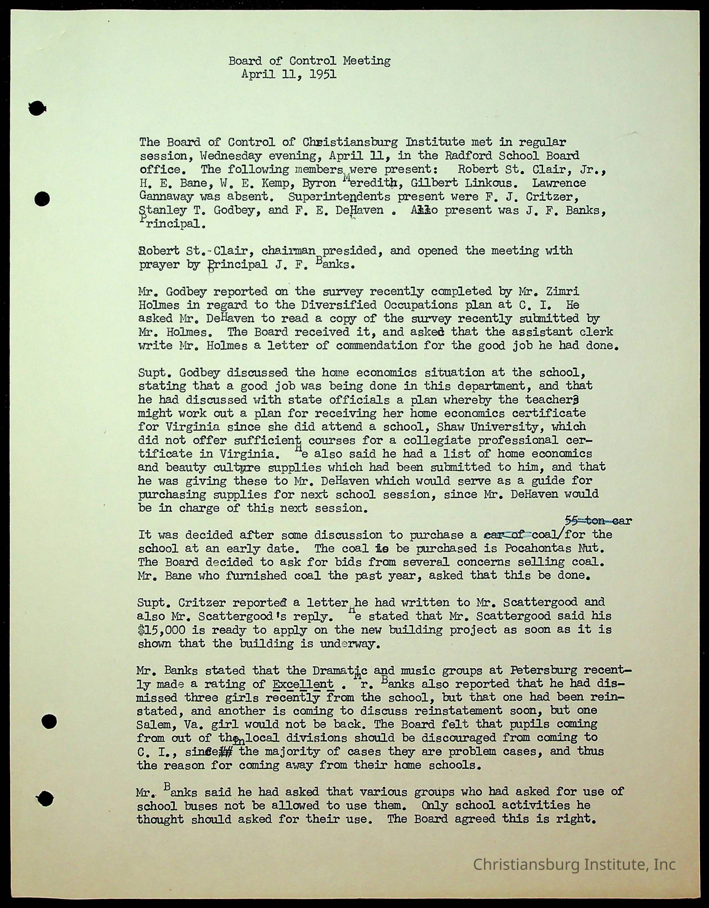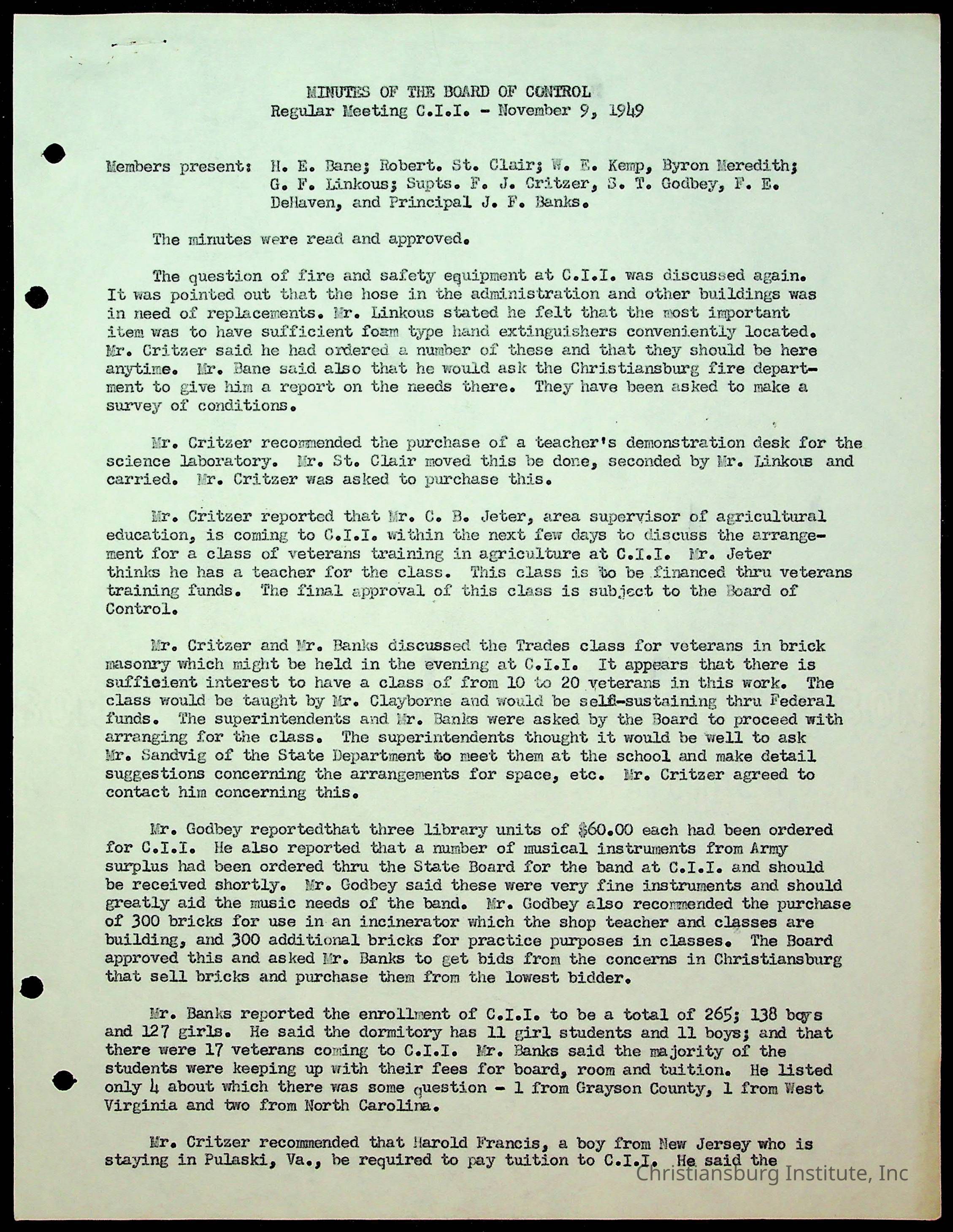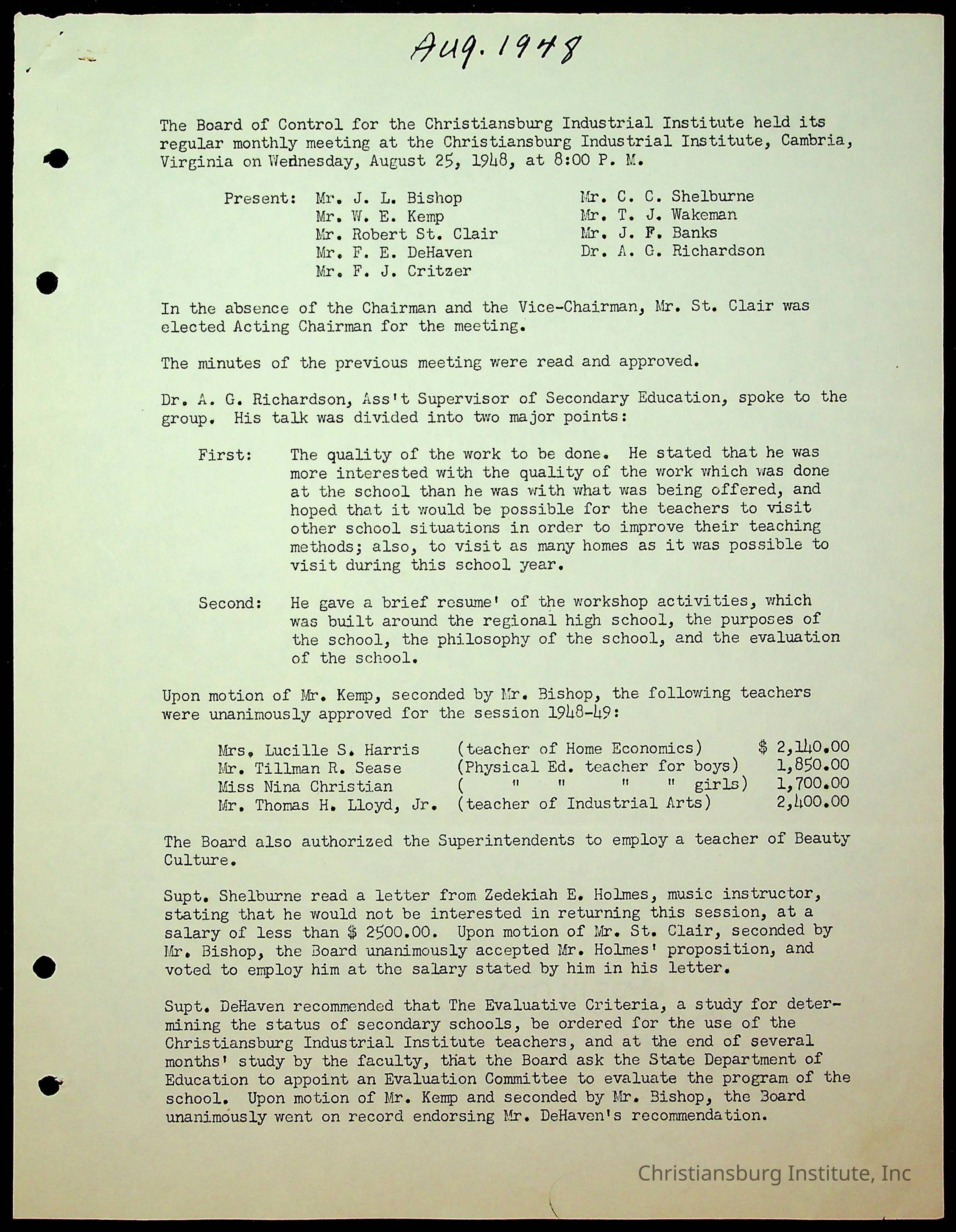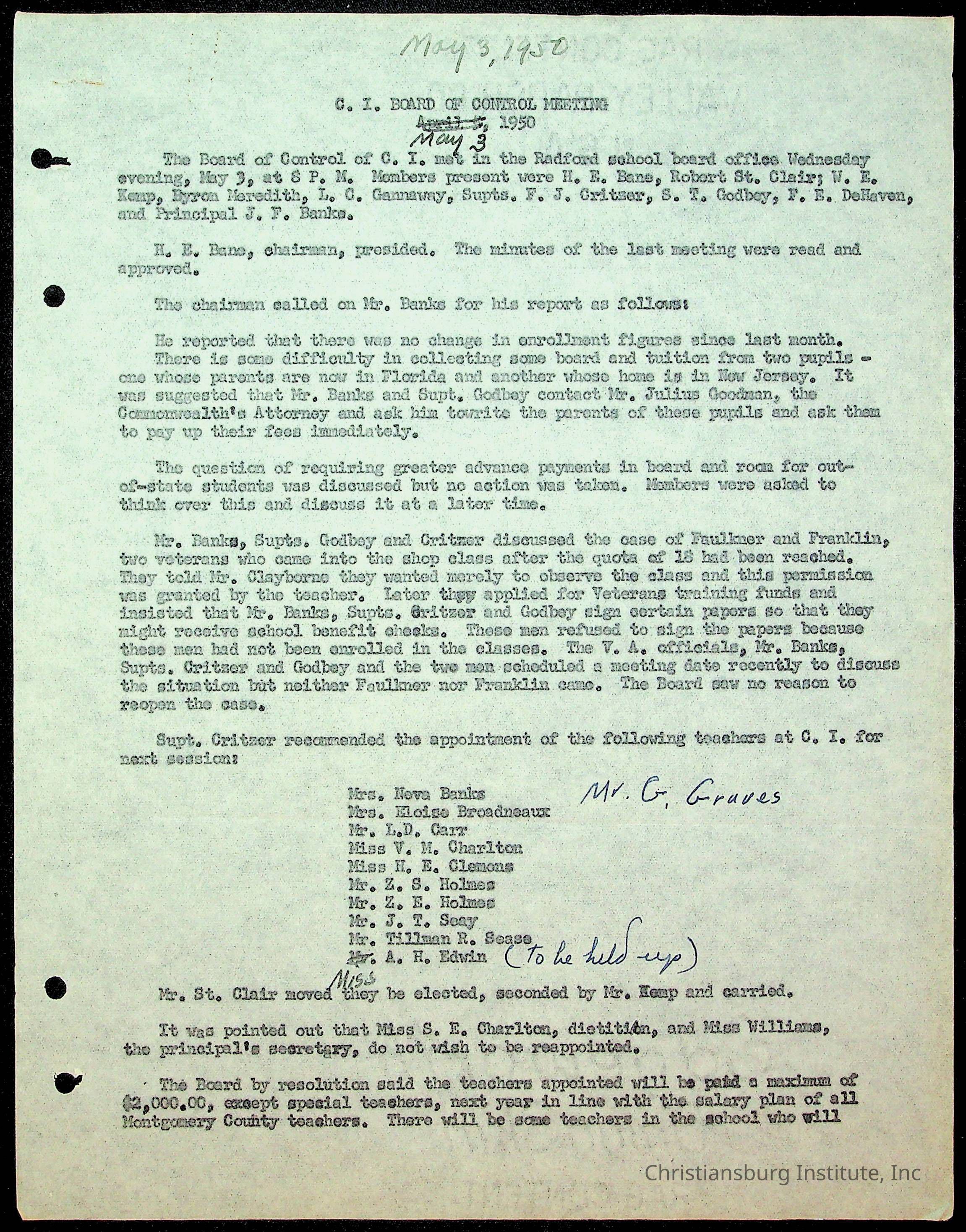 Christiansburg Institute Minutes, 1947-1951