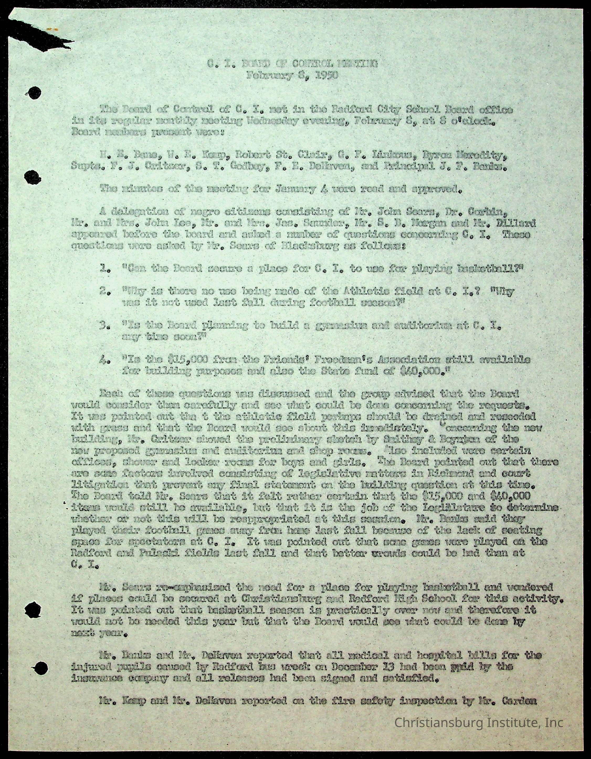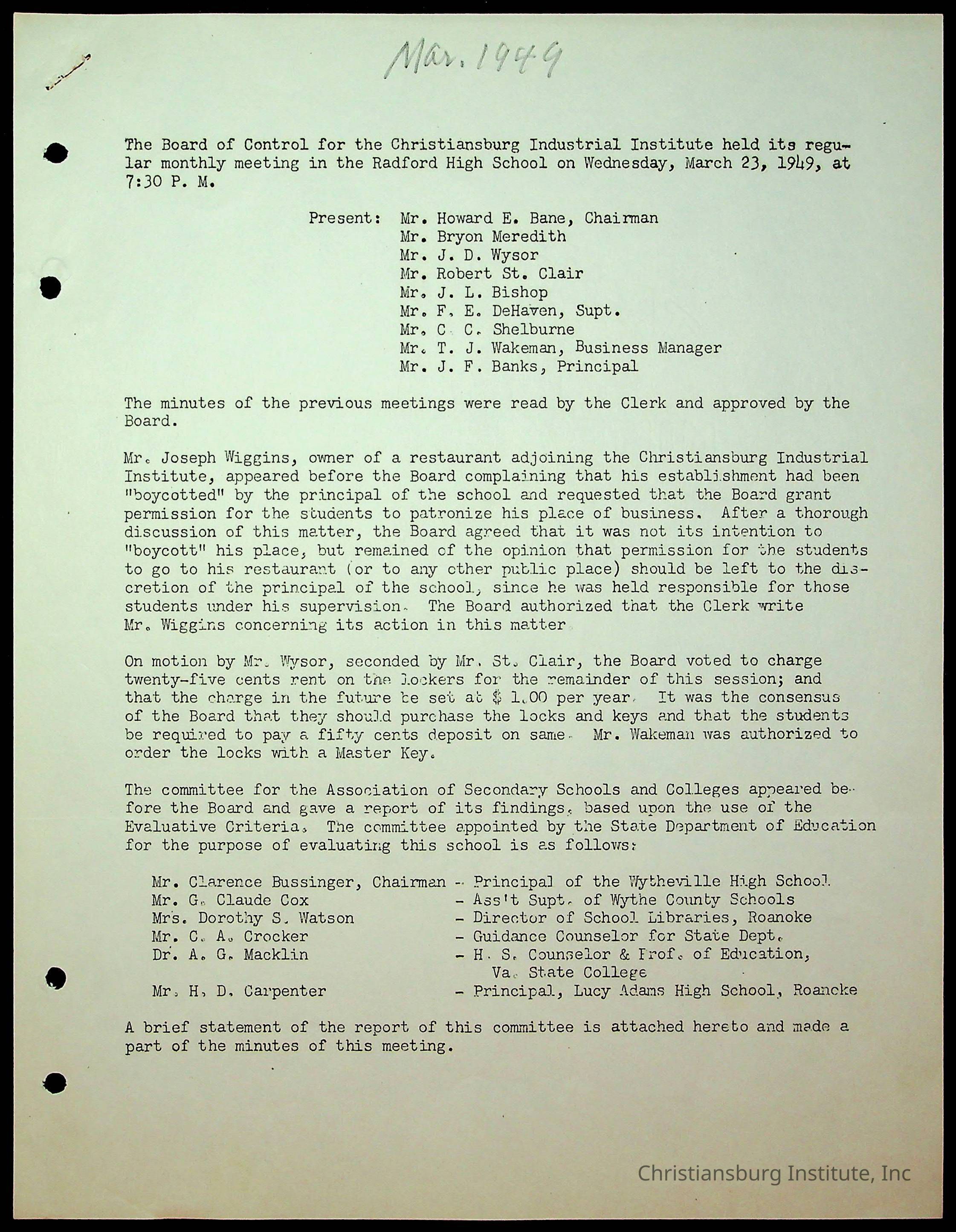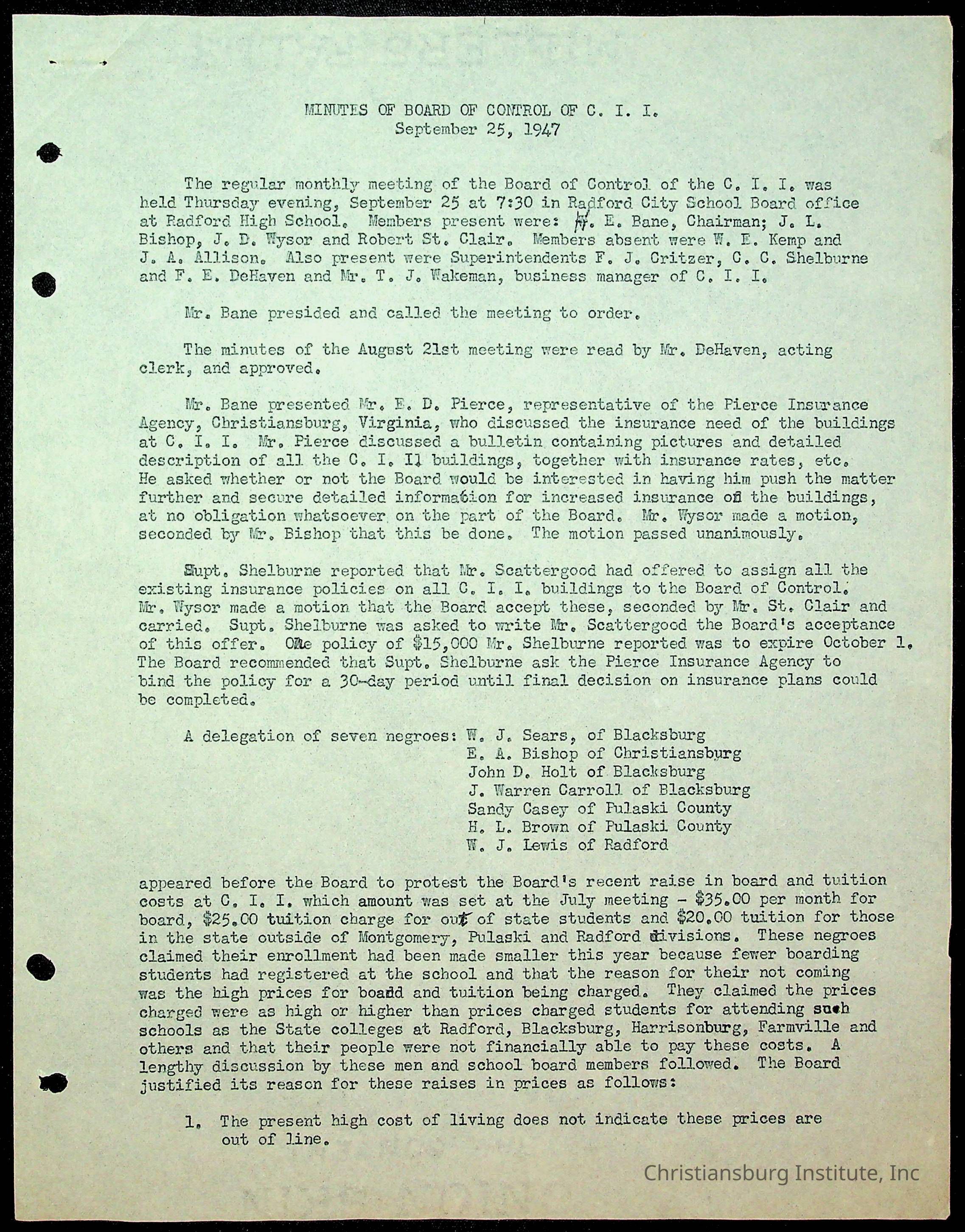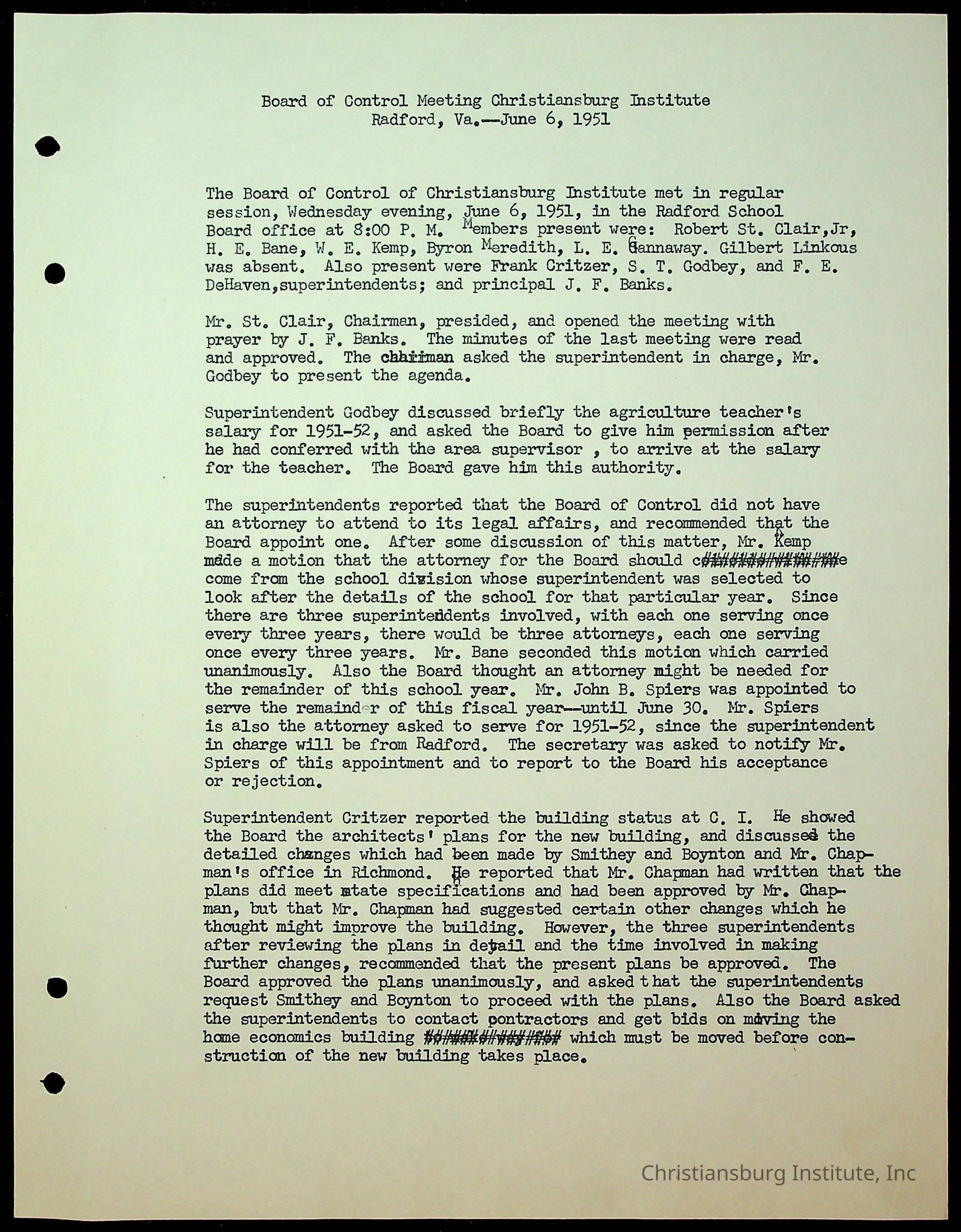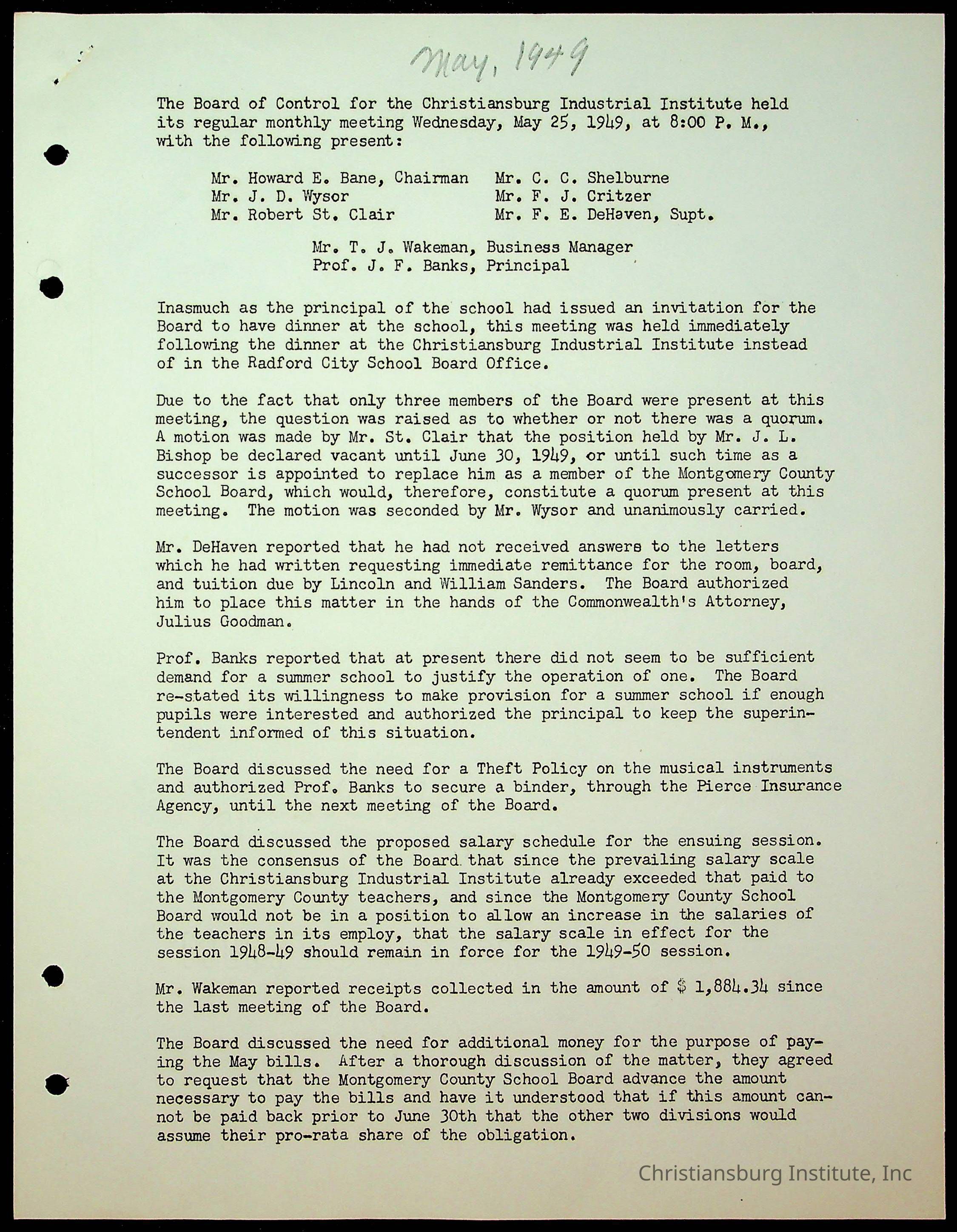 Christiansburg Institute Minutes, 1947-1951