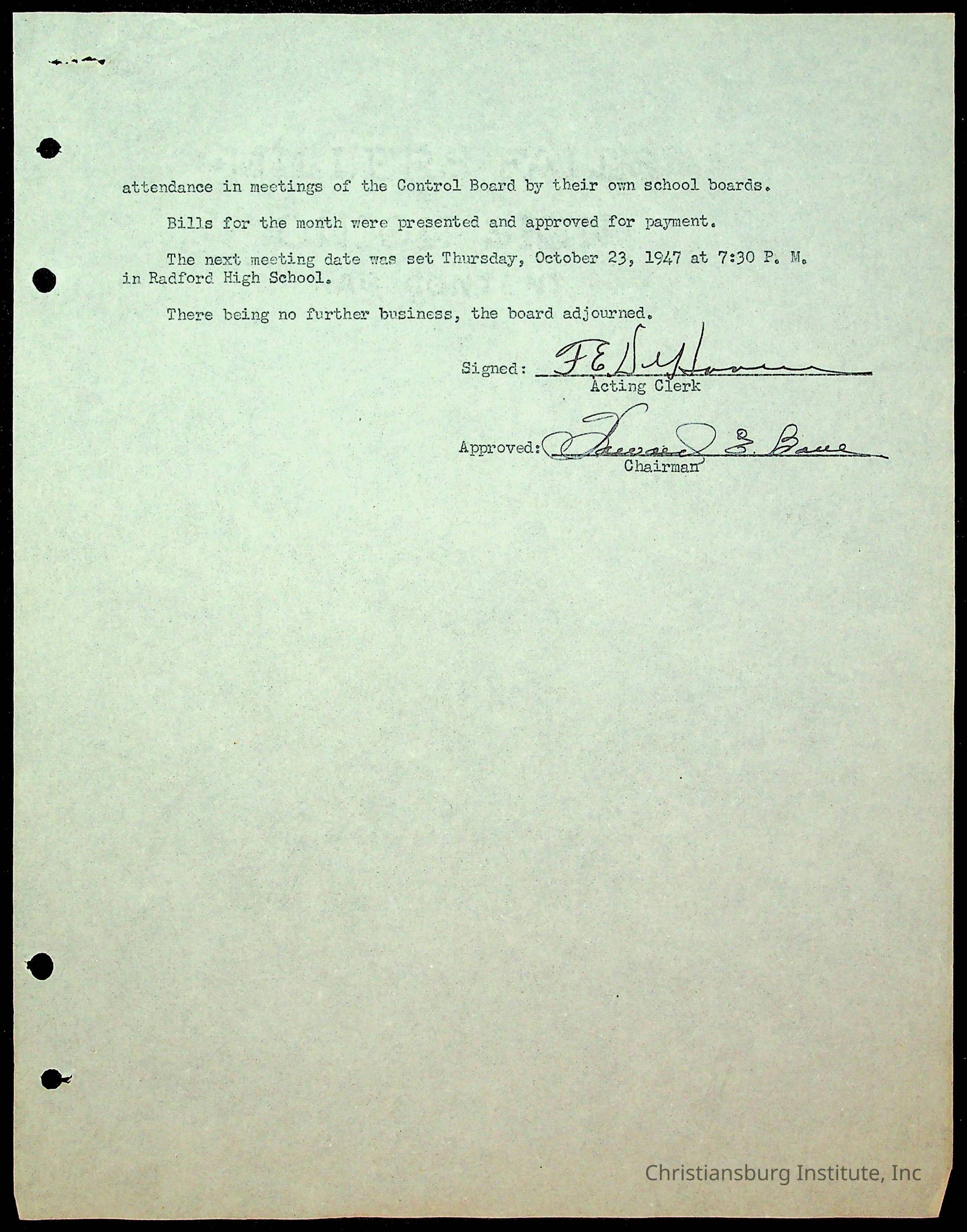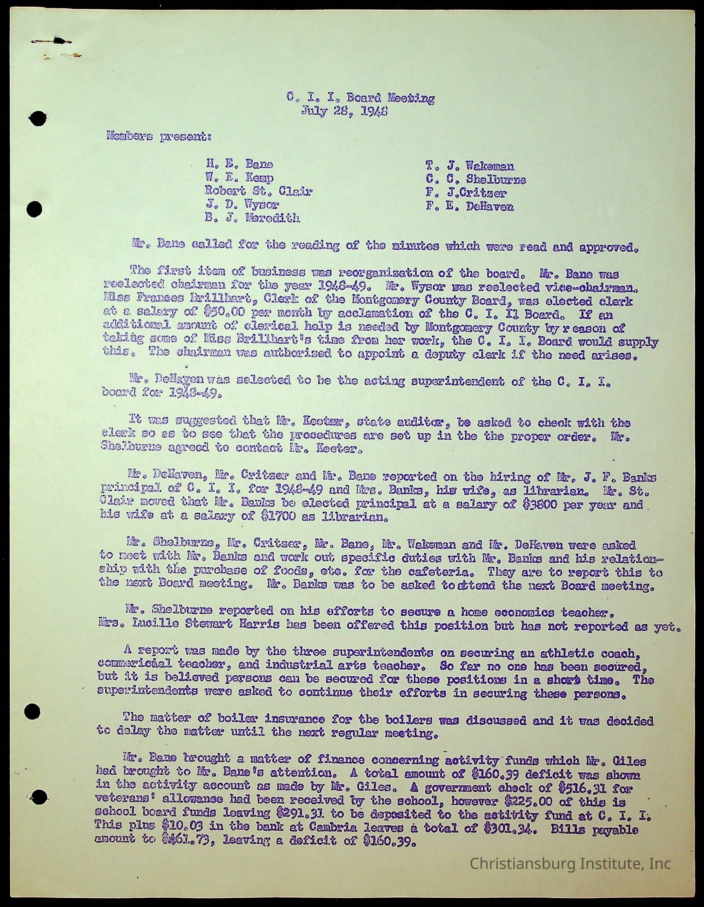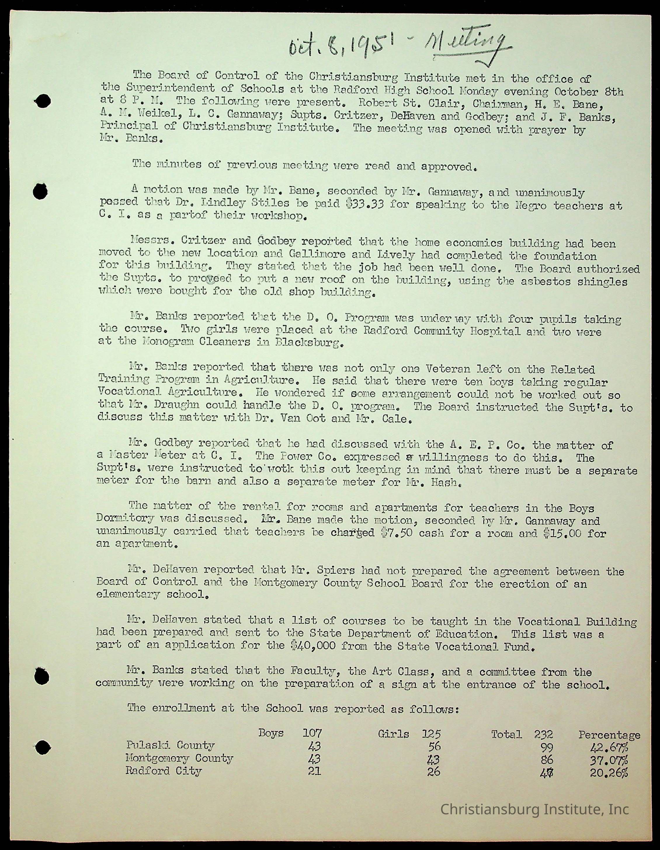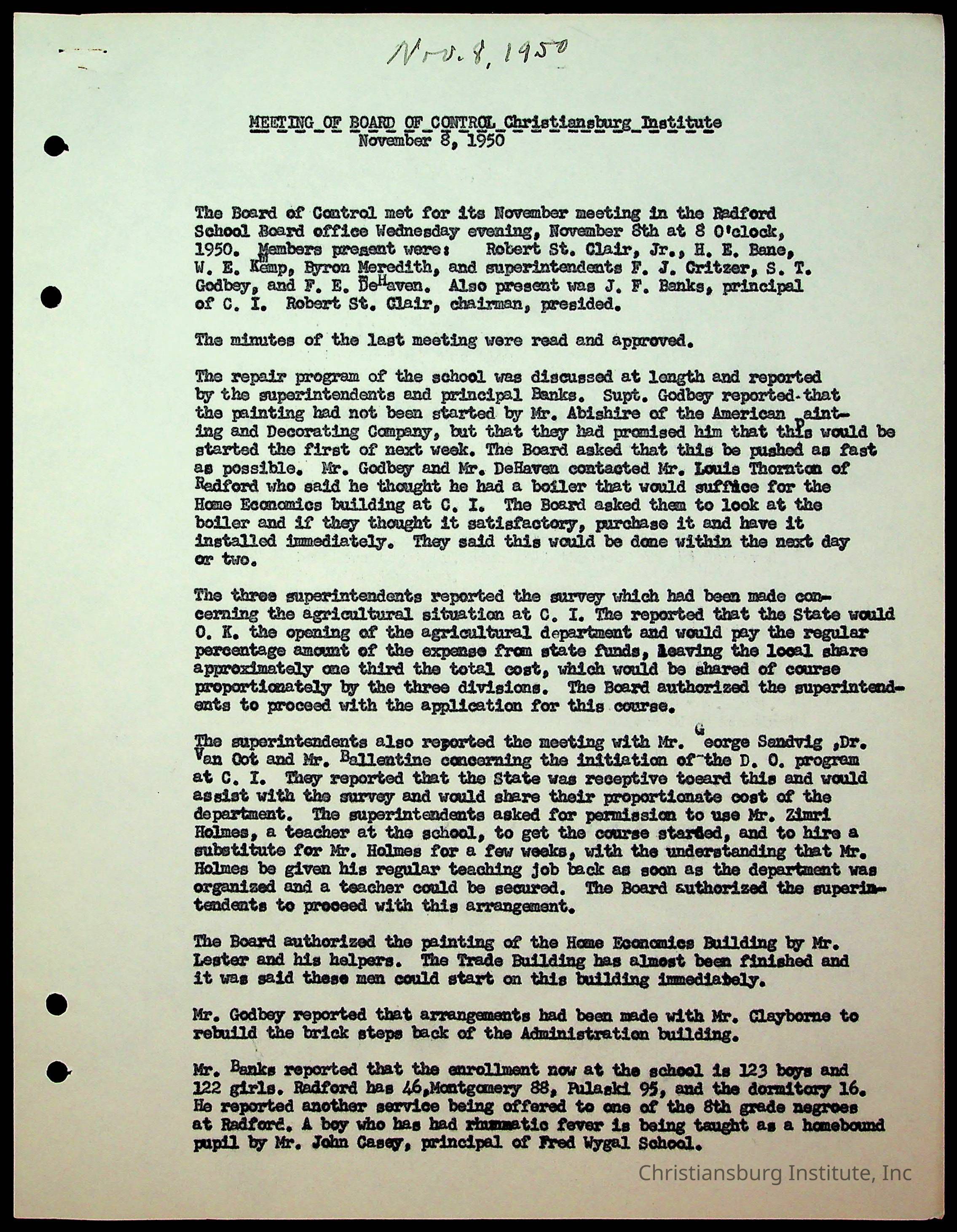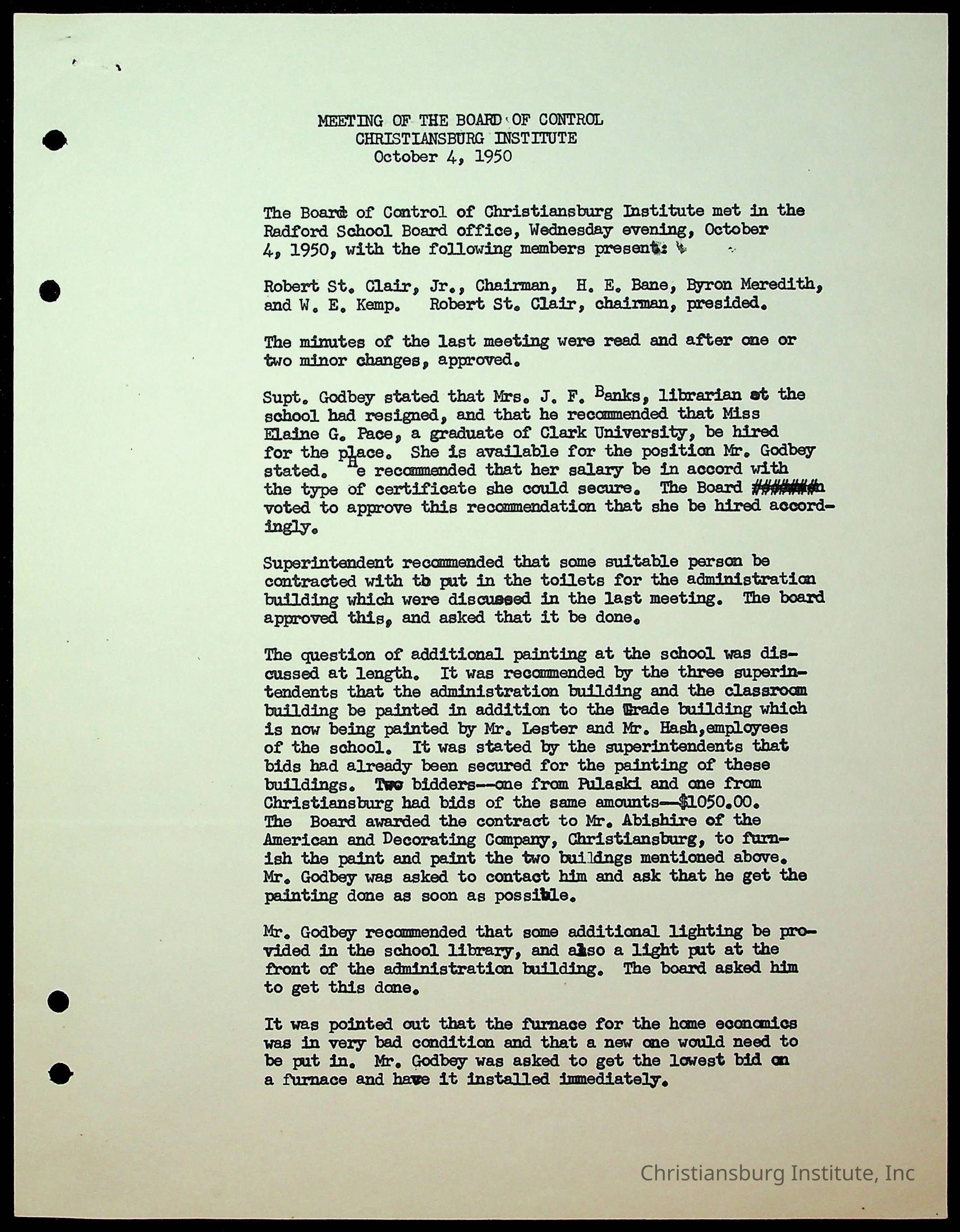Christiansburg Institute Minutes, 1947-1951