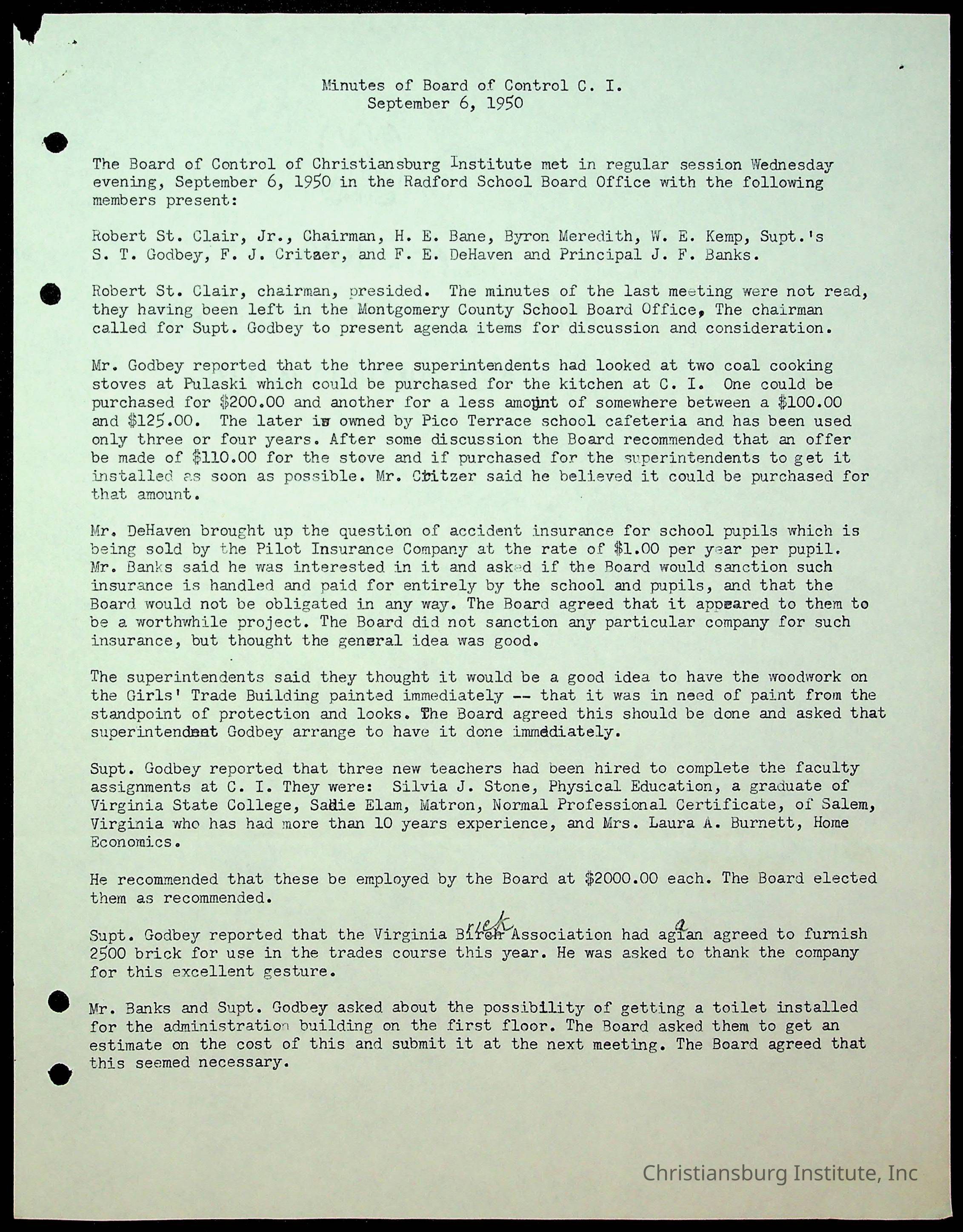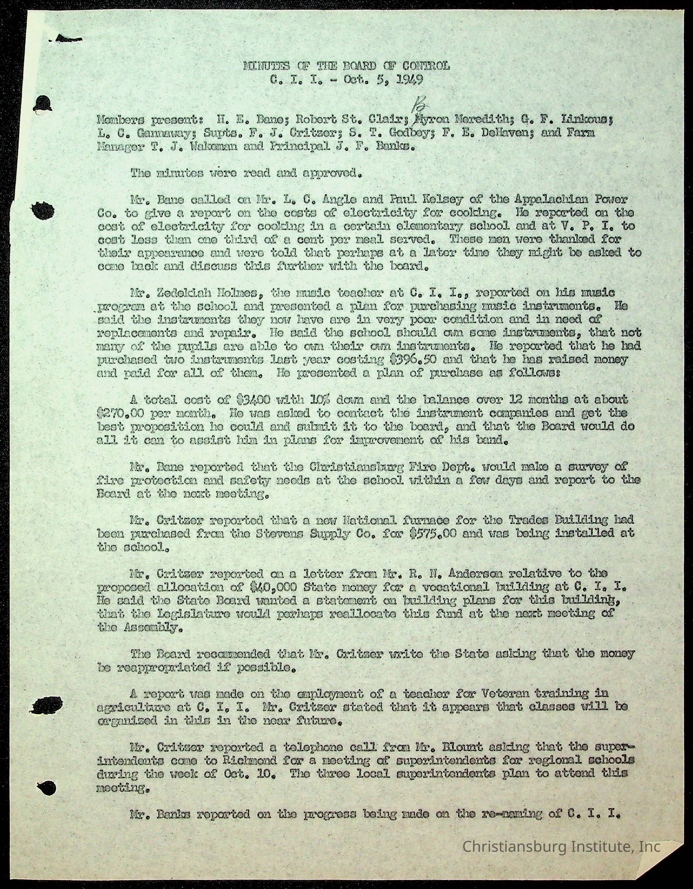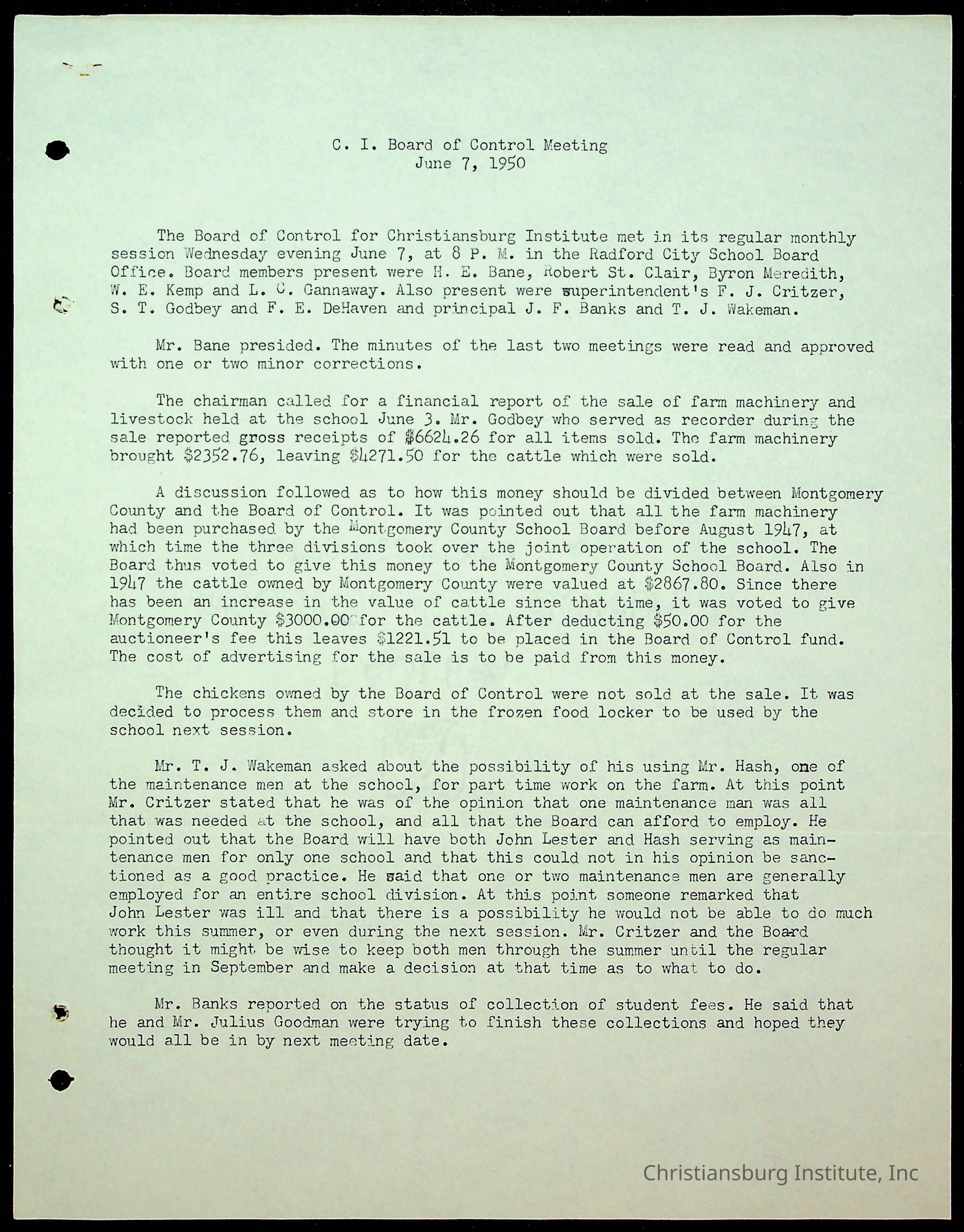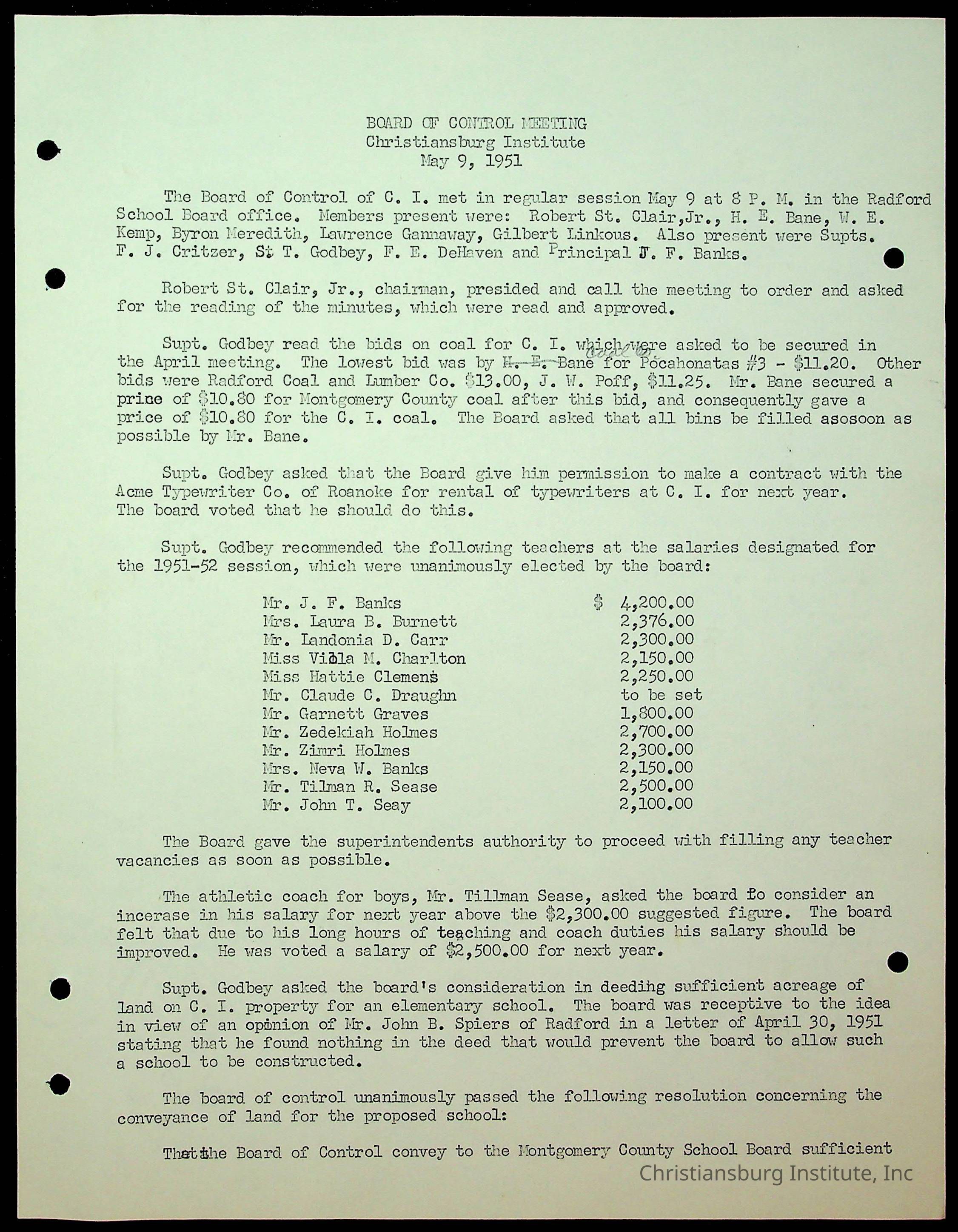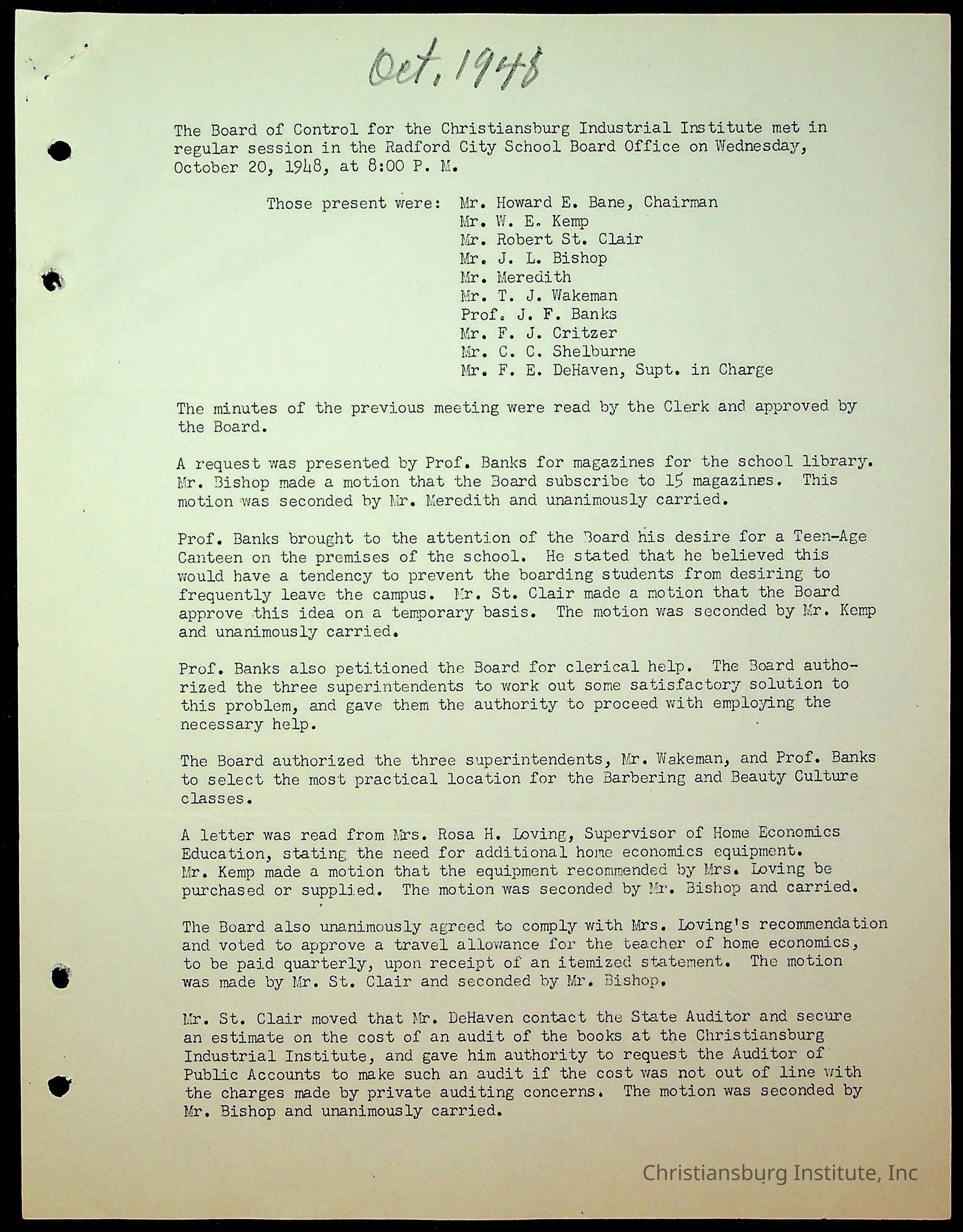 Christiansburg Institute Minutes, 1947-1951