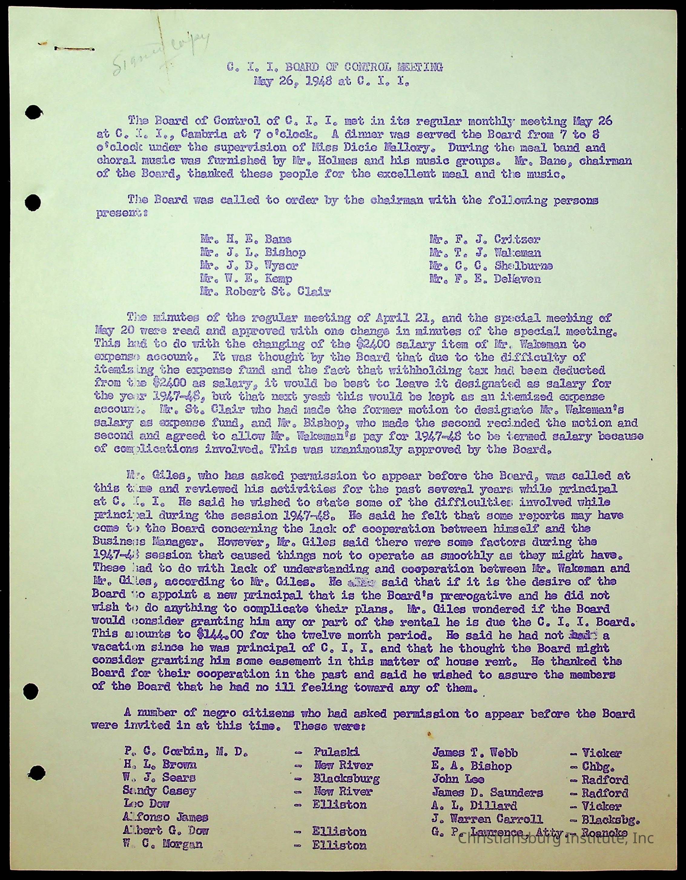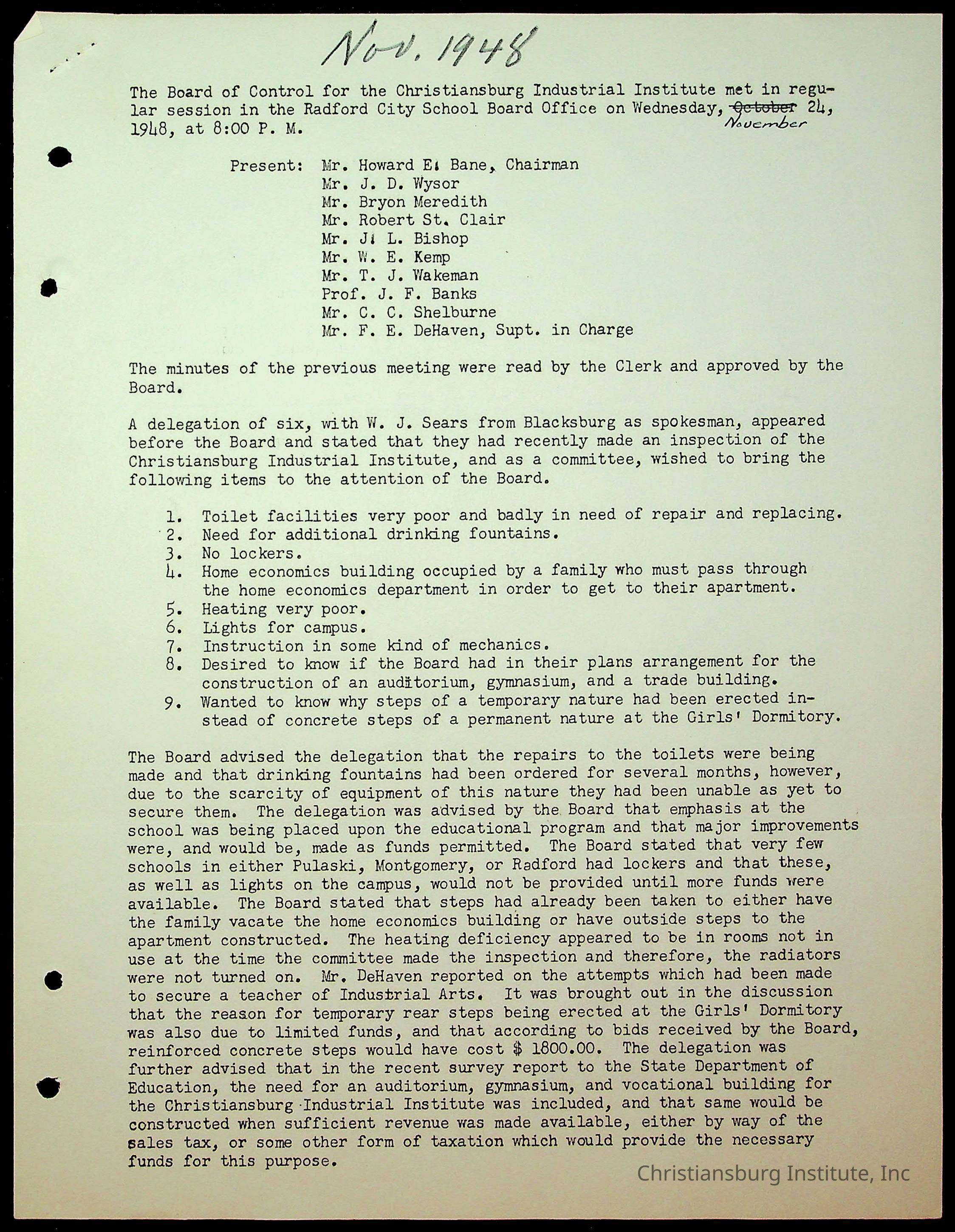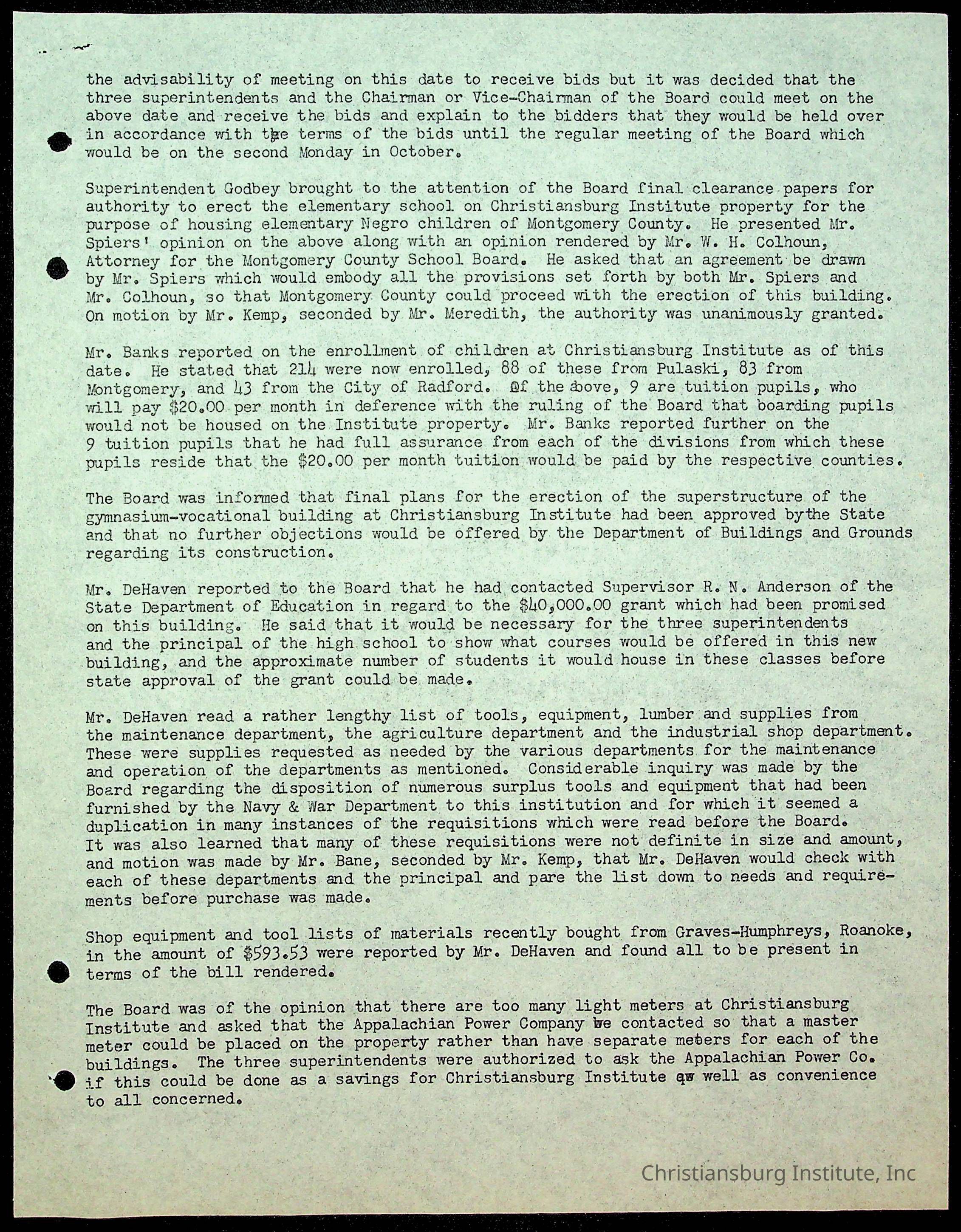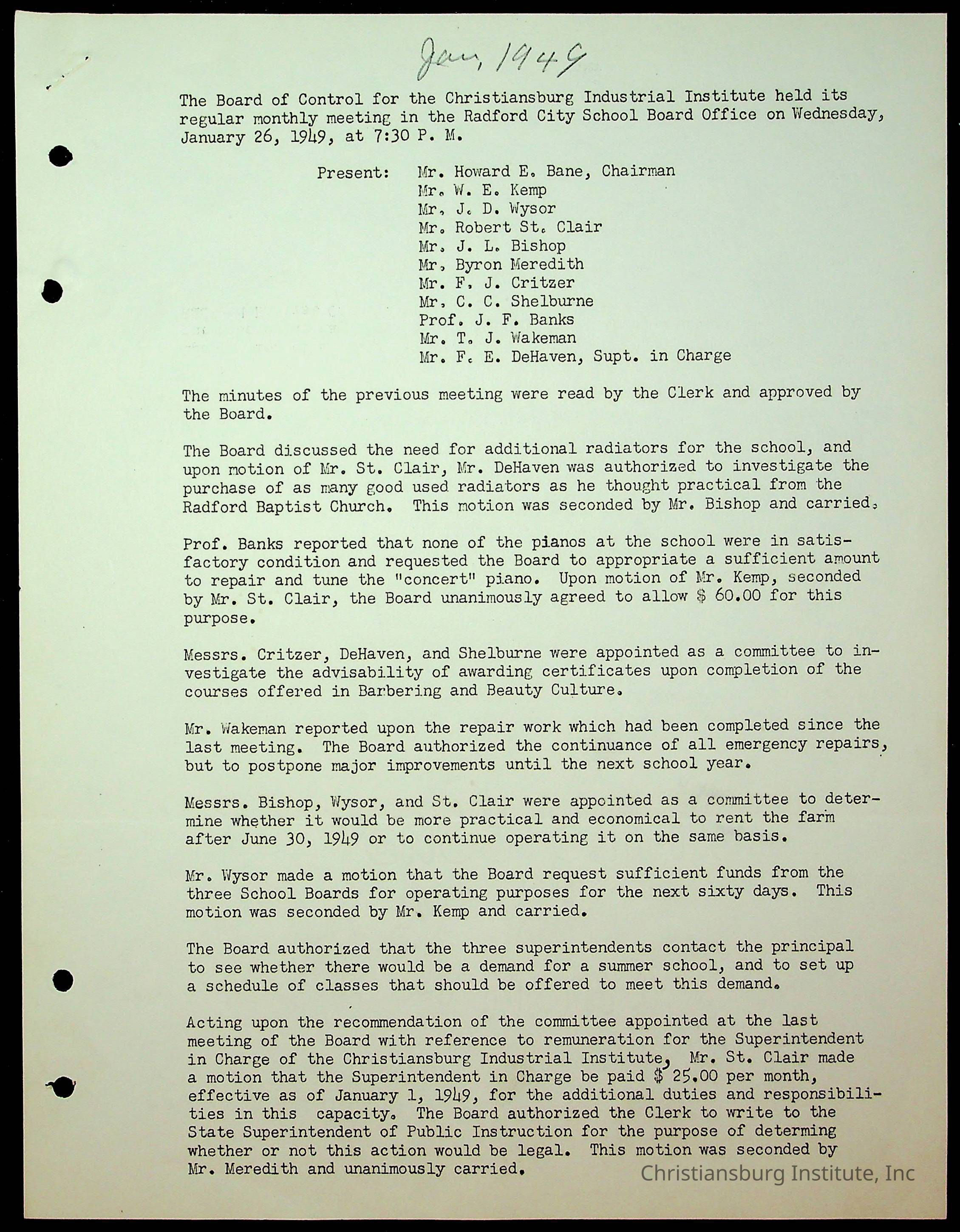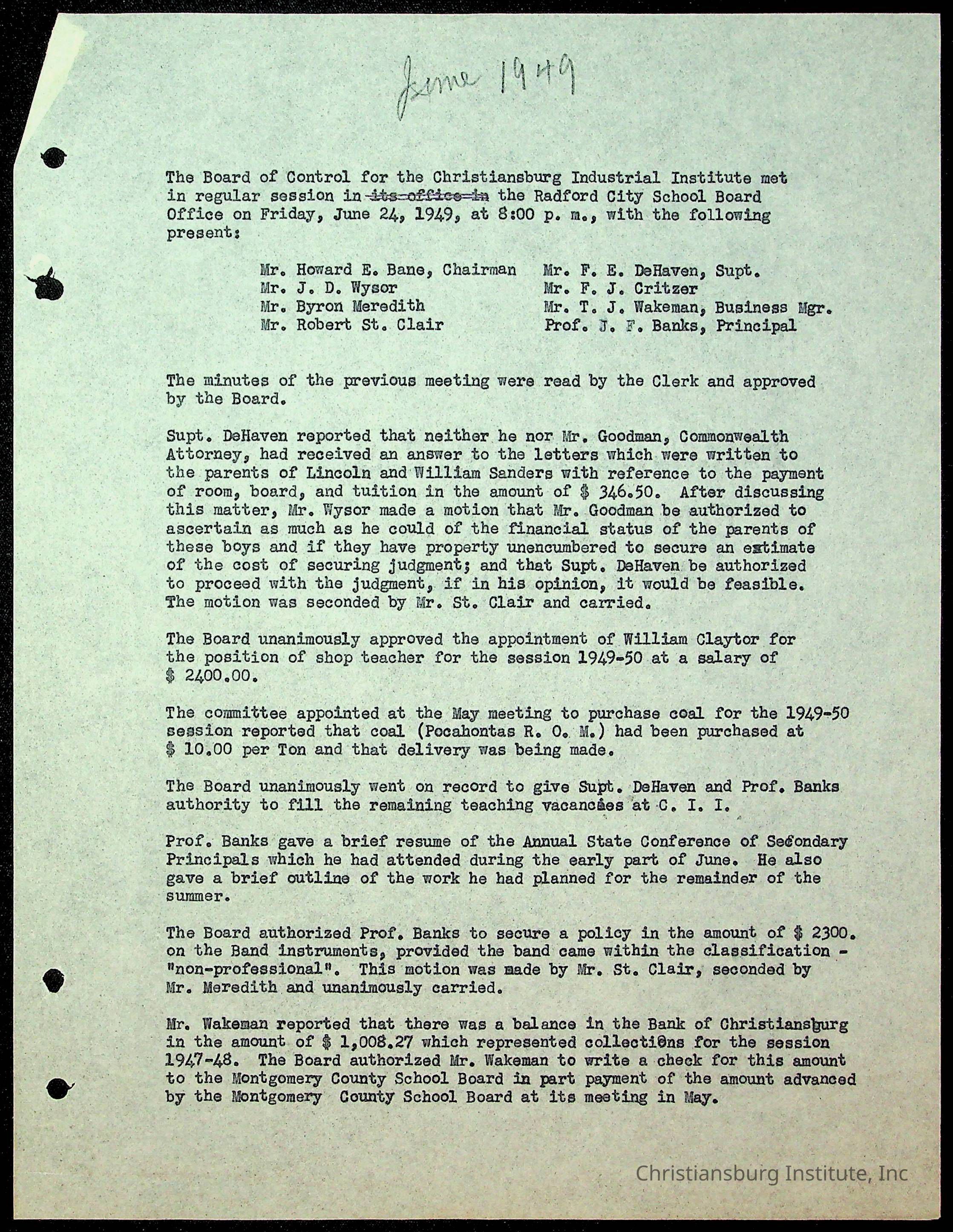 Christiansburg Institute Minutes, 1947-1951