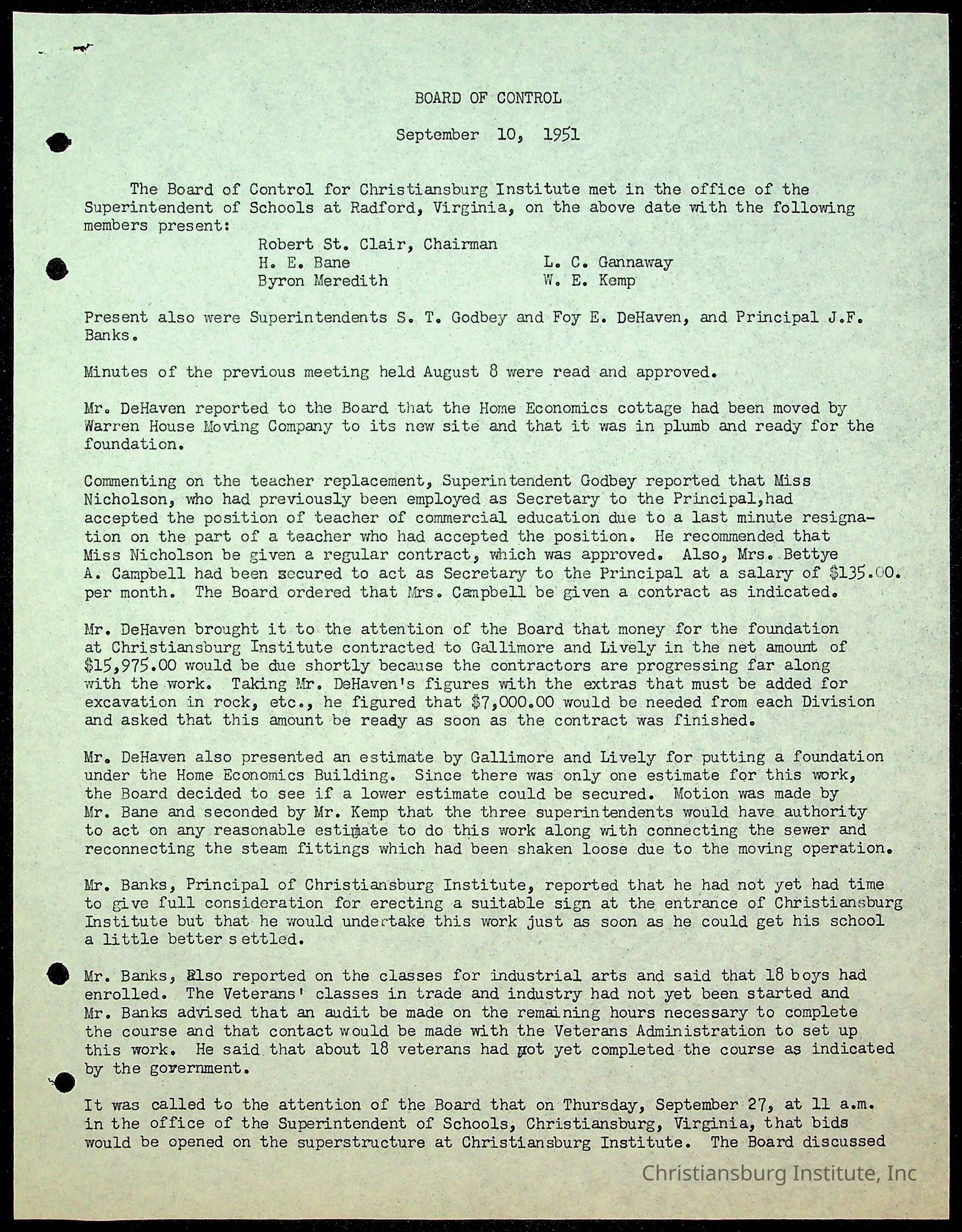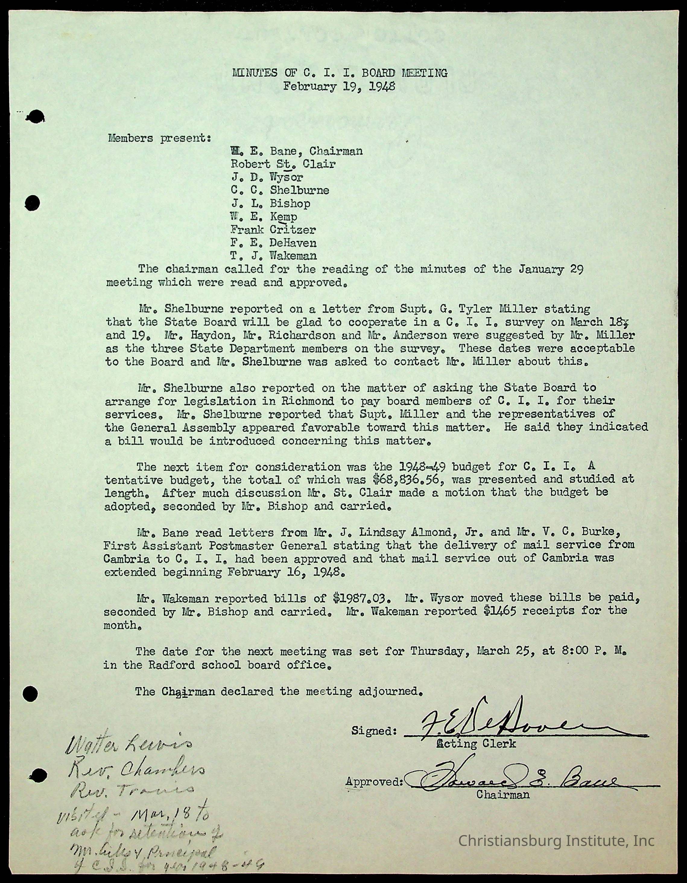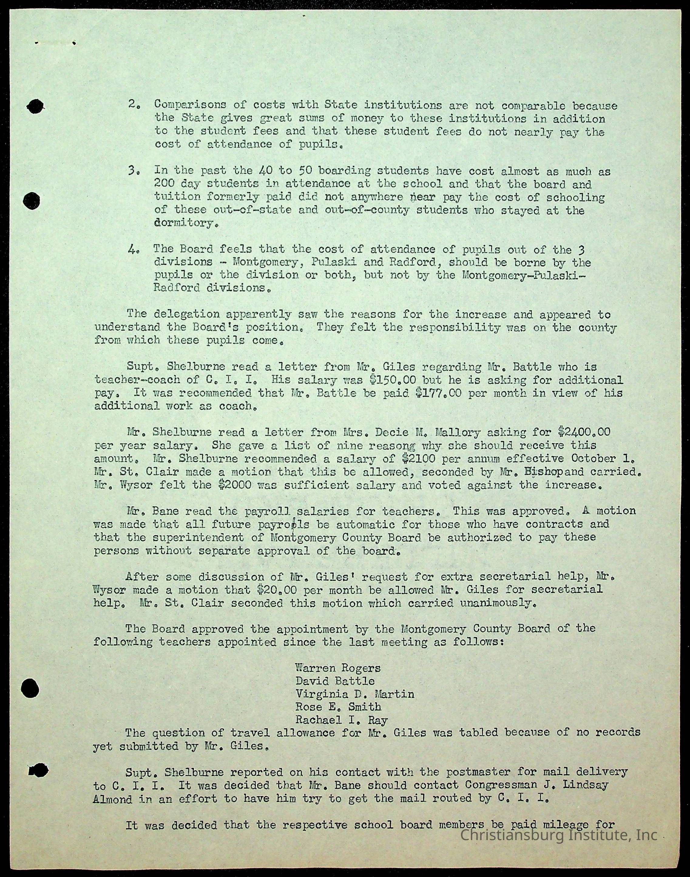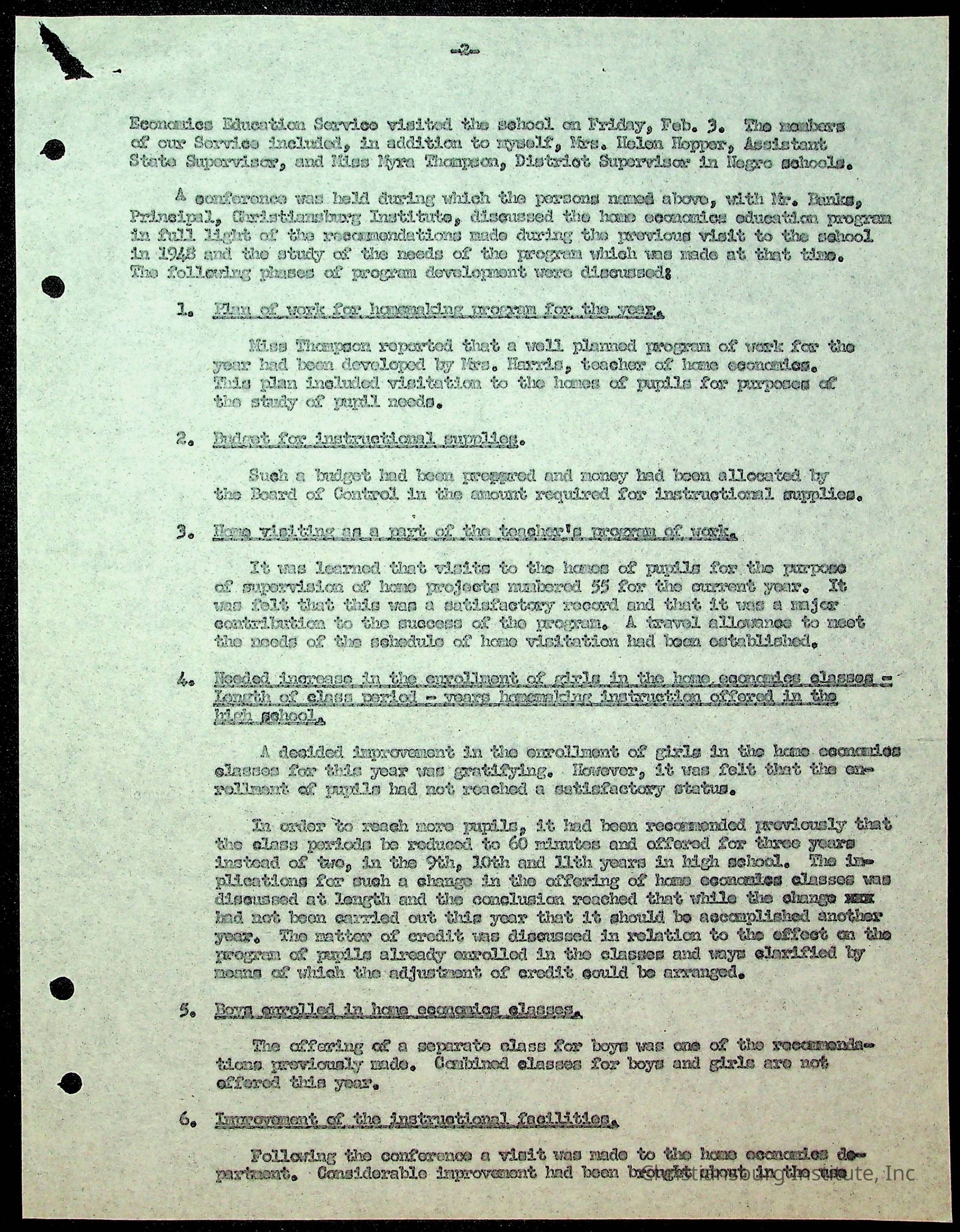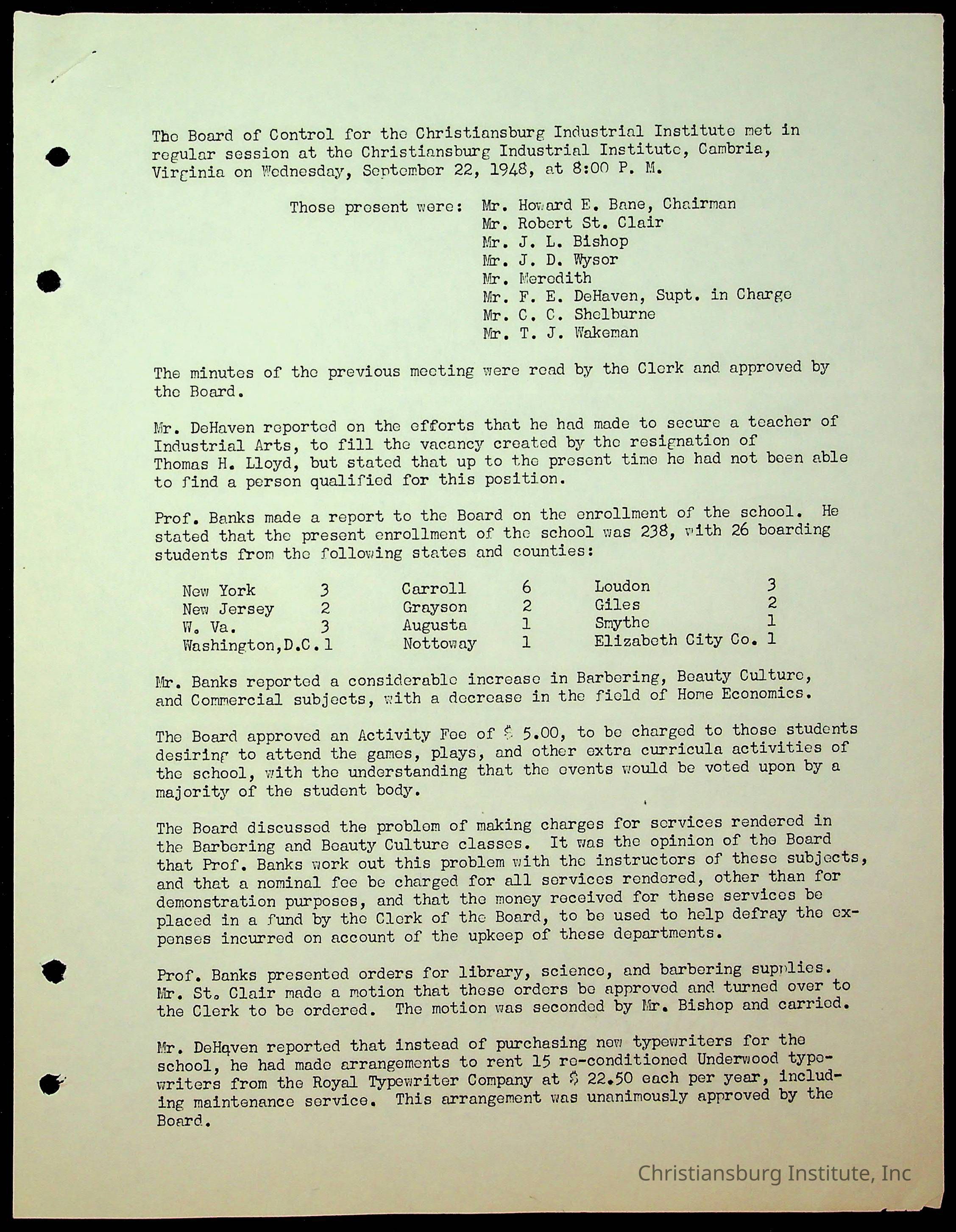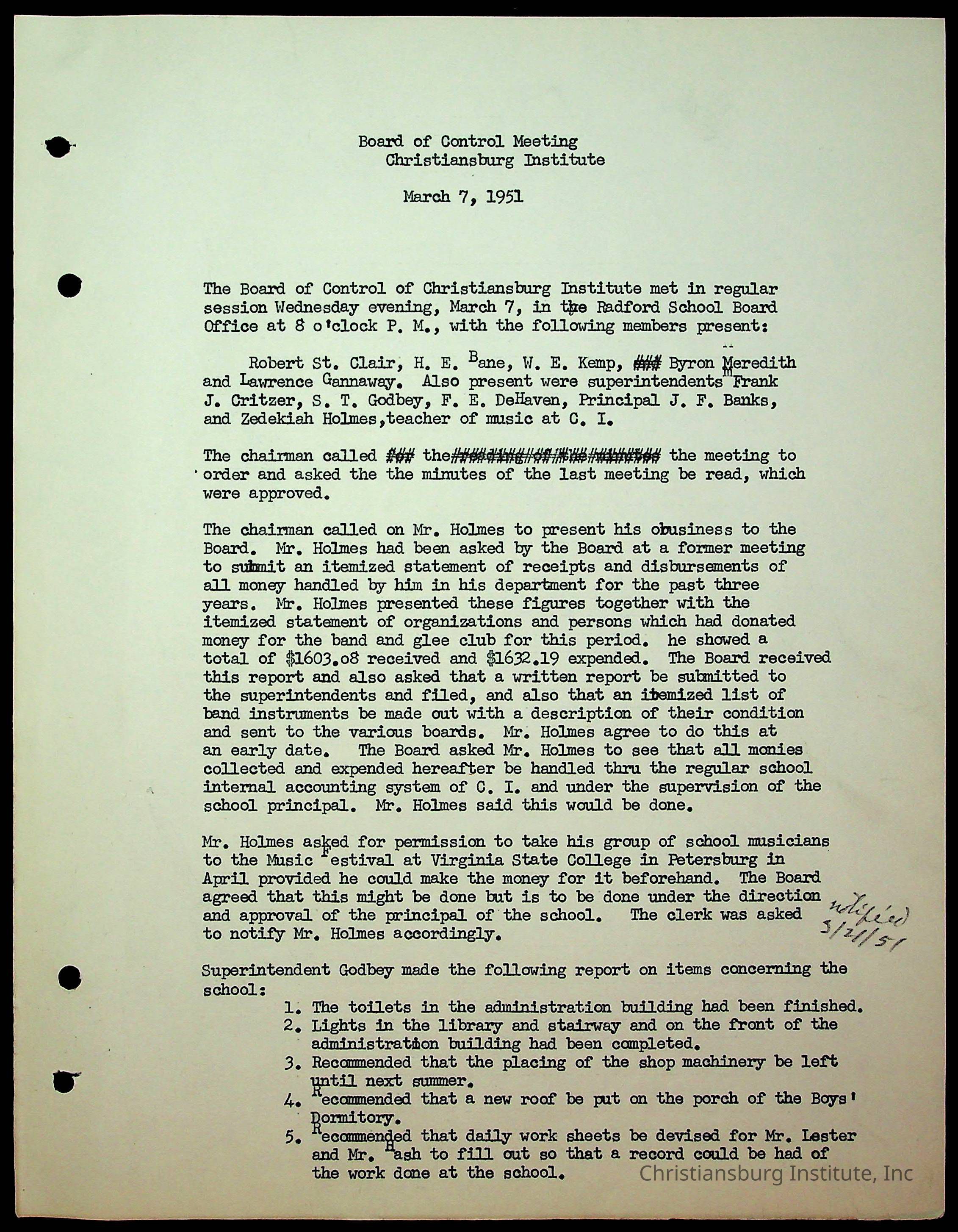 Christiansburg Institute Minutes, 1947-1951