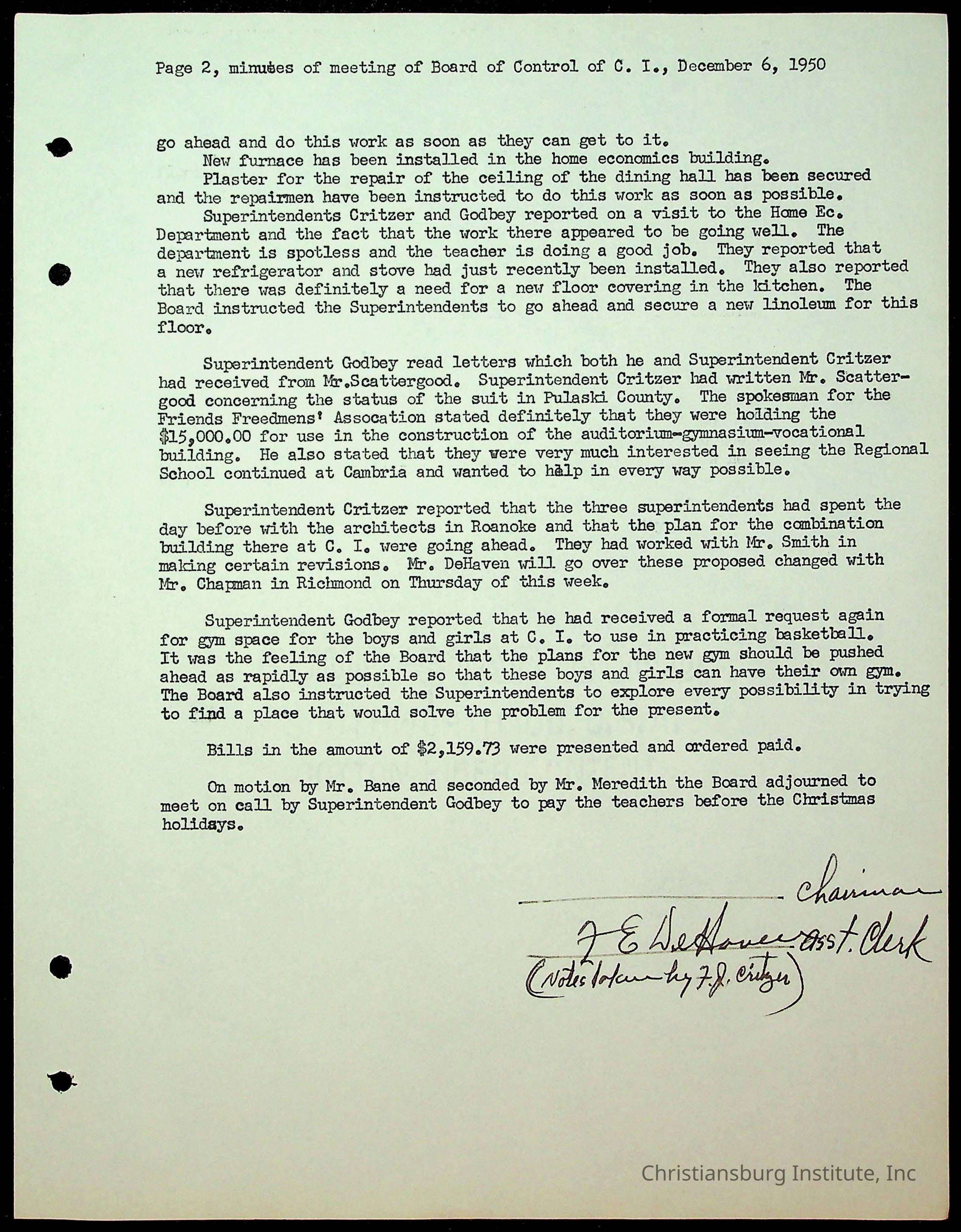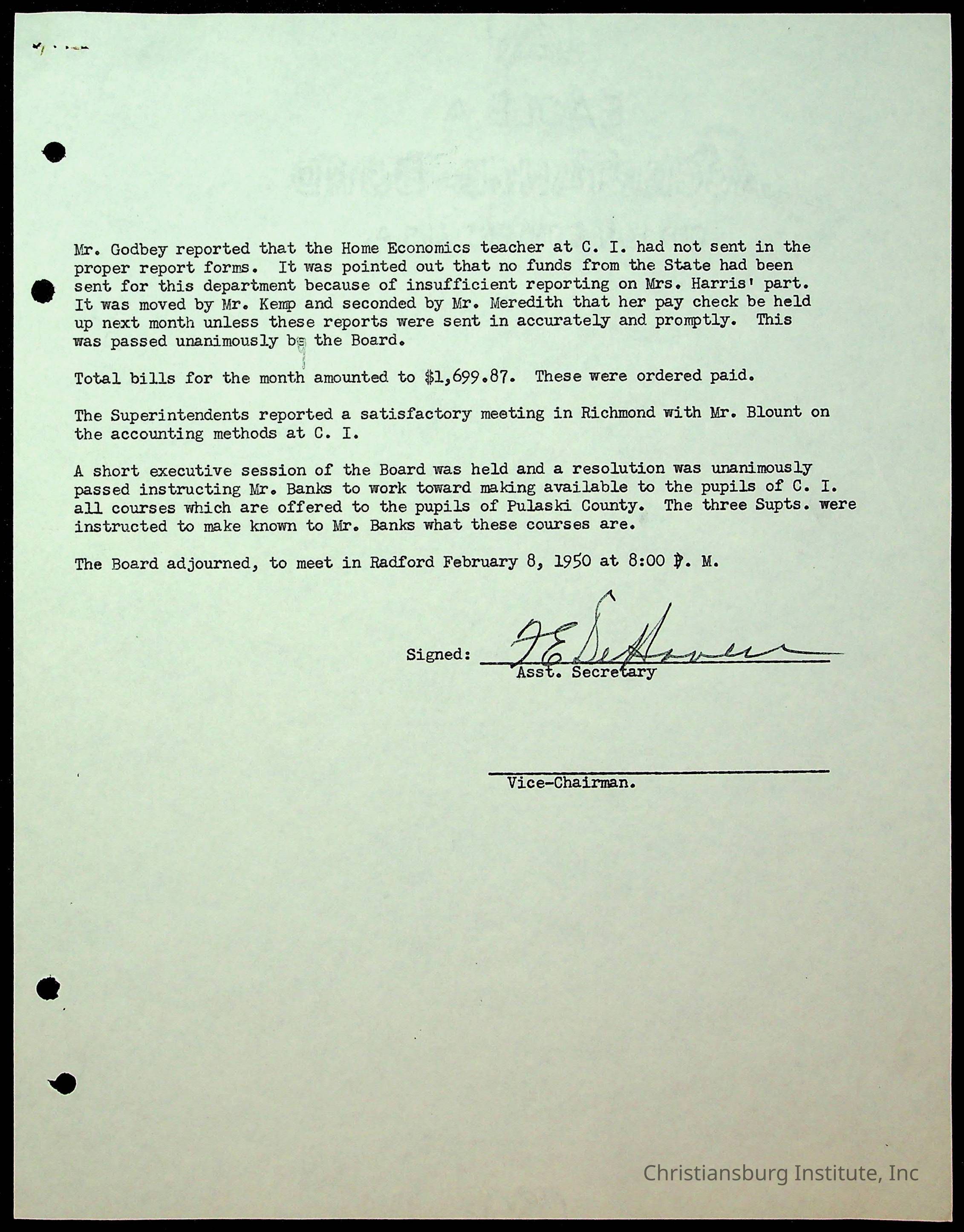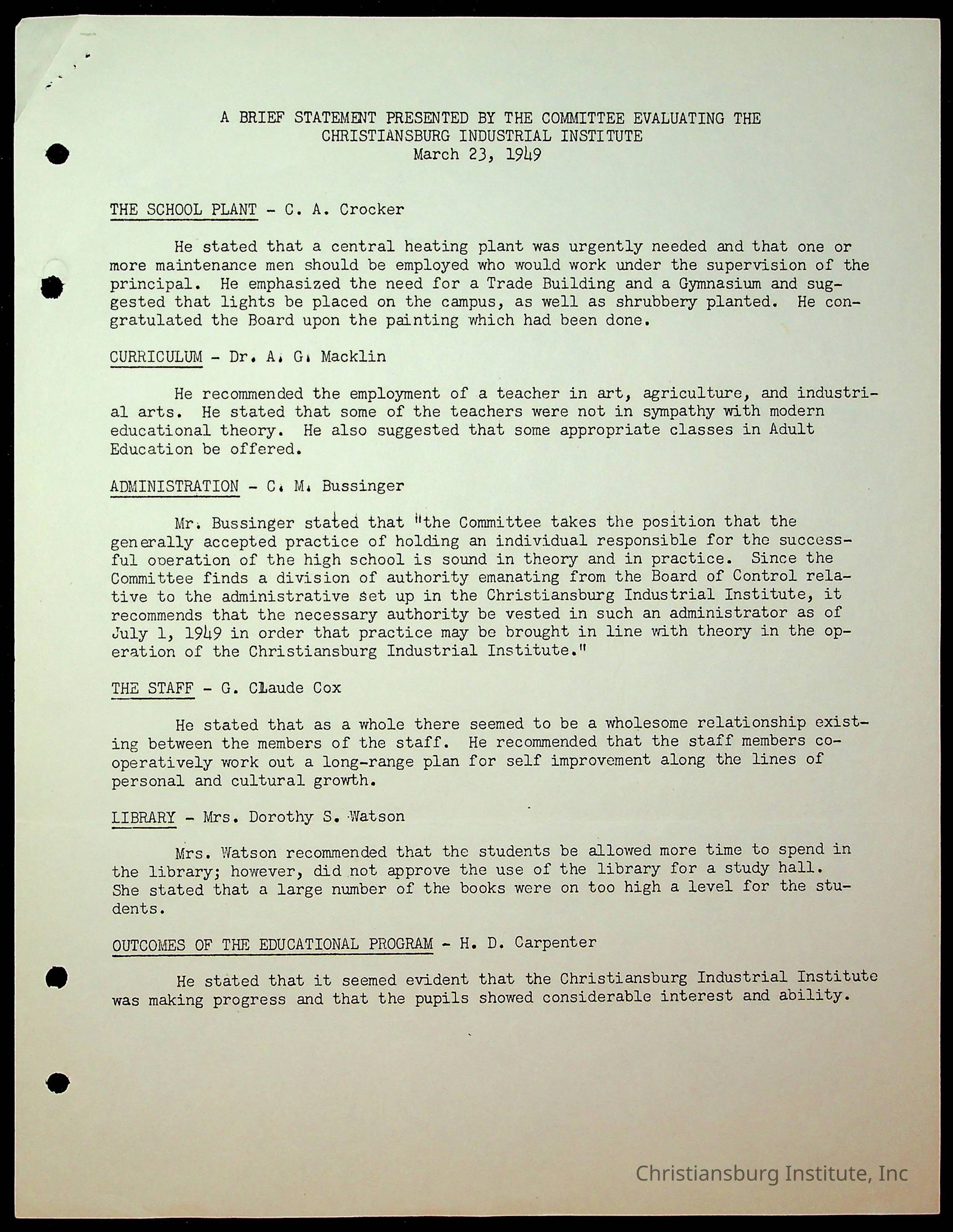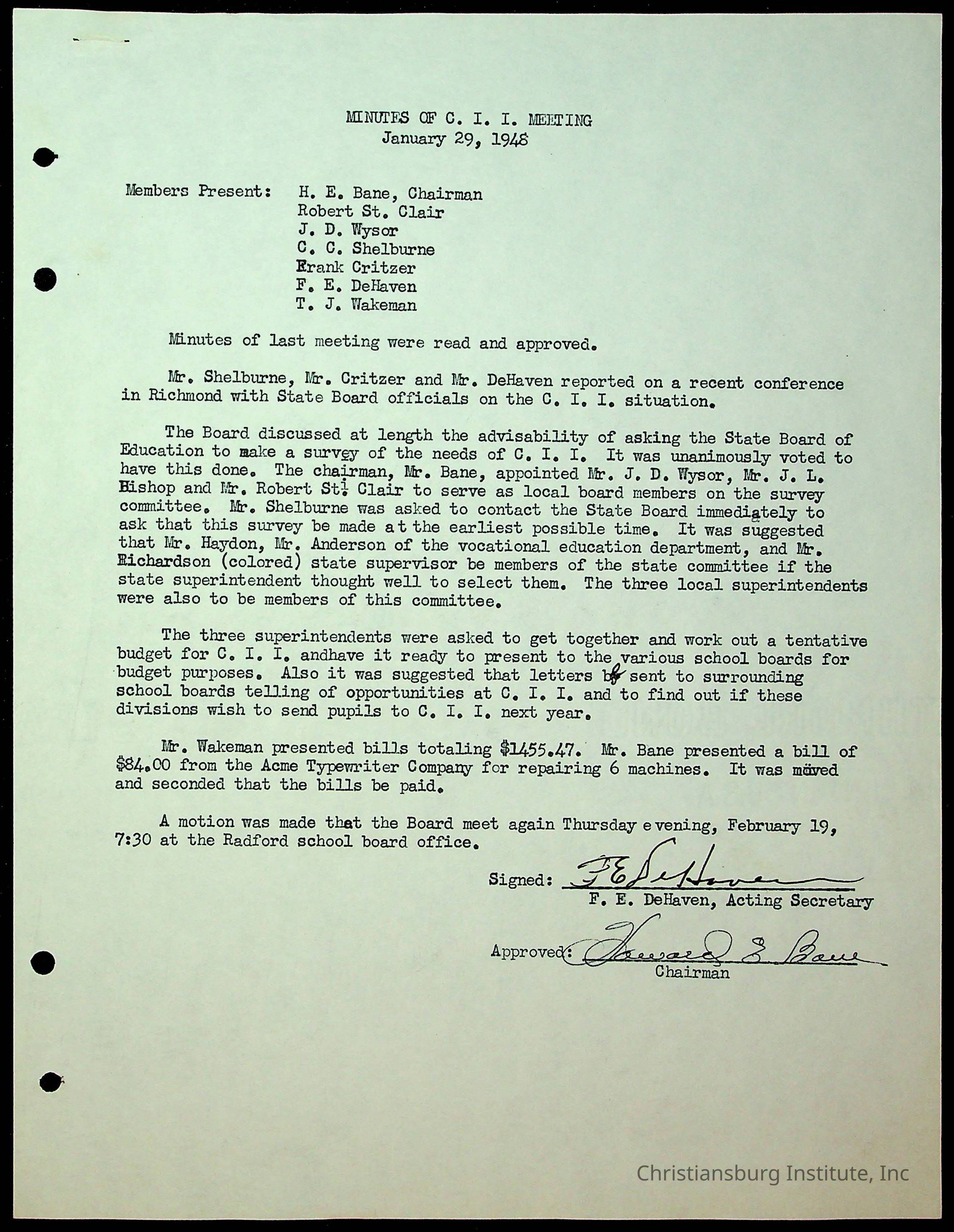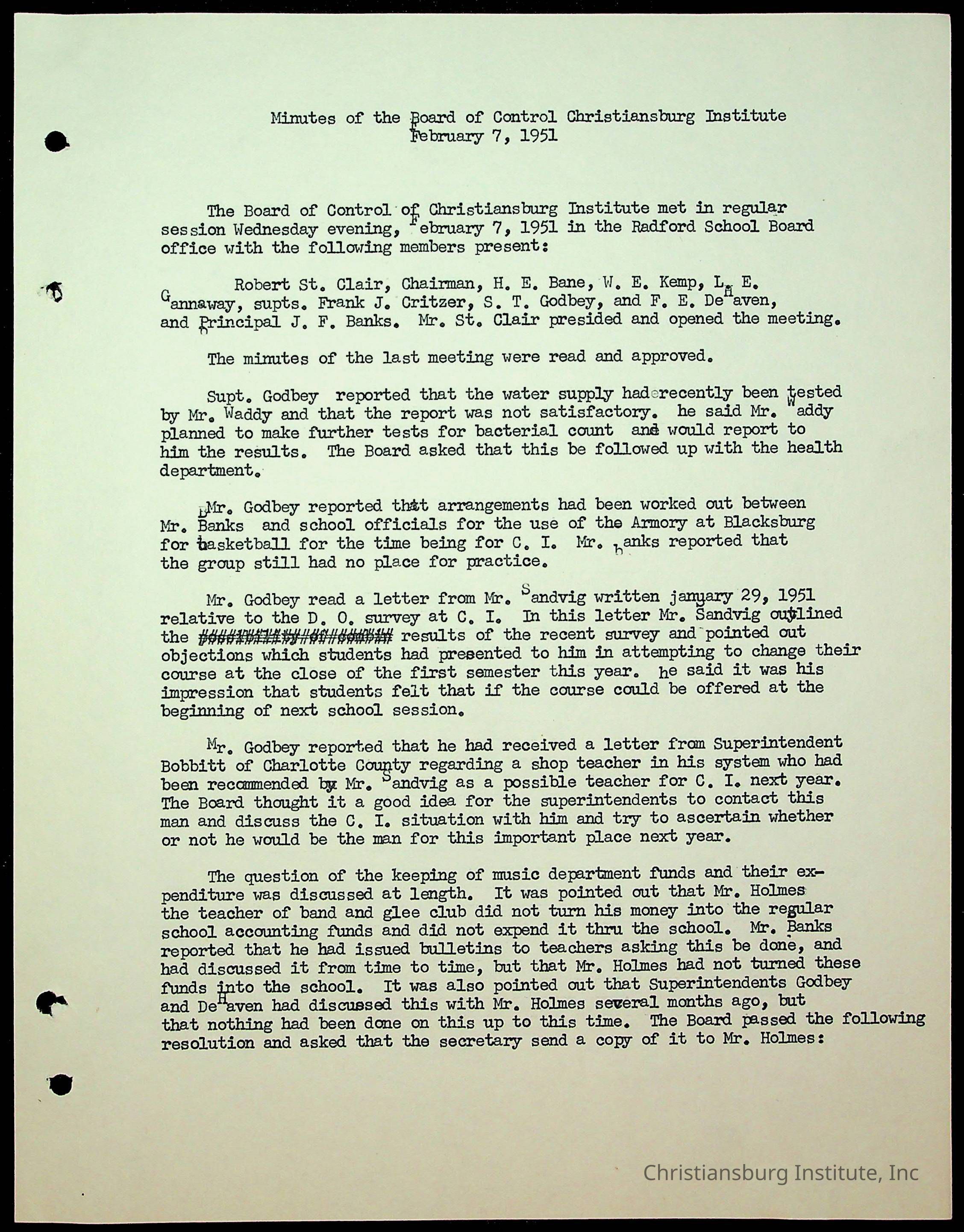 Christiansburg Institute Minutes, 1947-1951