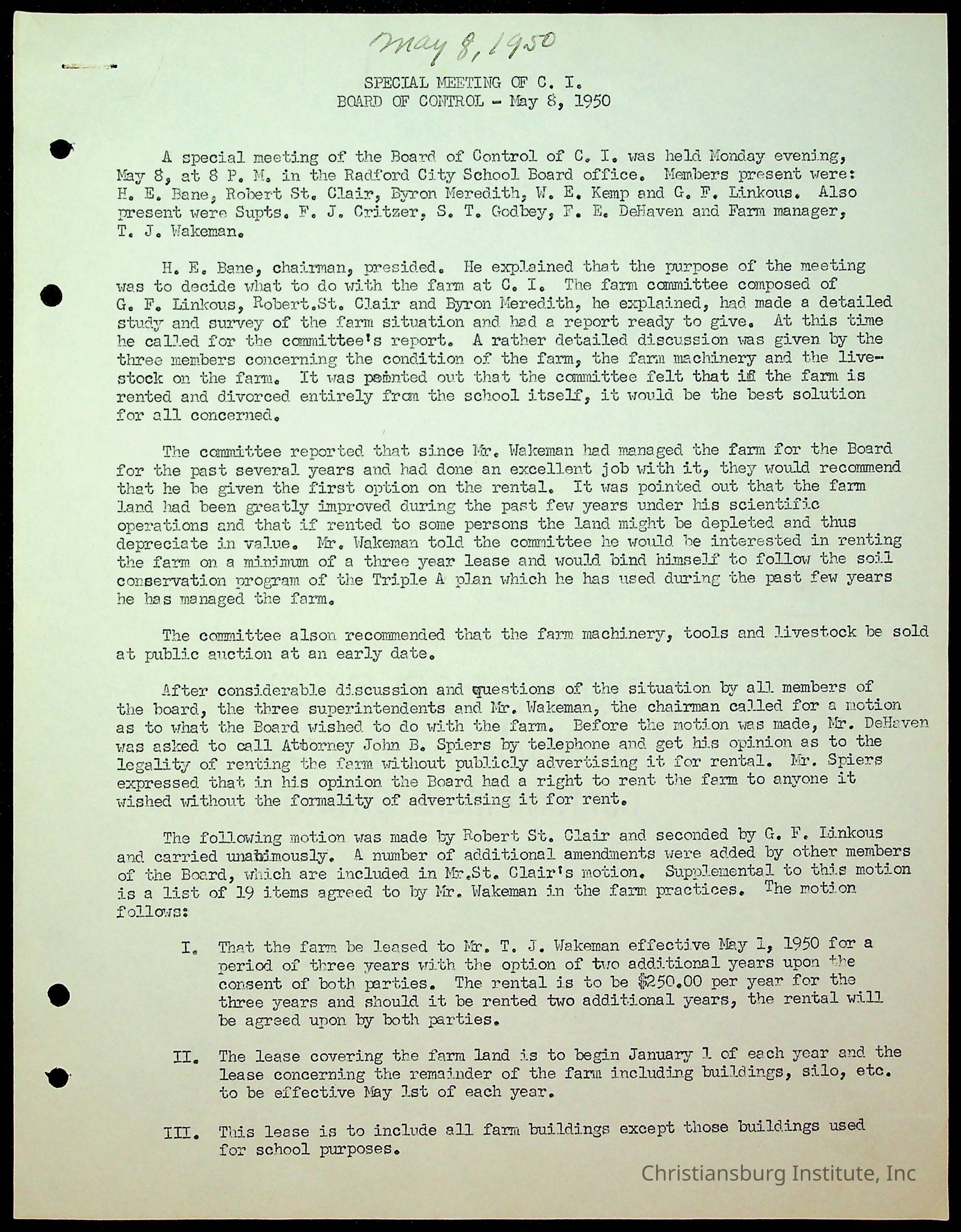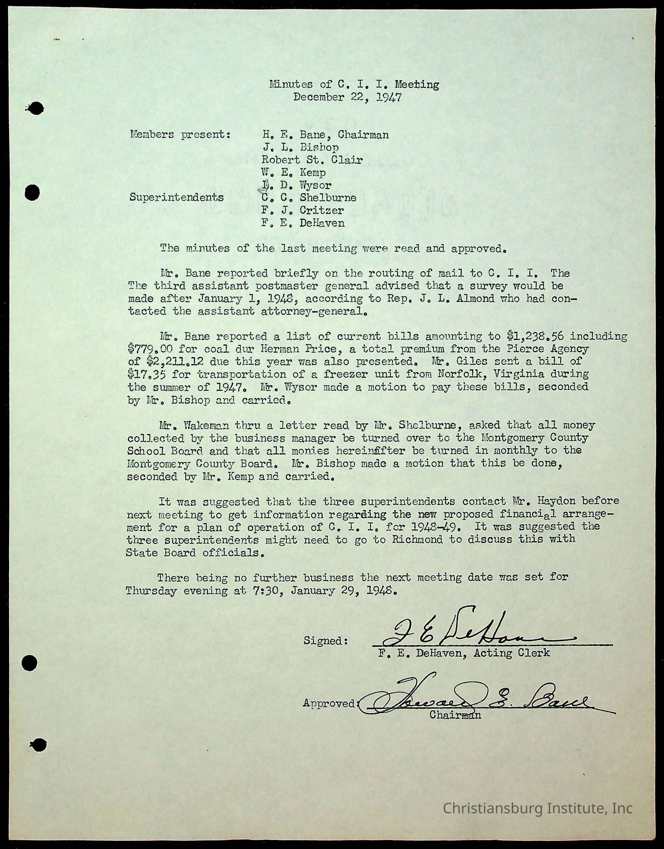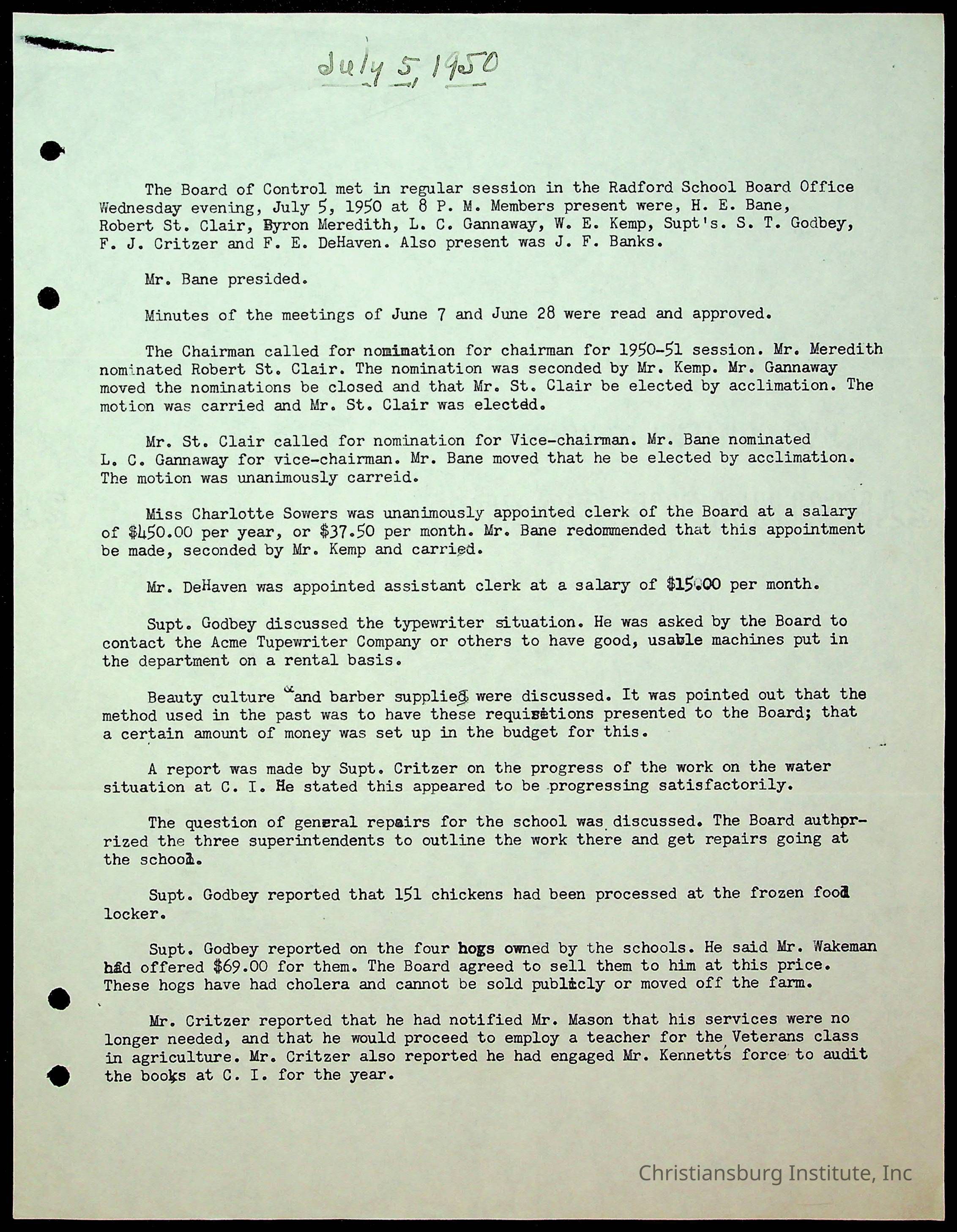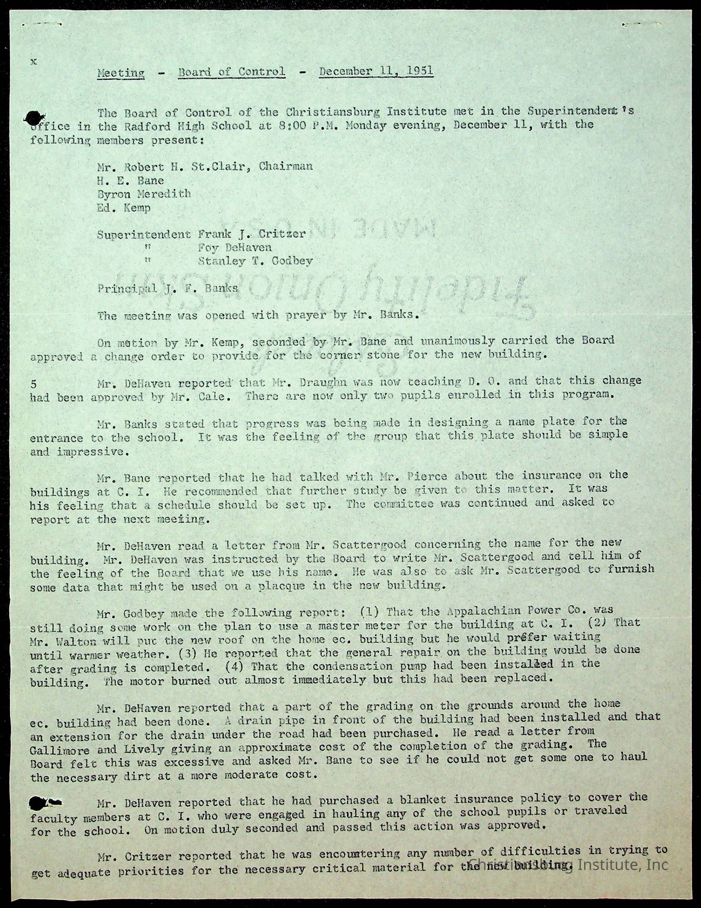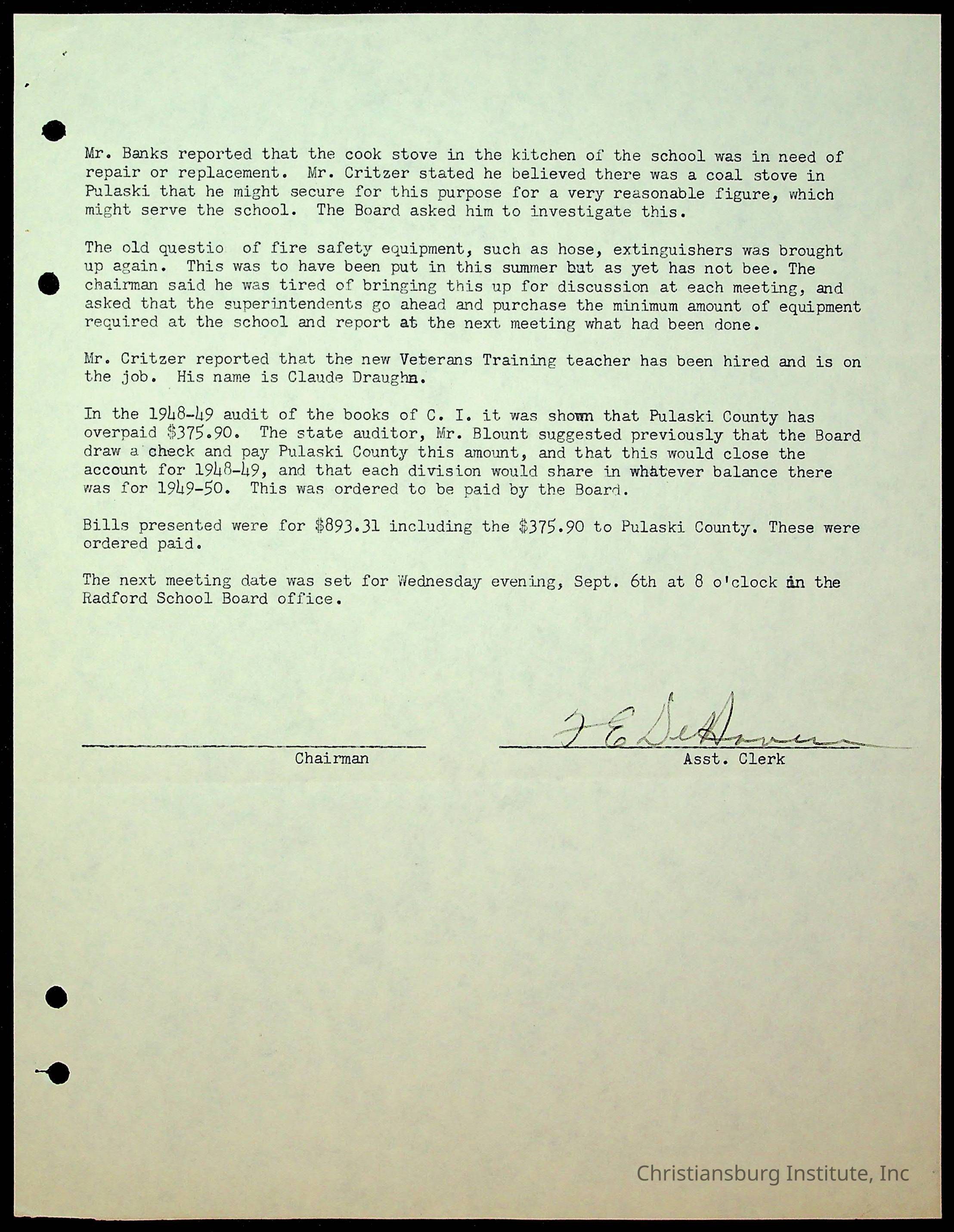 Christiansburg Institute Minutes, 1947-1951
