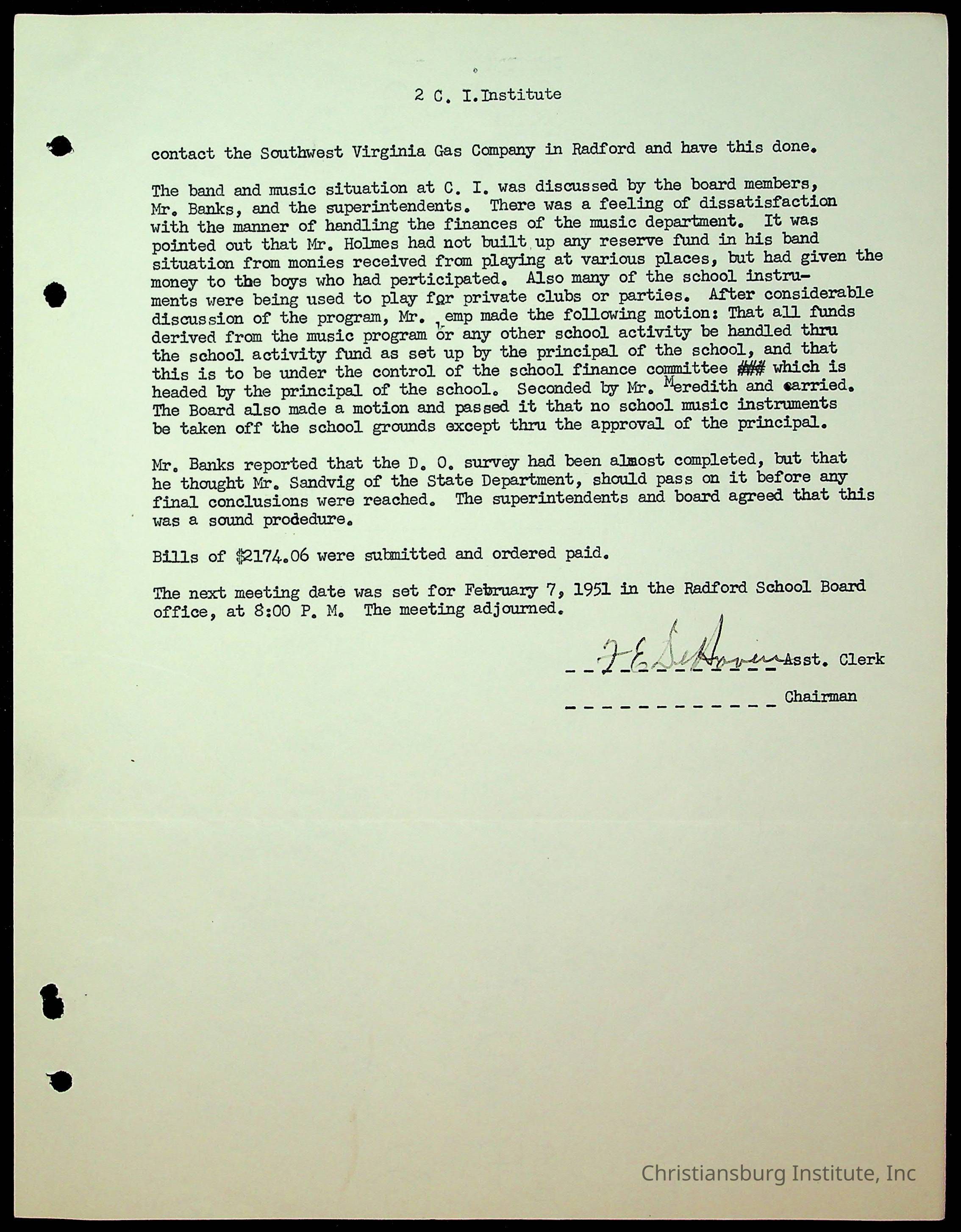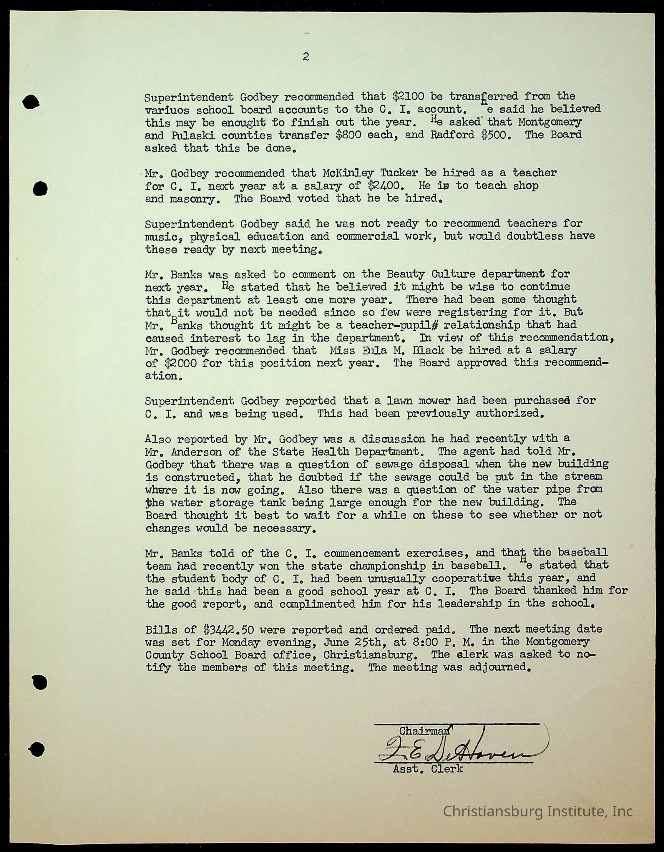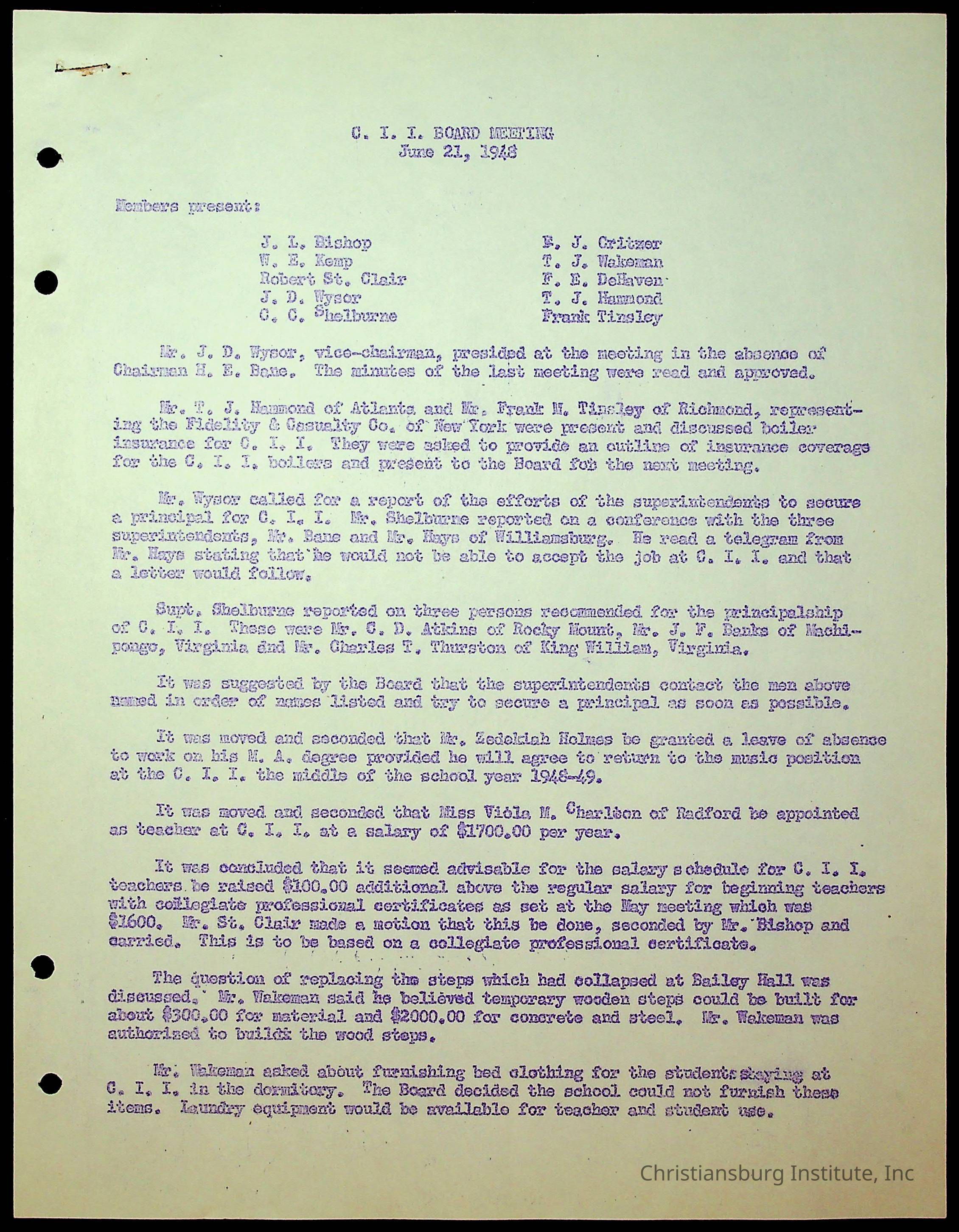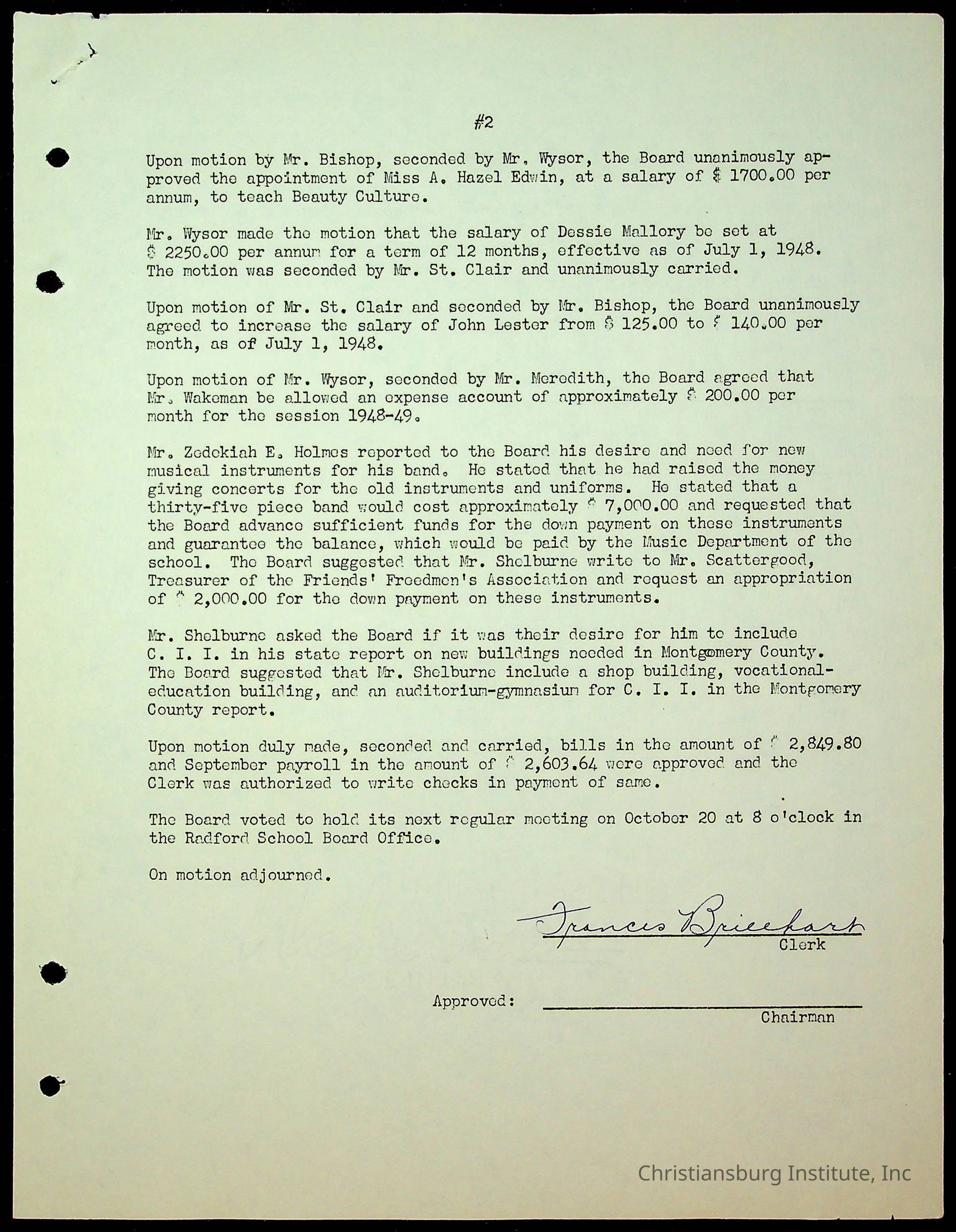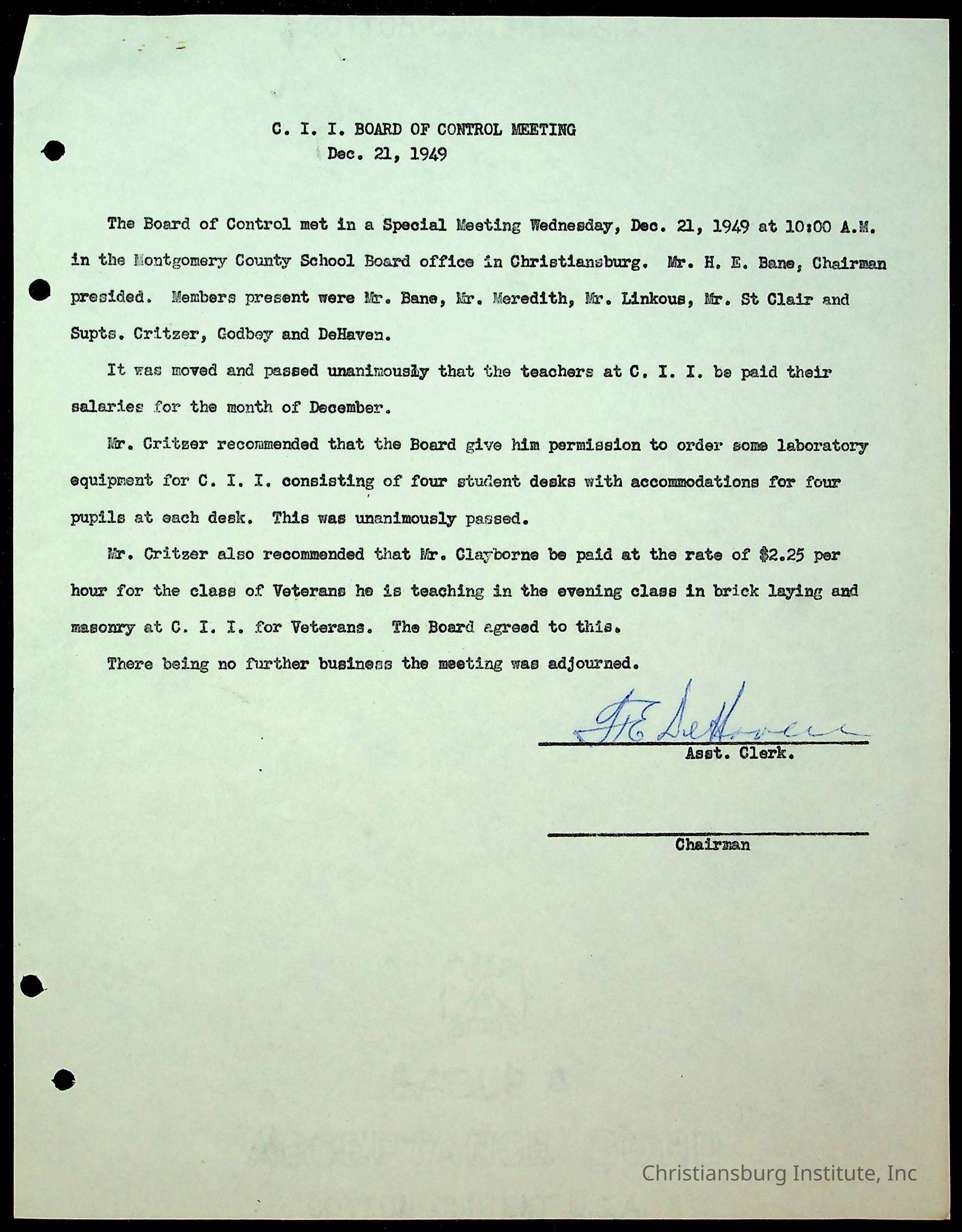 Christiansburg Institute Minutes, 1947-1951
