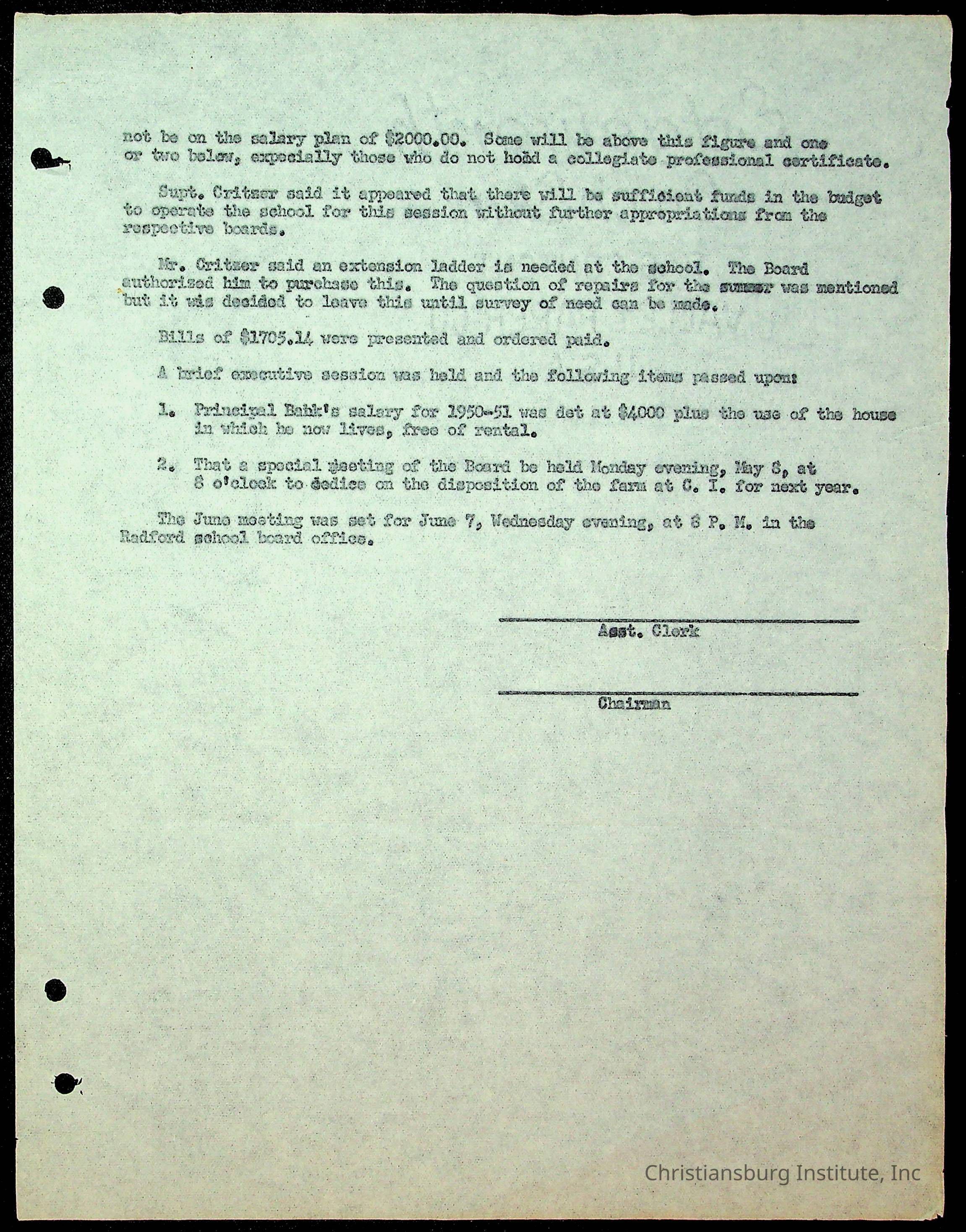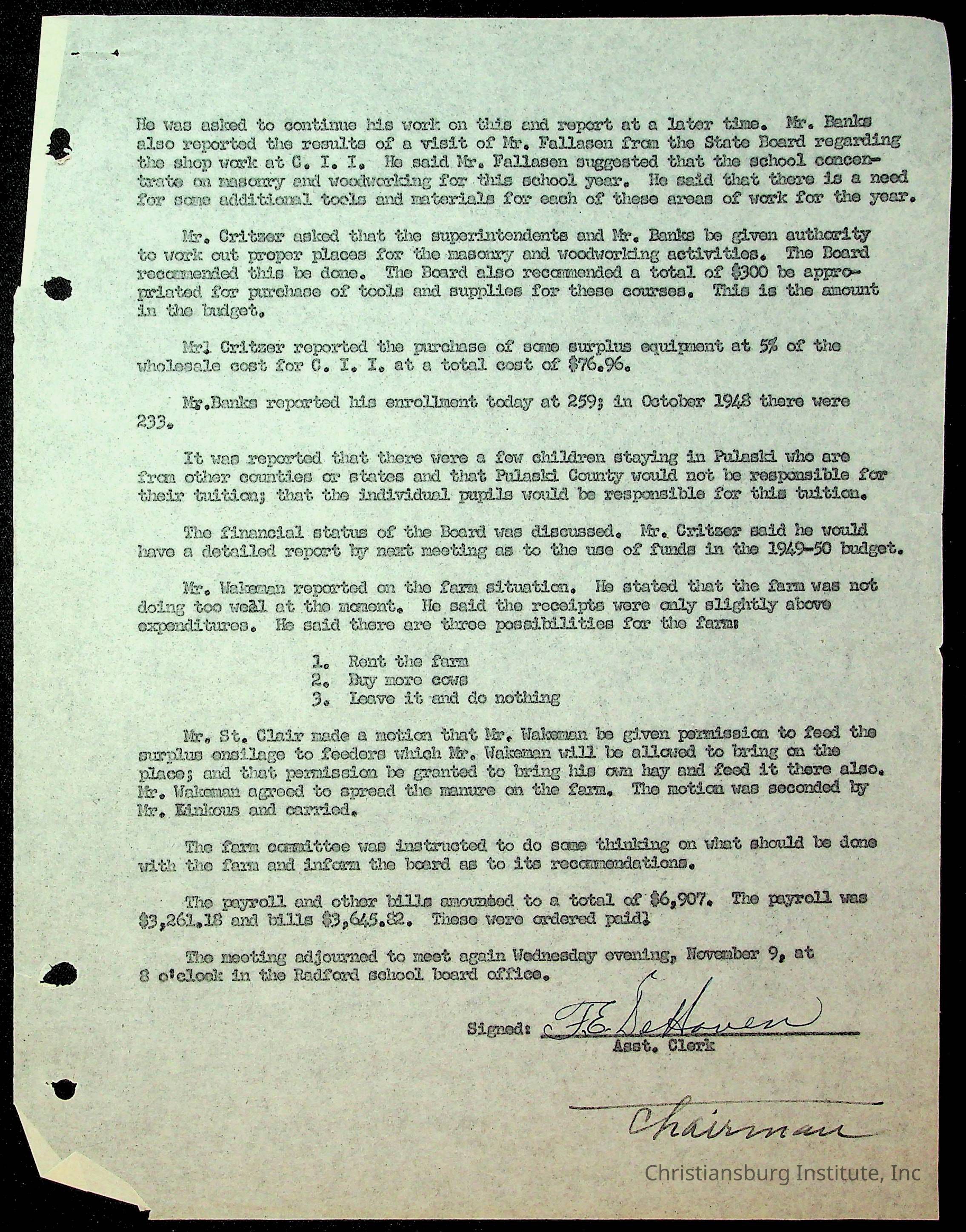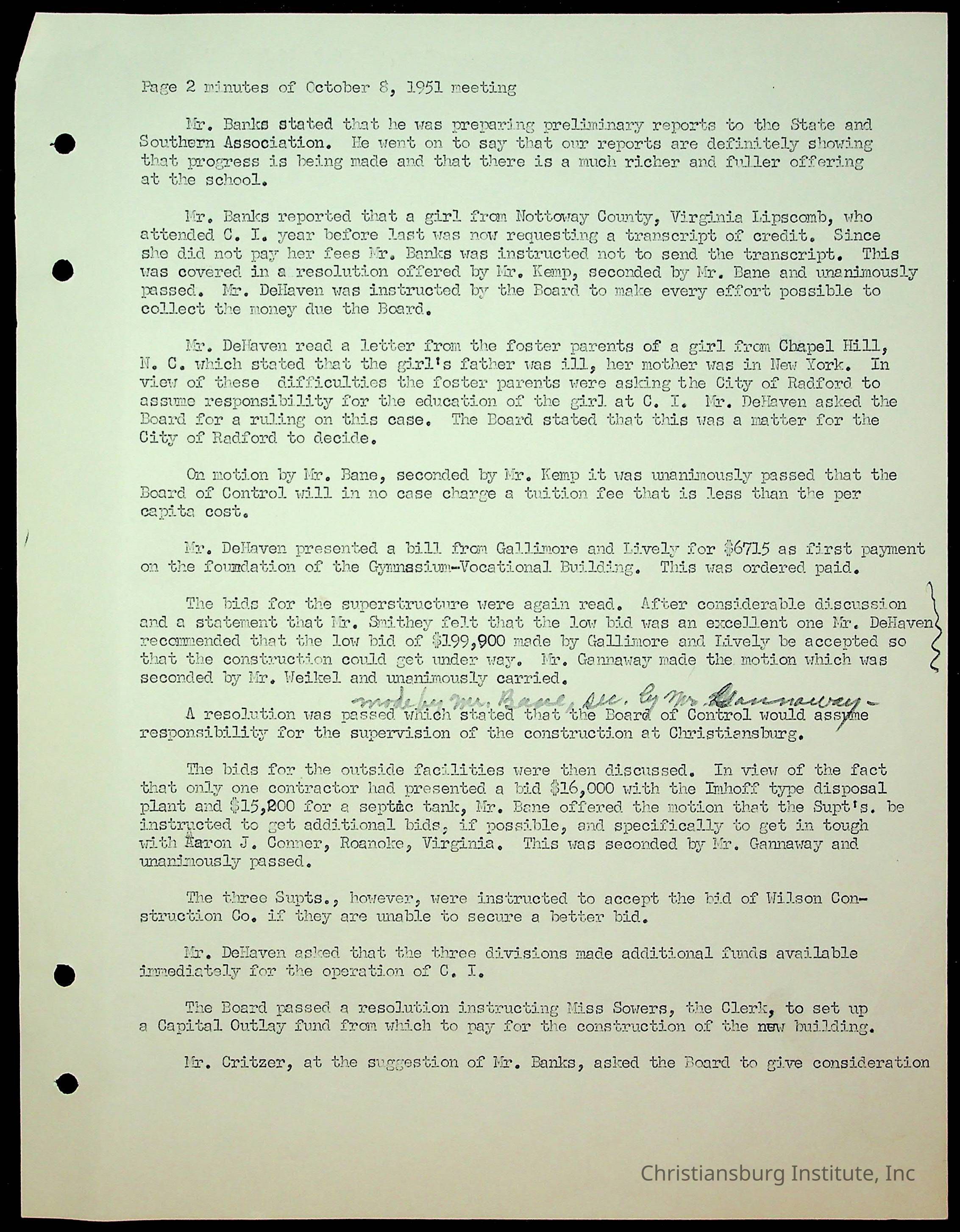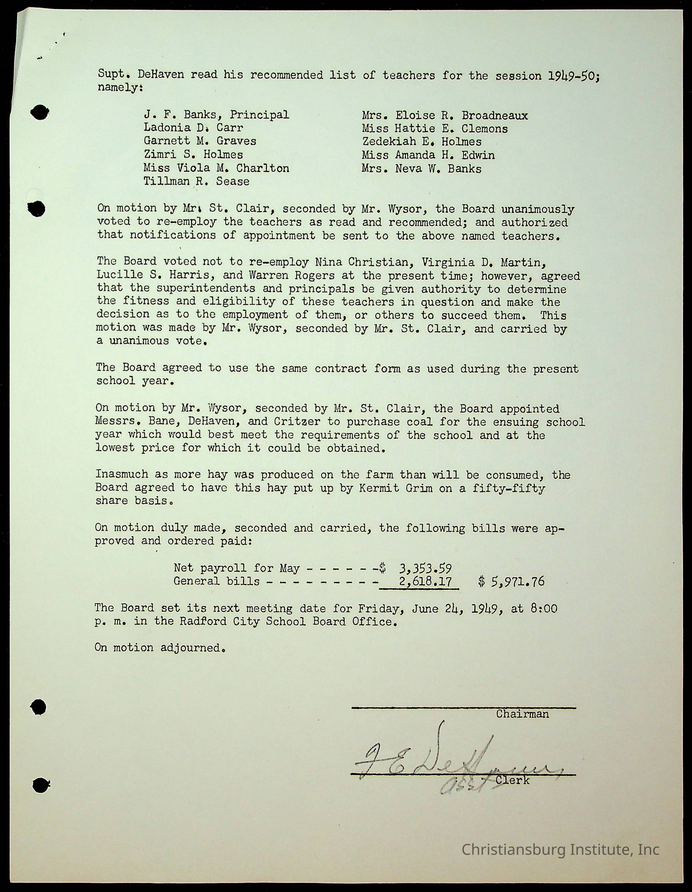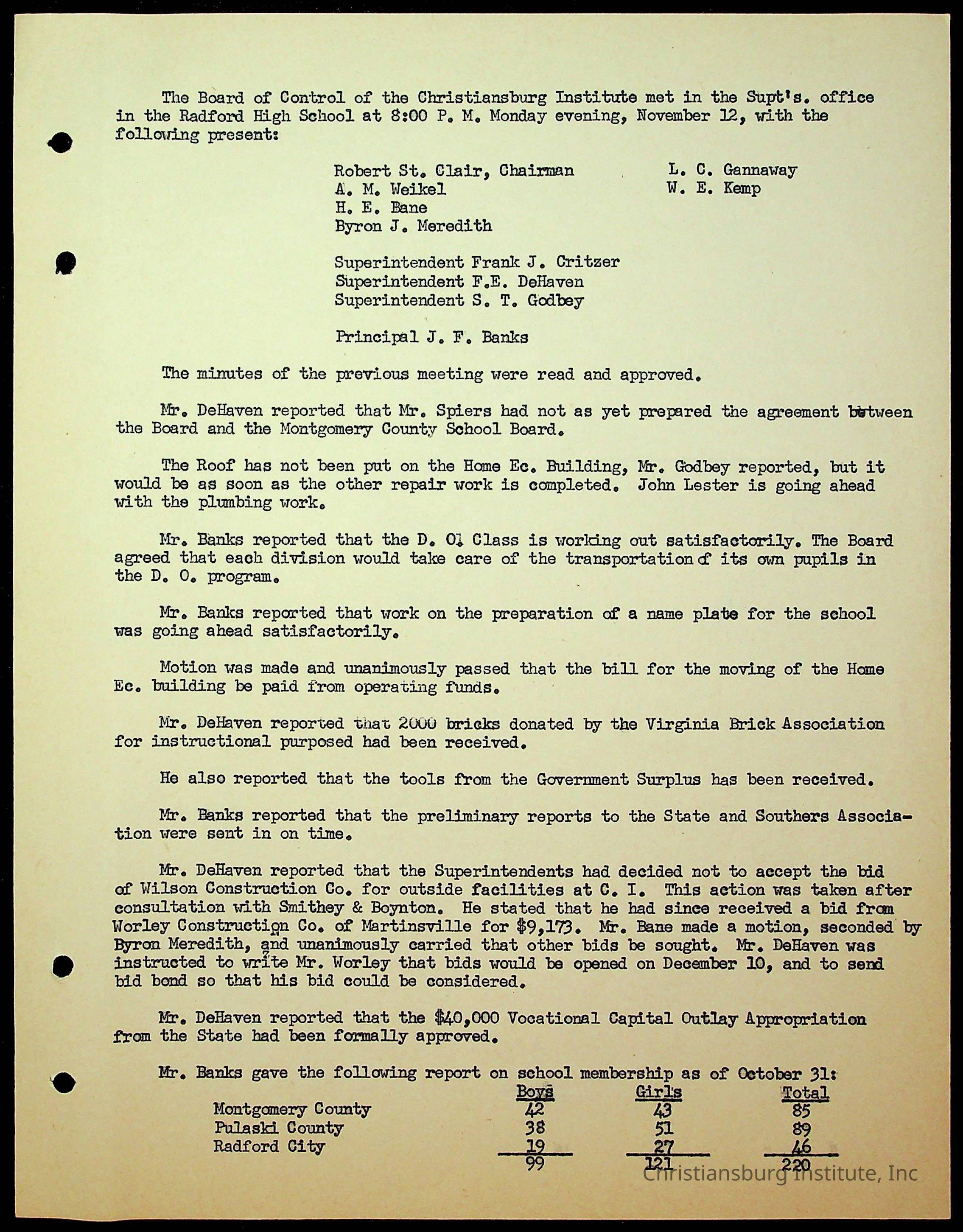 Christiansburg Institute Minutes, 1947-1951