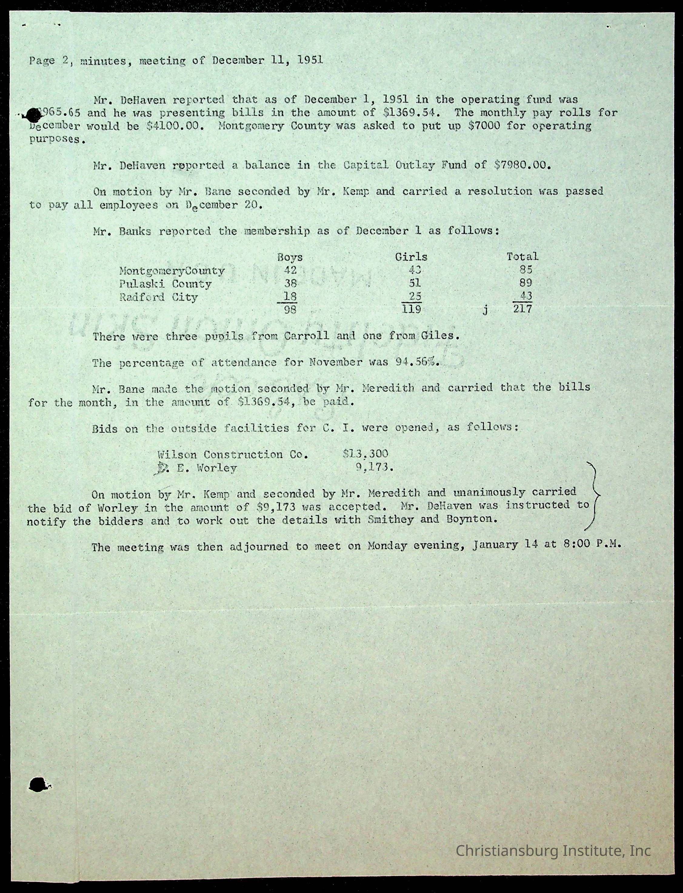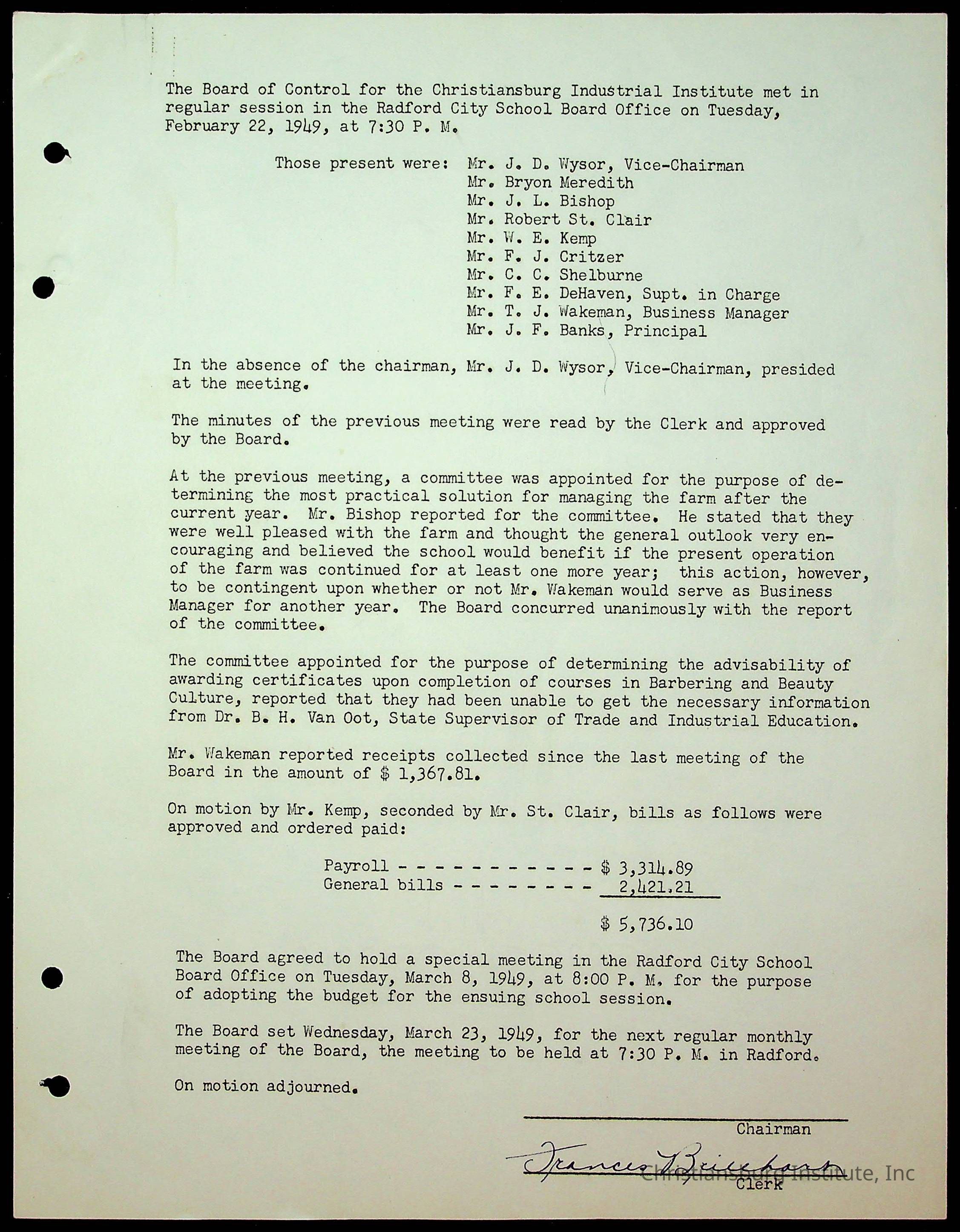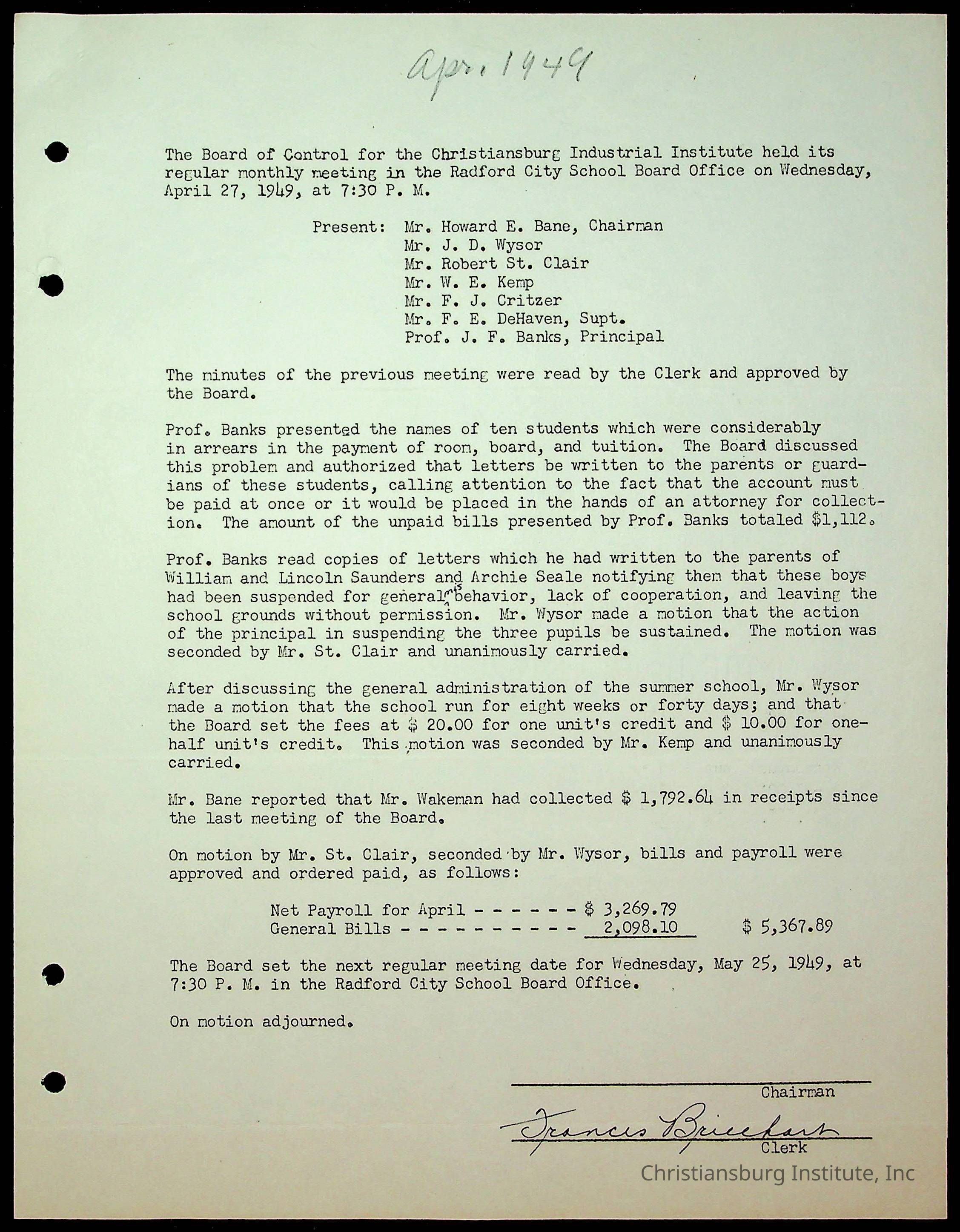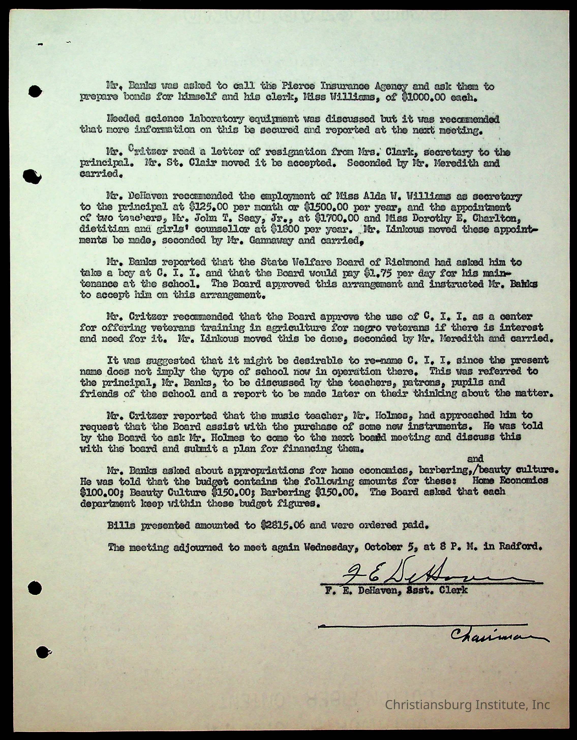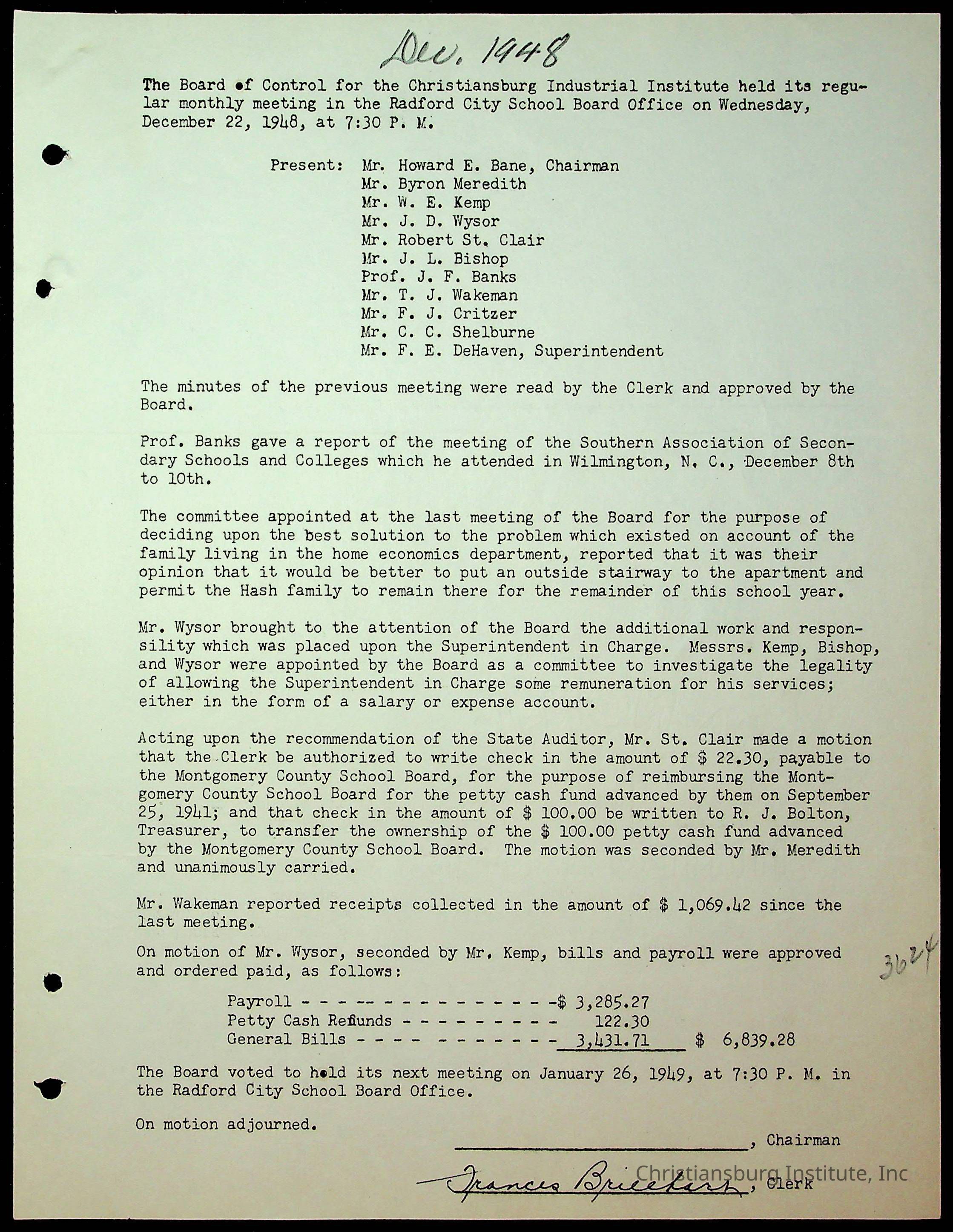 Christiansburg Institute Minutes, 1947-1951