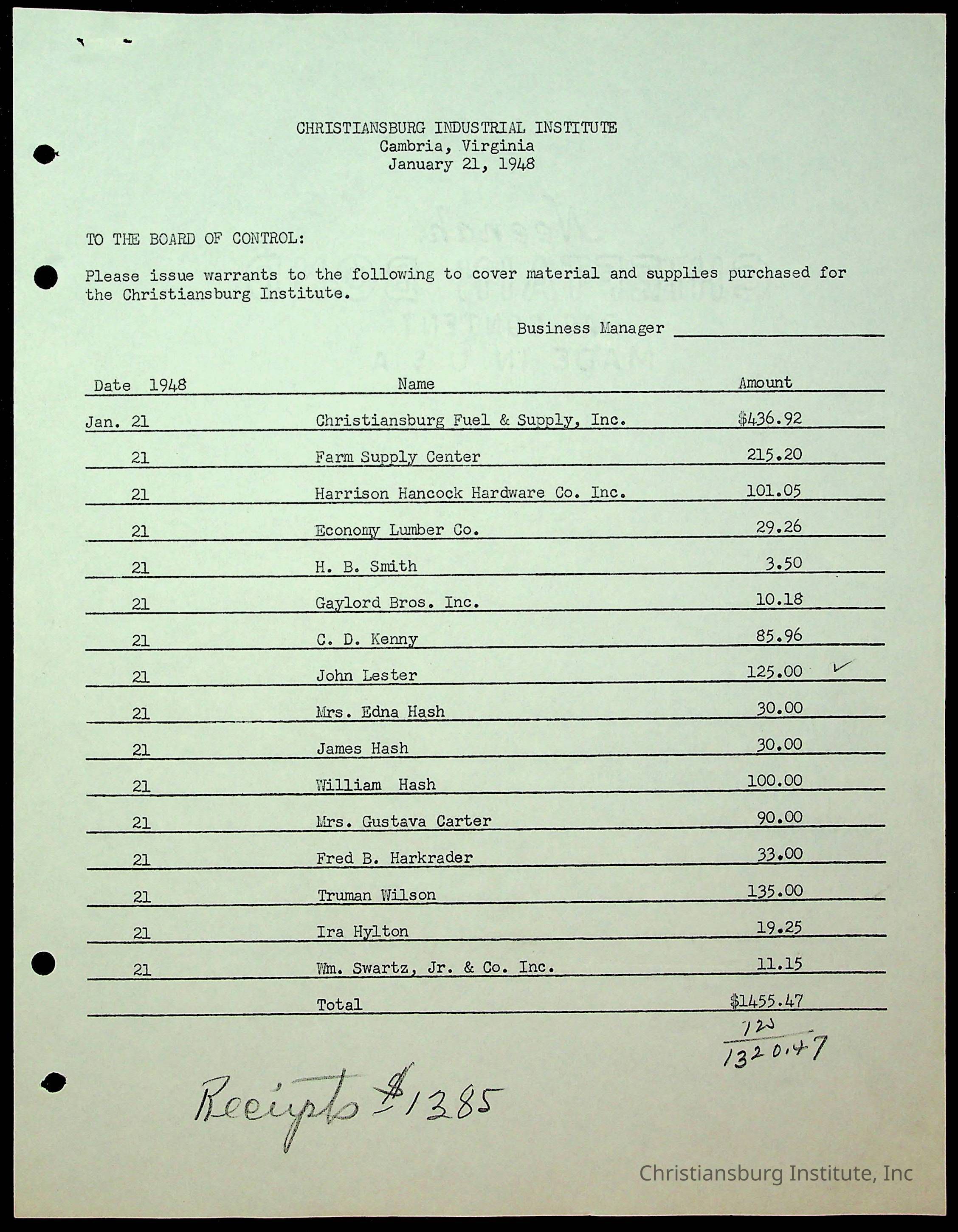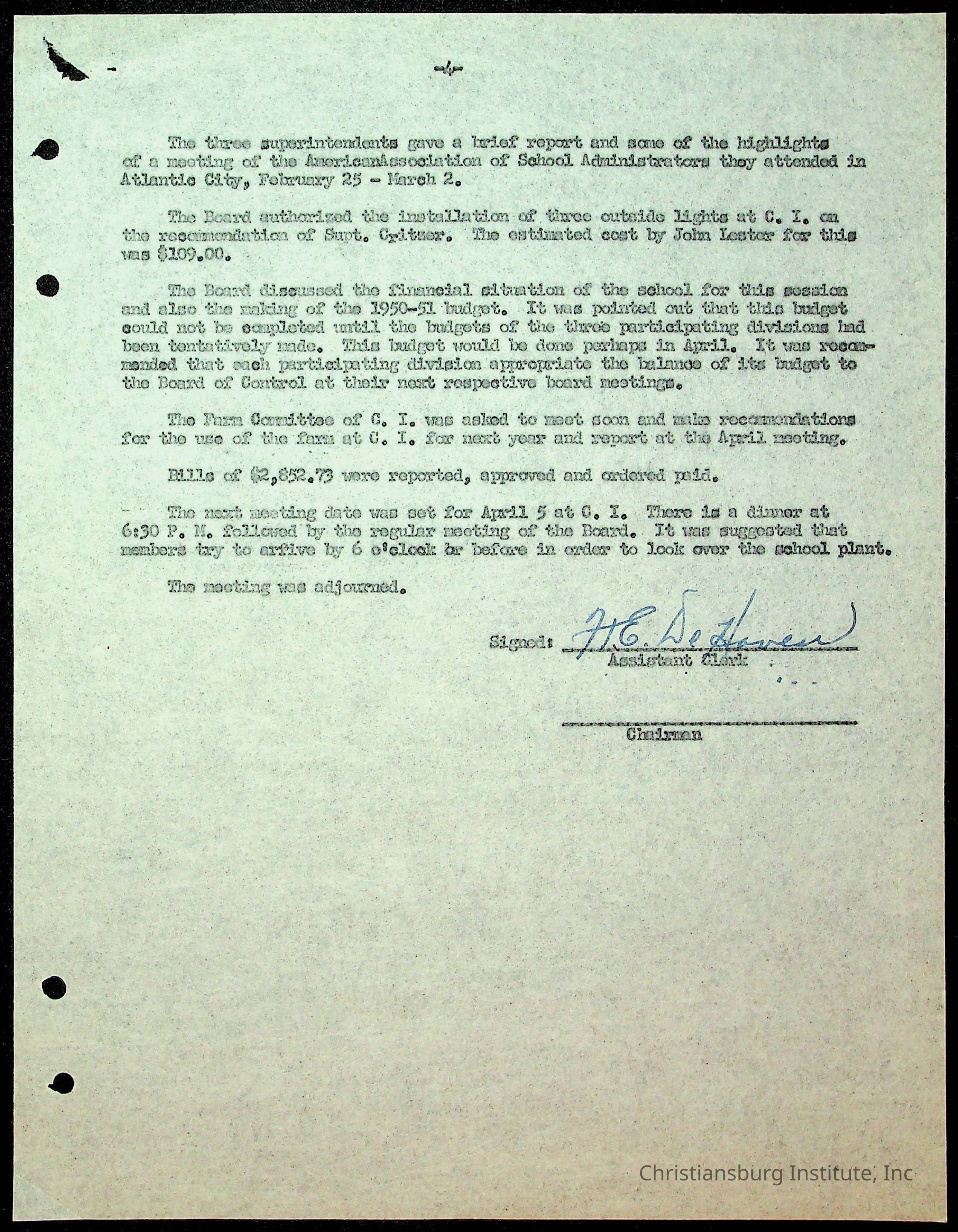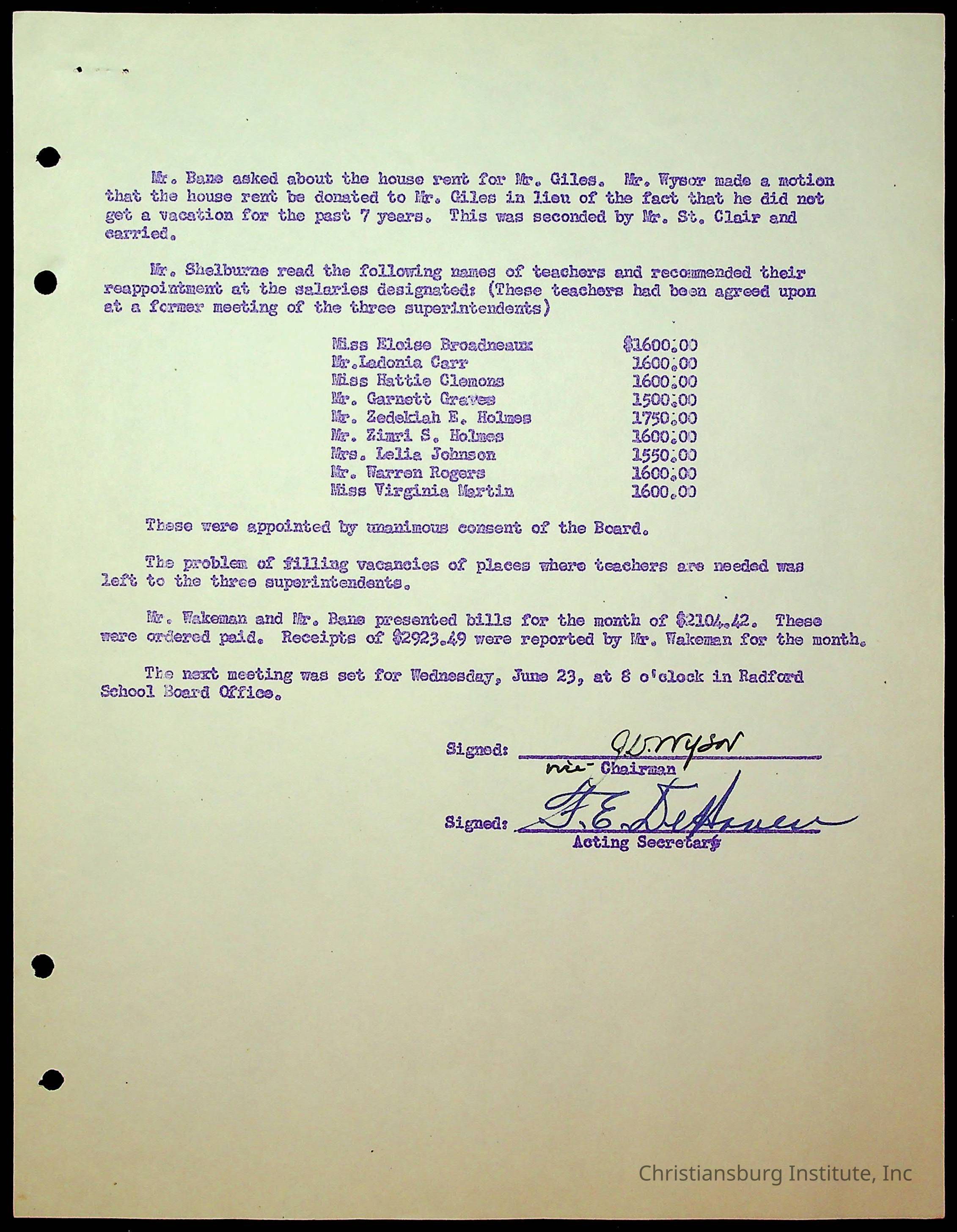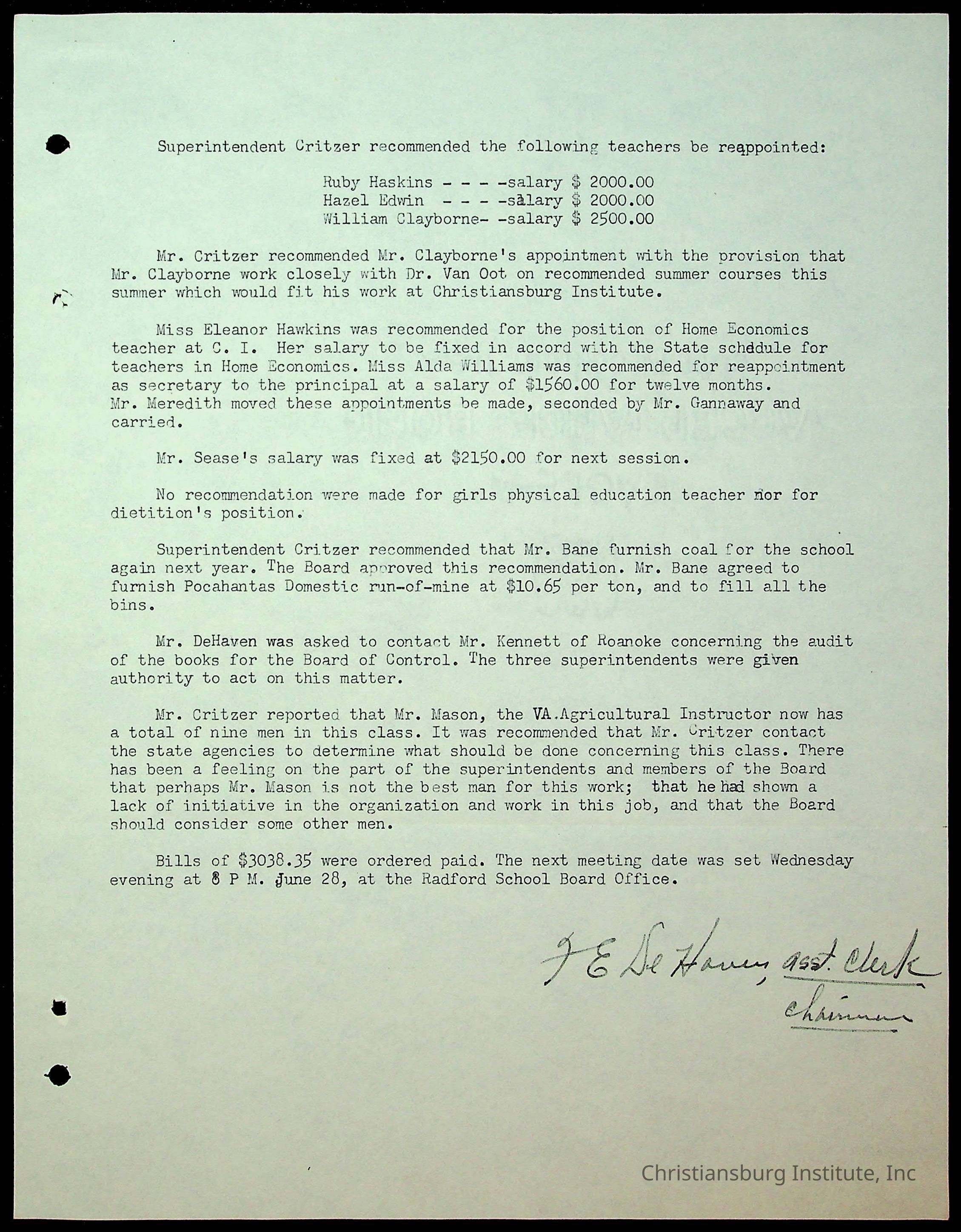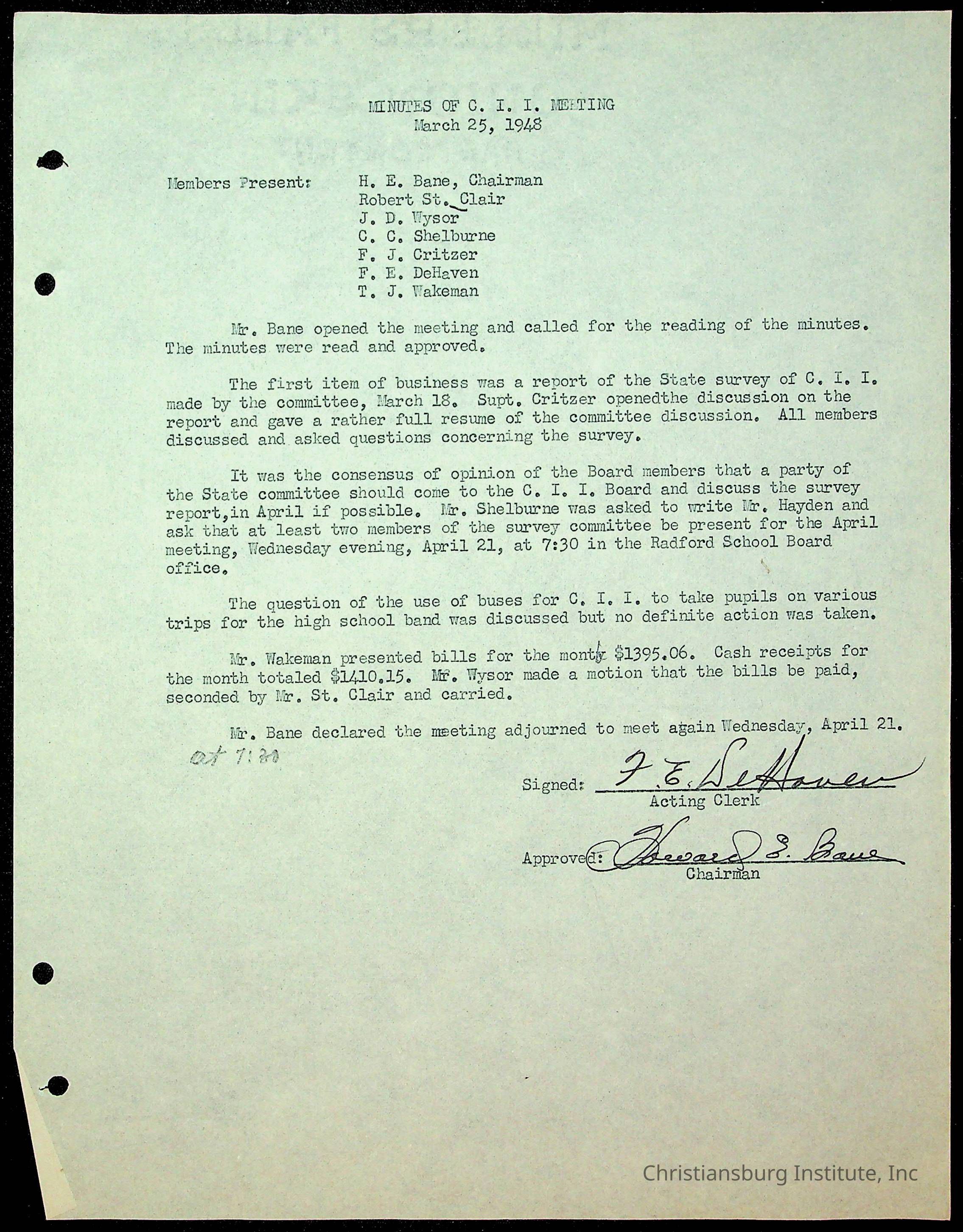 Christiansburg Institute Minutes, 1947-1951