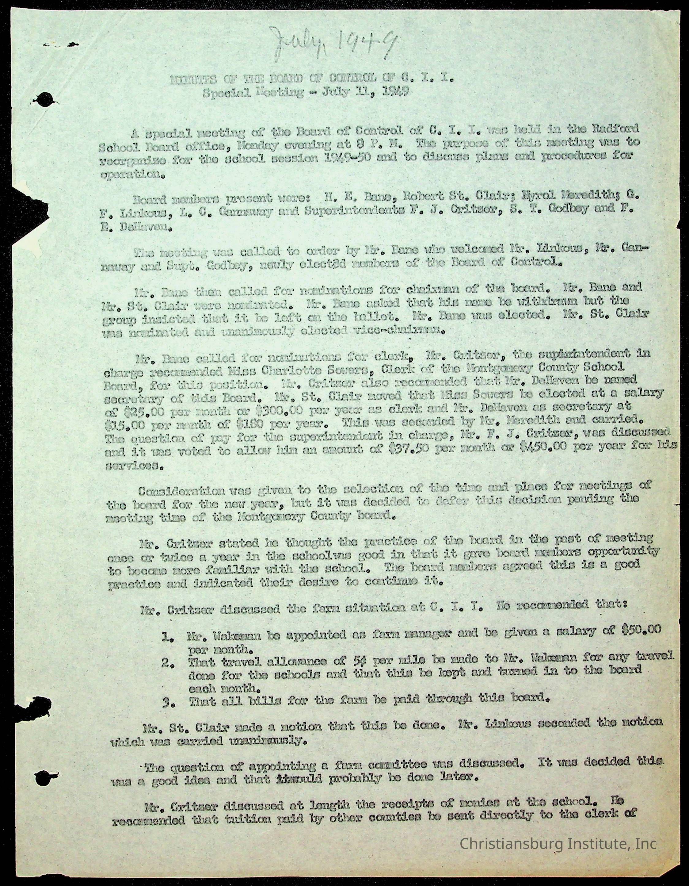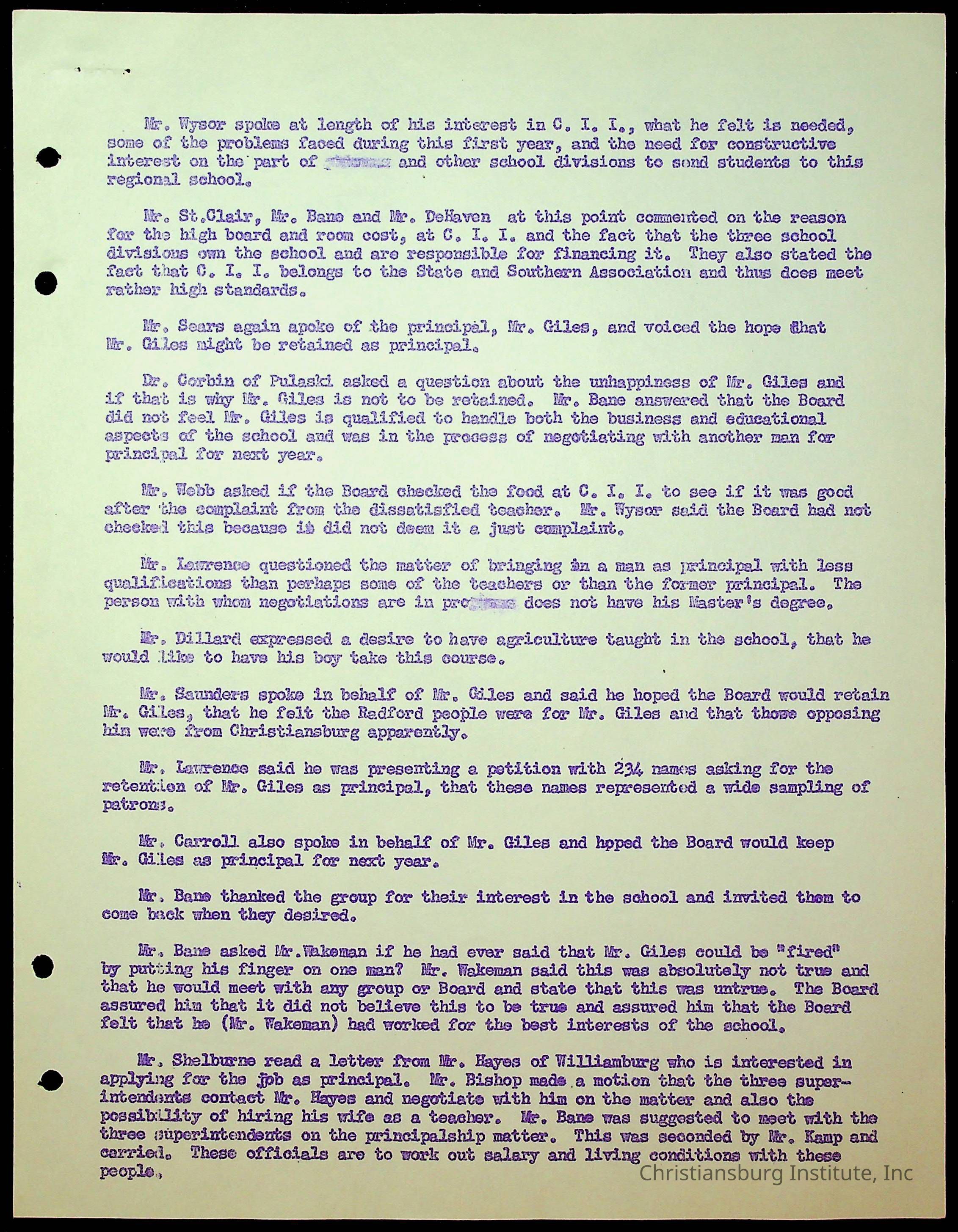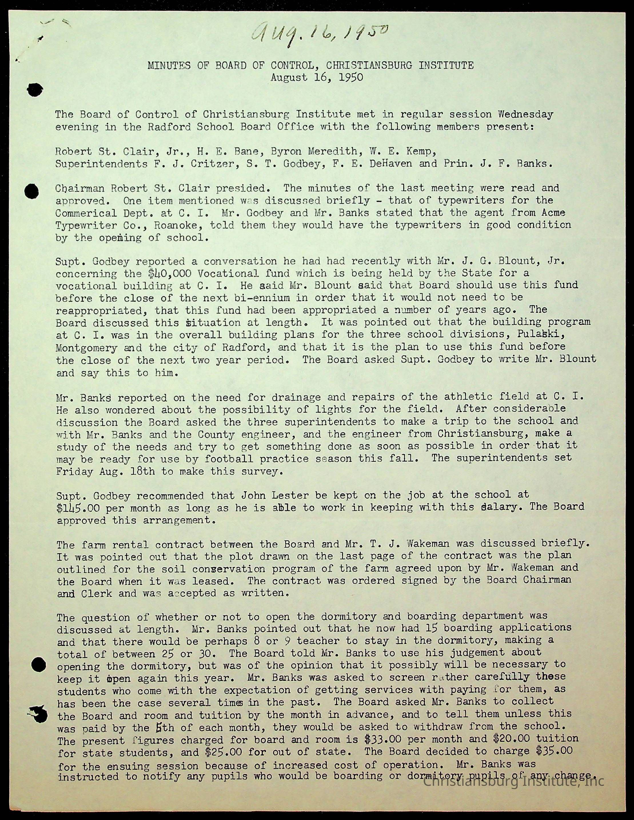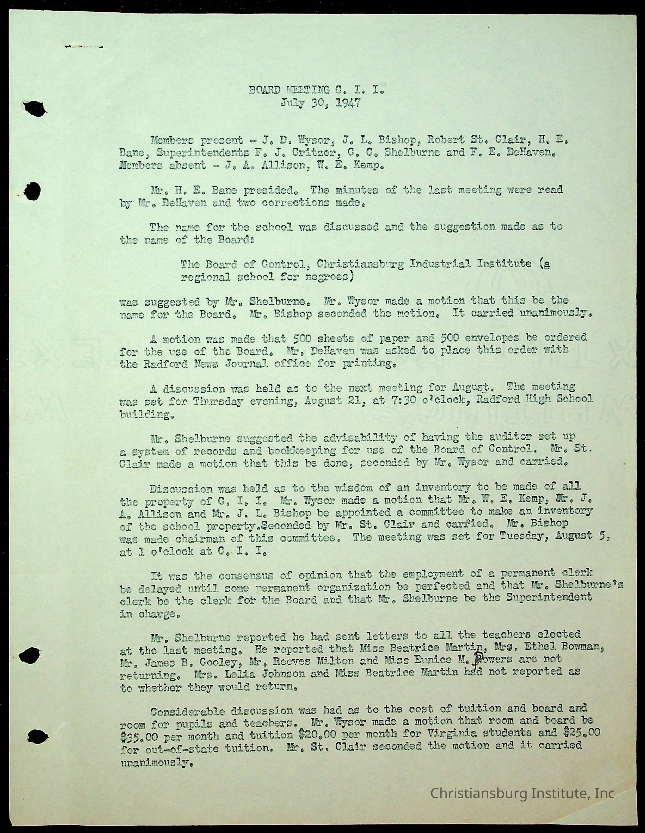 An archive of the Christiansburg Institute board meeting minutes from 1947-1951.