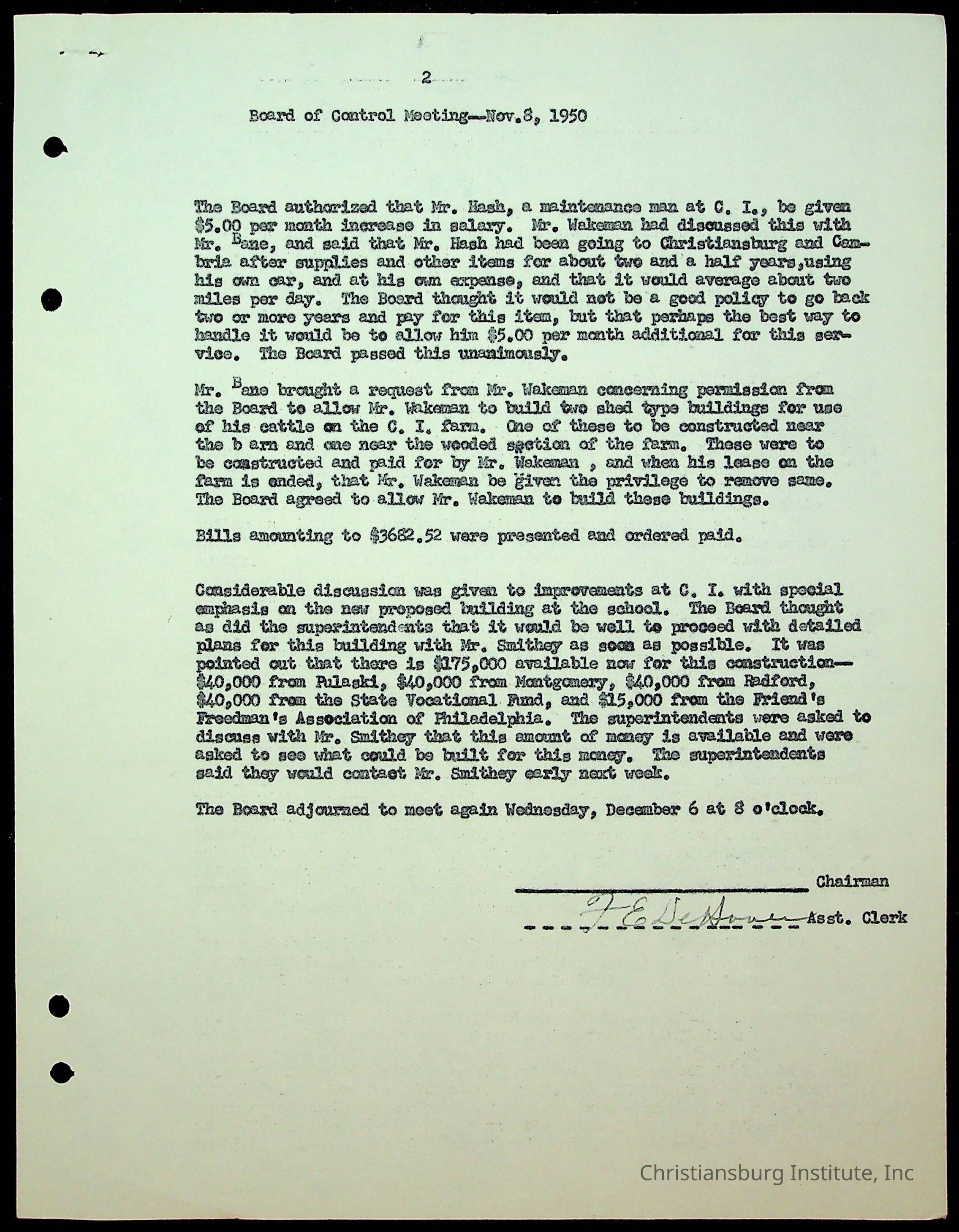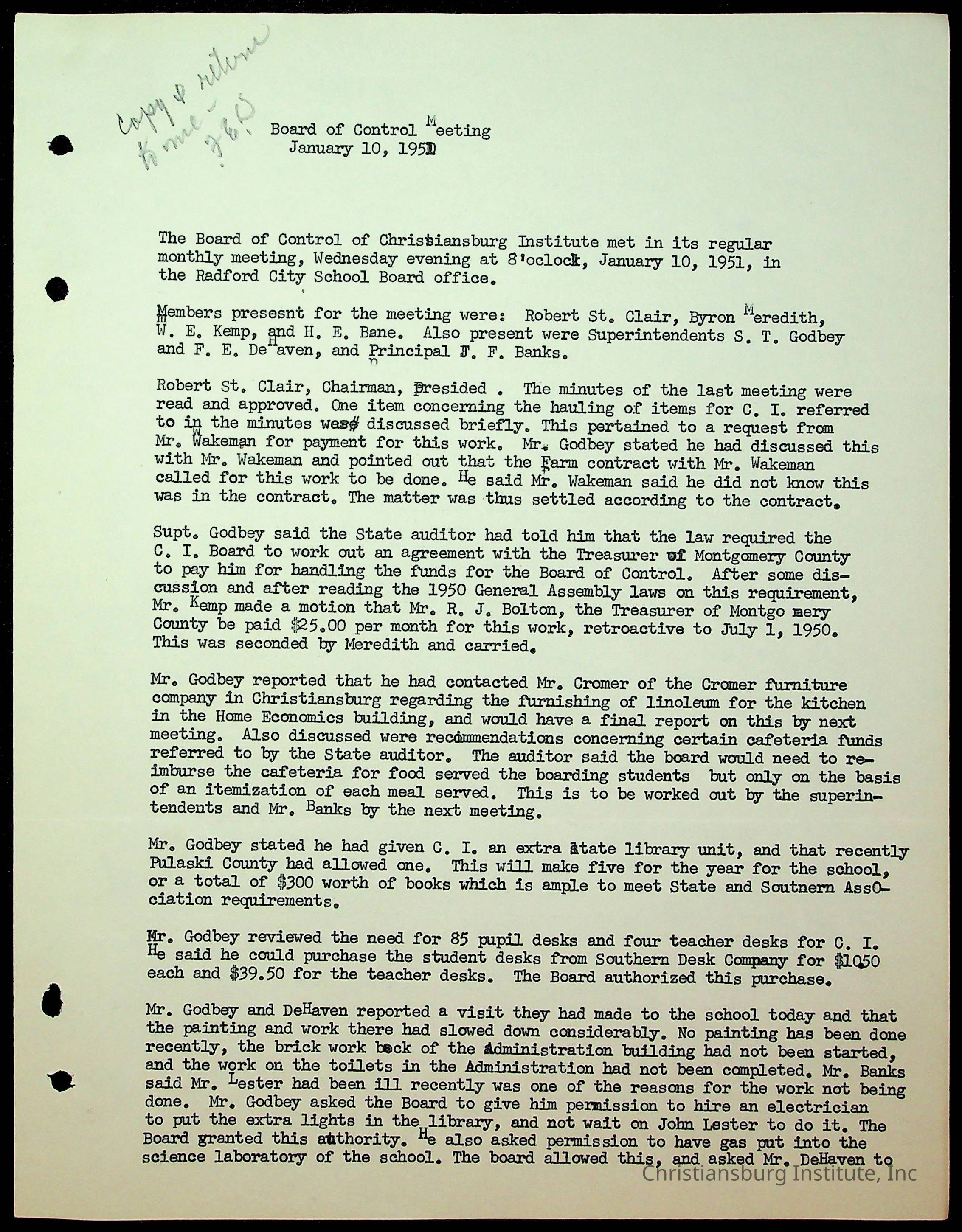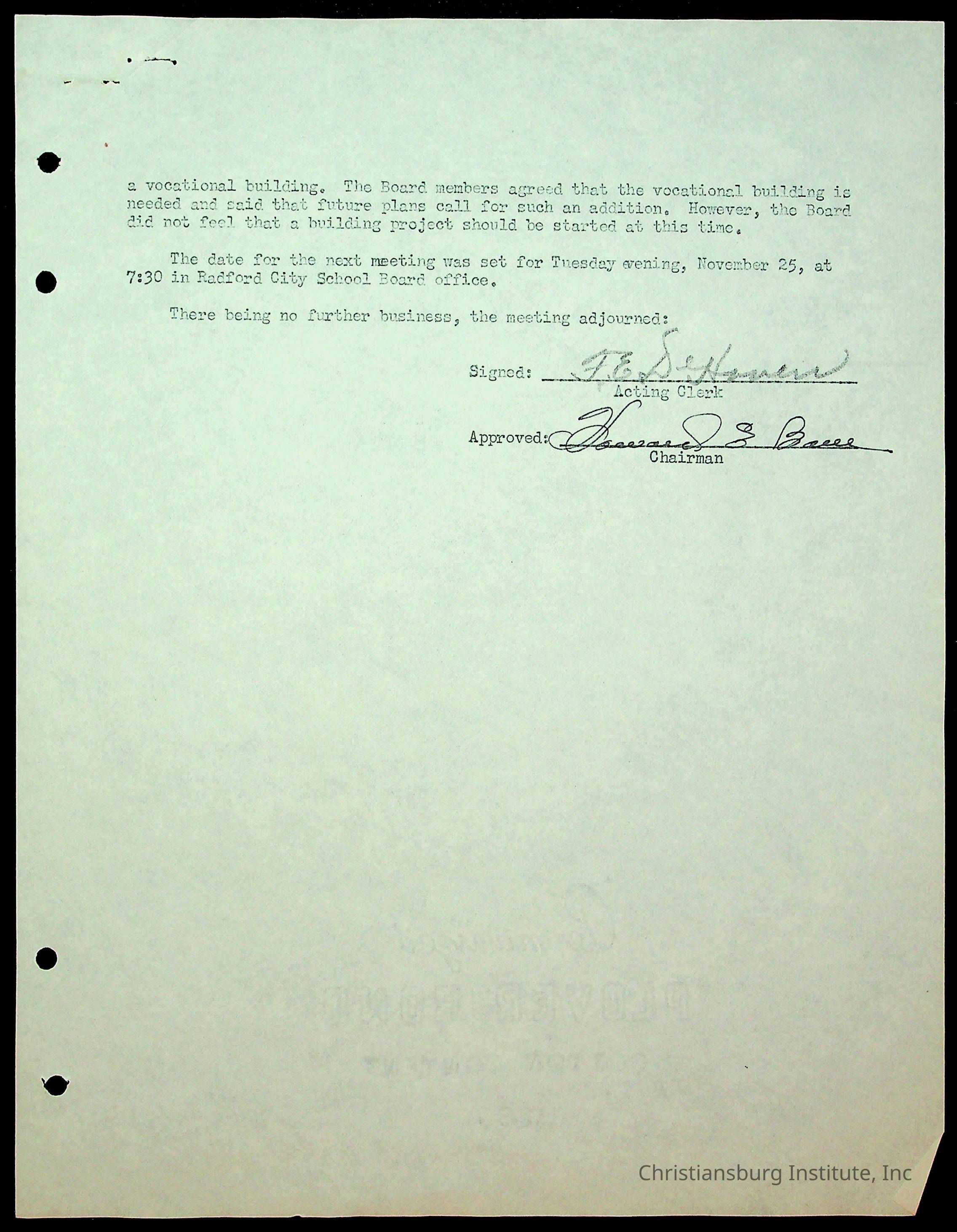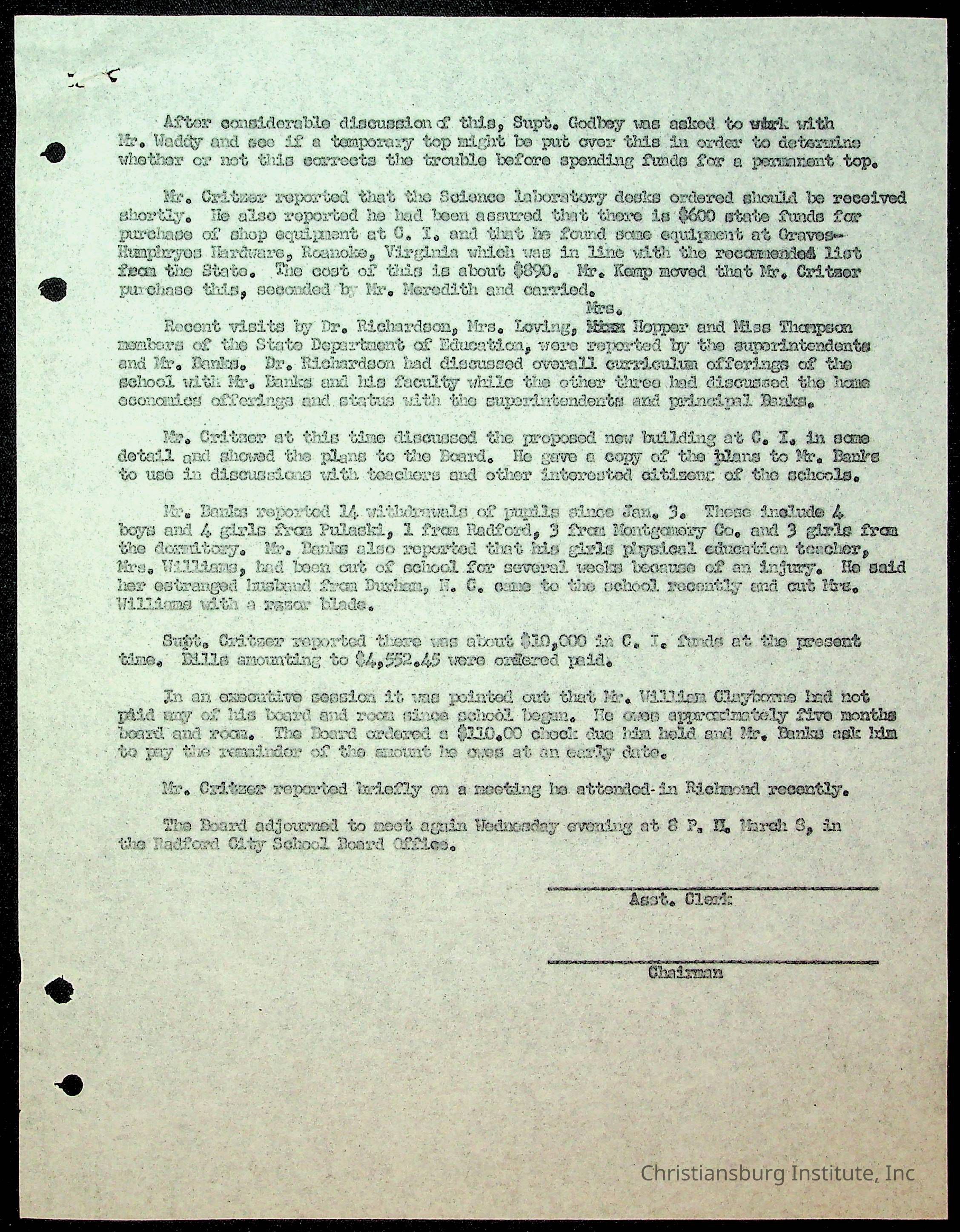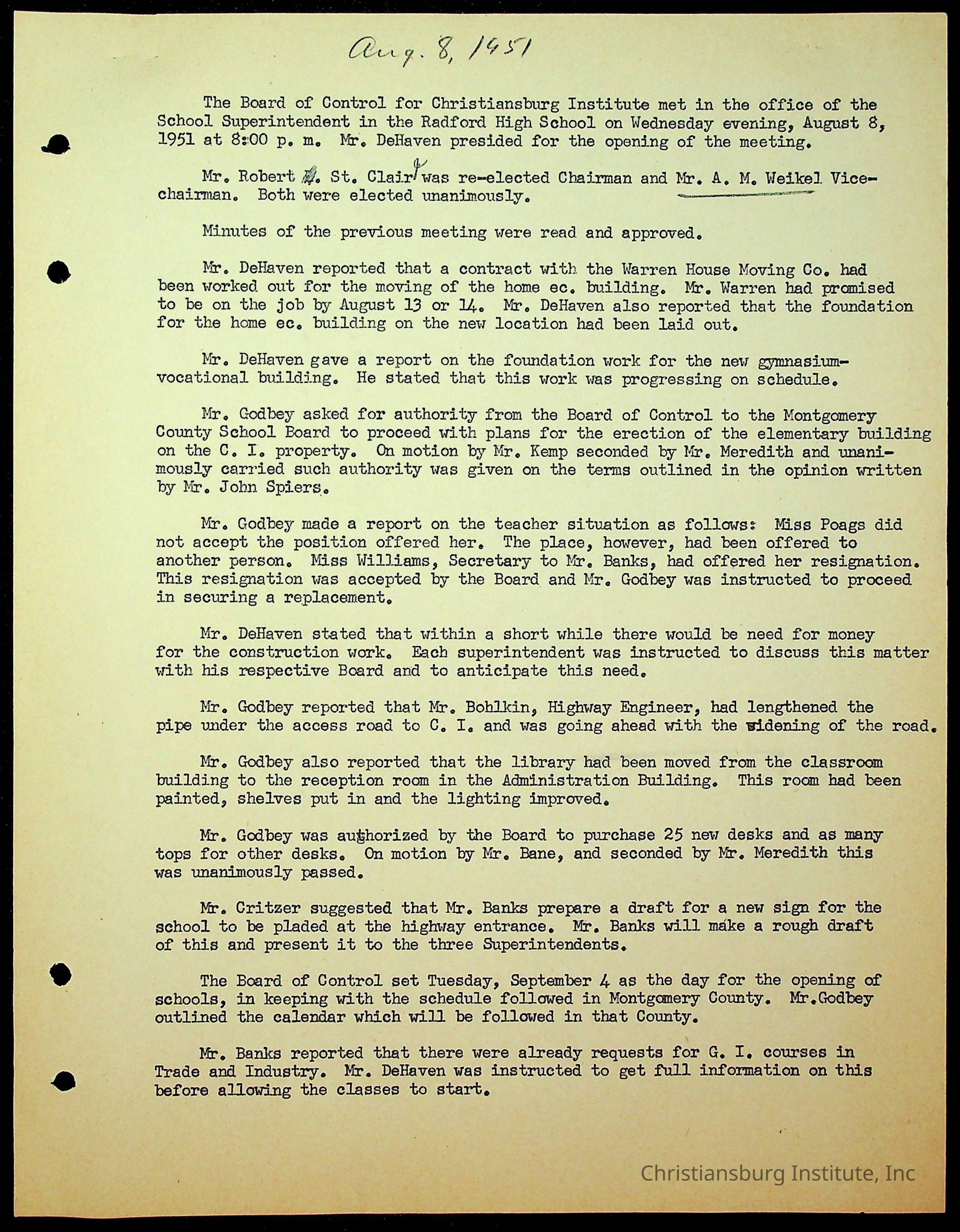An archive of the Christiansburg Institute board meeting minutes from 1947-1951.