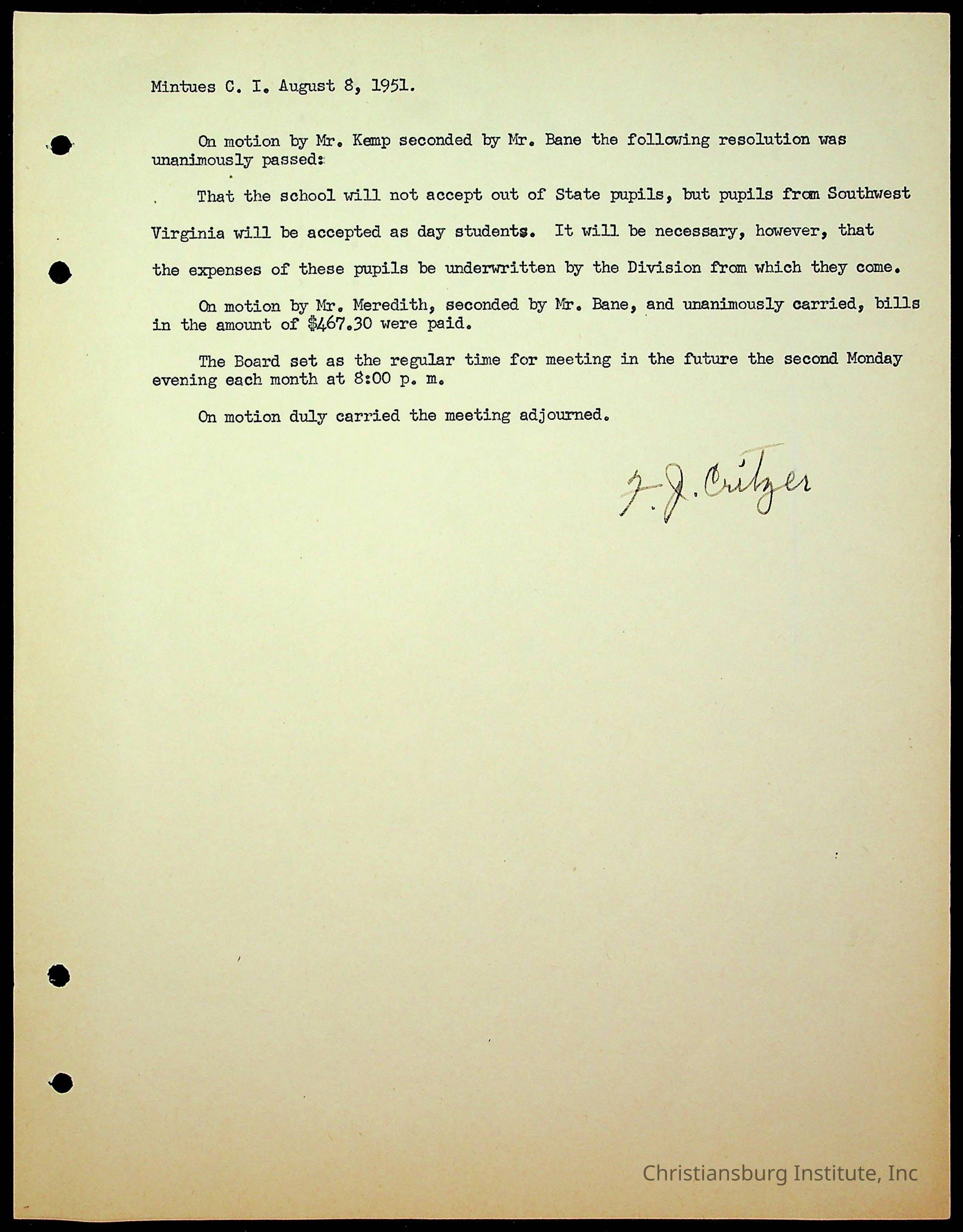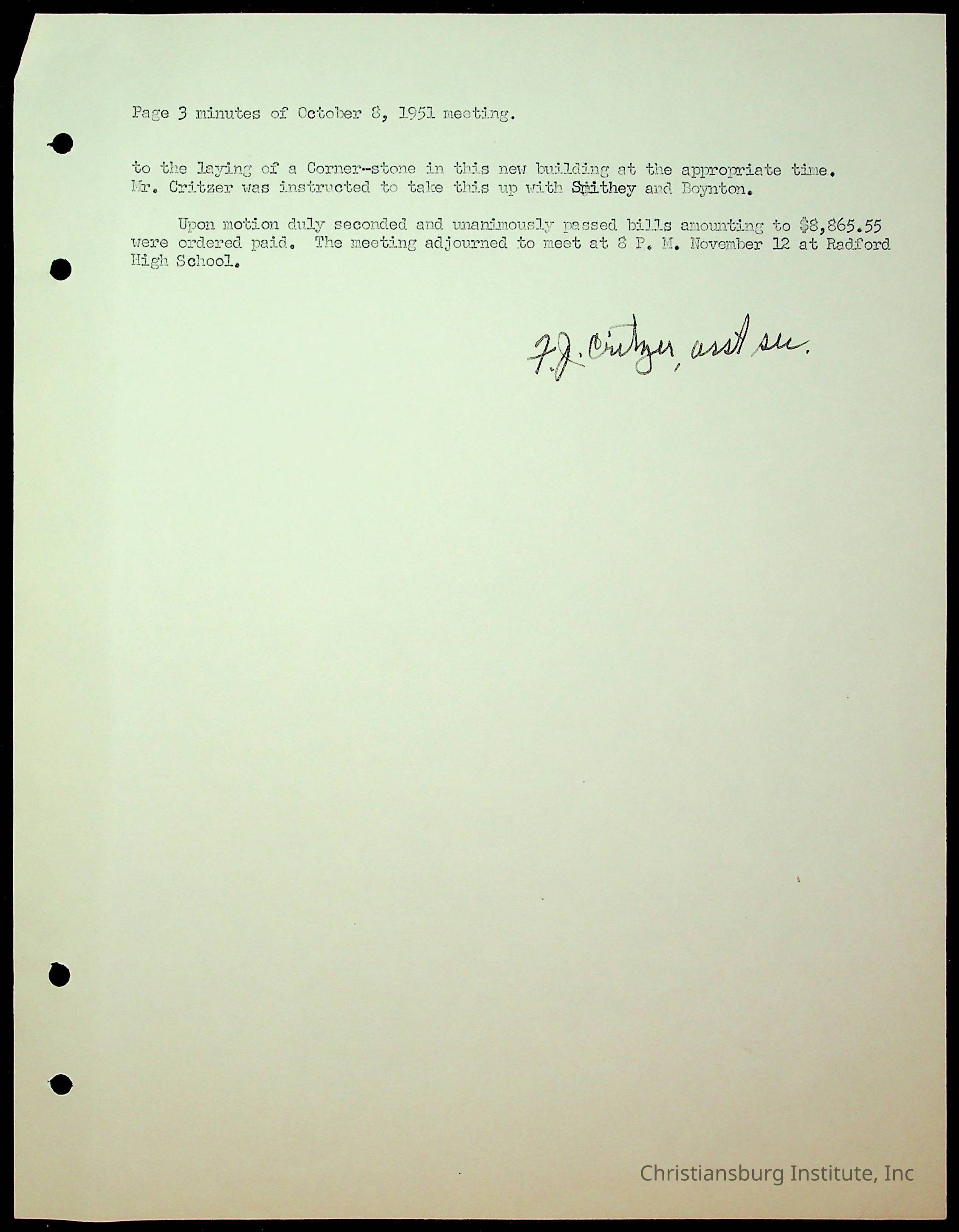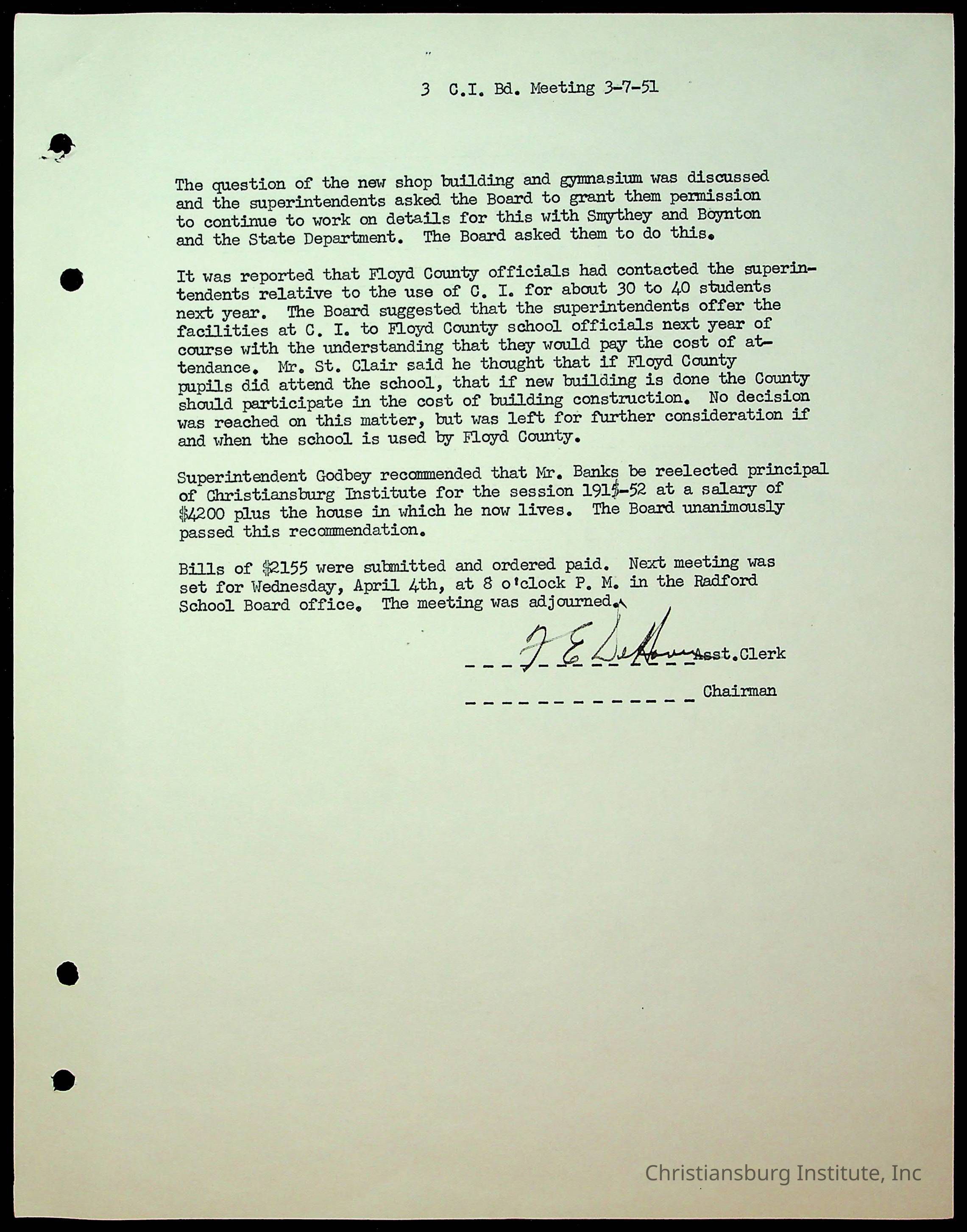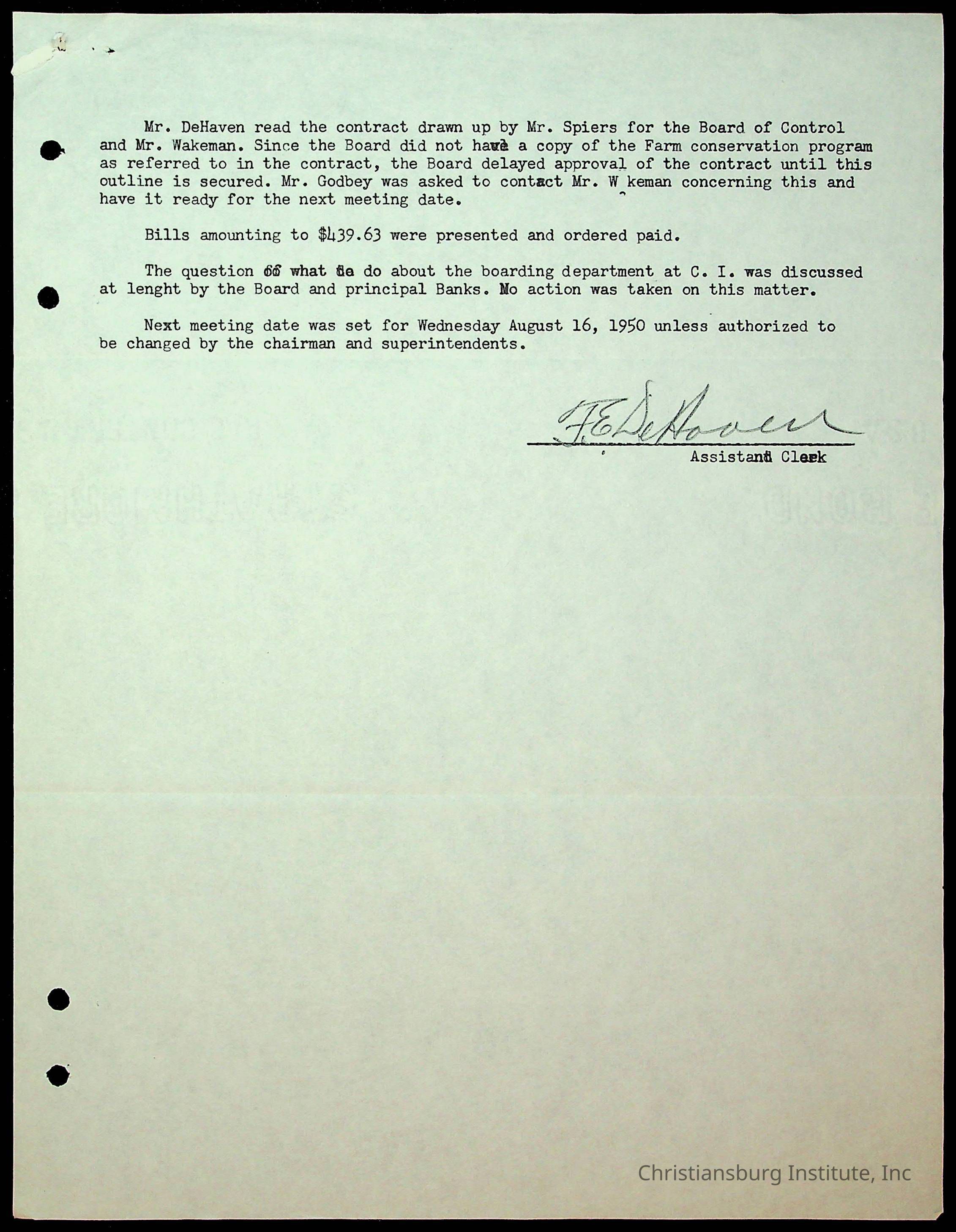 An archive of the Christiansburg Institute board meeting minutes from 1947-1951.