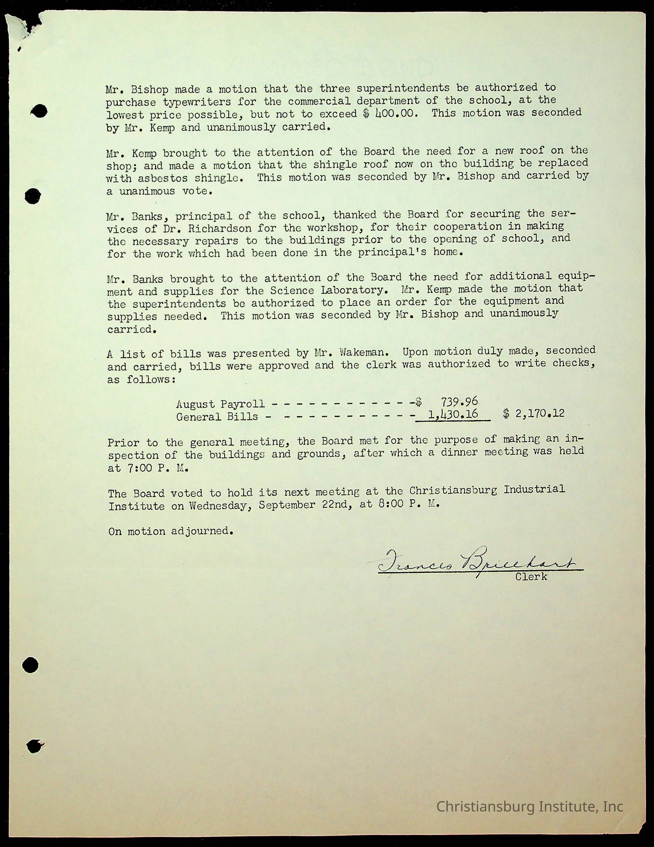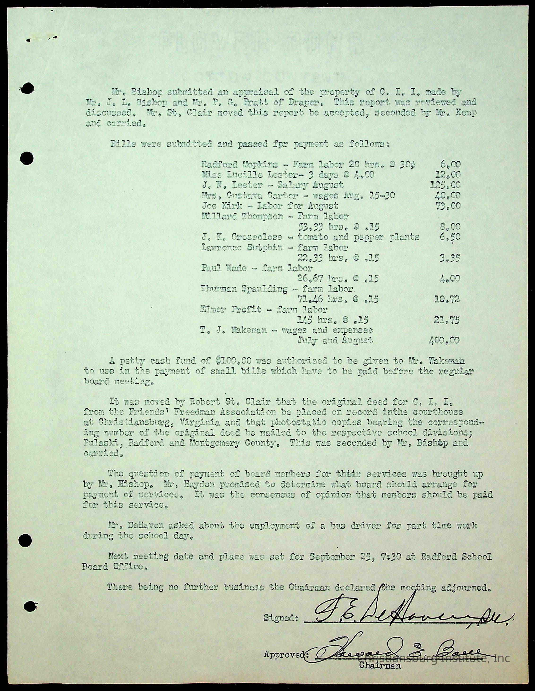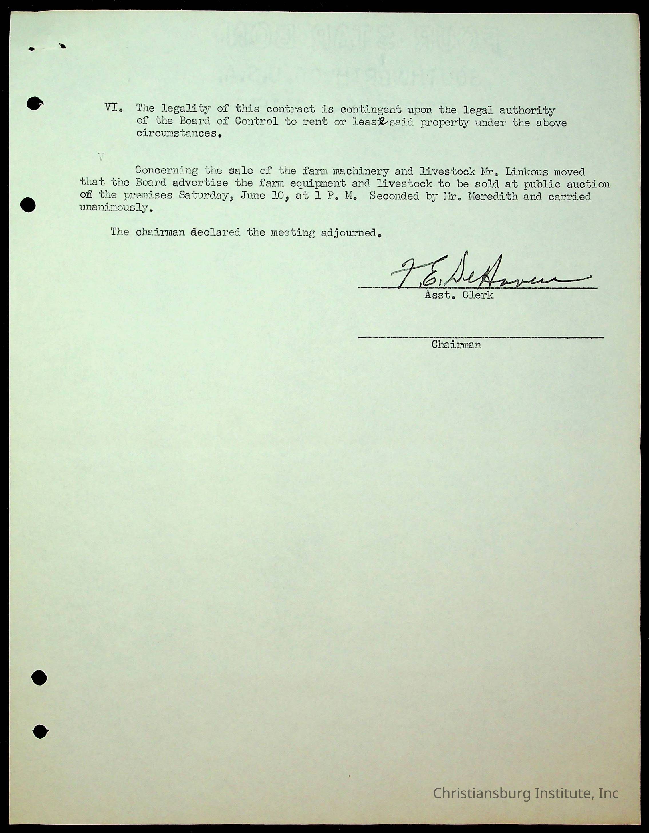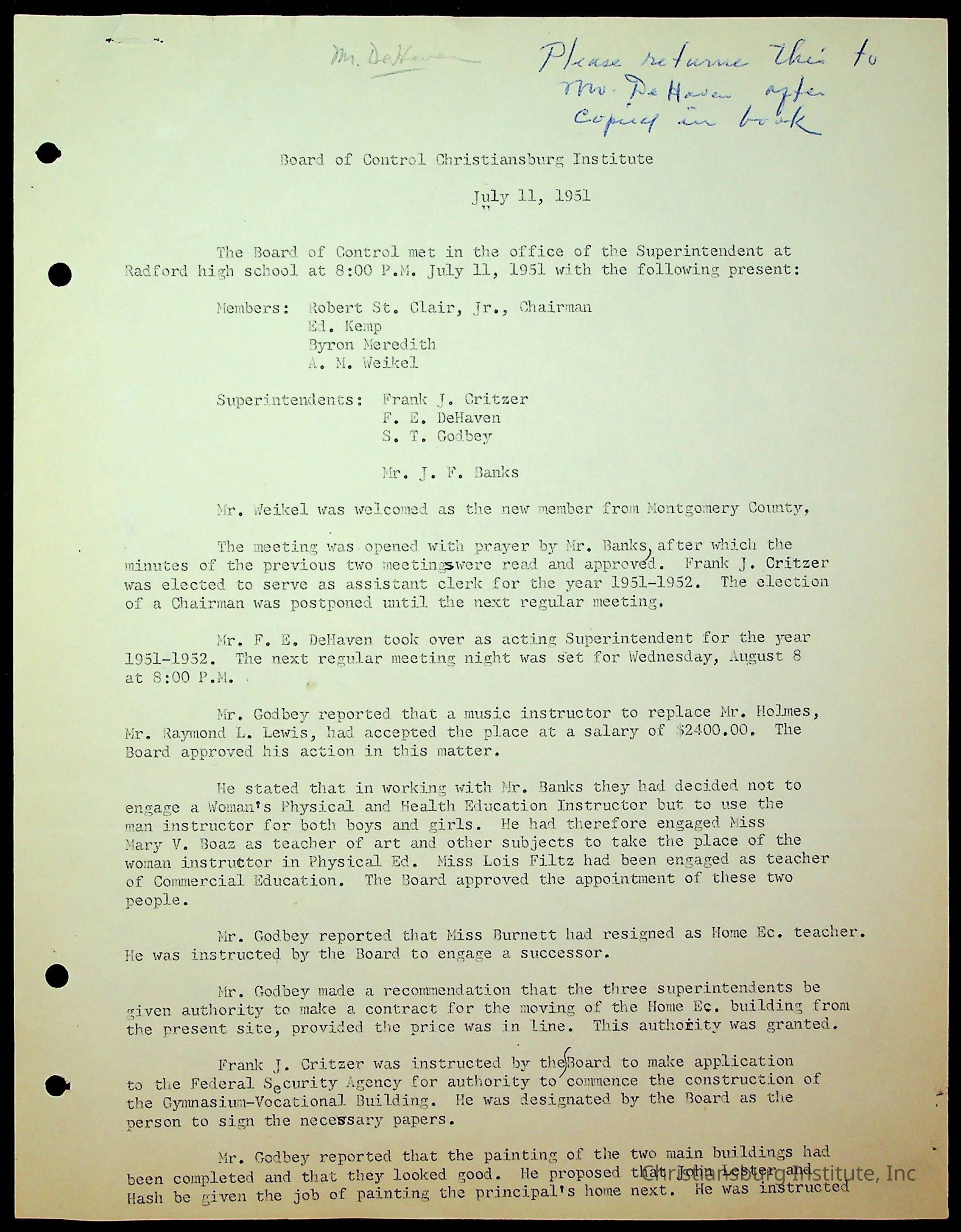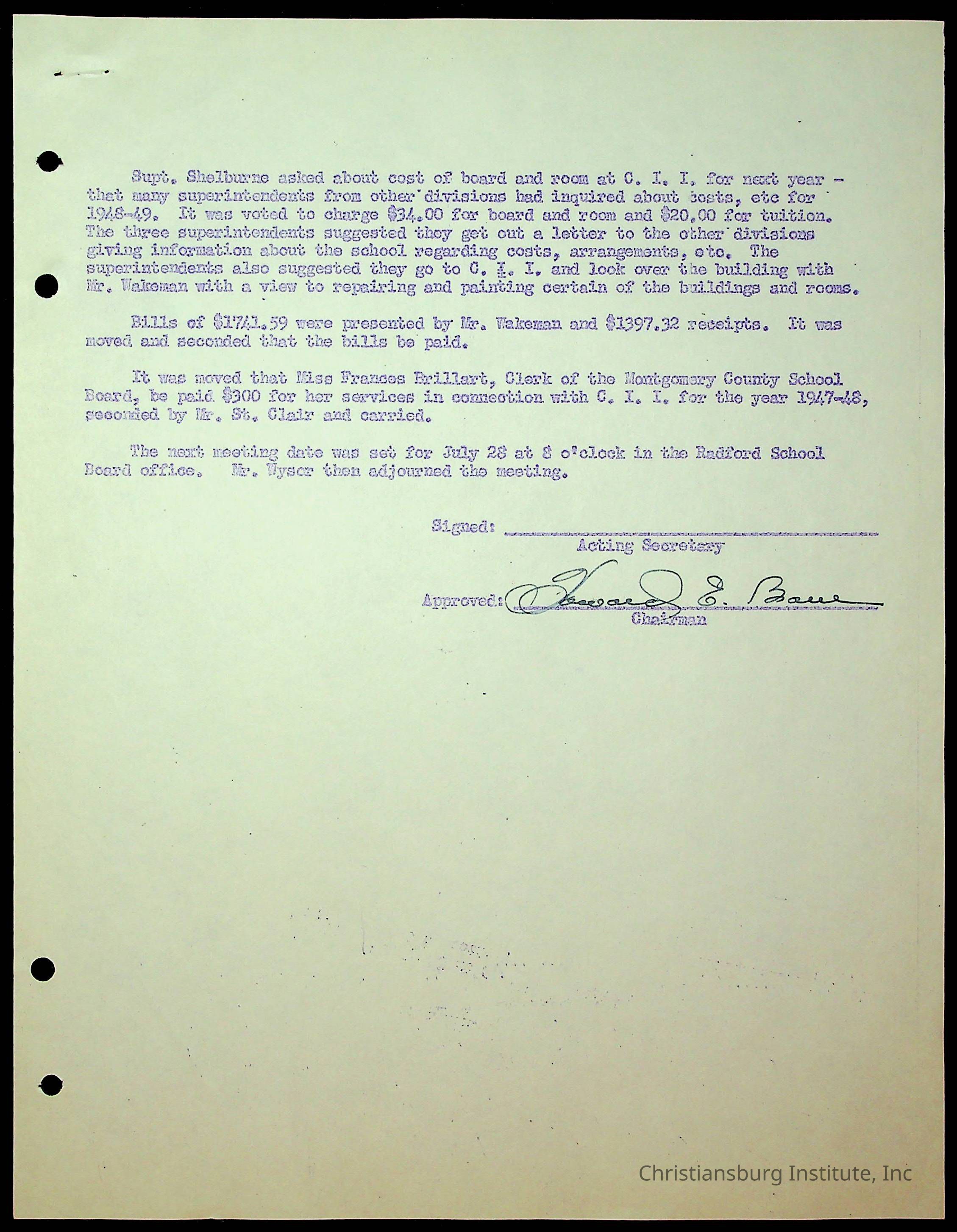 An archive of the Christiansburg Institute board meeting minutes from 1947-1951.
