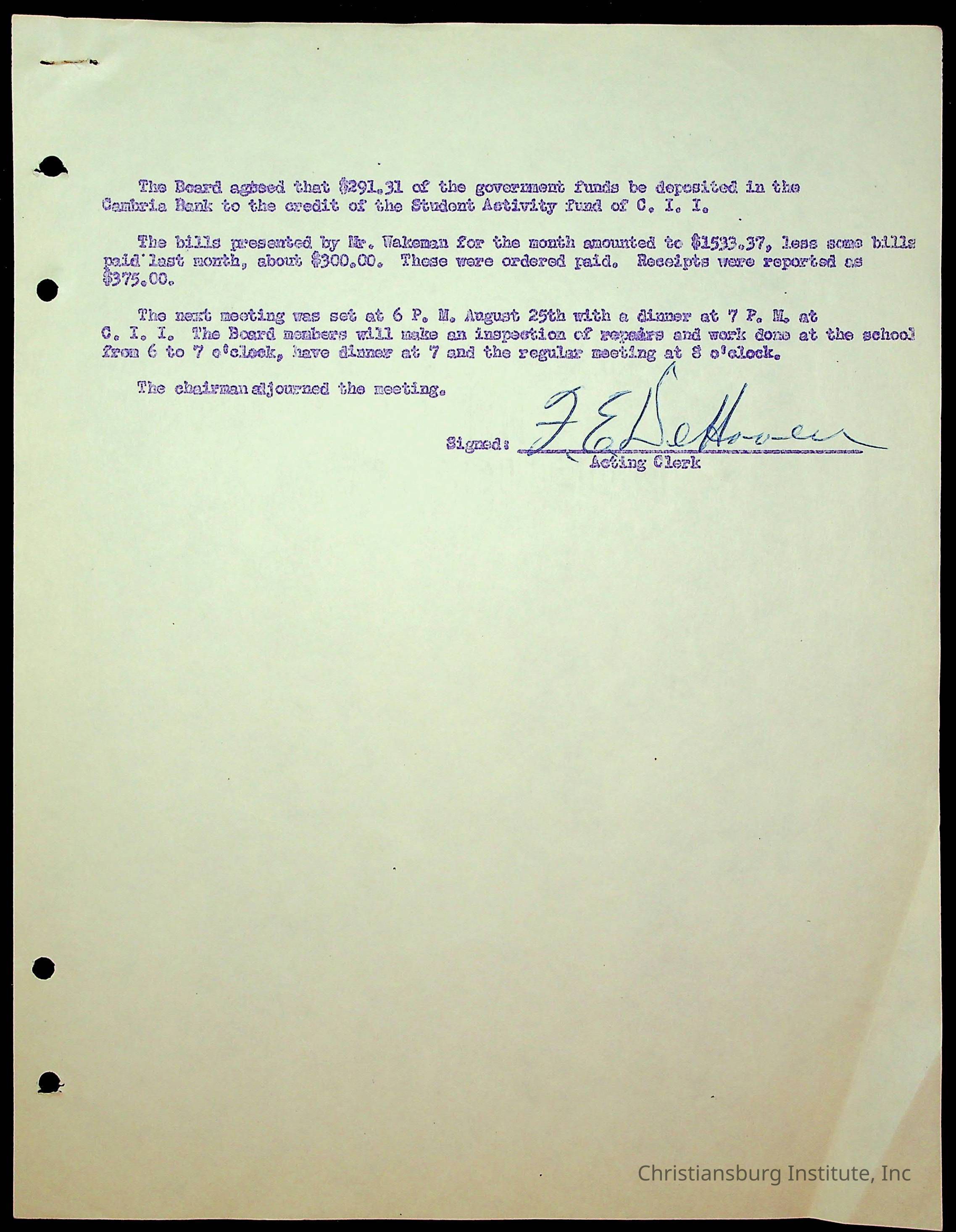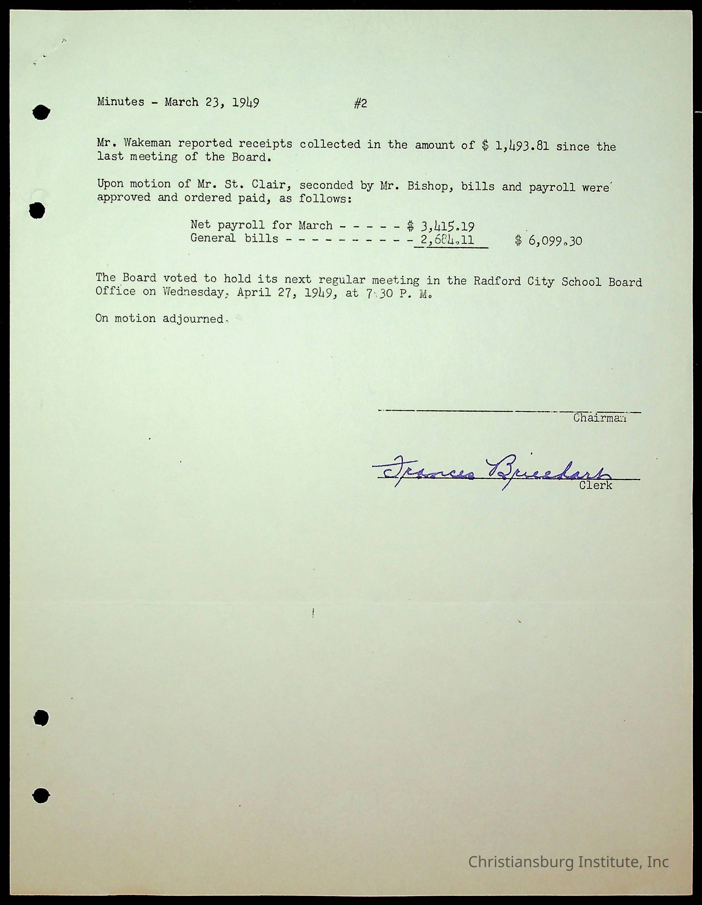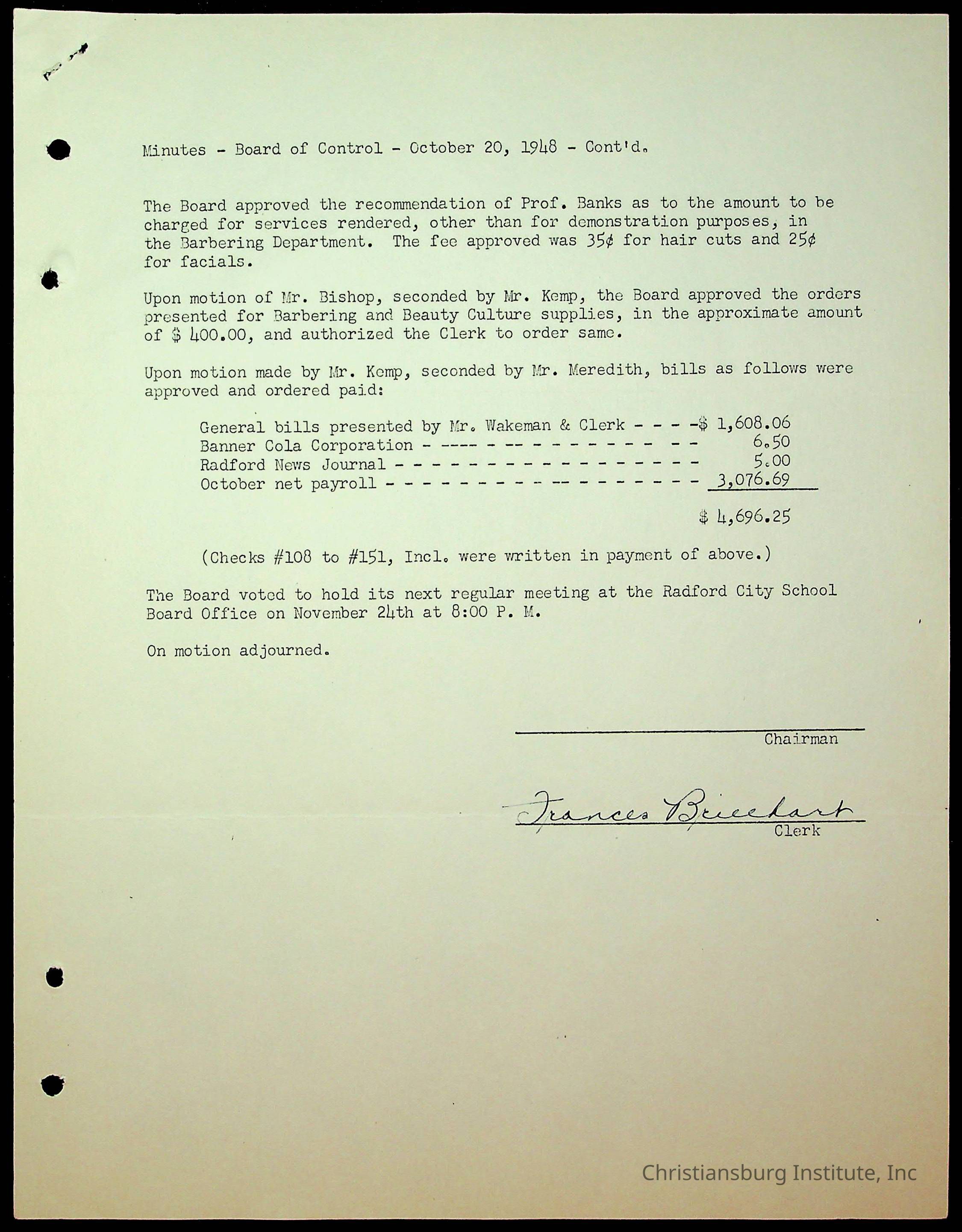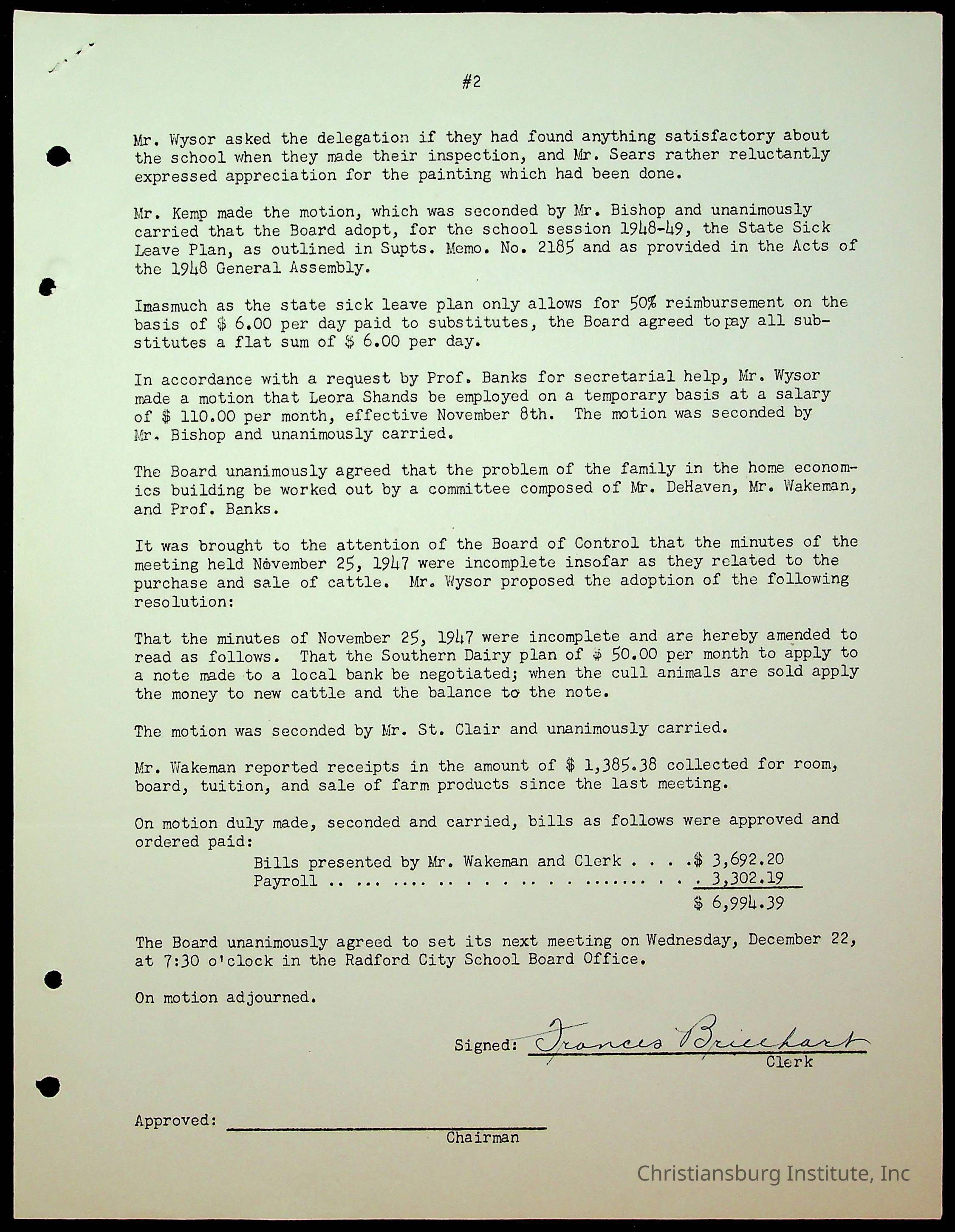 An archive of the Christiansburg Institute board meeting minutes from 1947-1951.