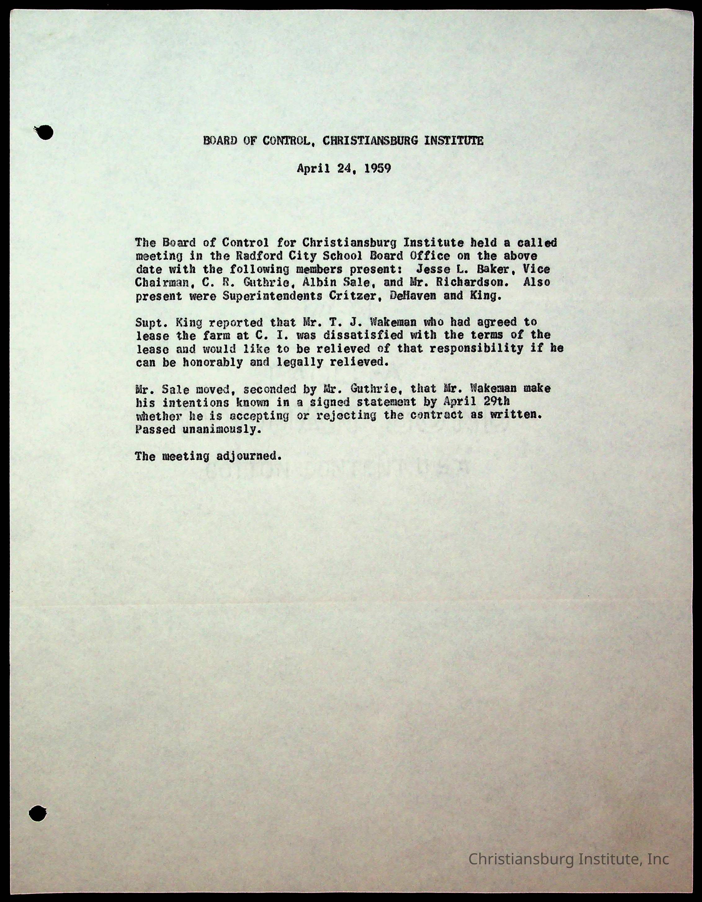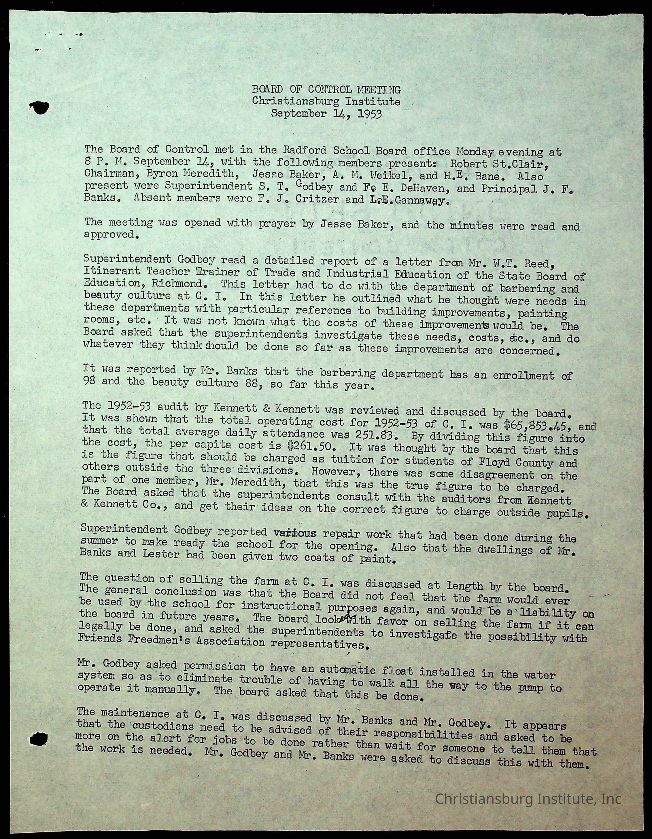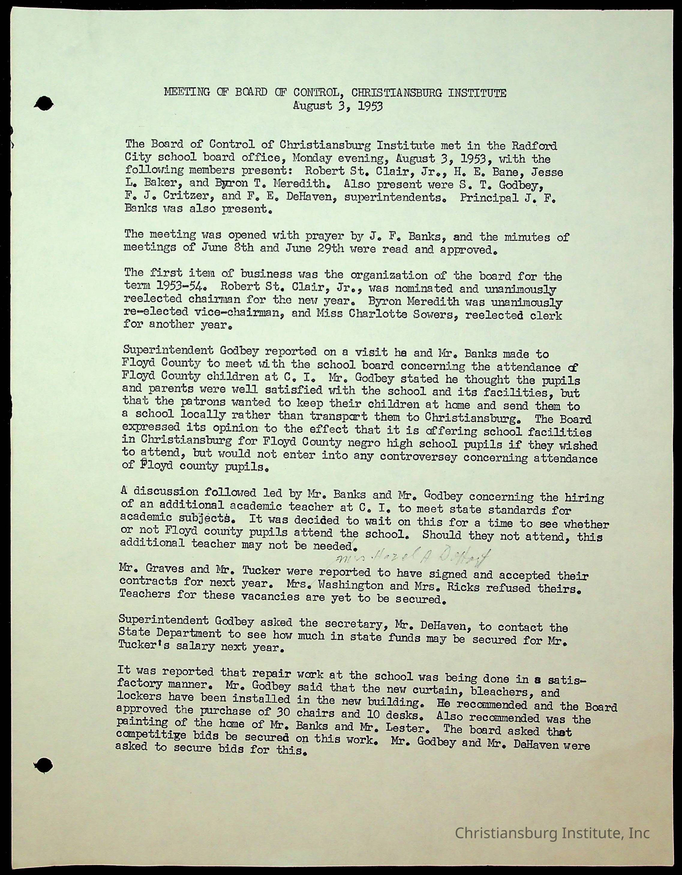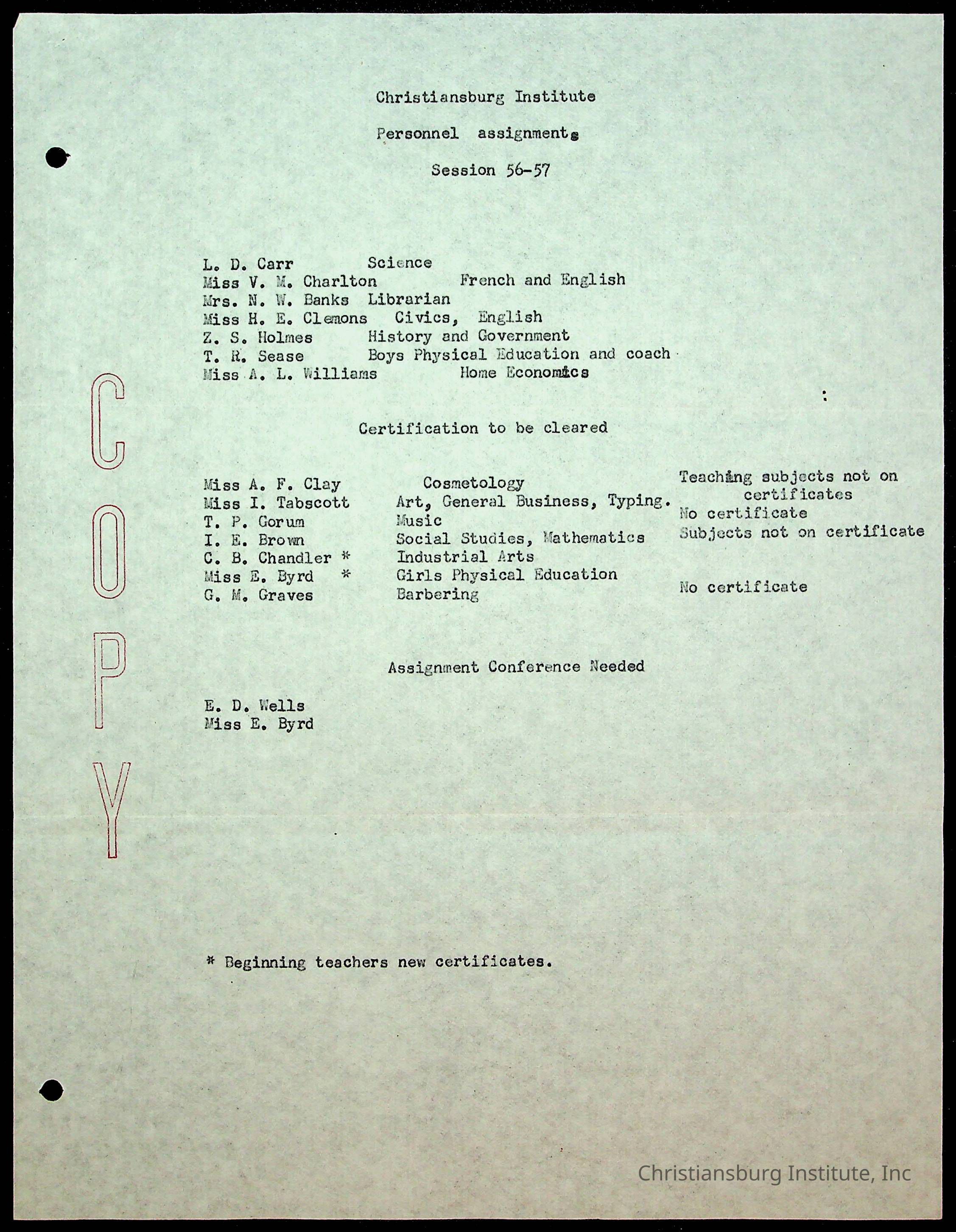 "Copyright has been assigned to Christiansburg Institute Museum & Archives by Montgomery County Public Schools. For permission to publish materials created by the donor, contact CIMA@christiansburginstitute.com. Materials not created by Christiansburg Industrial Institute may still be under copyright.