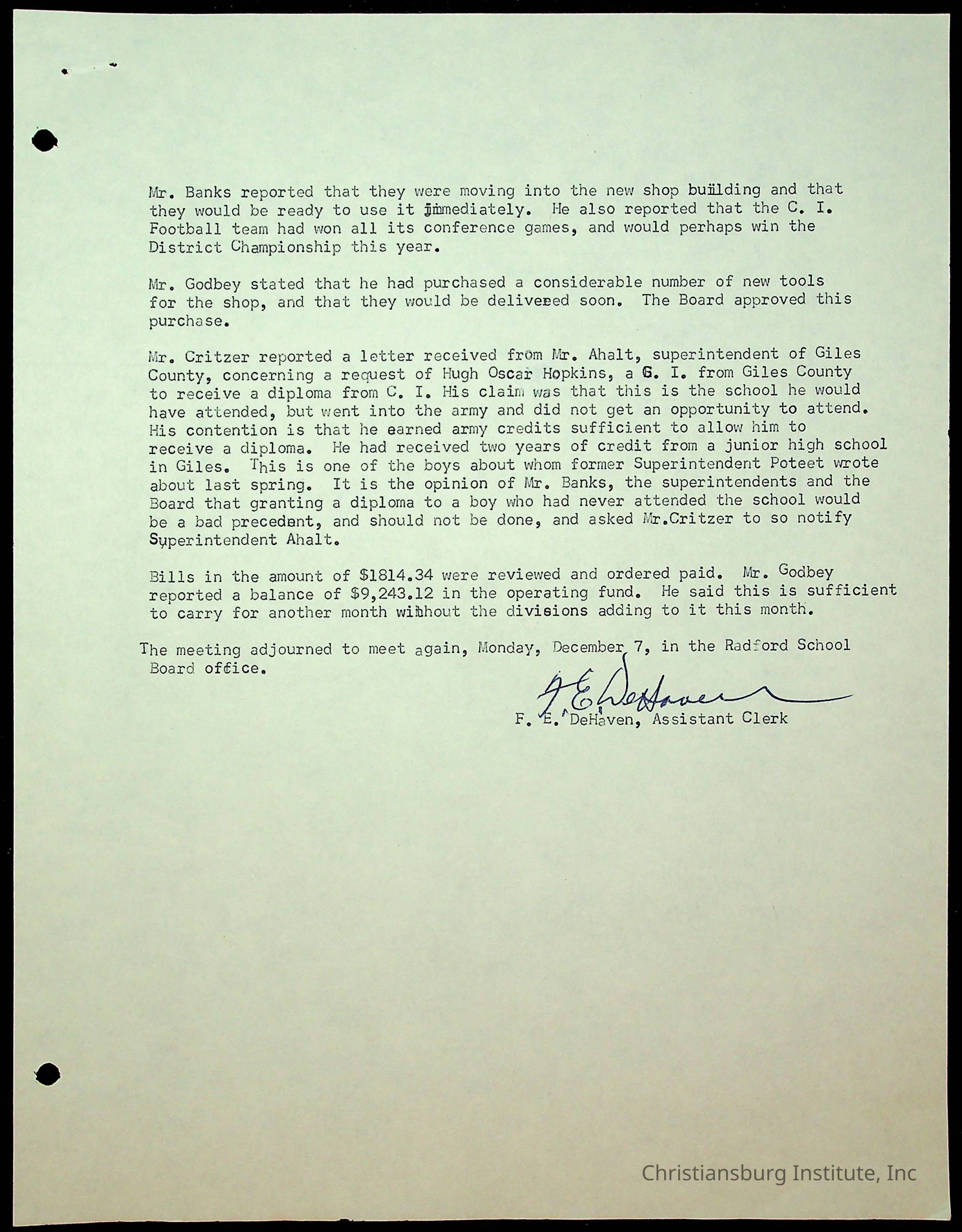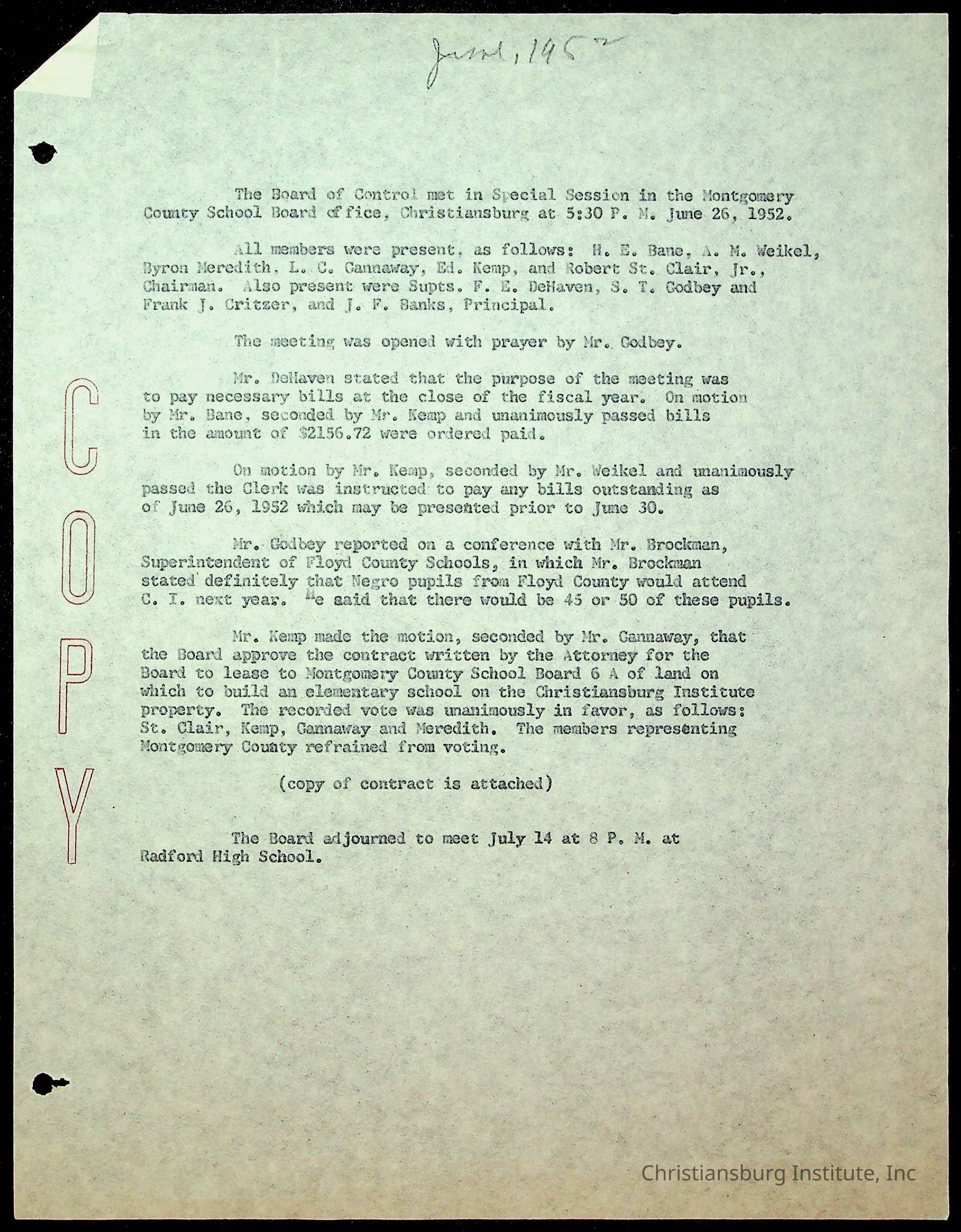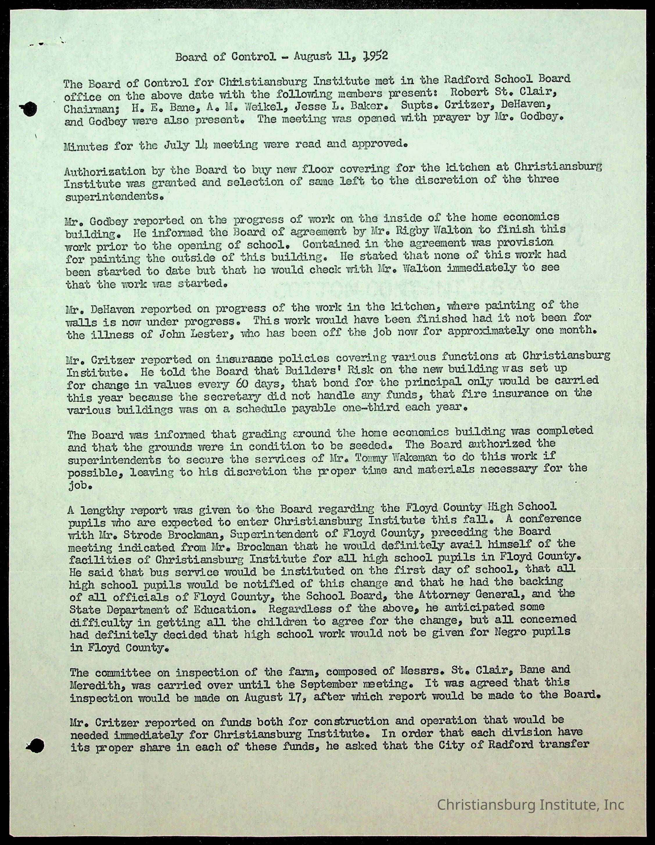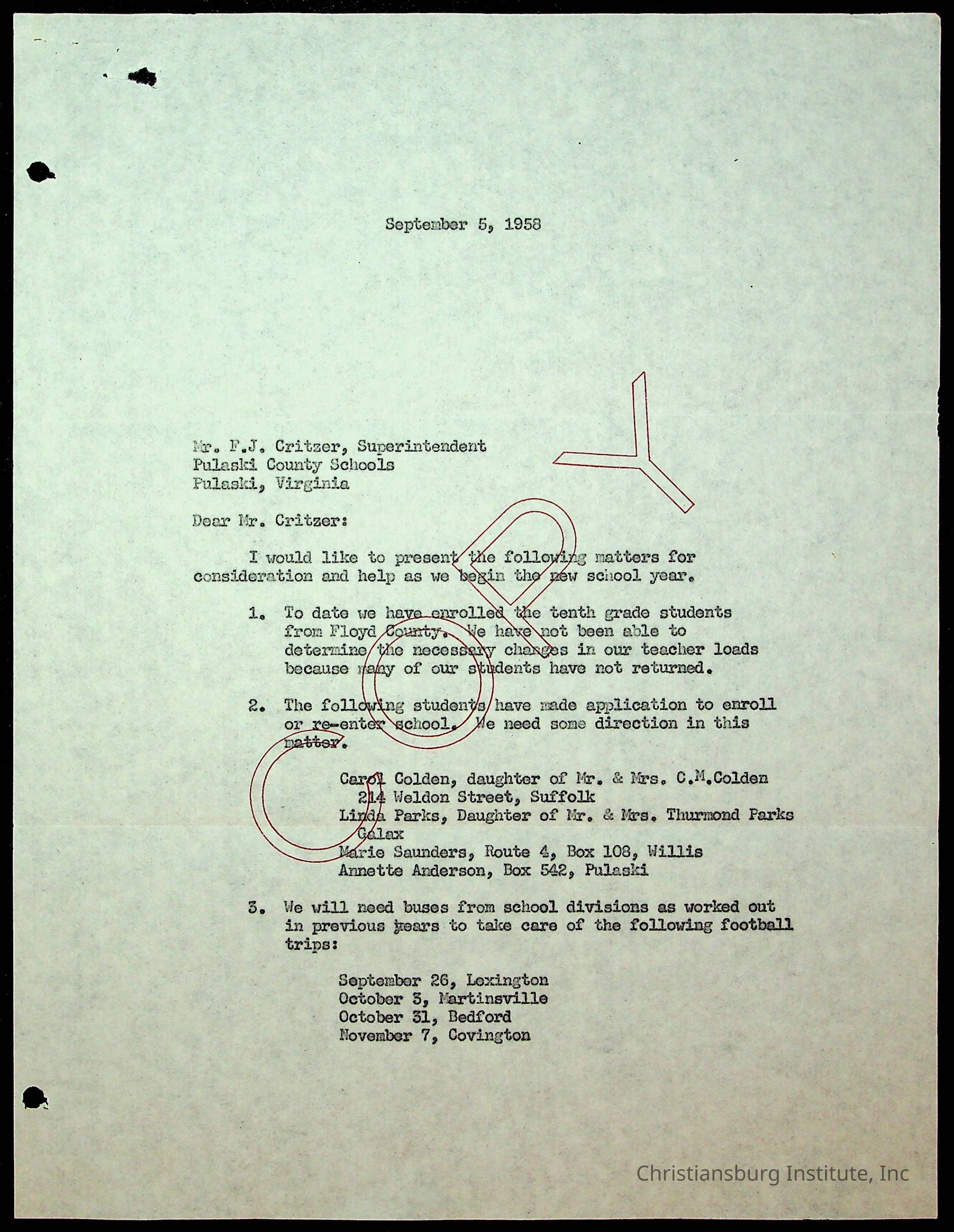 "Copyright has been assigned to Christiansburg Institute Museum & Archives by Montgomery County Public Schools. For permission to publish materials created by the donor, contact CIMA@christiansburginstitute.com. Materials not created by Christiansburg Industrial Institute may still be under copyright.