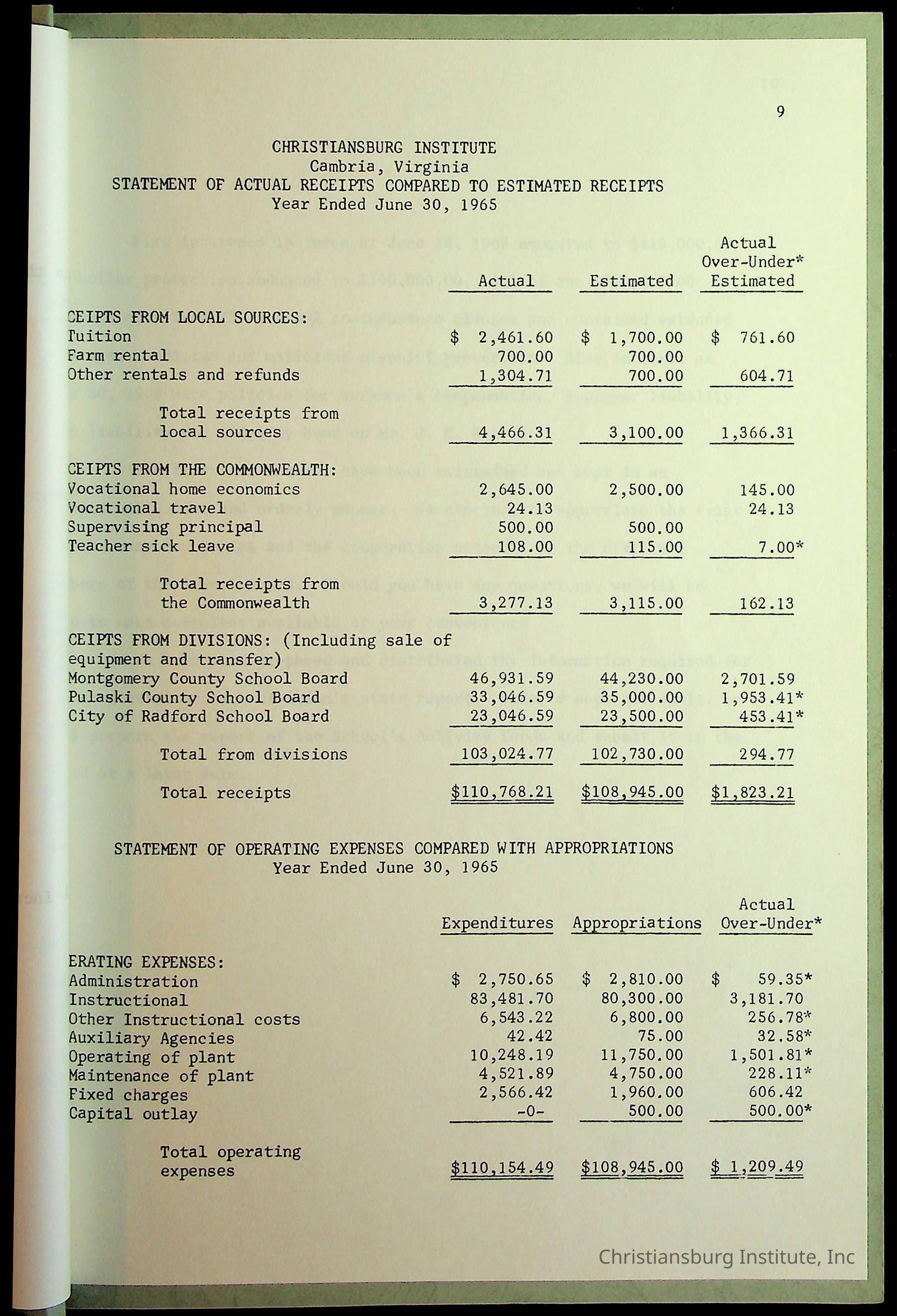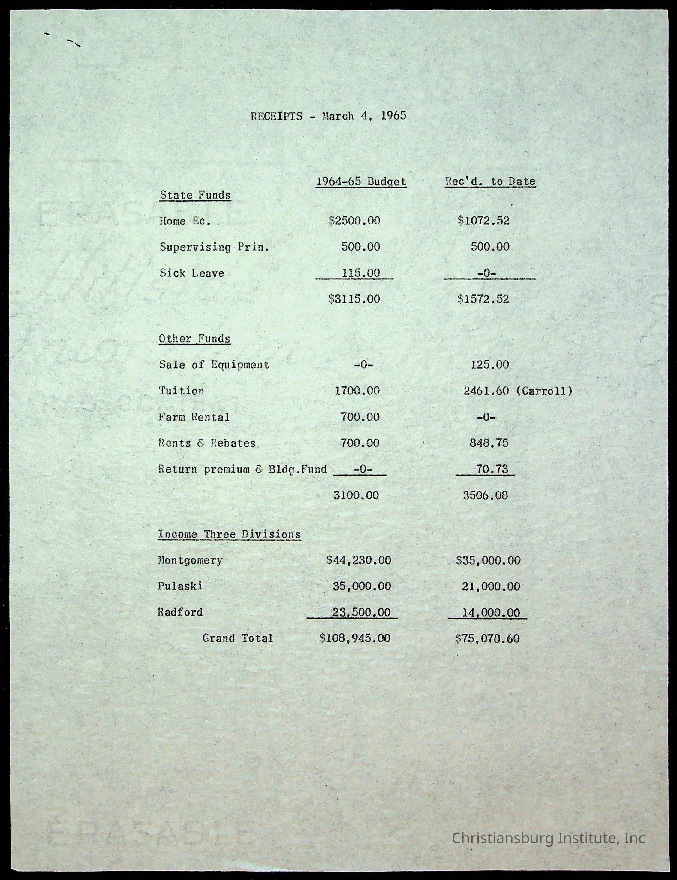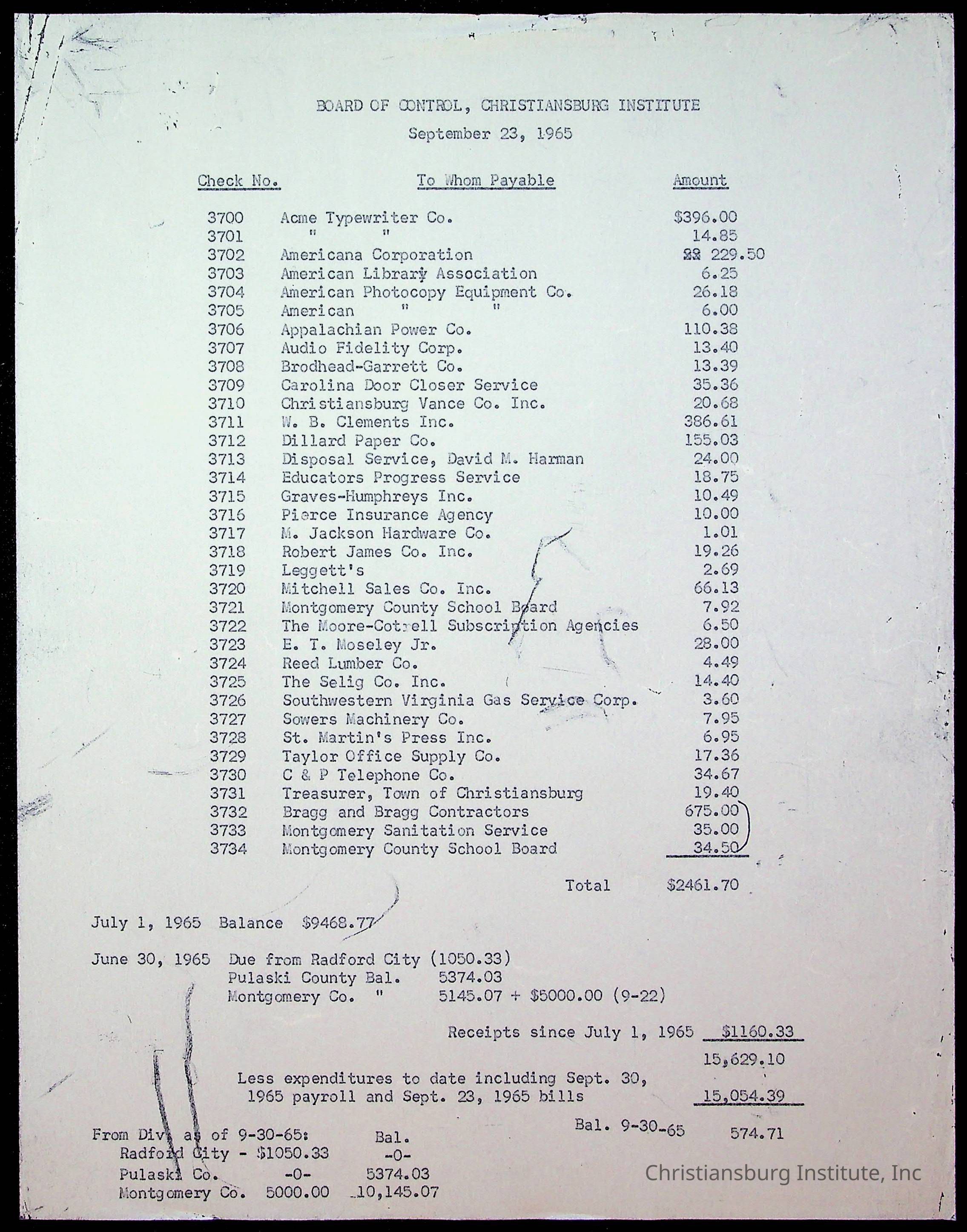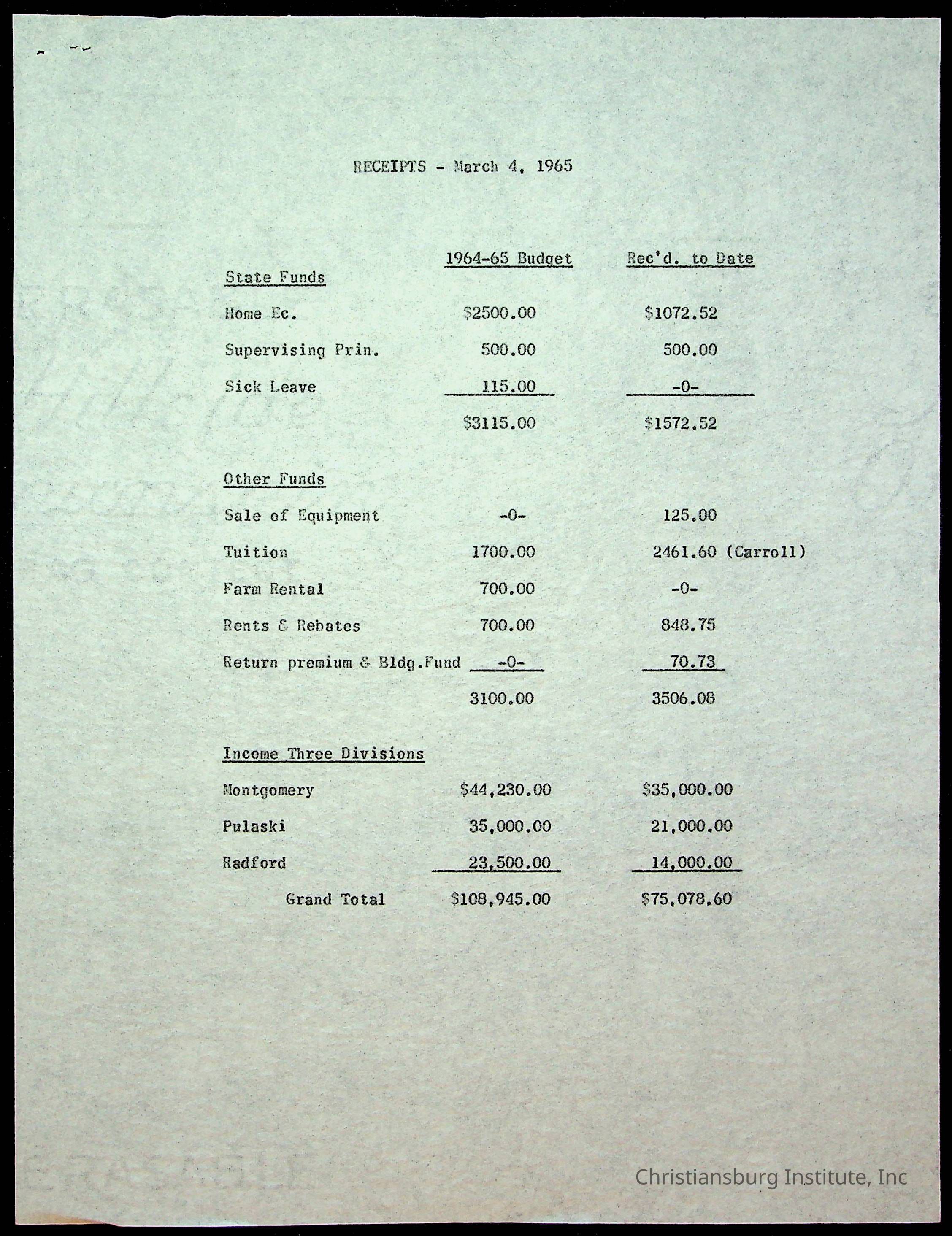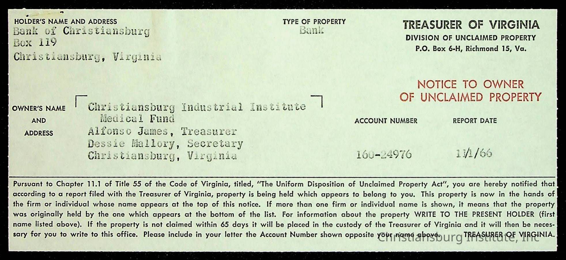 Christiansburg Institute Miscellaneous Financial Documents, circa 1960sScope and Content