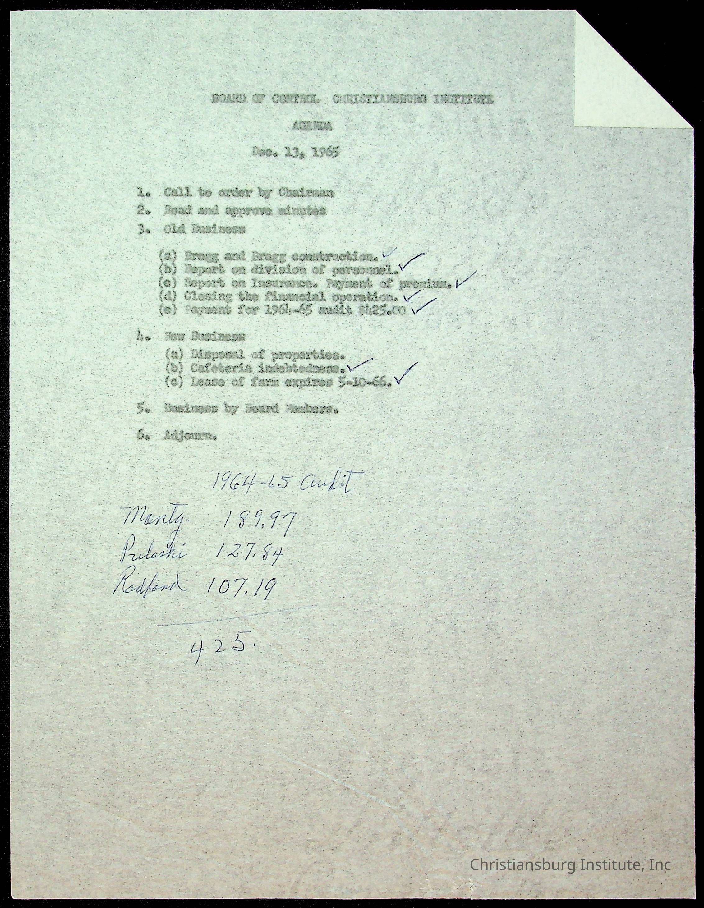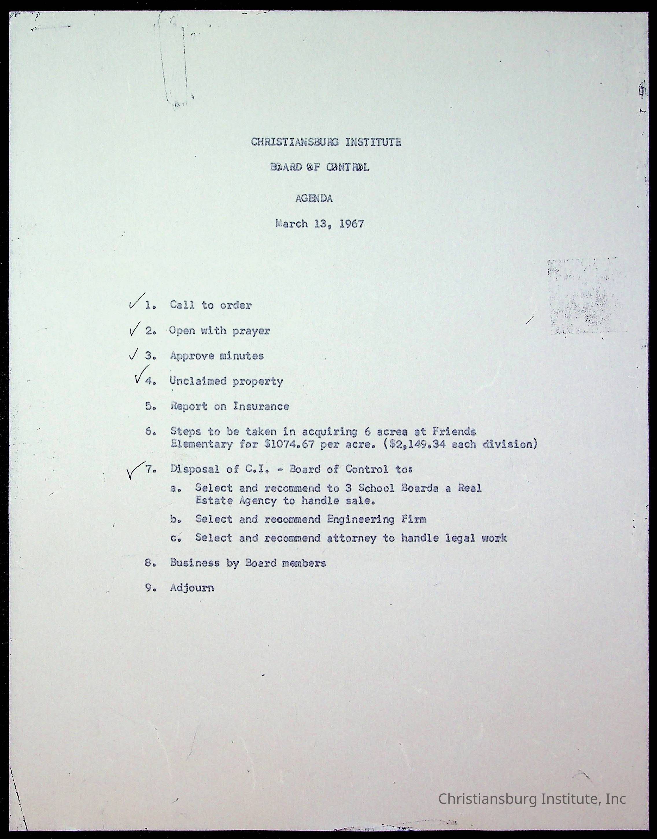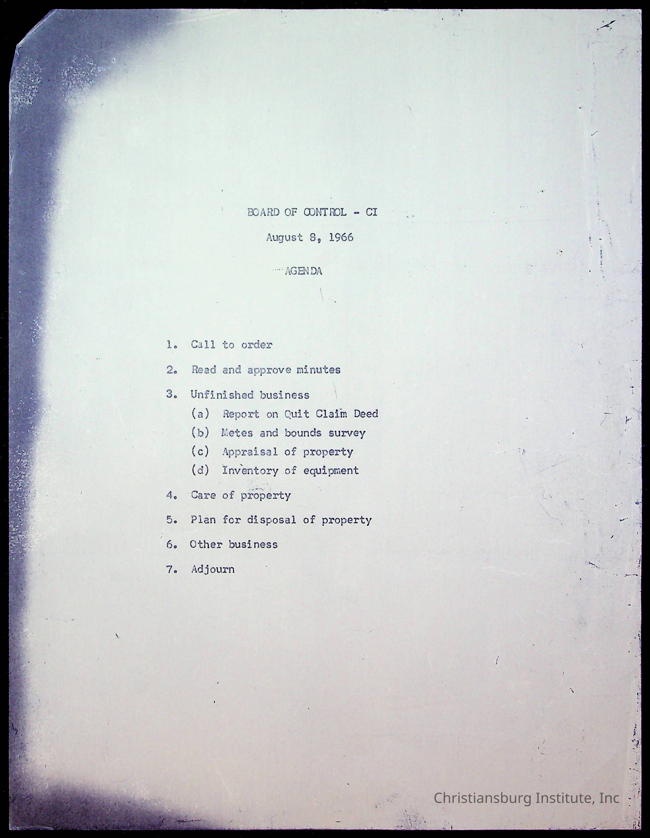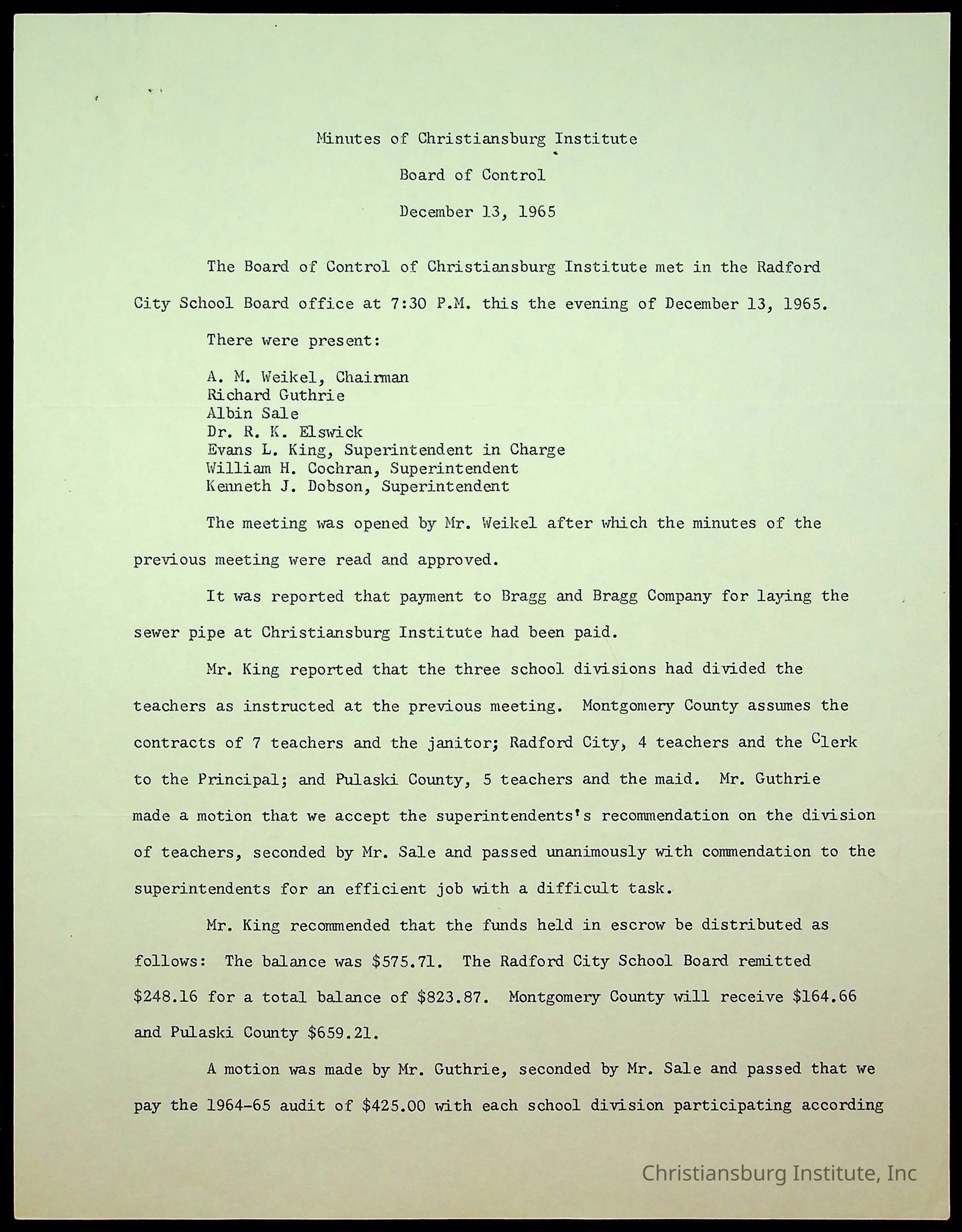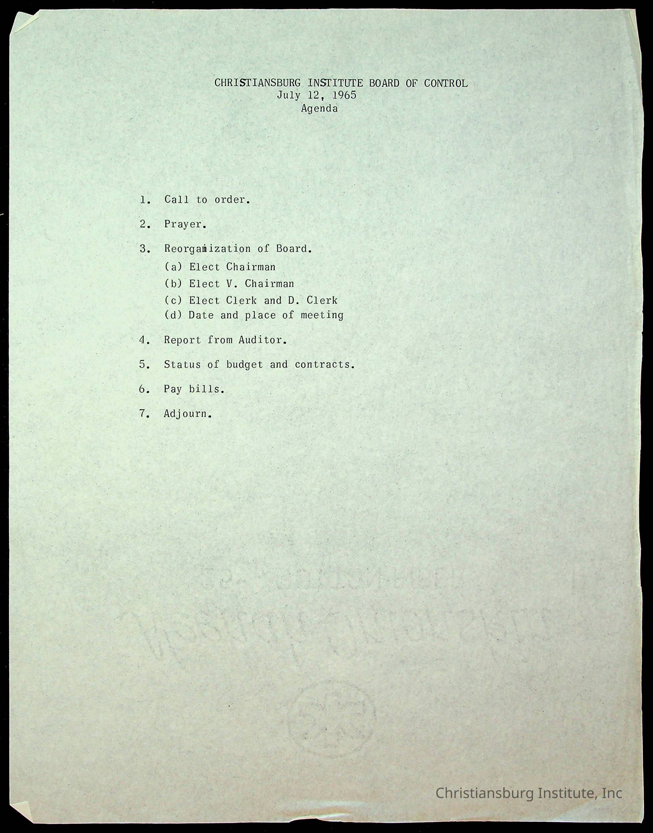An archive of miscellaneous financial documents that relate to Christiansburg Institute, circa 1960s including; correspondences, loan documents, board meetings, and notes.Collection