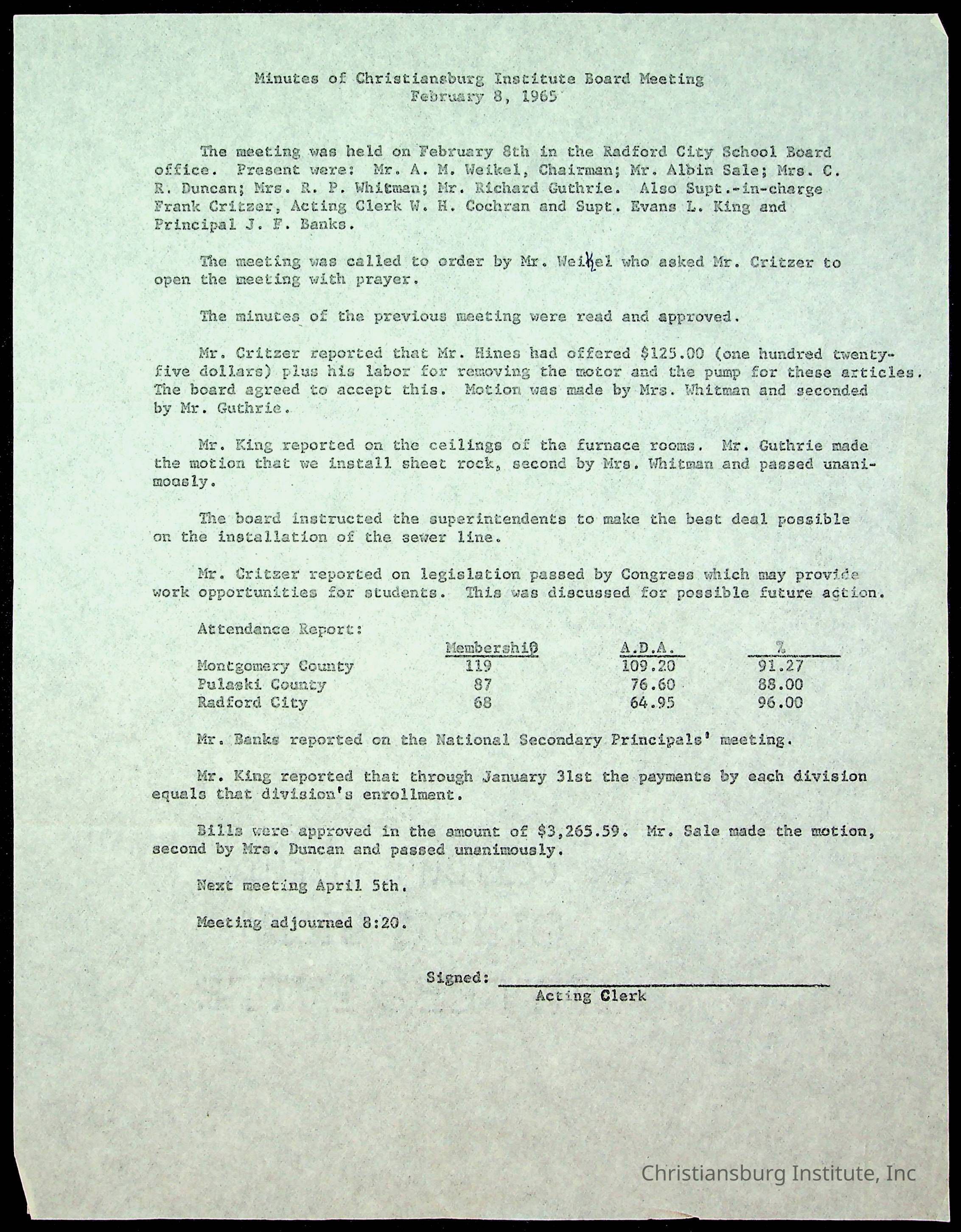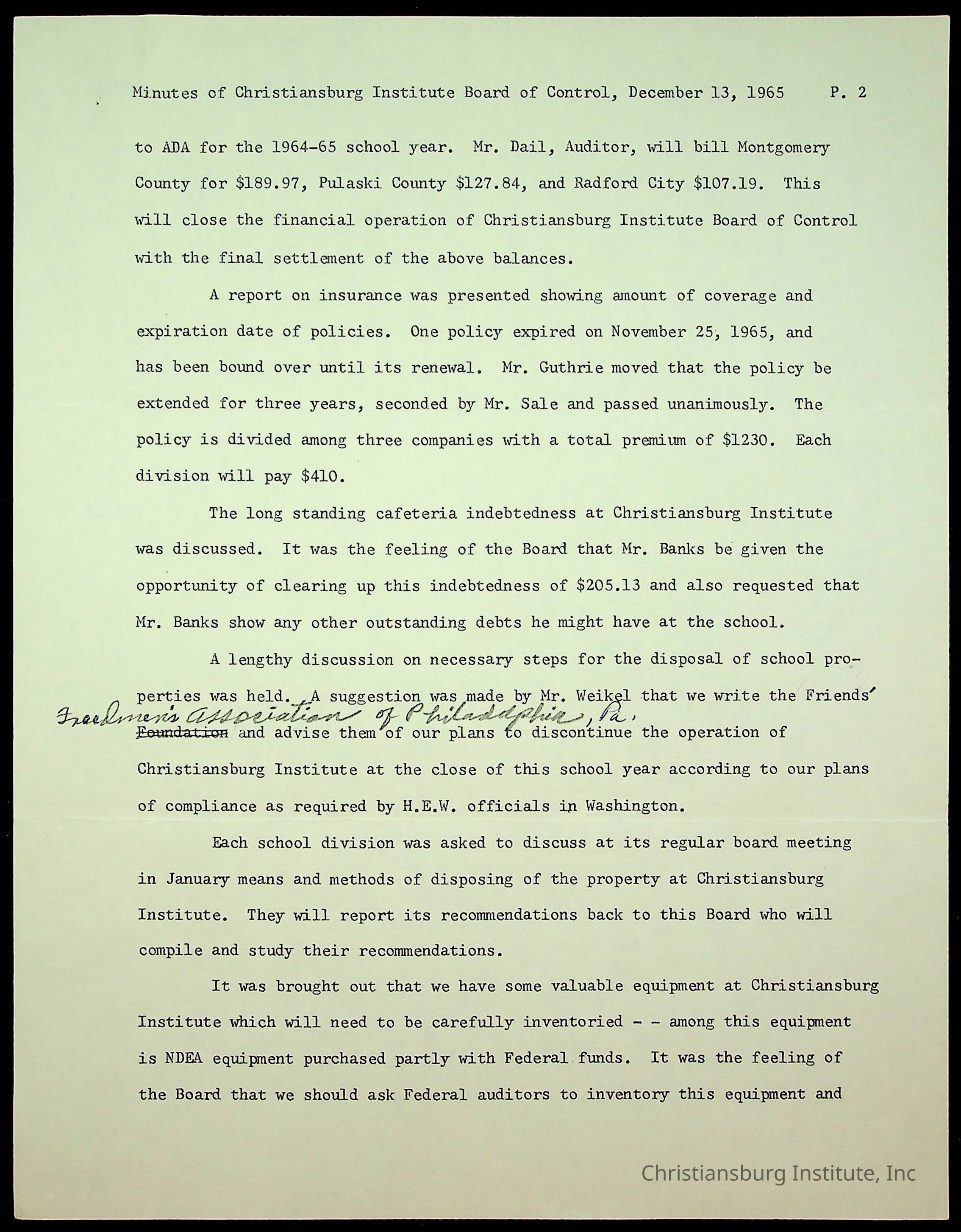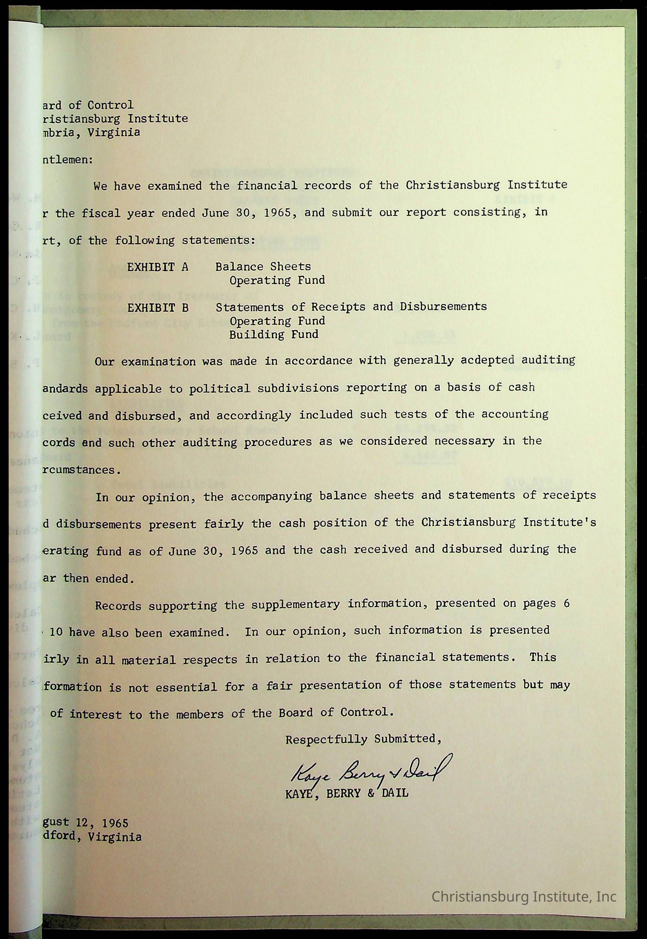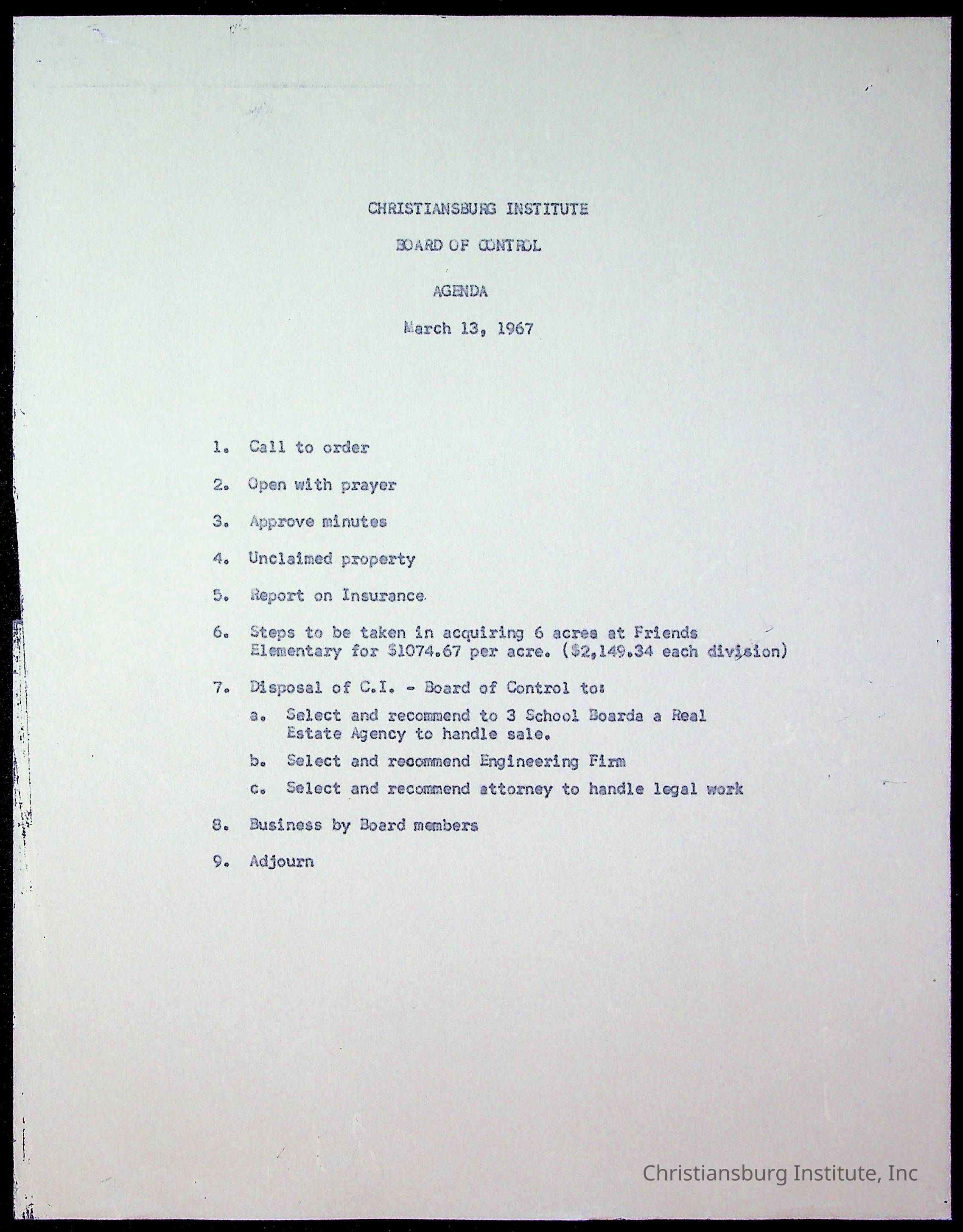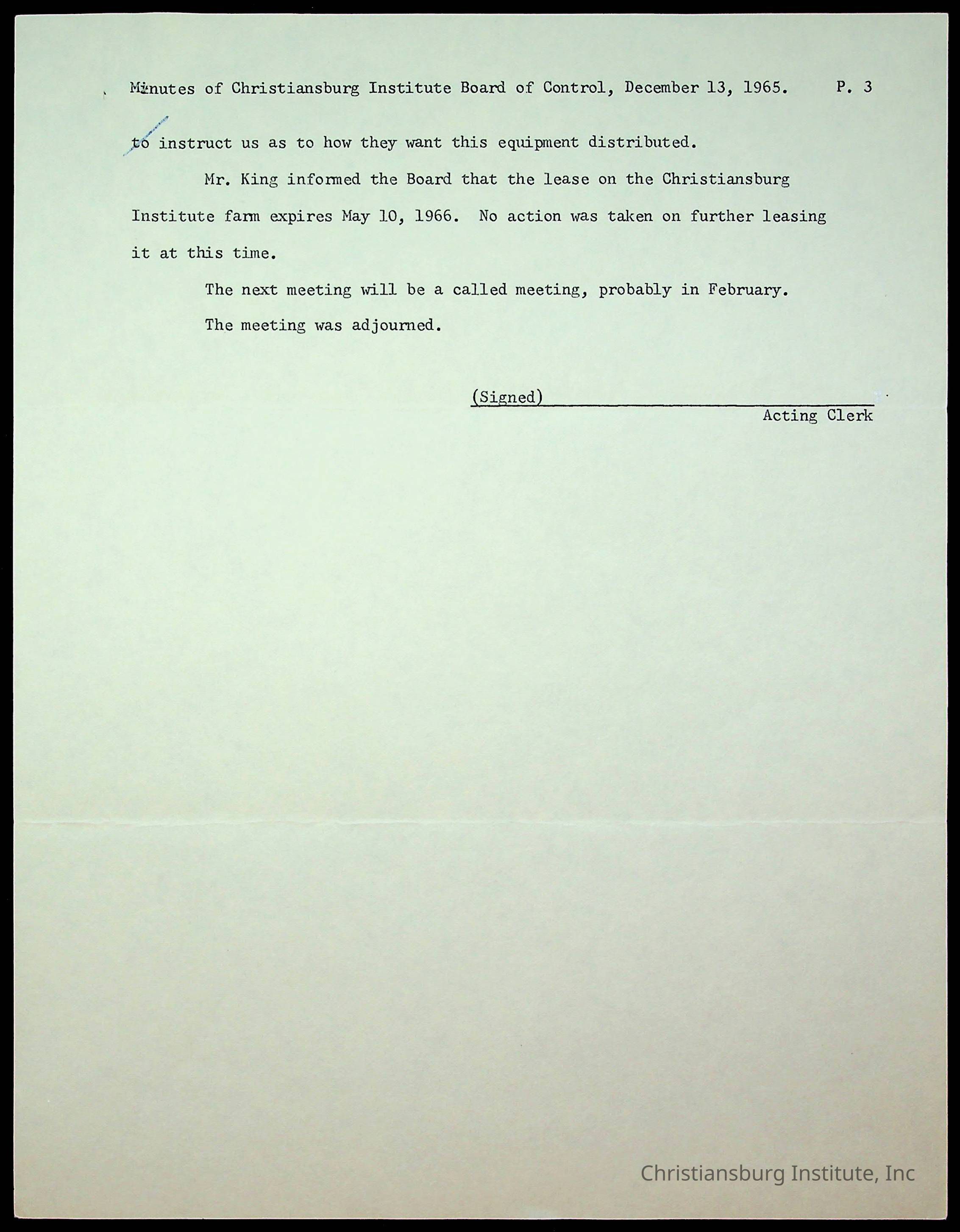 An archive of miscellaneous financial documents that relate to Christiansburg Institute, circa 1960s including; correspondences, loan documents, board meetings, and notes.Collection