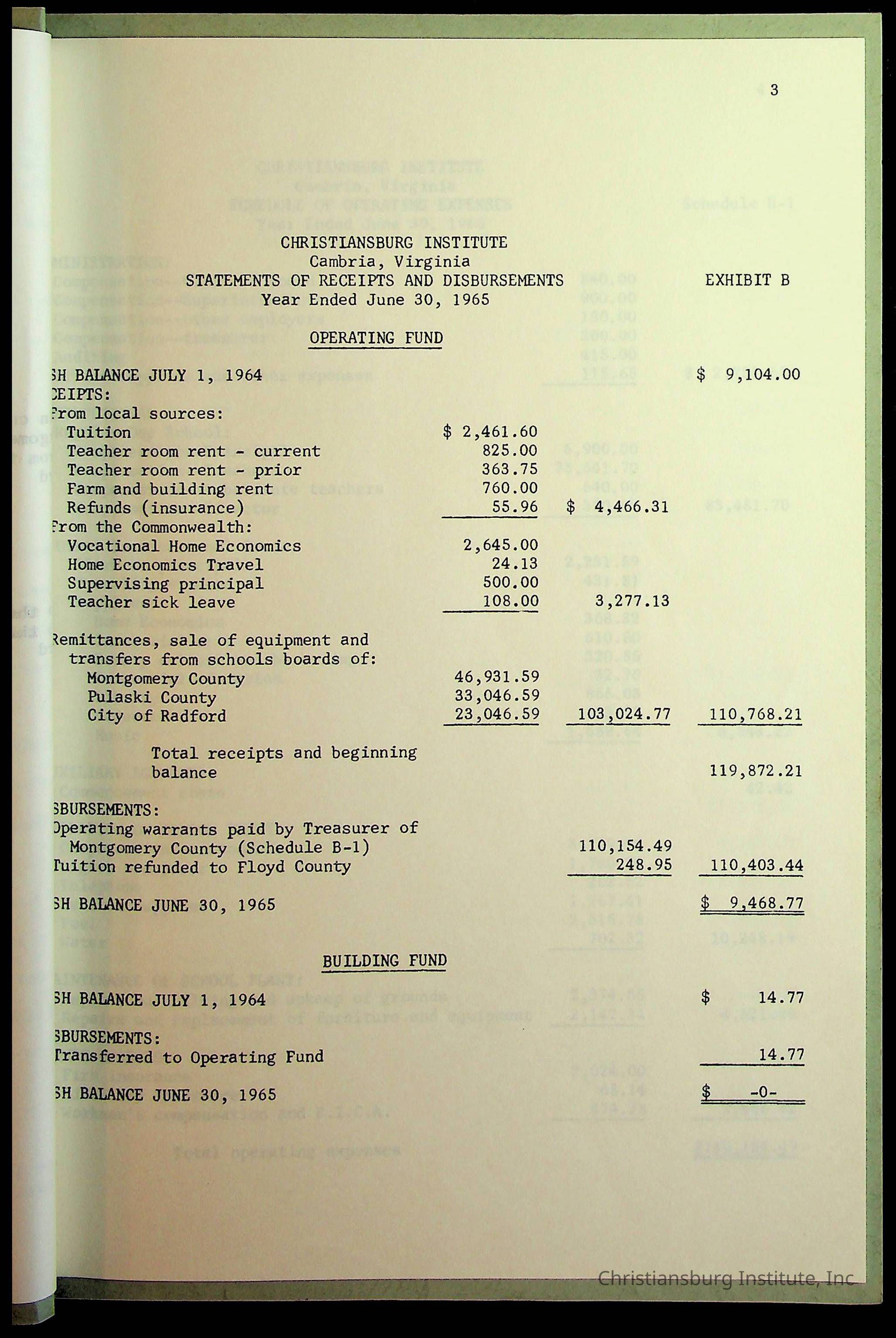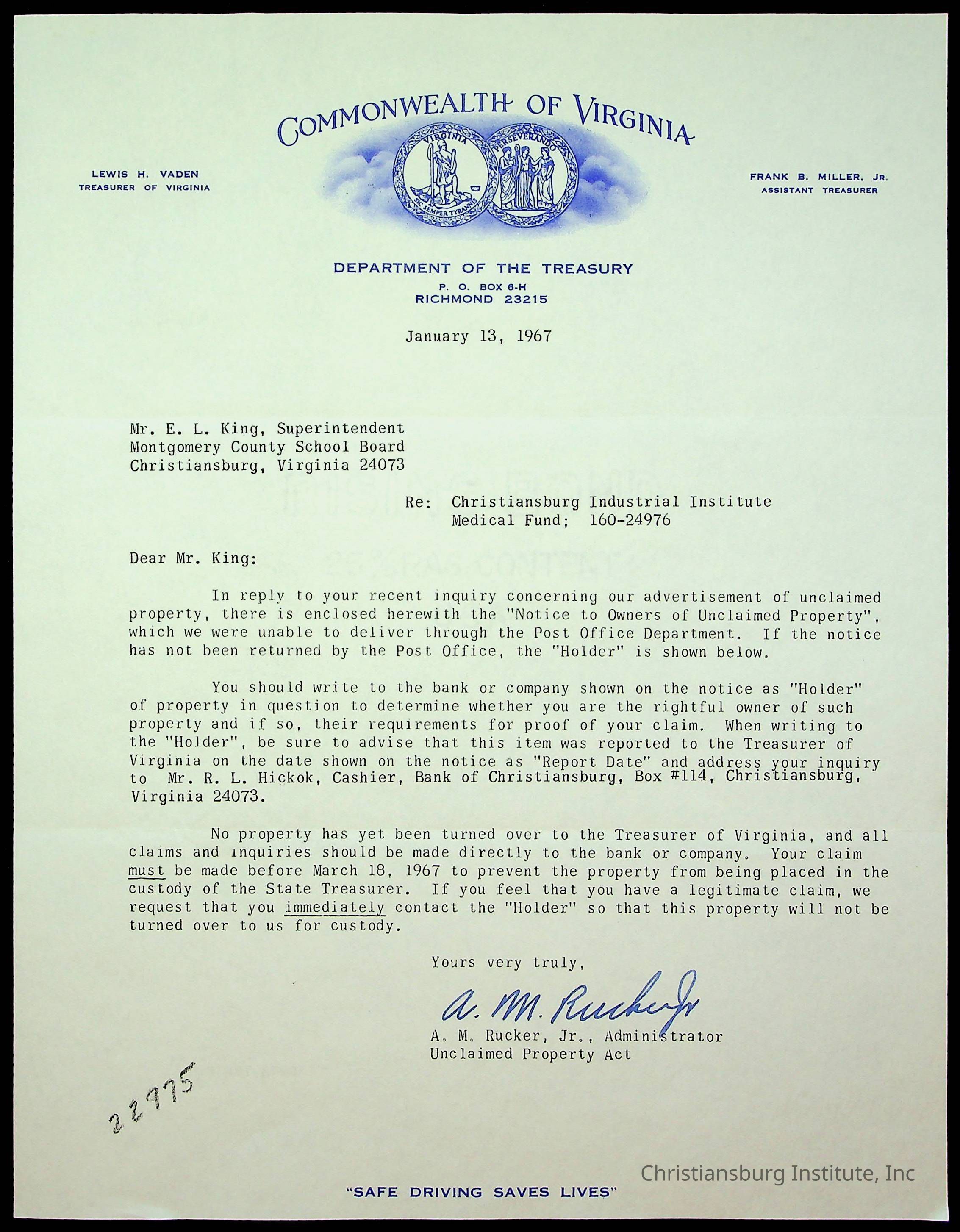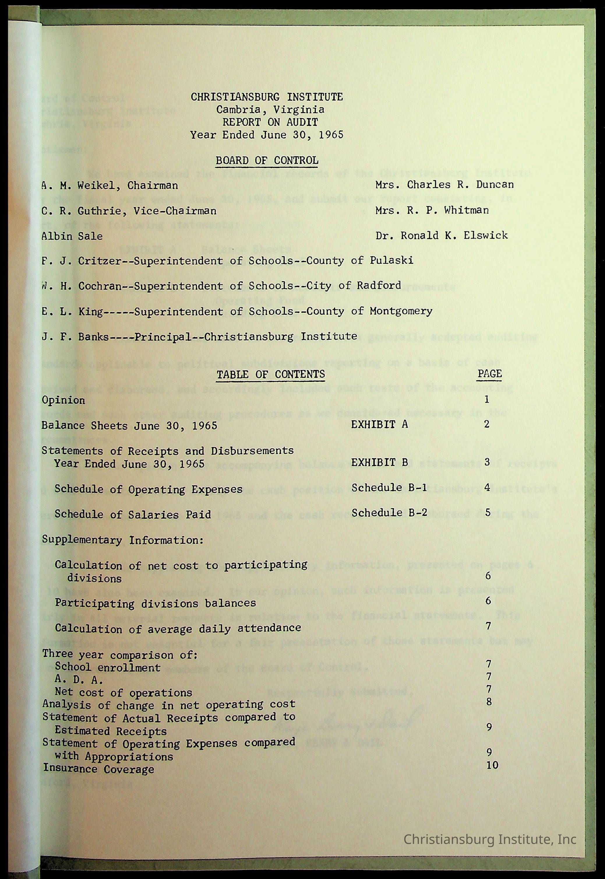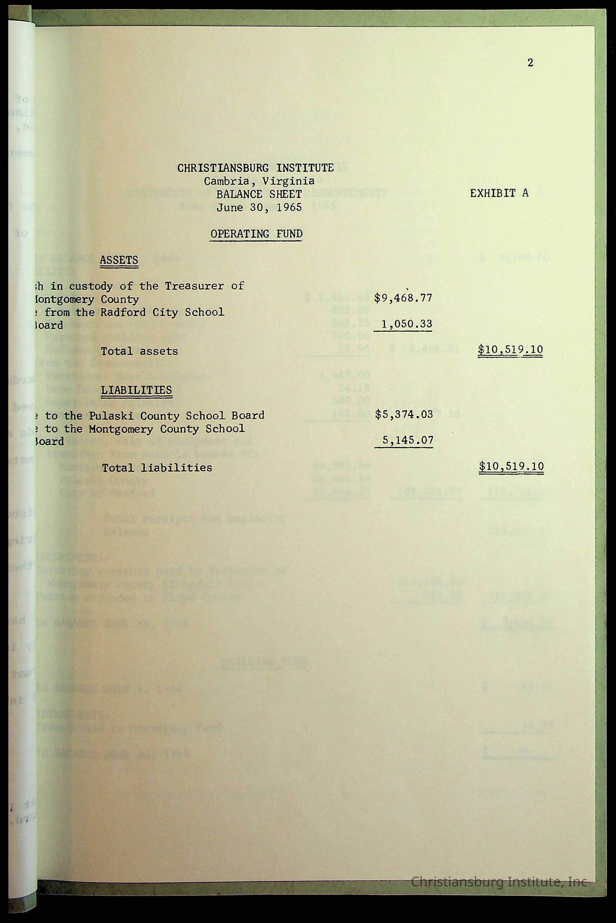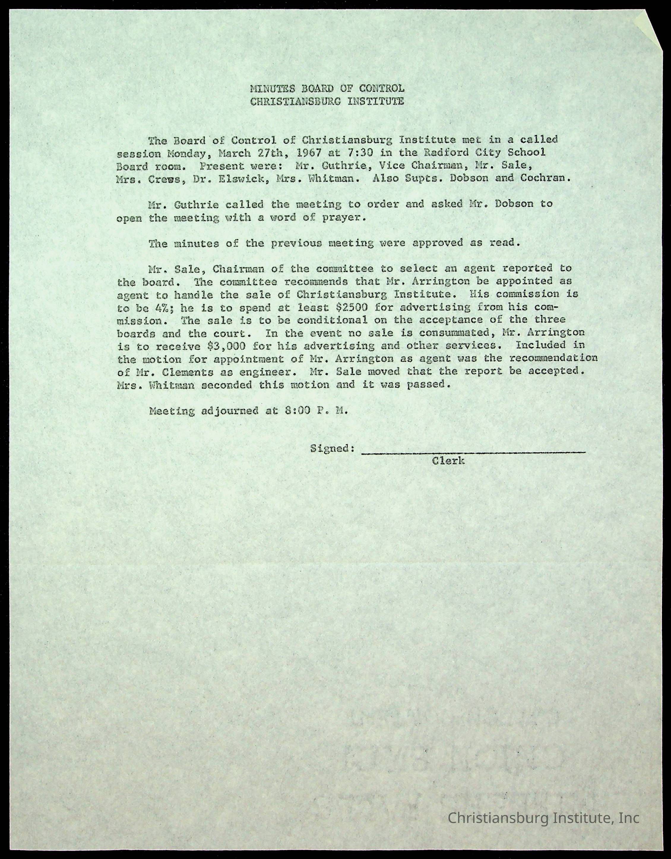 An archive of miscellaneous financial documents that relate to Christiansburg Institute, circa 1960s including; correspondences, loan documents, board meetings, and notes.Collection