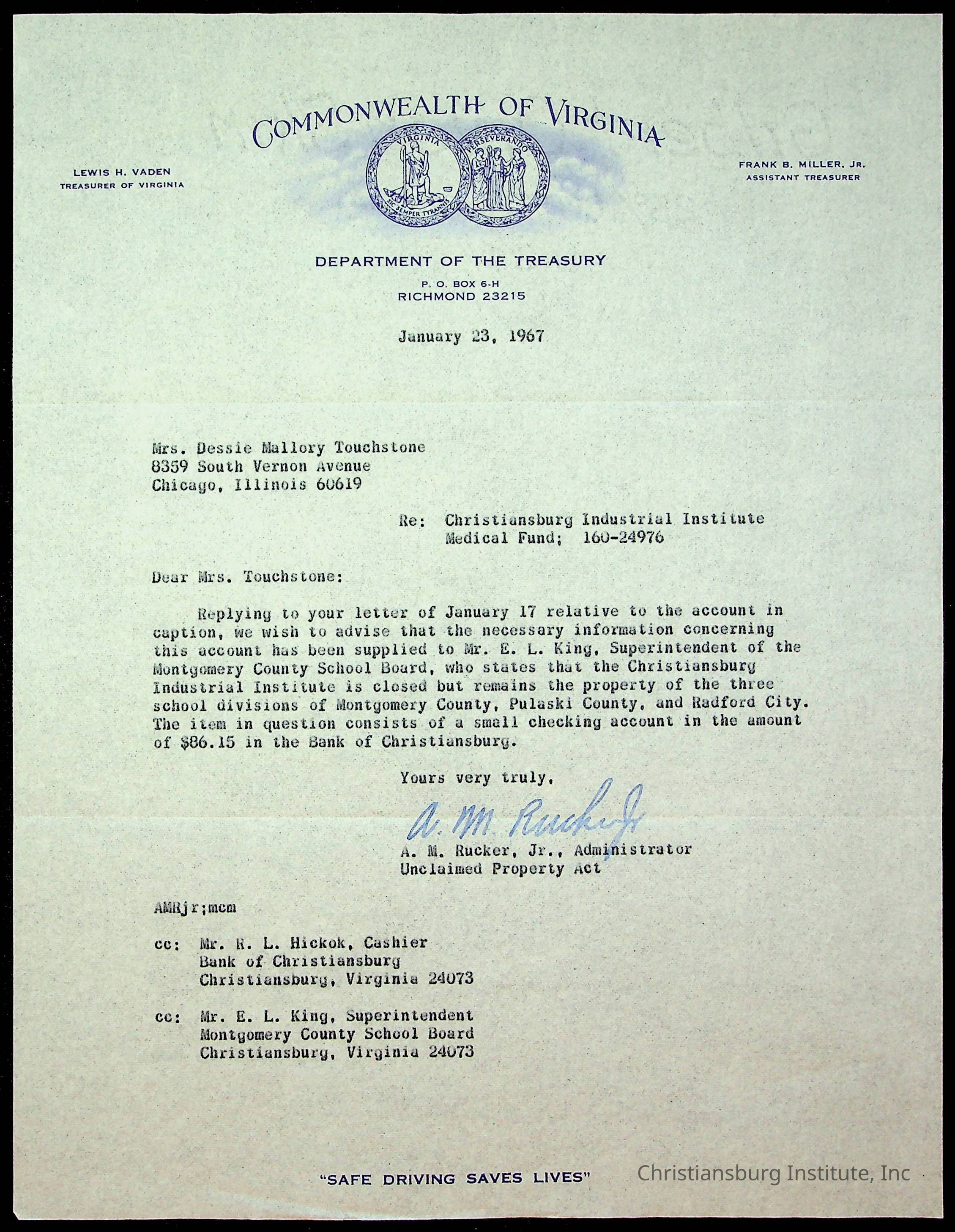 Christiansburg Institute, Hank, William, Montgomery County School Board, Bank of Christiansburg, Commonwealth of Virginia, King, E. L.Related Places