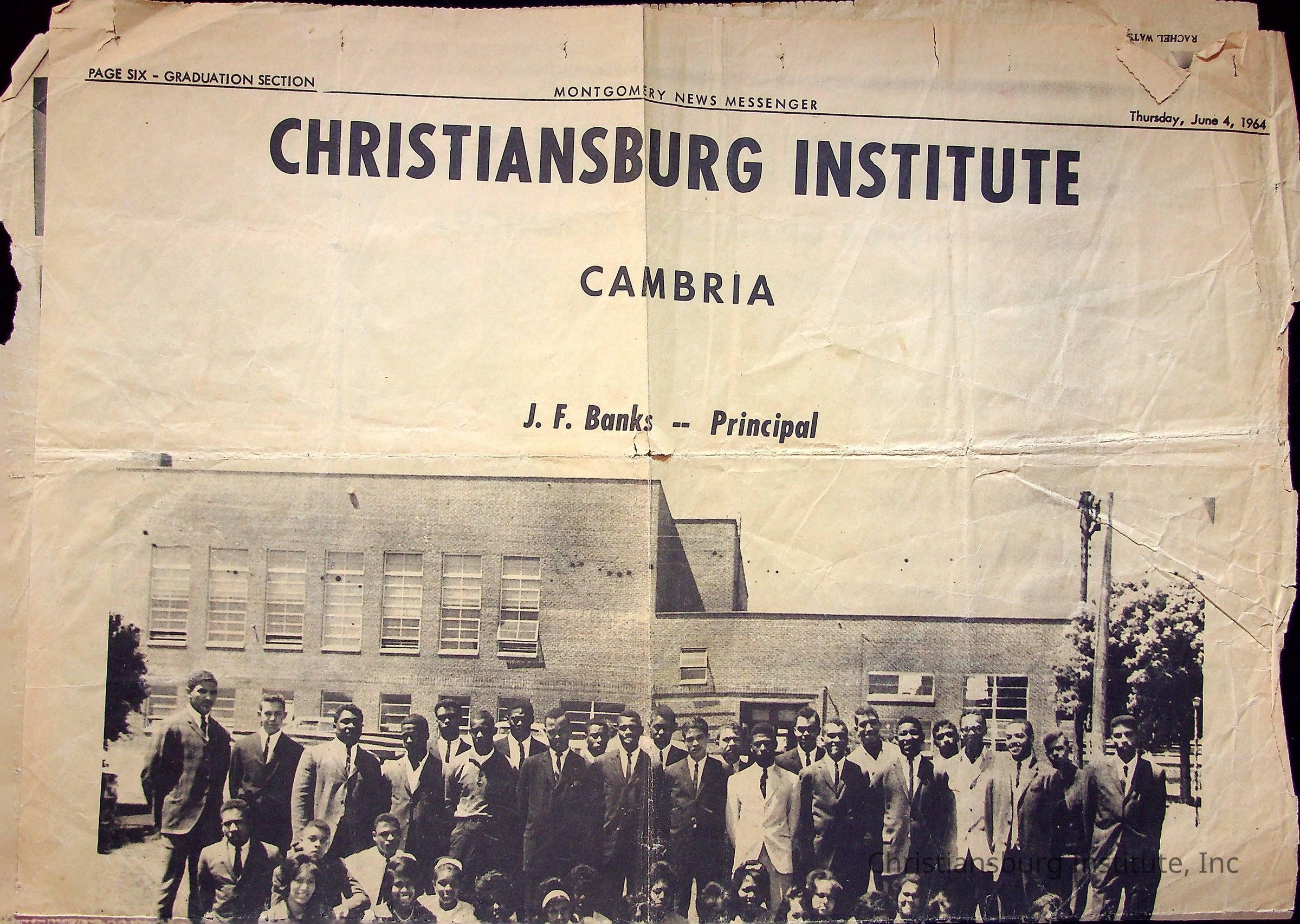 Christiansburg Institute,” Montgomery News Messenger, June 4, 1964Description