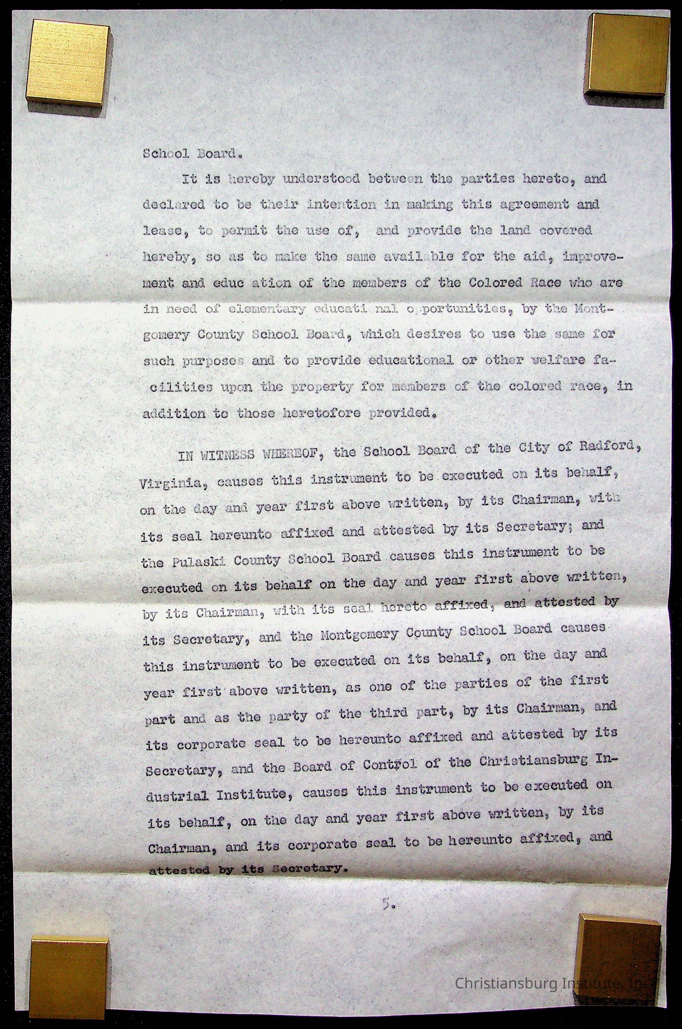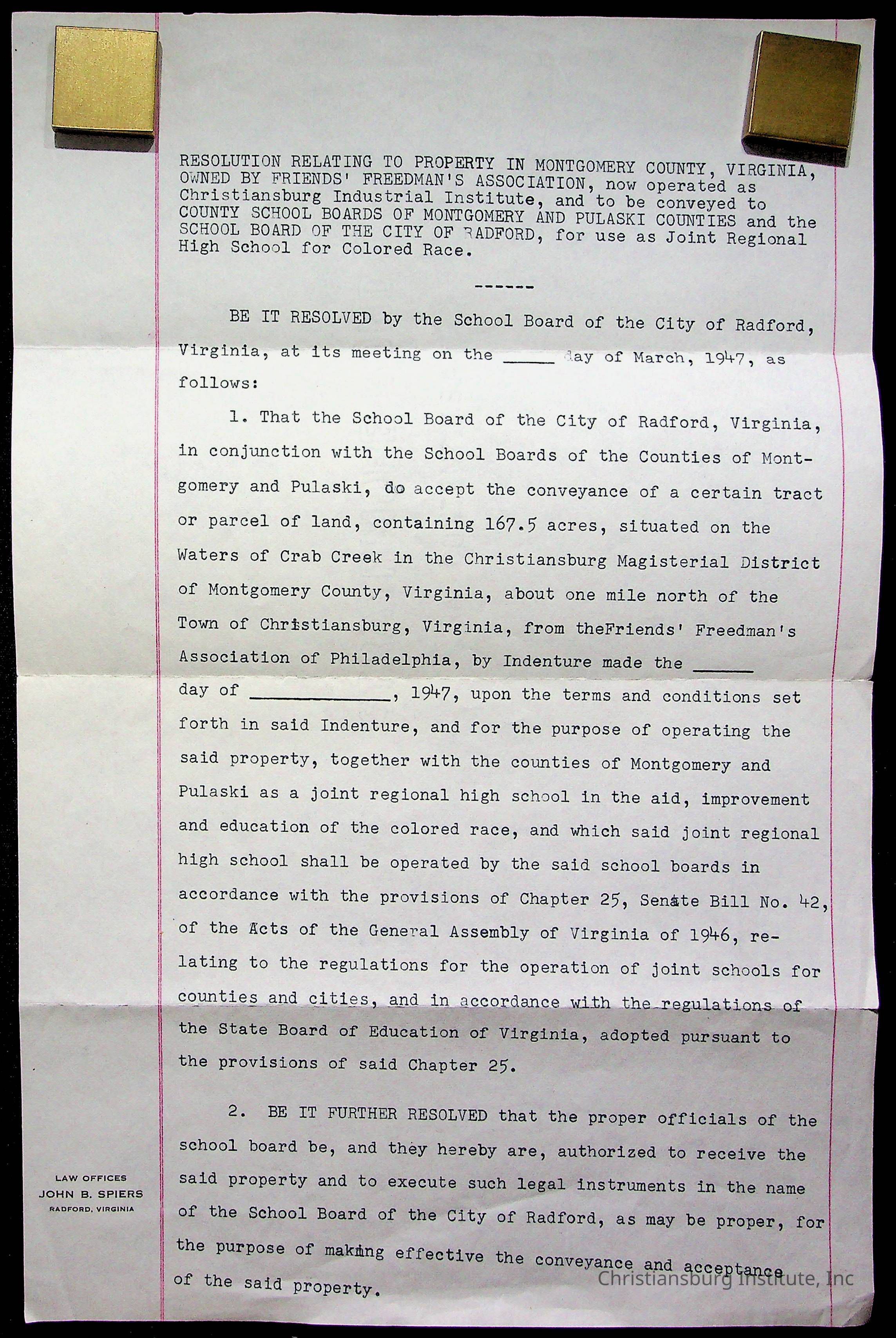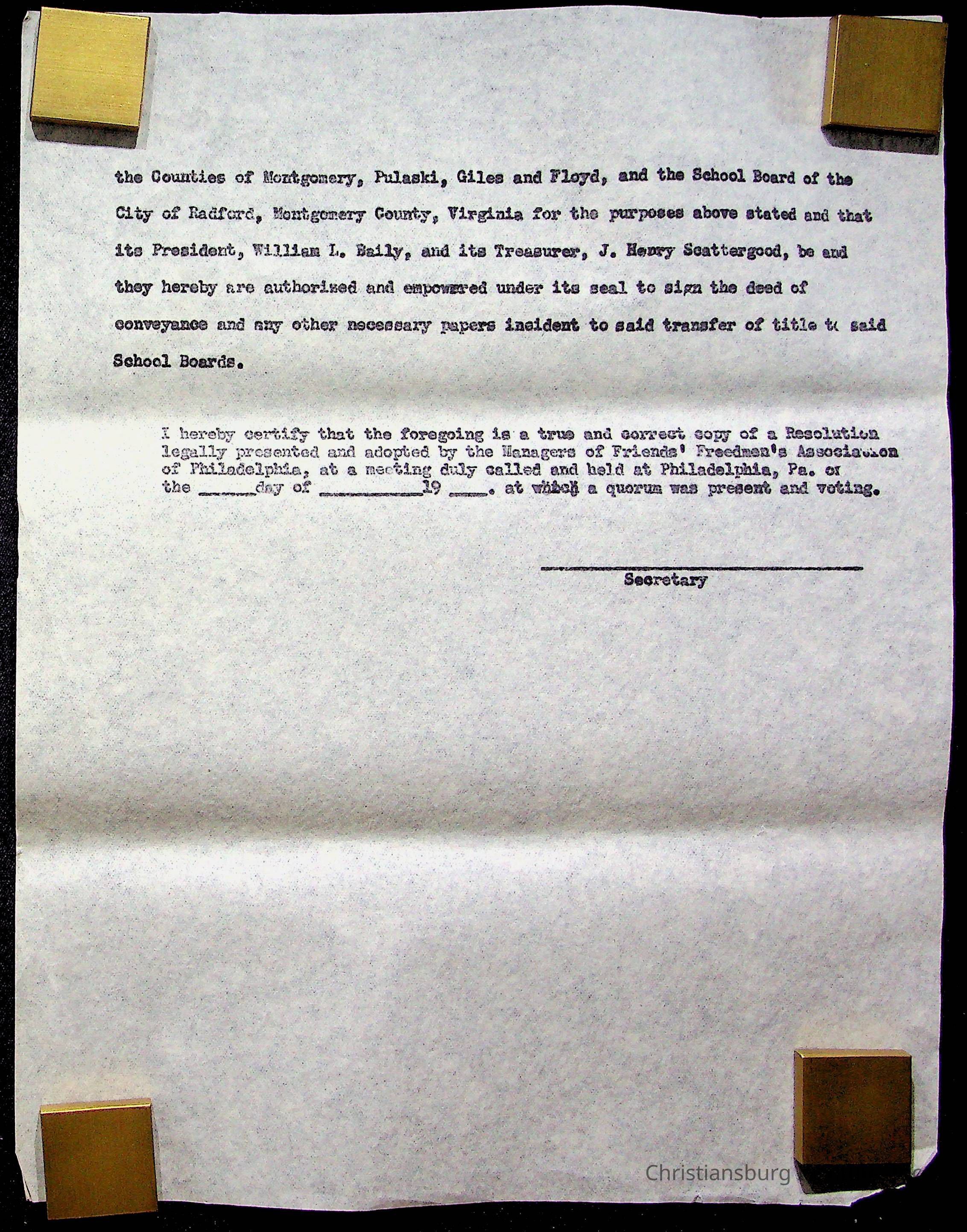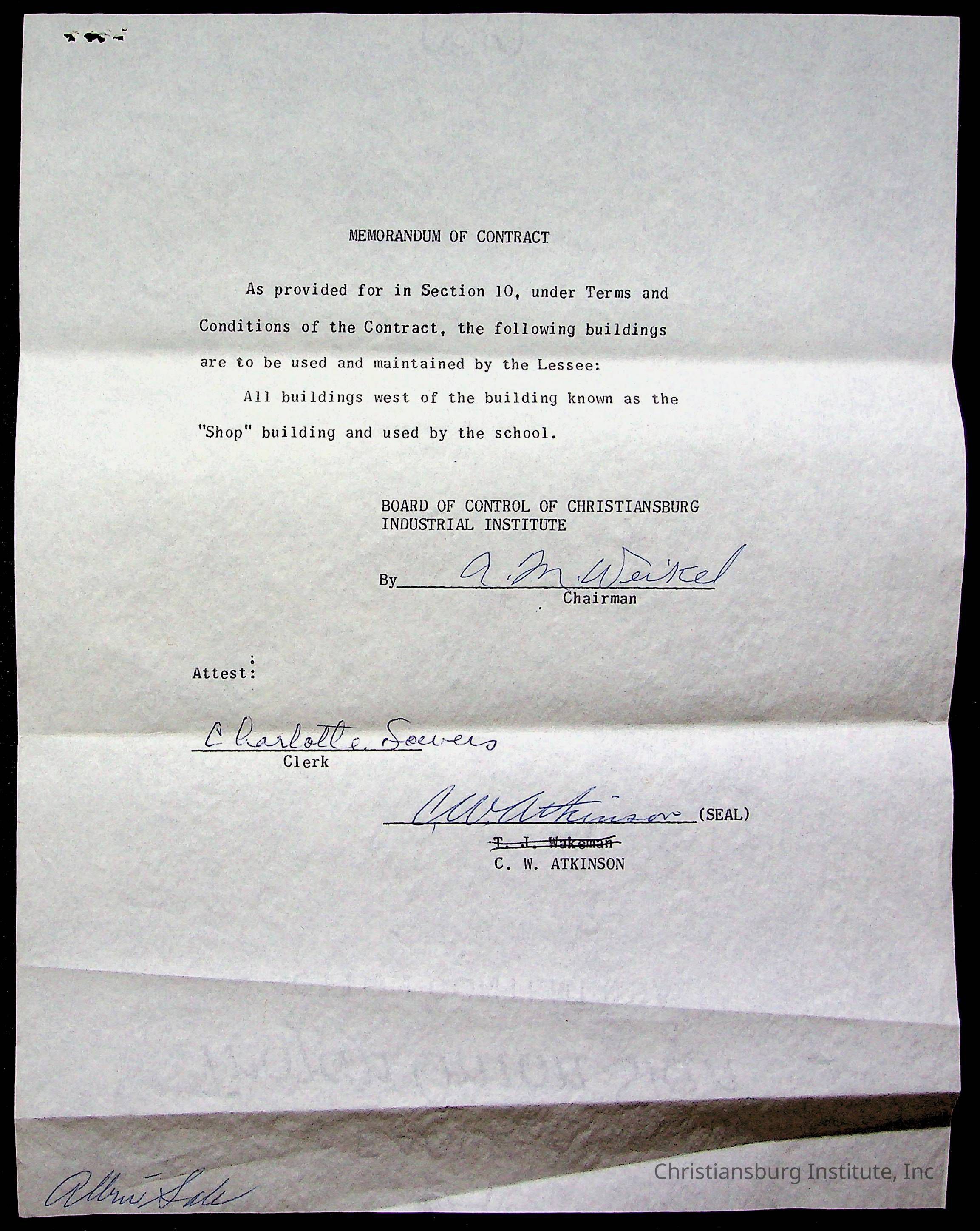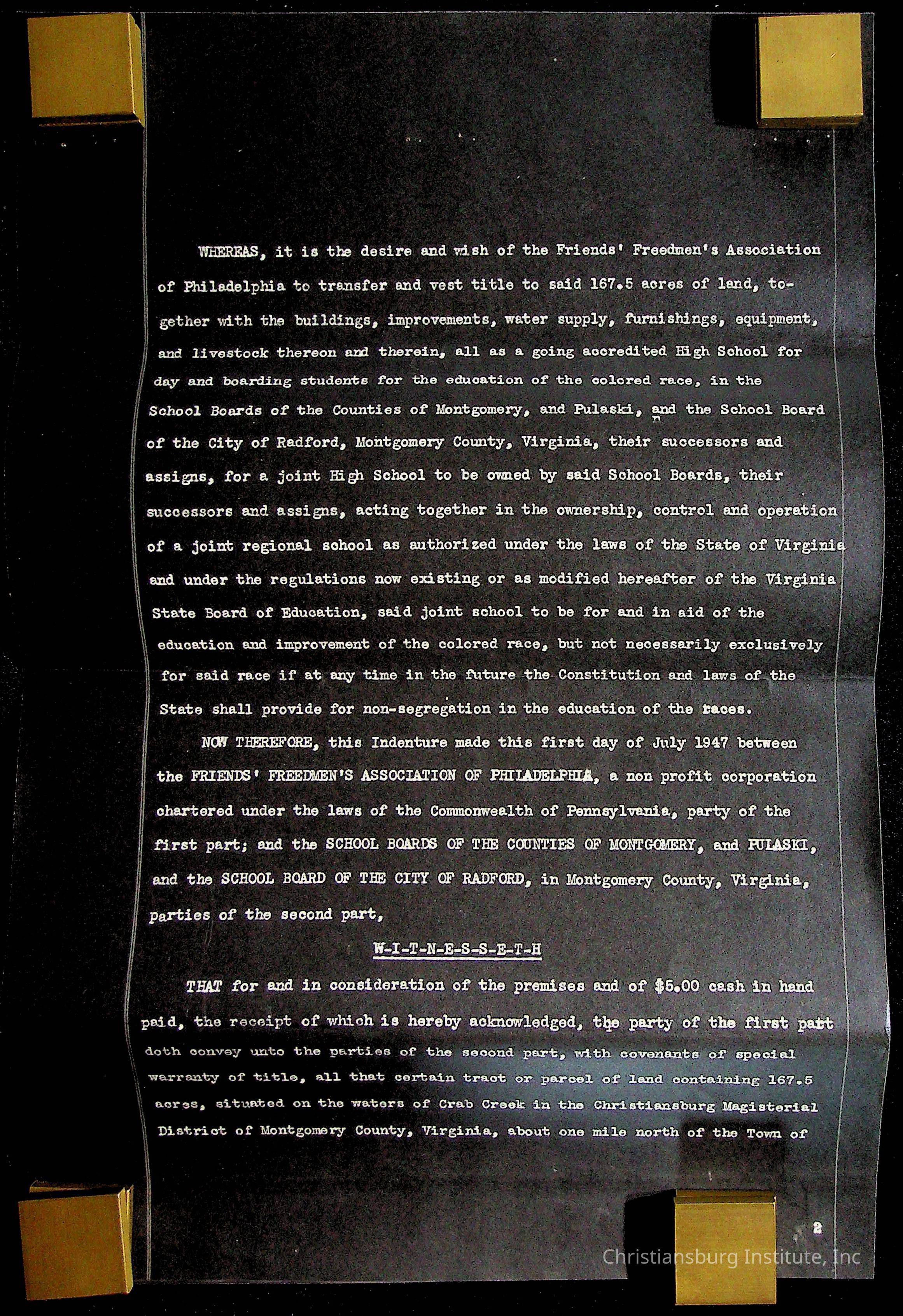 An archive of materials relating to the Christiansburg Institute including copies of deeds, correspondence, insurance paperwork, and other materials, circa 1940s-1960s.Collection