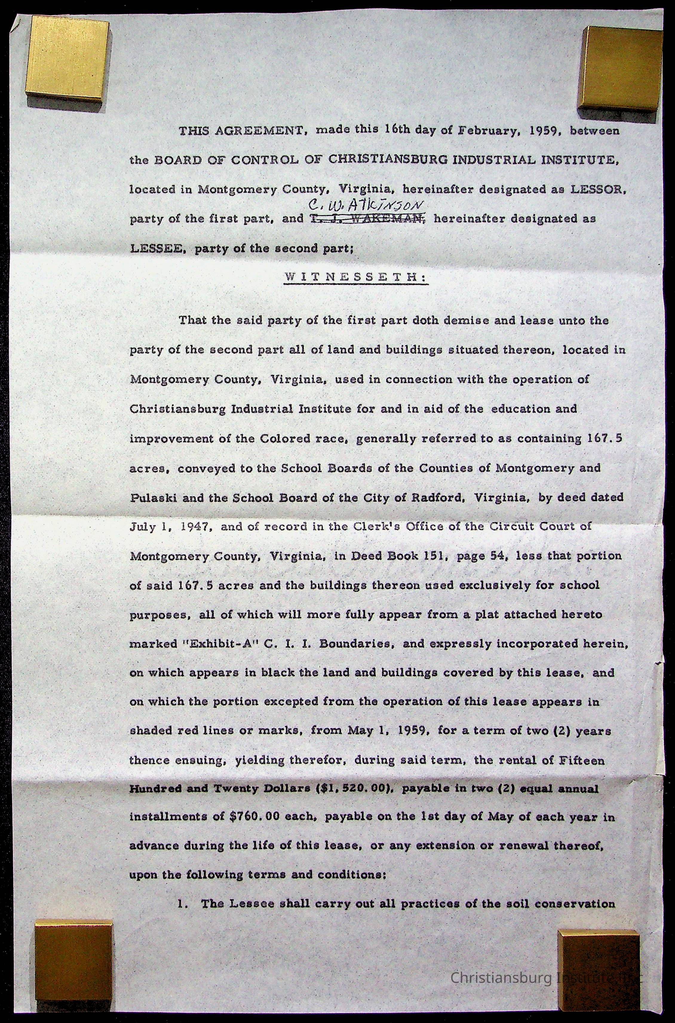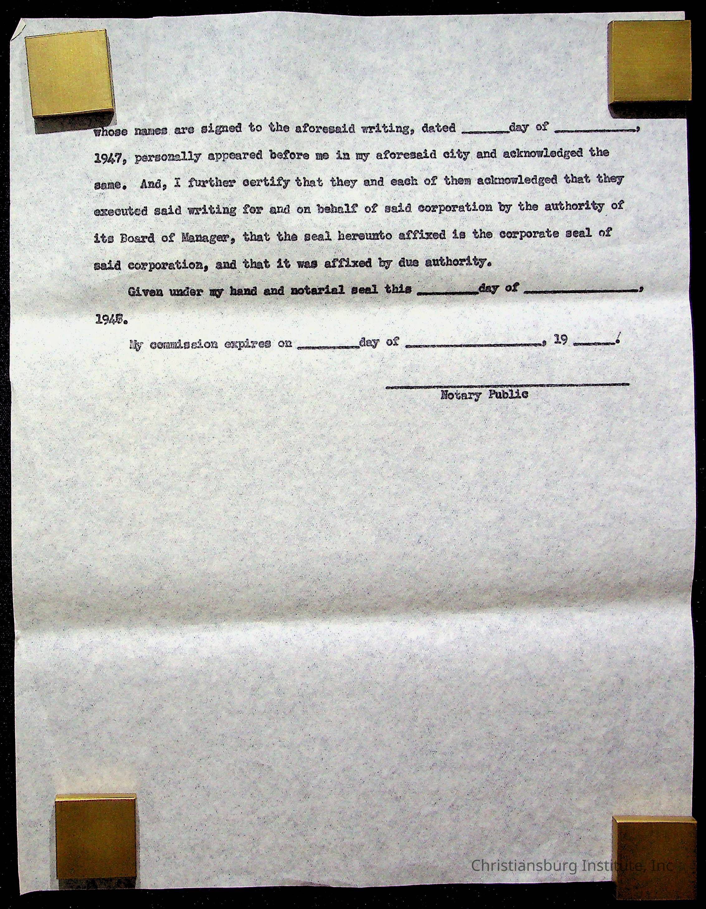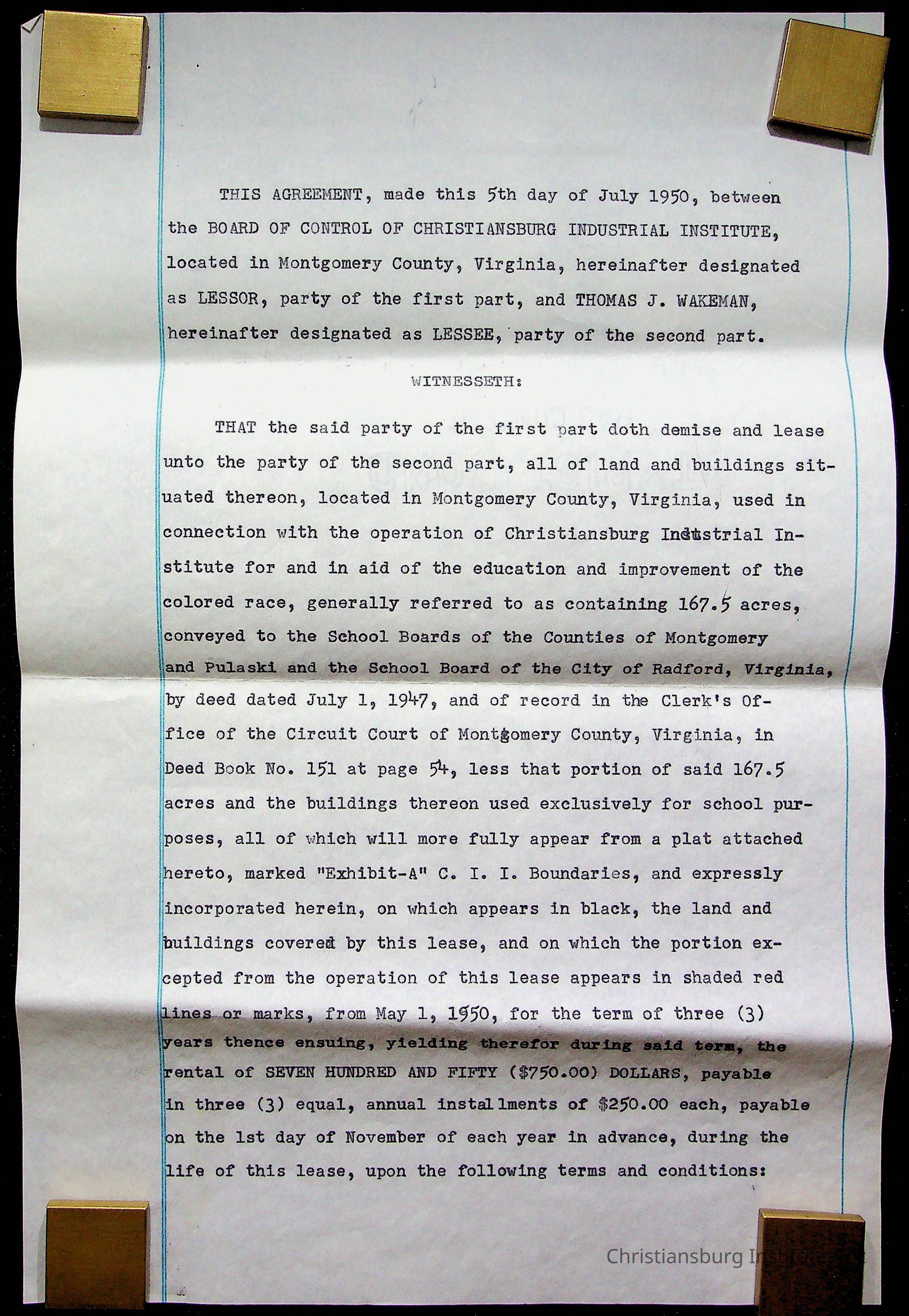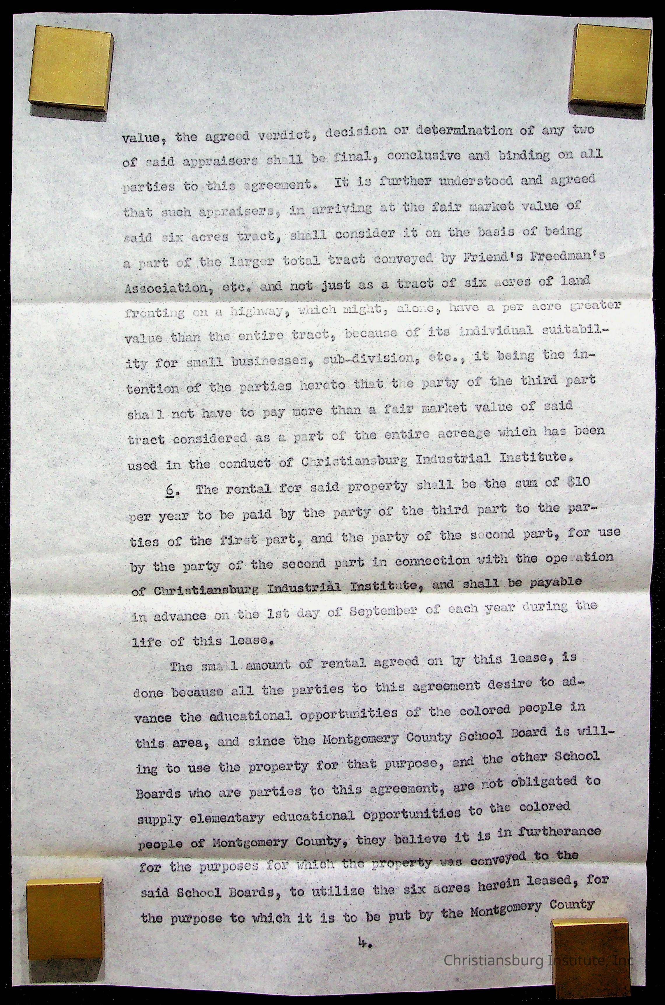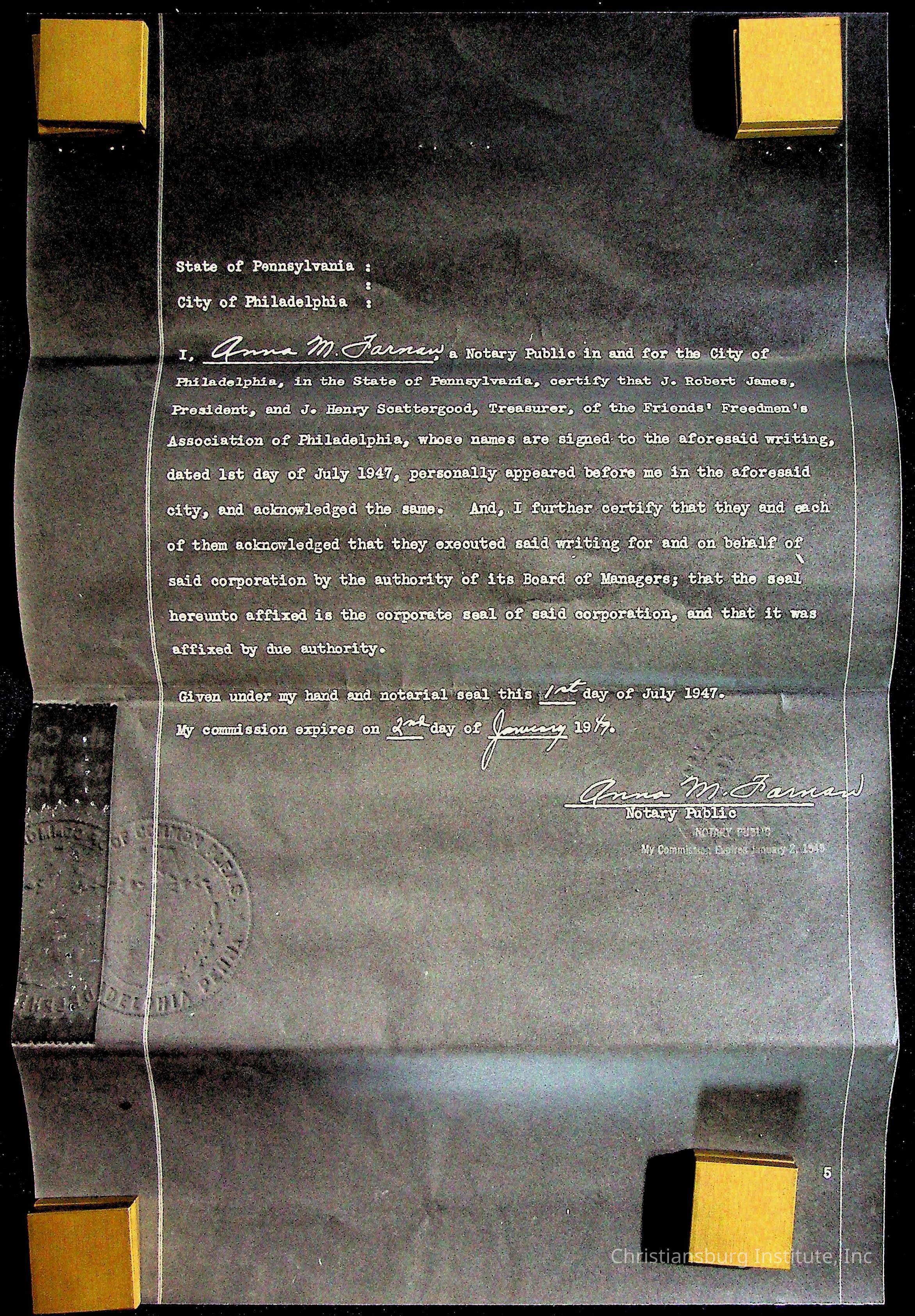 An archive of materials relating to the Christiansburg Institute including copies of deeds, correspondence, insurance paperwork, and other materials, circa 1940s-1960s.Collection