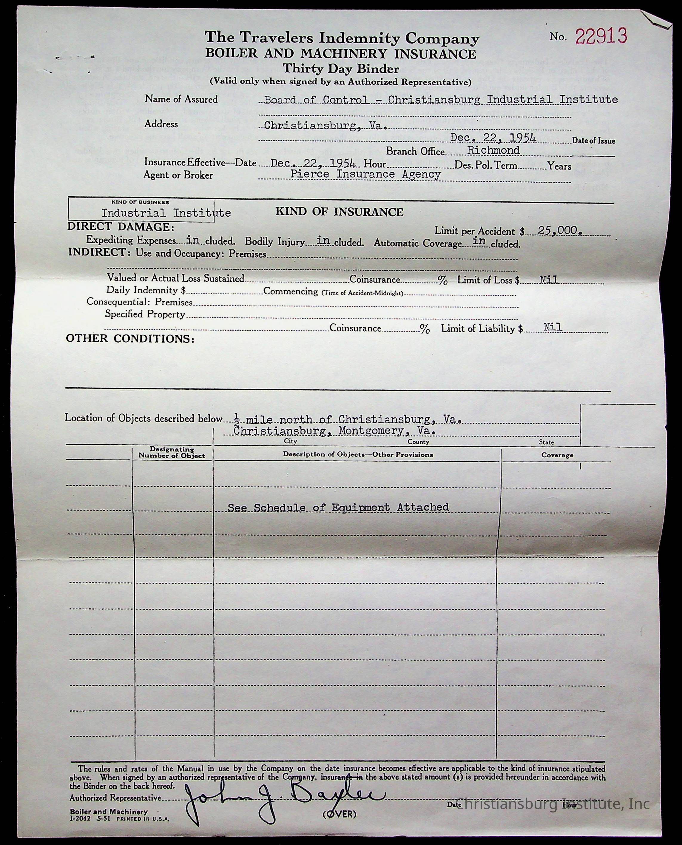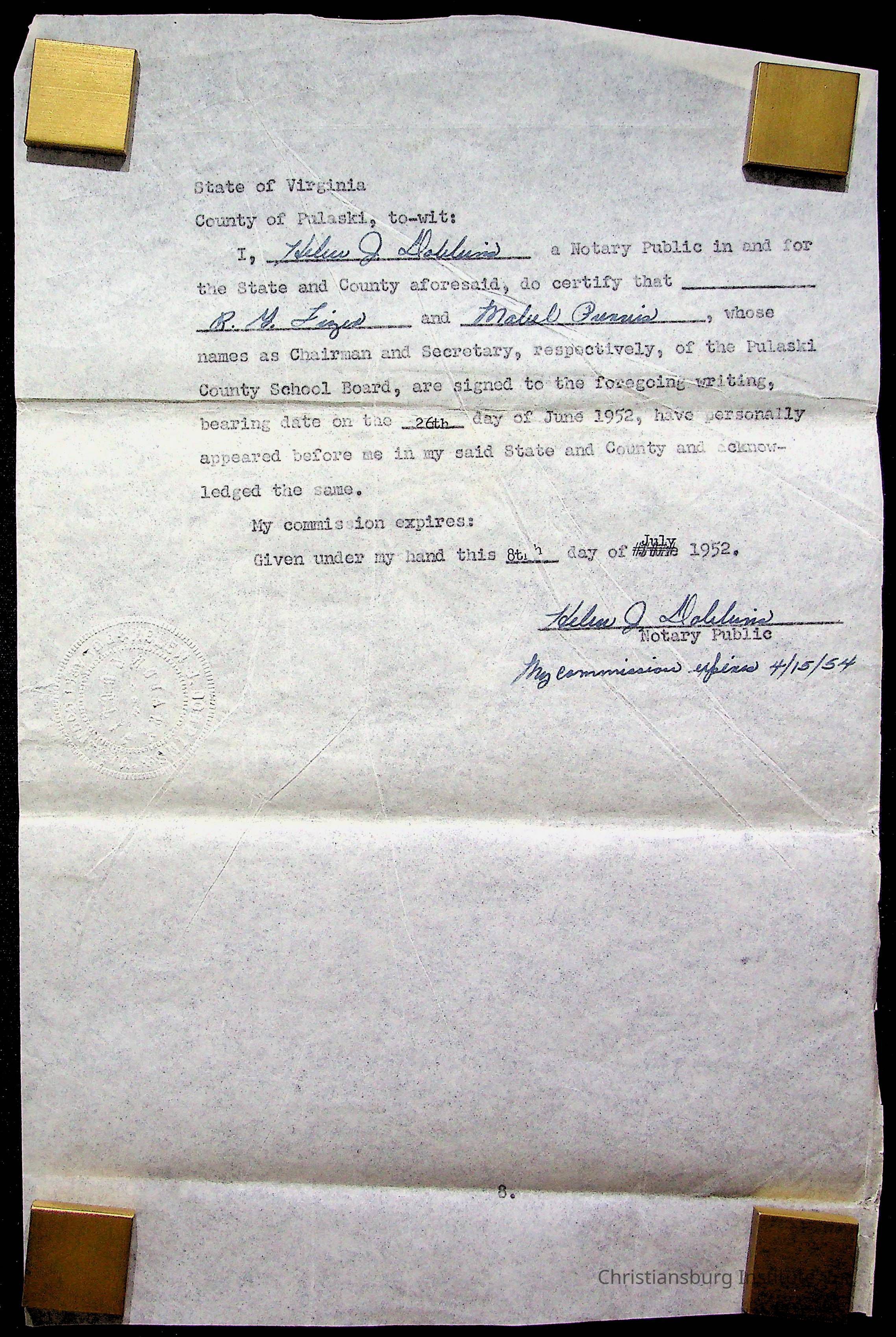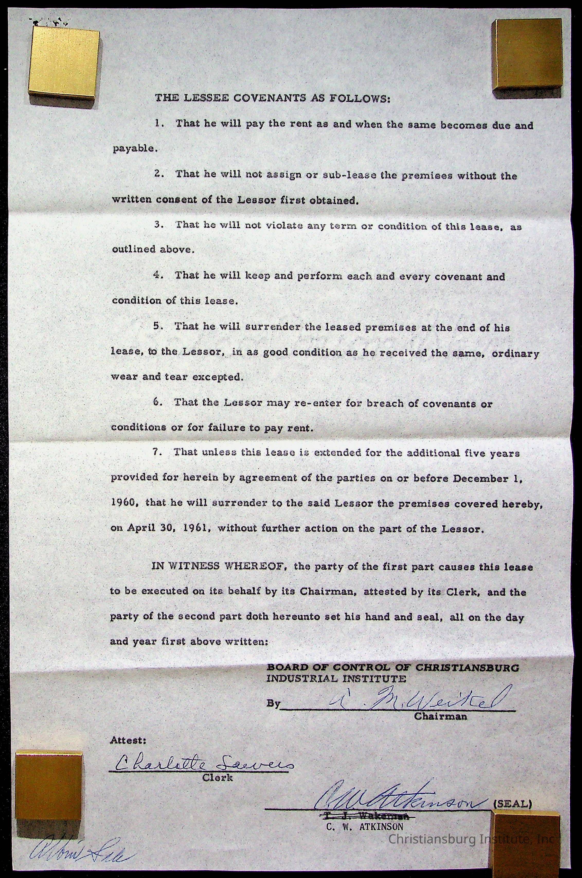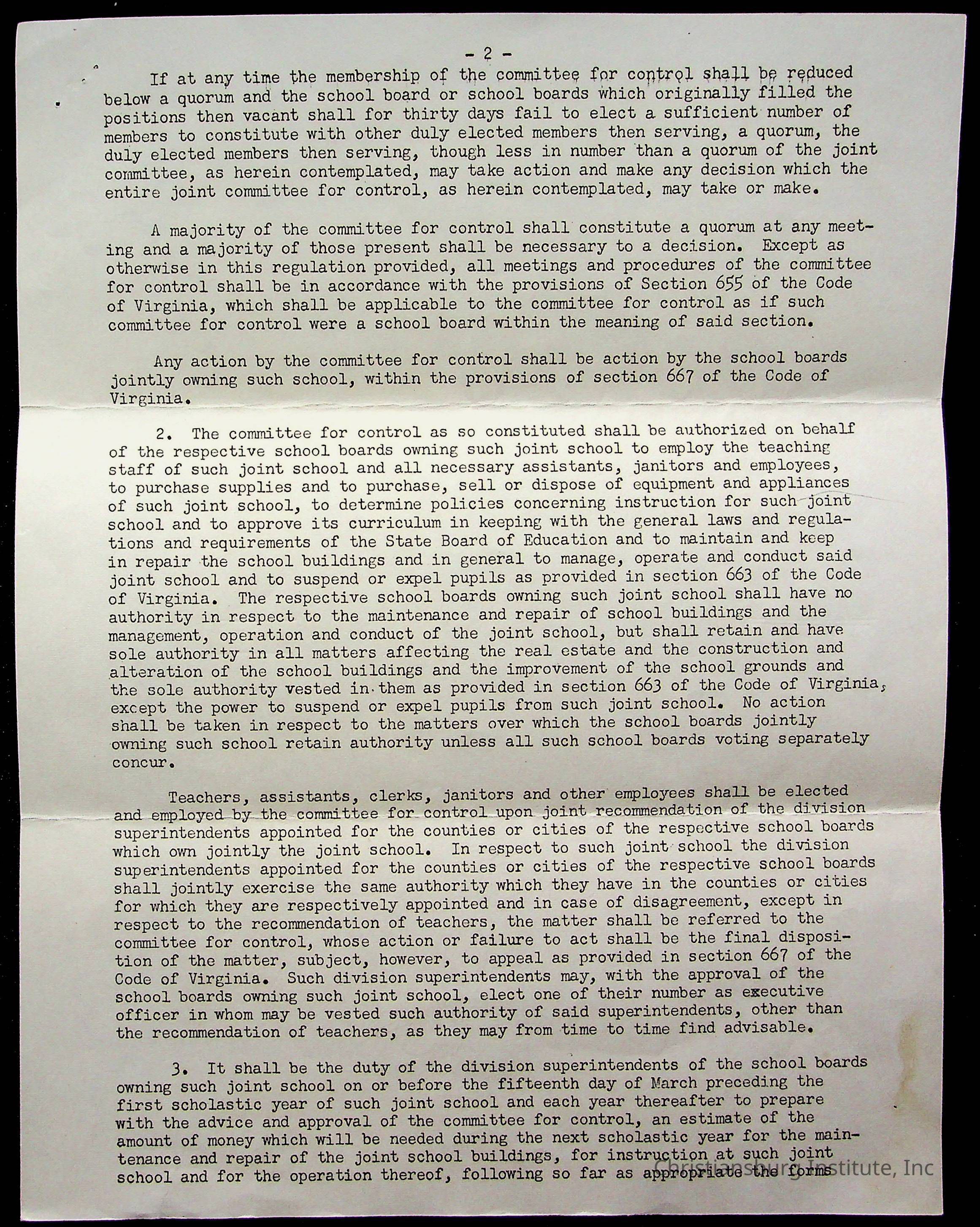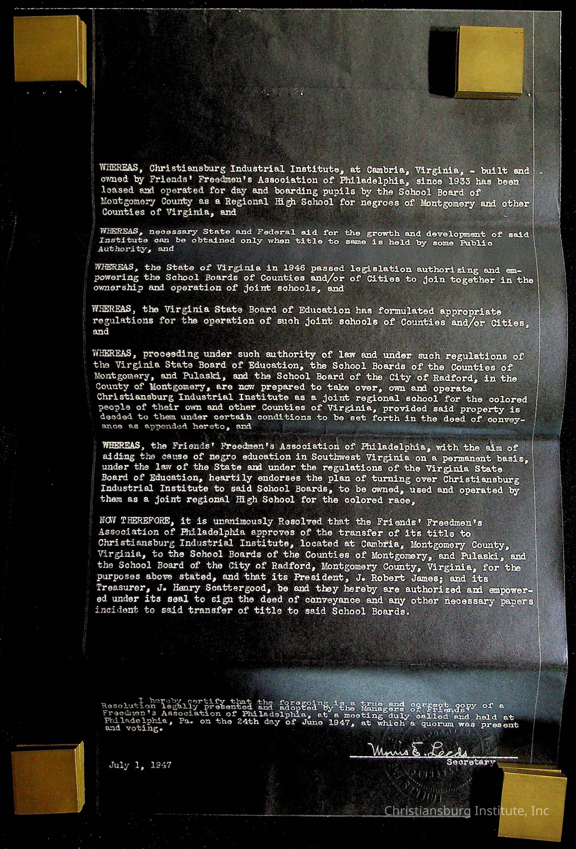 An archive of materials relating to the Christiansburg Institute including copies of deeds, correspondence, insurance paperwork, and other materials, circa 1940s-1960s.Collection