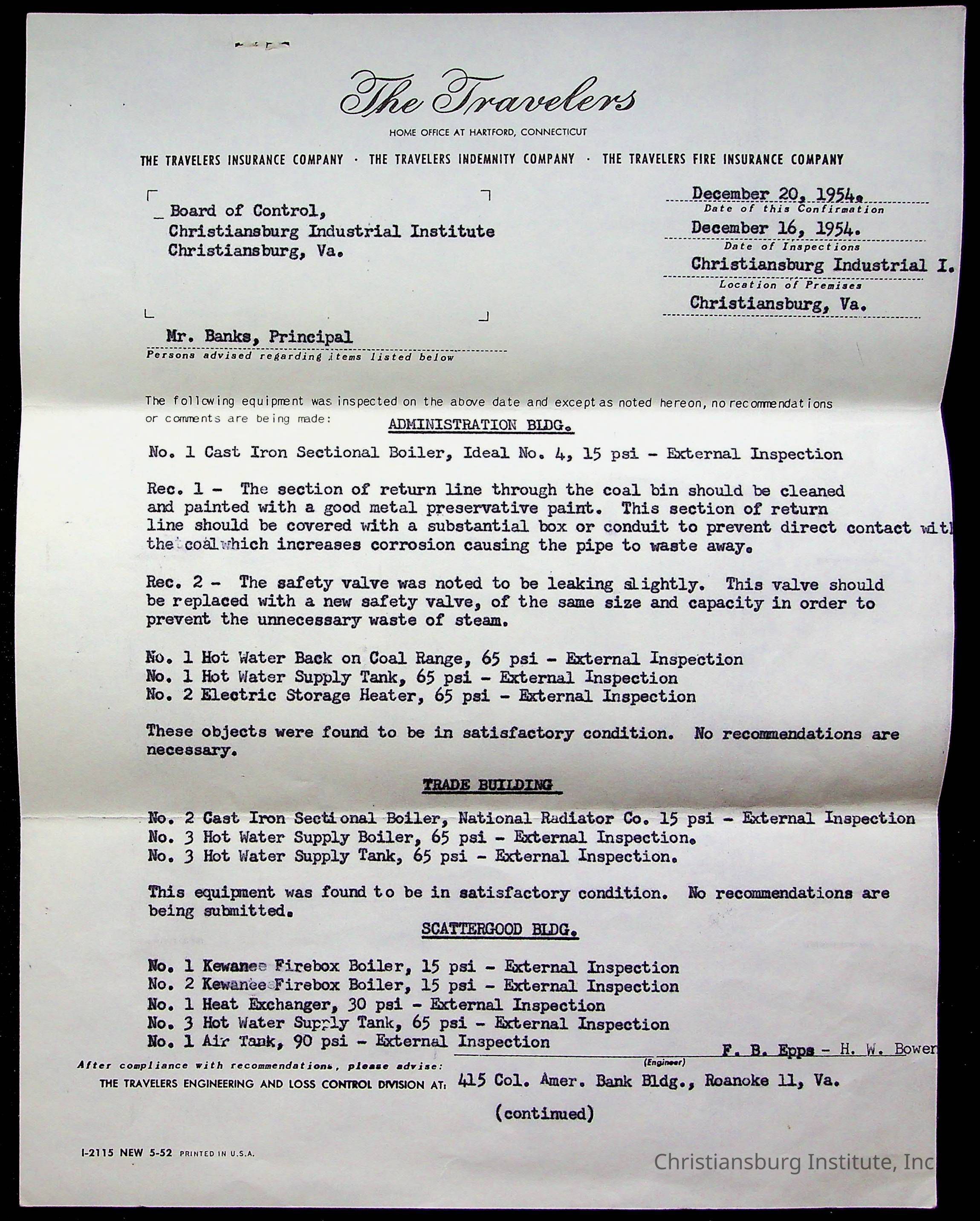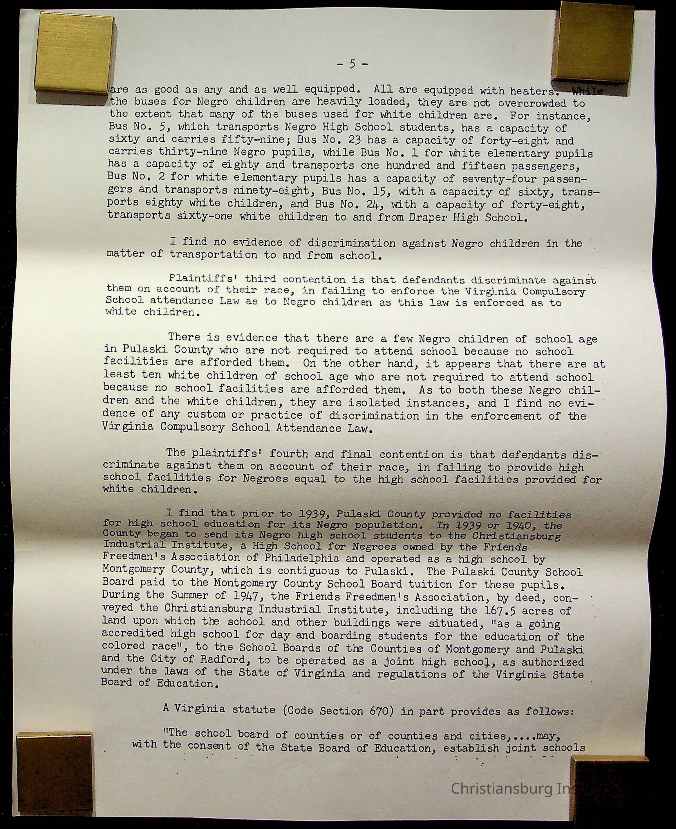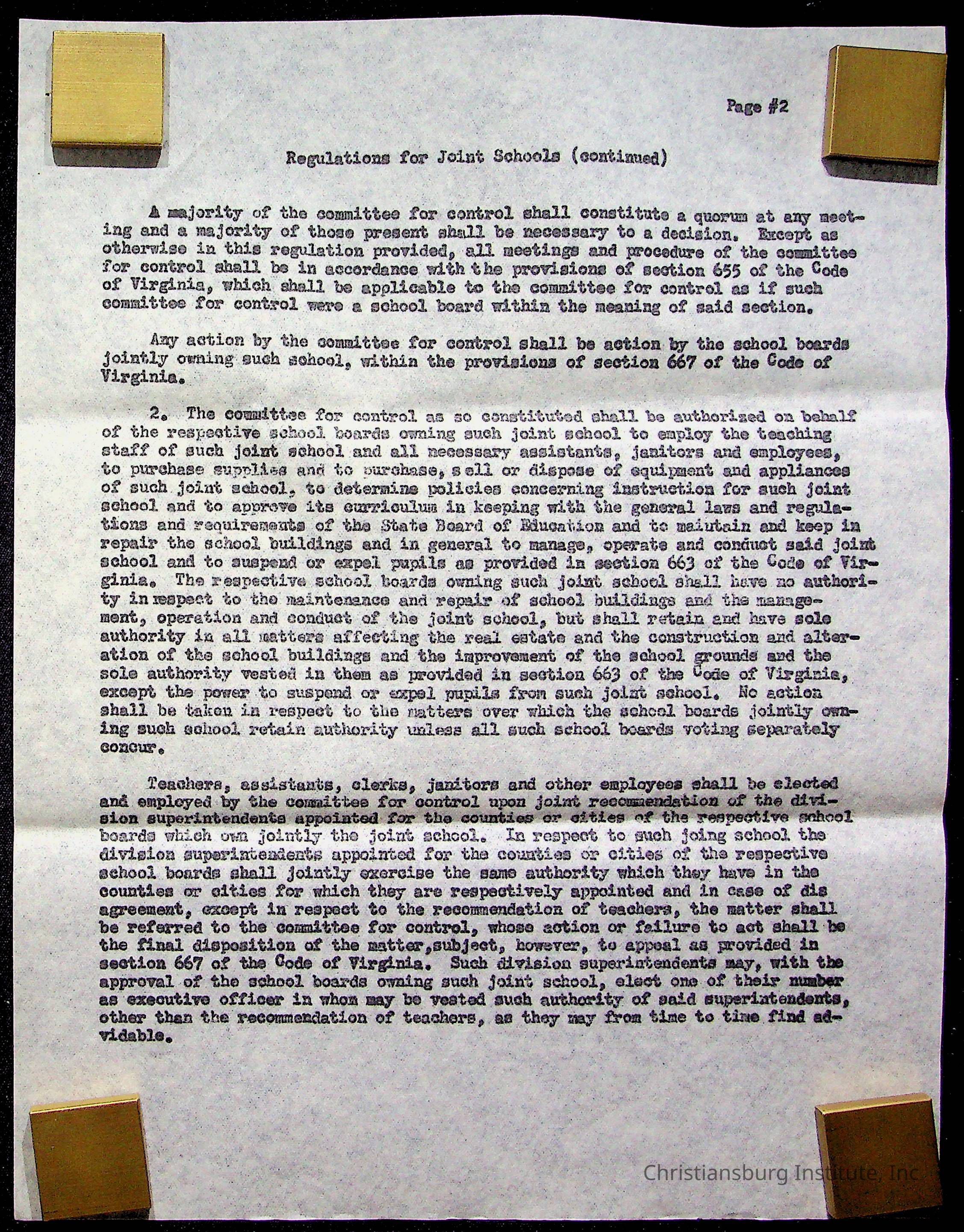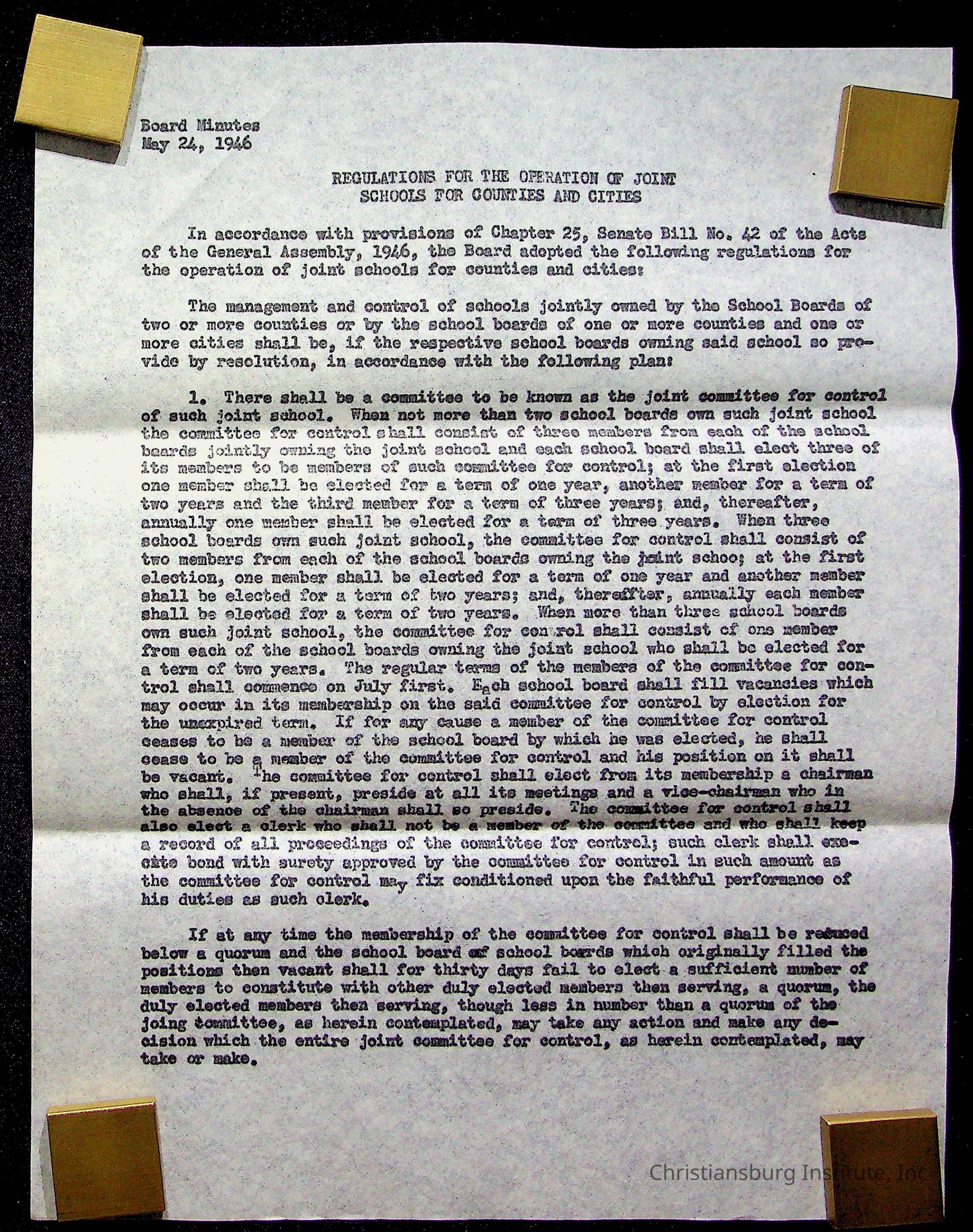 An archive of materials relating to the Christiansburg Institute including copies of deeds, correspondence, insurance paperwork, and other materials, circa 1940s-1960s.Collection