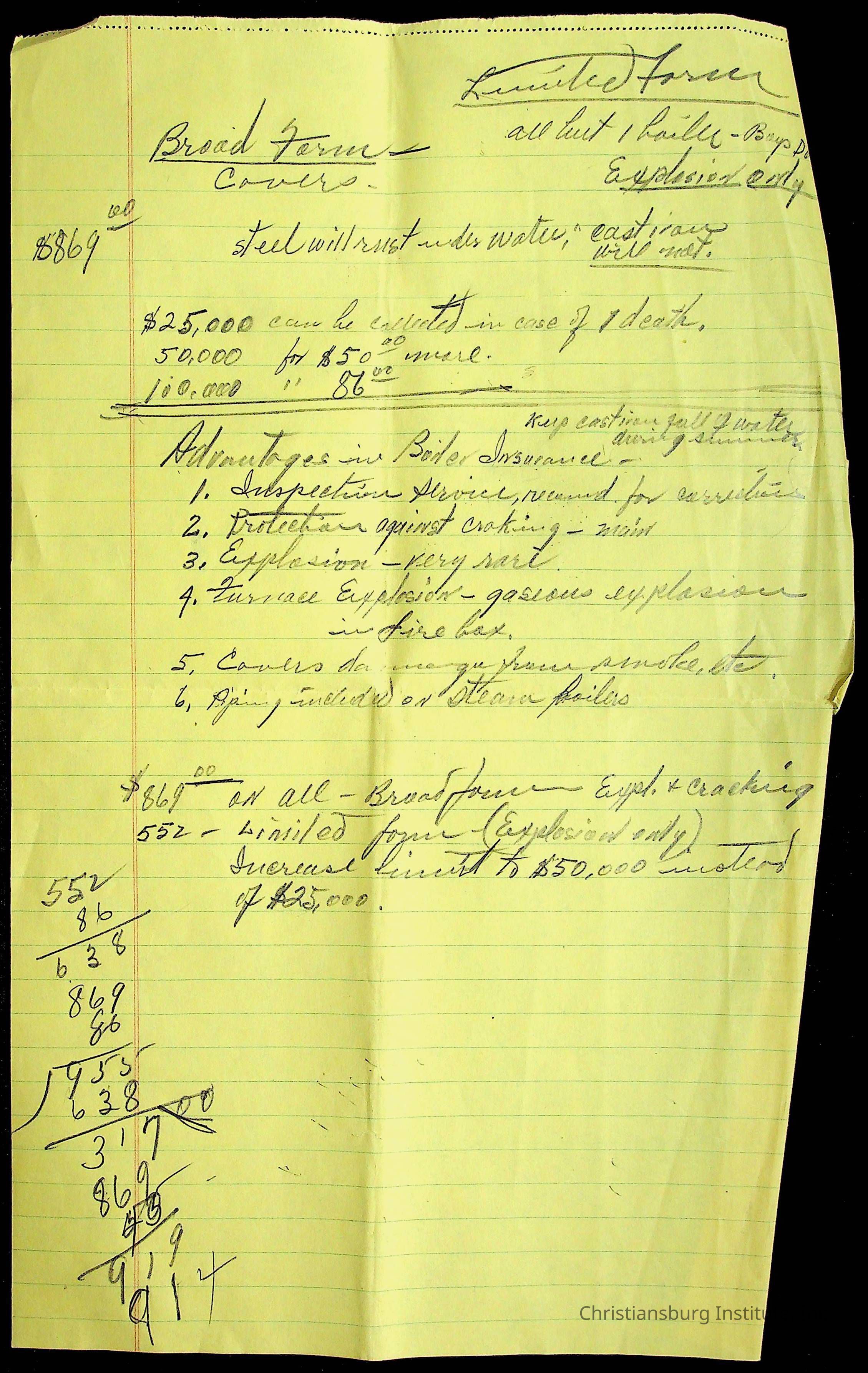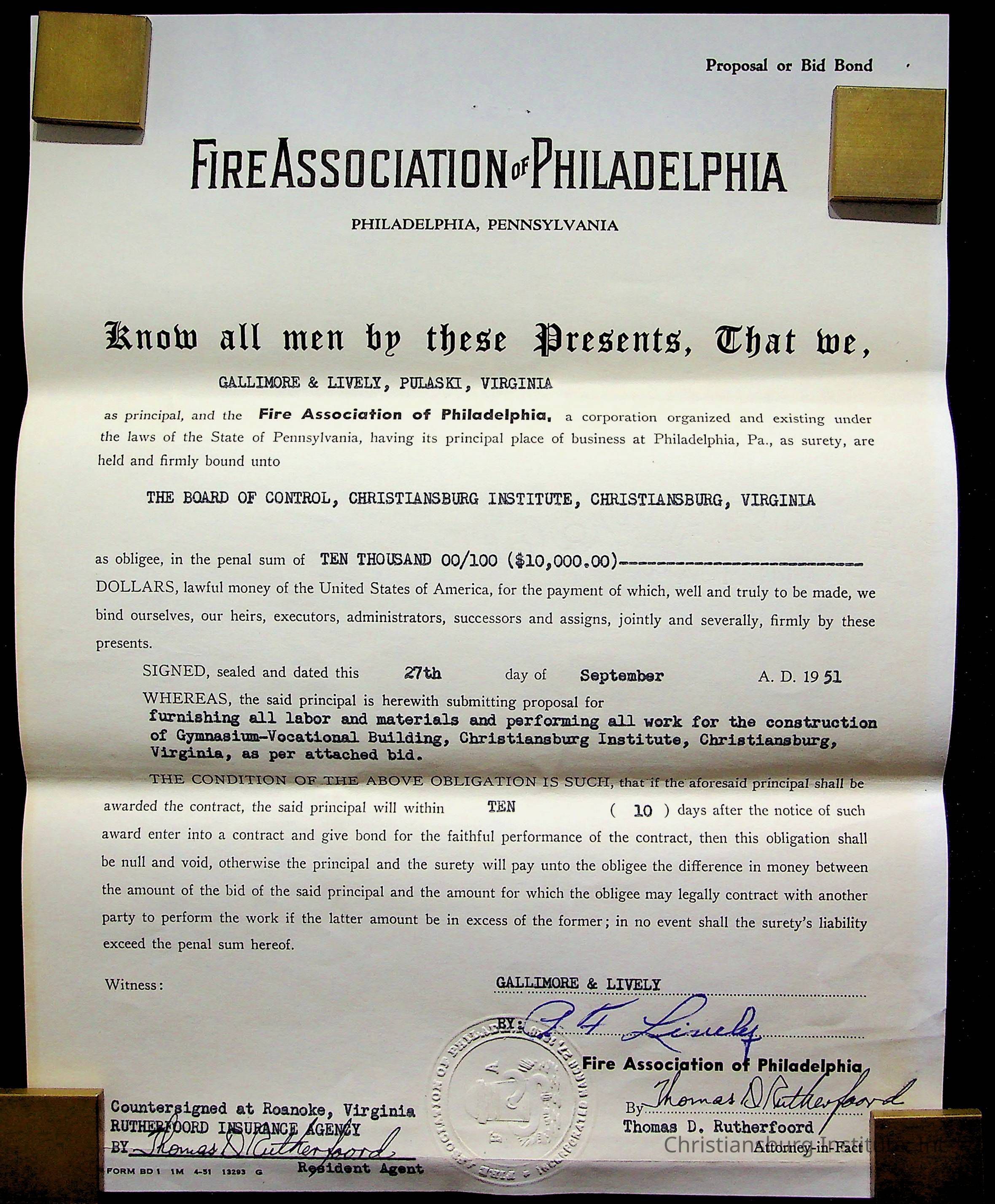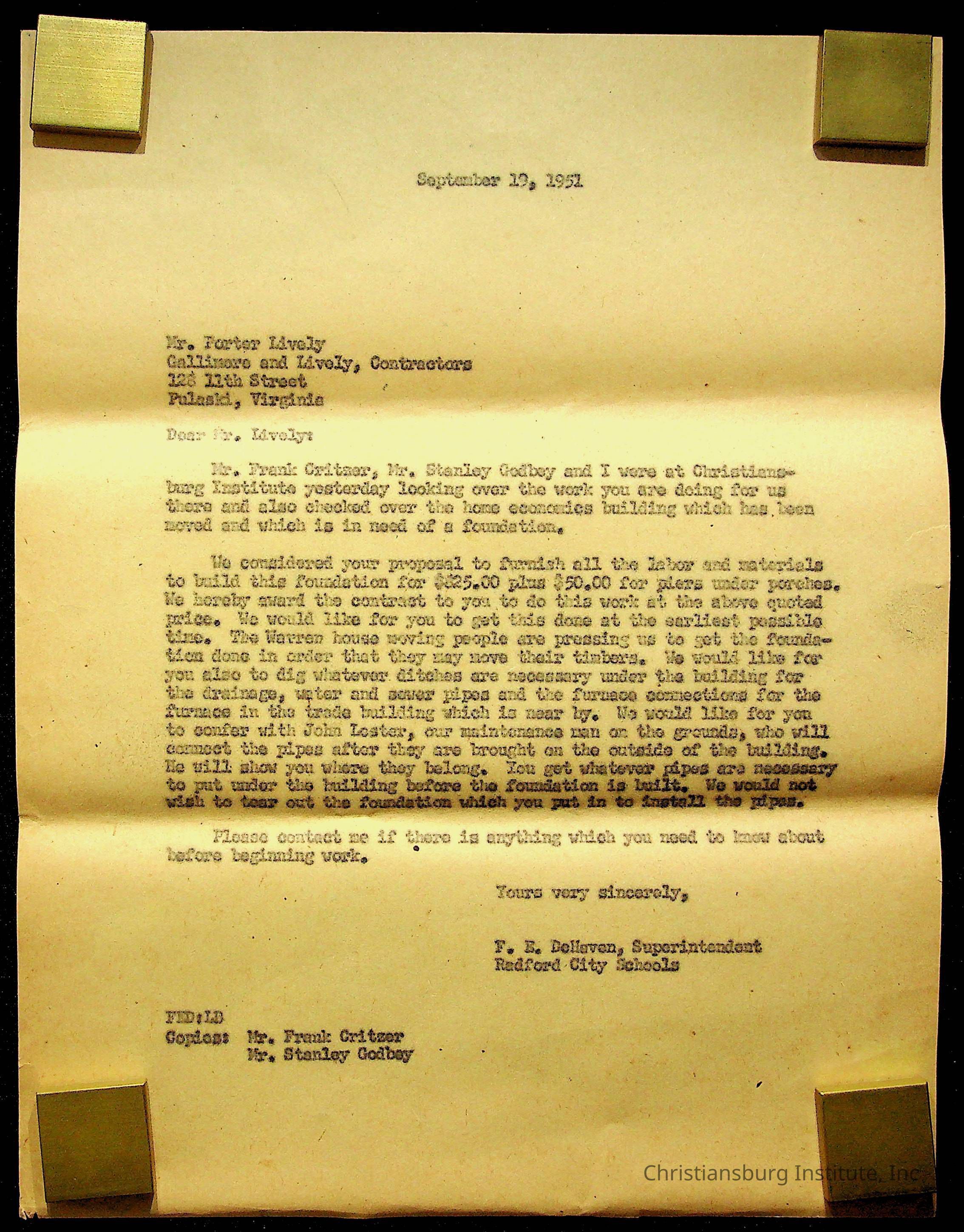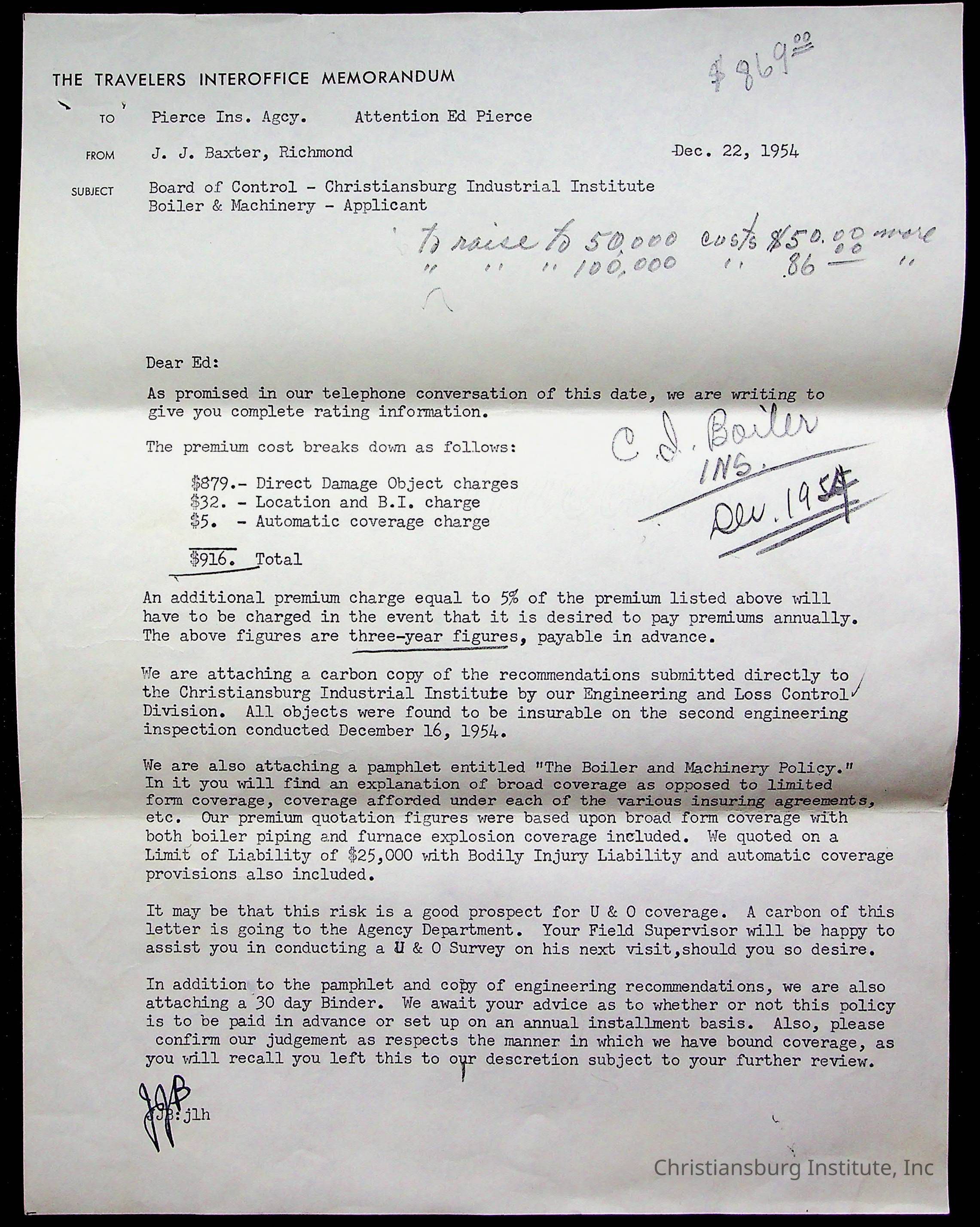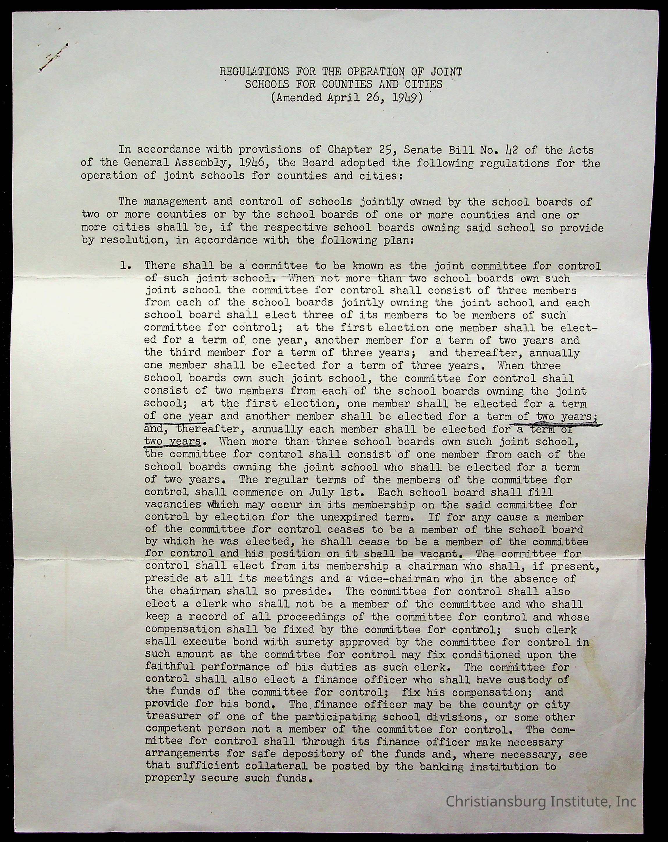 An archive of materials relating to the Christiansburg Institute including copies of deeds, correspondence, insurance paperwork, and other materials, circa 1940s-1960s.Collection