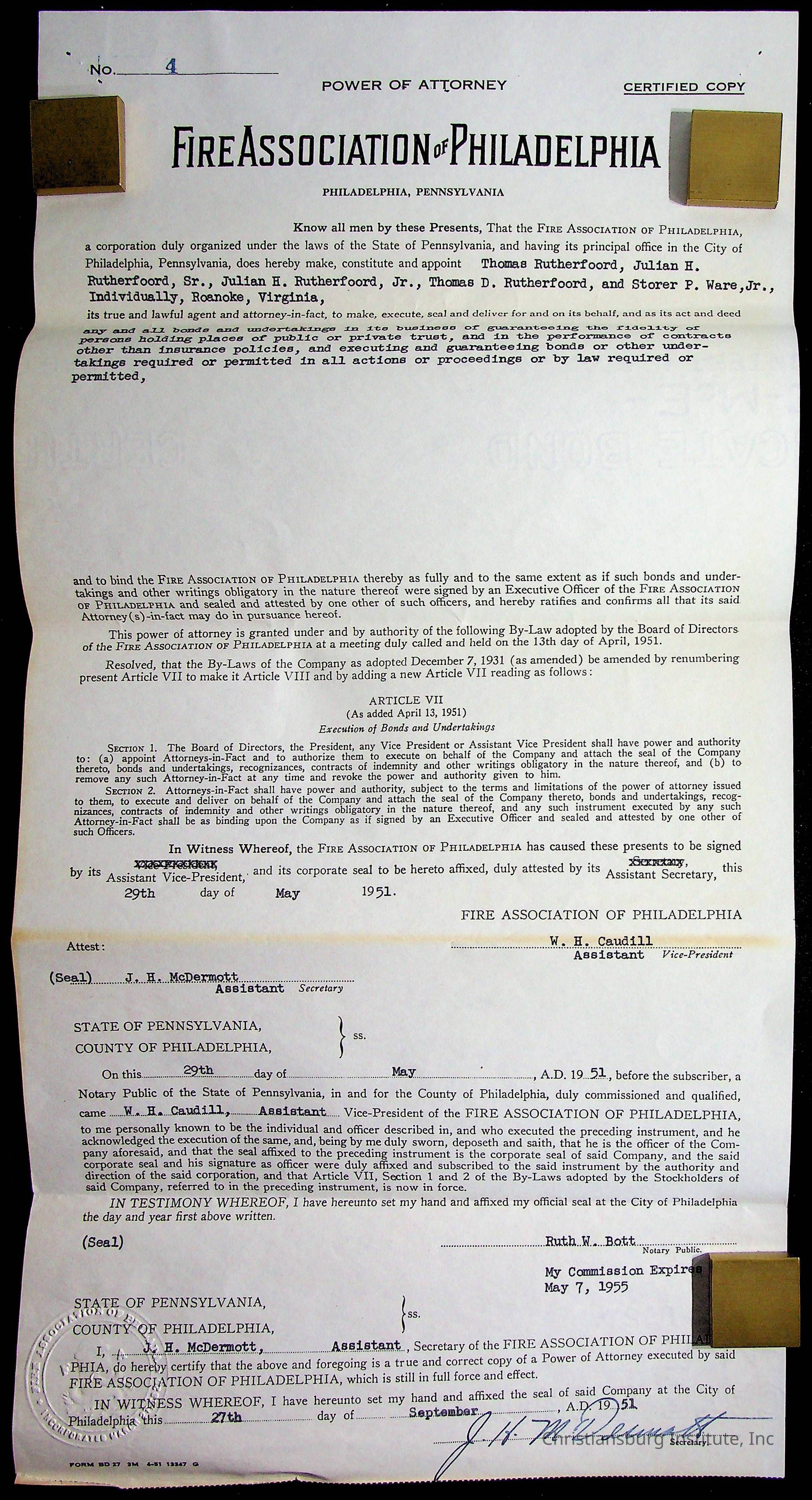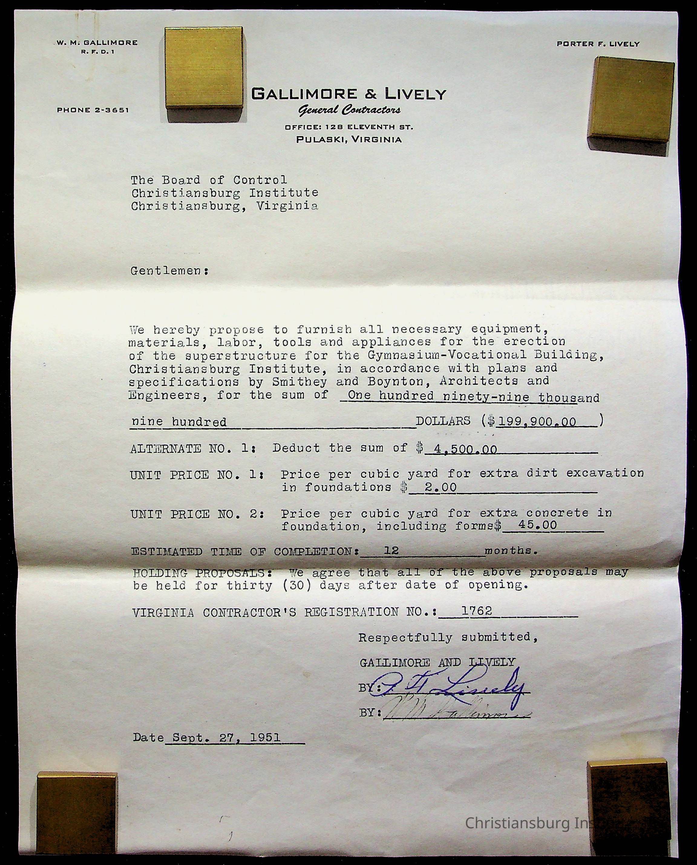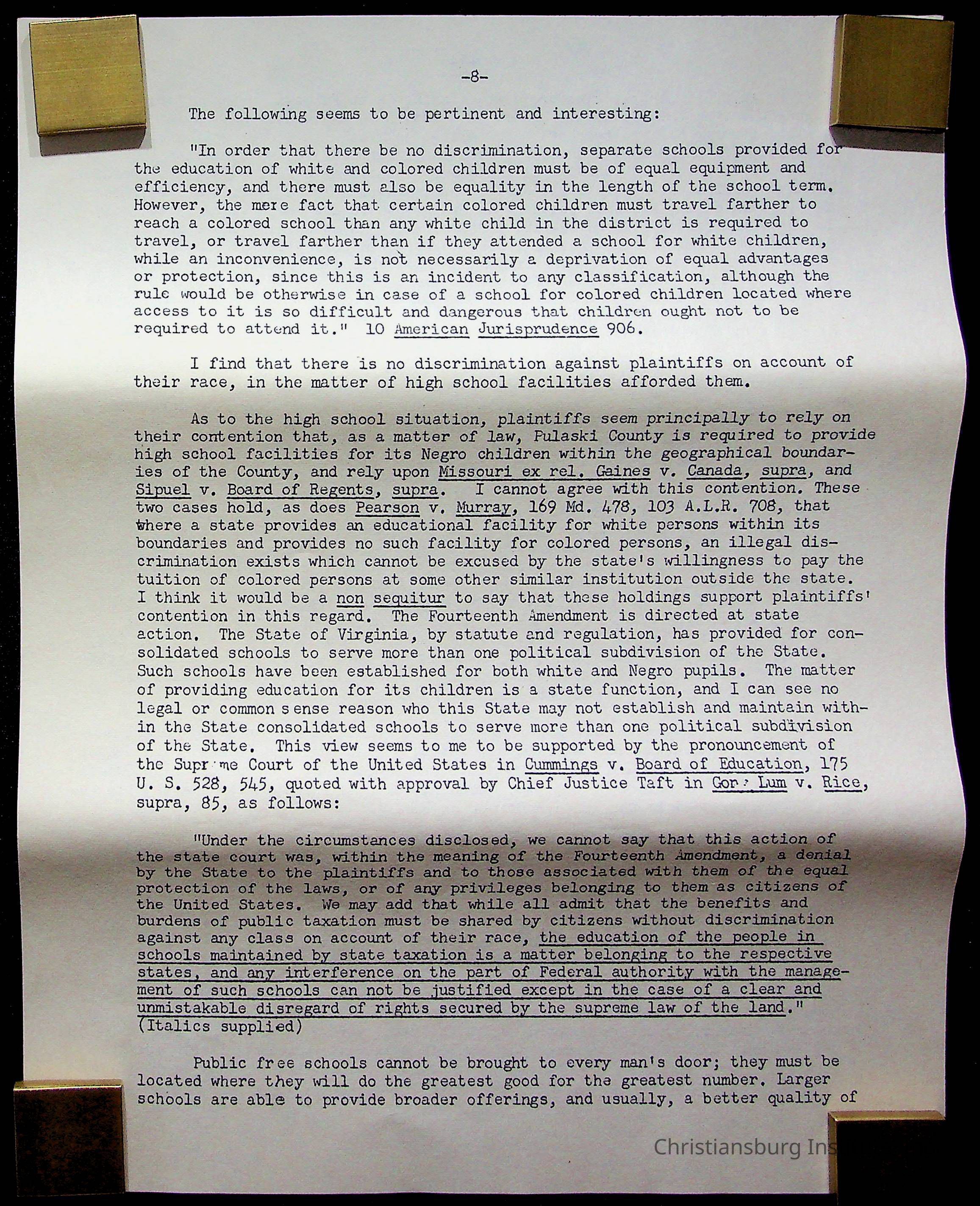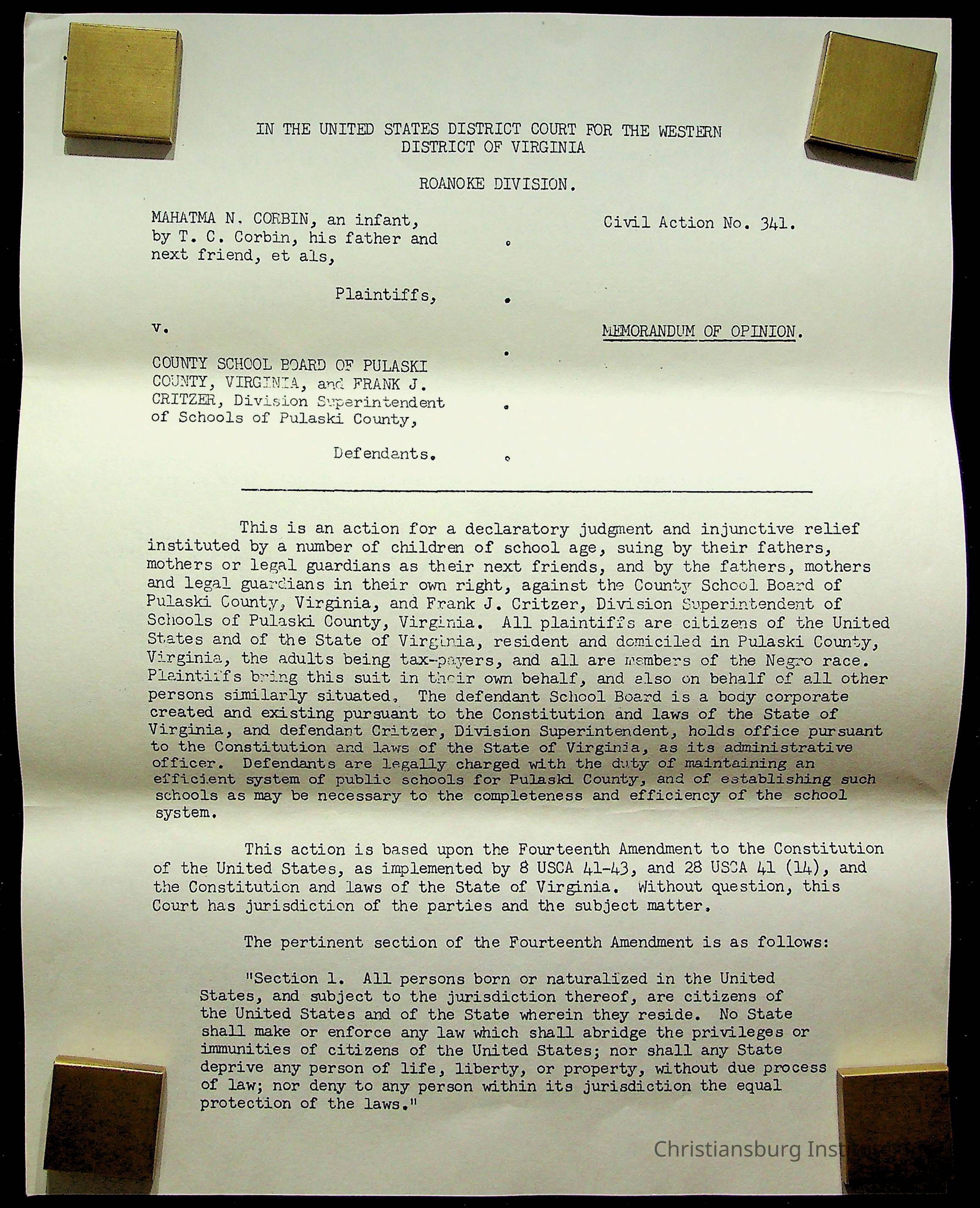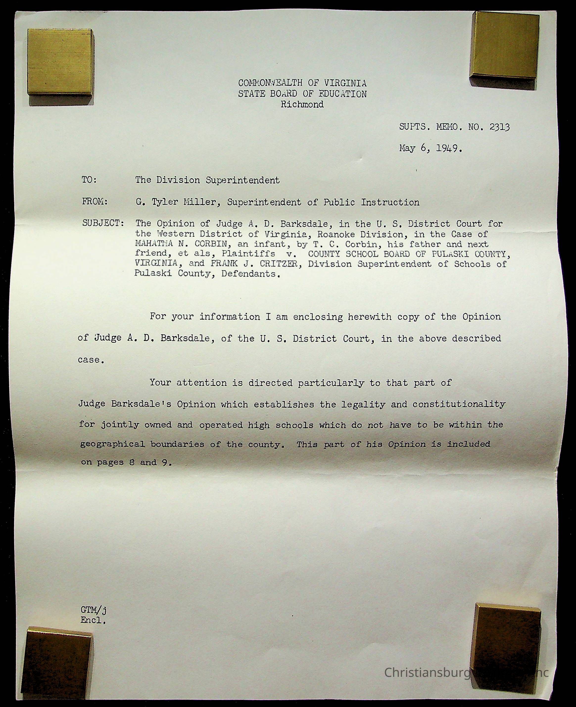 An archive of materials relating to the Christiansburg Institute including copies of deeds, correspondence, insurance paperwork, and other materials, circa 1940s-1960s.Collection